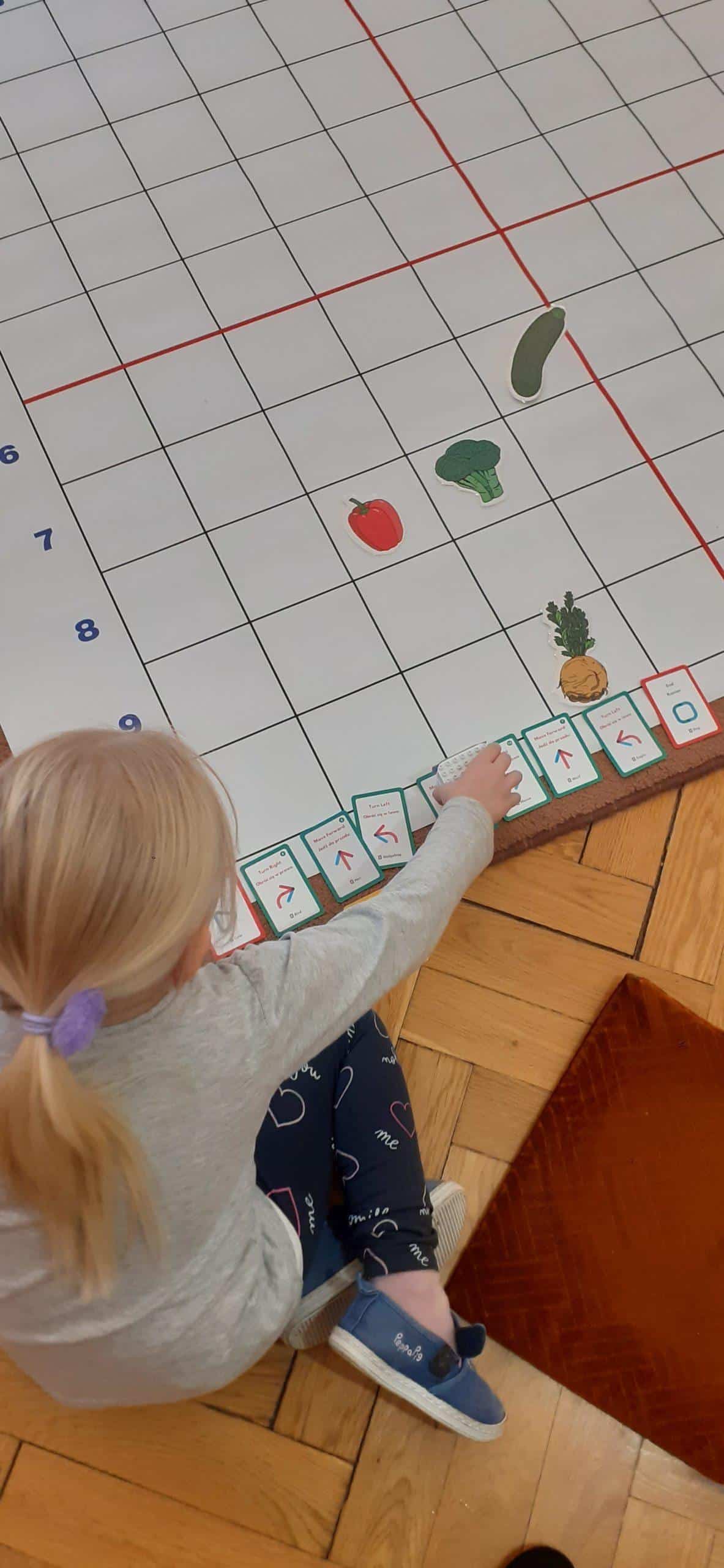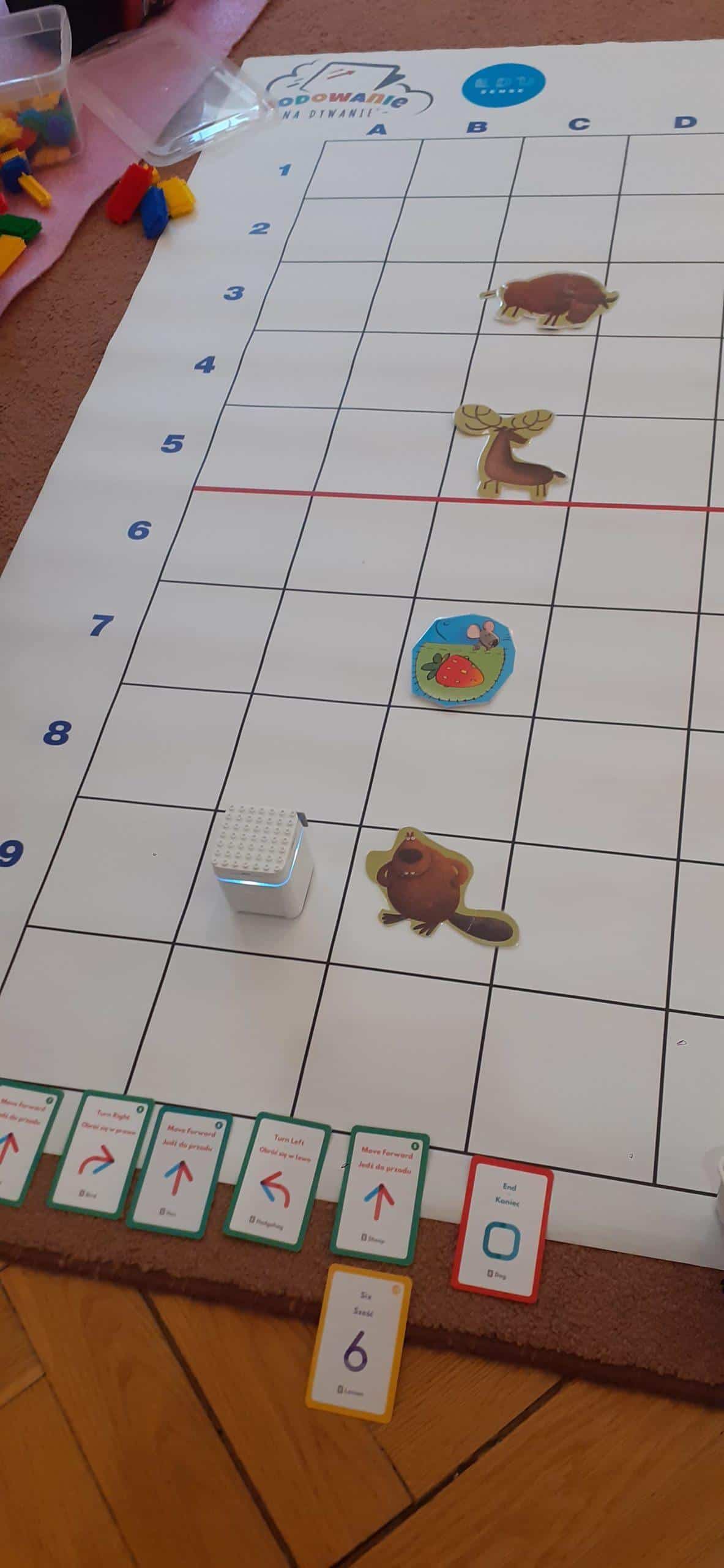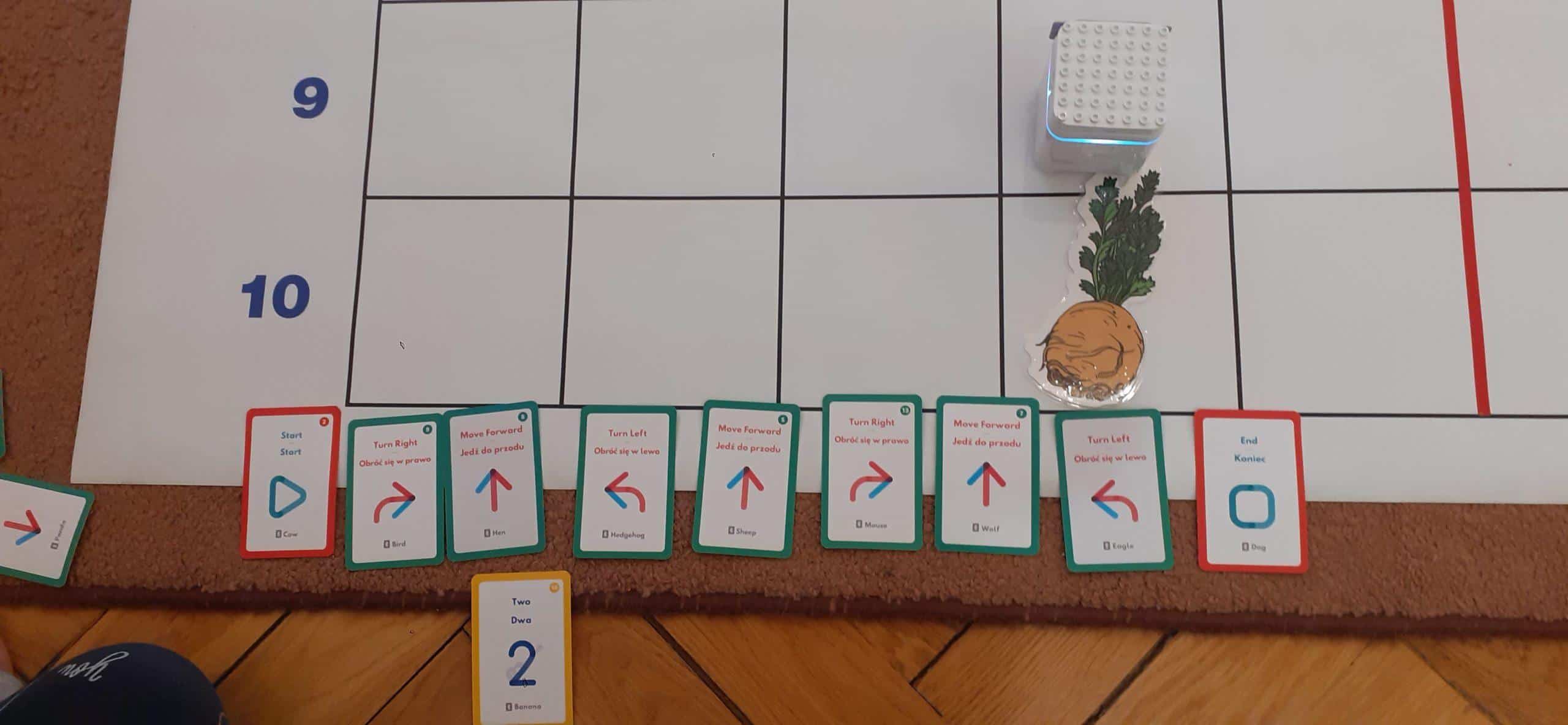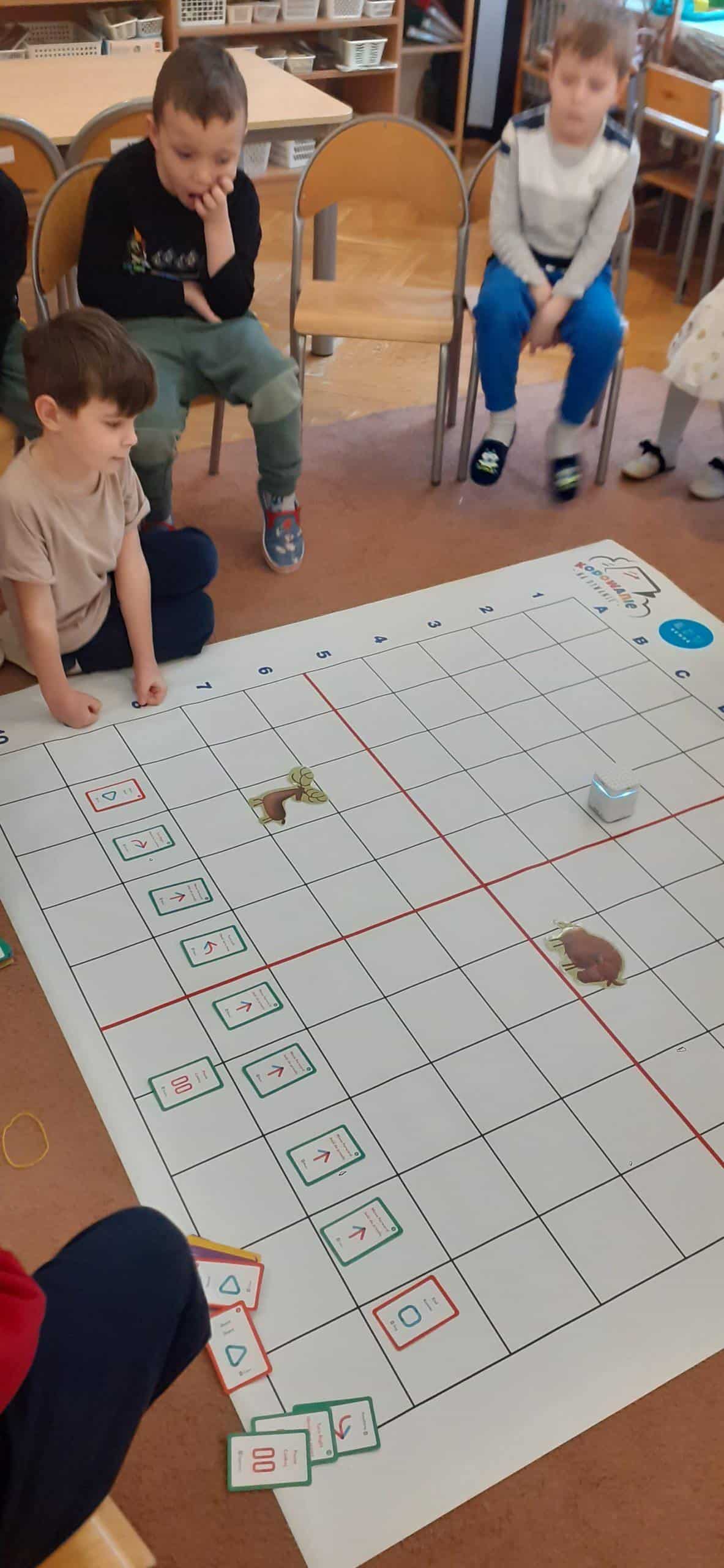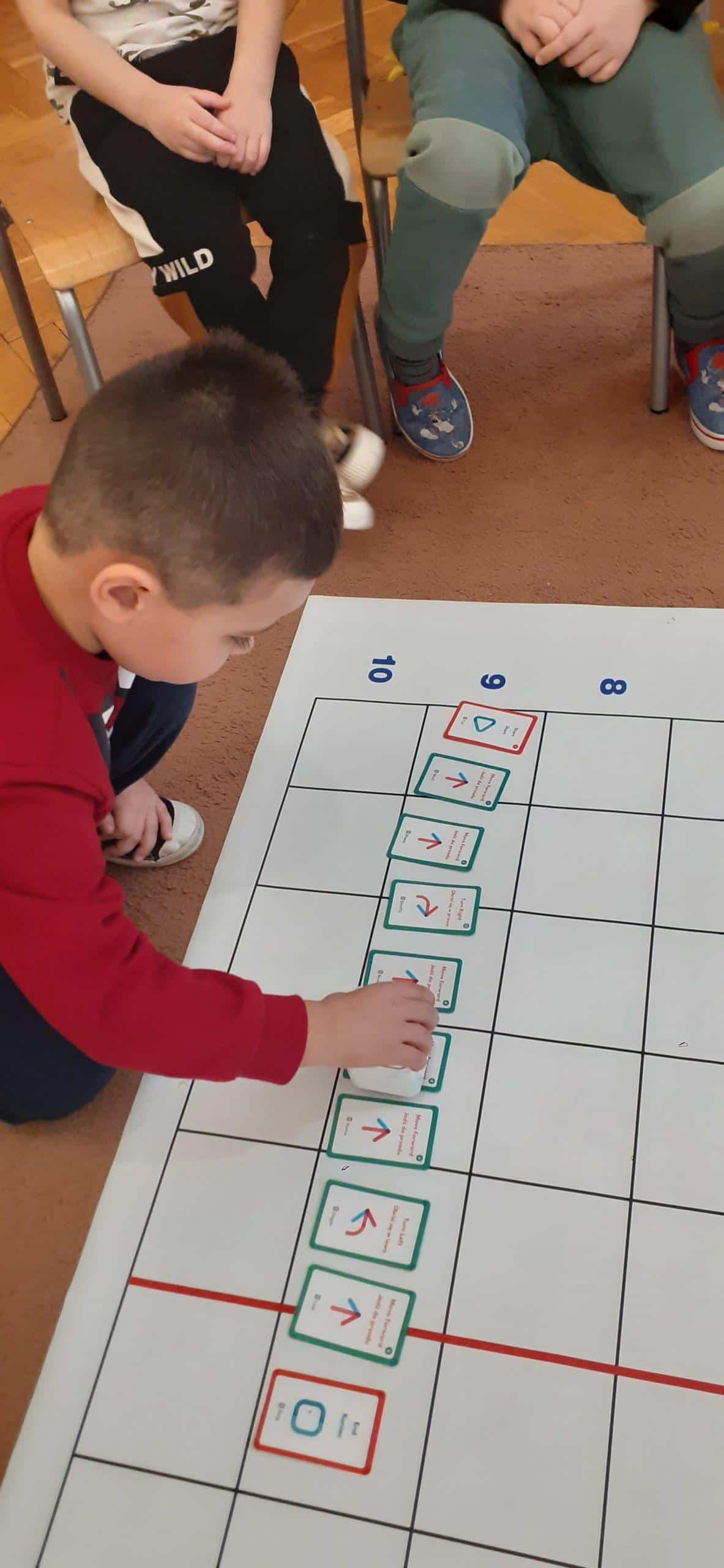Zabawy w kodowanie i programowanie to zabawy, które uczą dzieci logicznego myślenia , obserwacji i dedukcji. To świetna alternatywa dla rozszerzenia edukacji matematycznej i rozbudzania zdolności intelektualnych. Zajęcia w tym zakresie z wykorzystaniem Genibota są wyjątkowo interesujące dla dzieci. Genibot to mały robot, którego żeby wprawić w ruch trzeba zaprogramować. Program tworzymy układając sekwencje kart z komendami, następnie wgrywamy go, przykładając robota do kolejnych kart. Robotem można także sterować za pomocą gestów. Praca z takim robotem to świetna zabawa , rozwijająca logiczne, algorytmiczne myślenie, zadaniowe podejście do stawianych problemów. Dzieci poznają przy tym nowe pojęcia i zwroty. Podczas takich aktywności przedszkolnych dzieci uczą się także: współpracy, planowania, analizowania i samodzielnego tworzenia rożnych kodów.