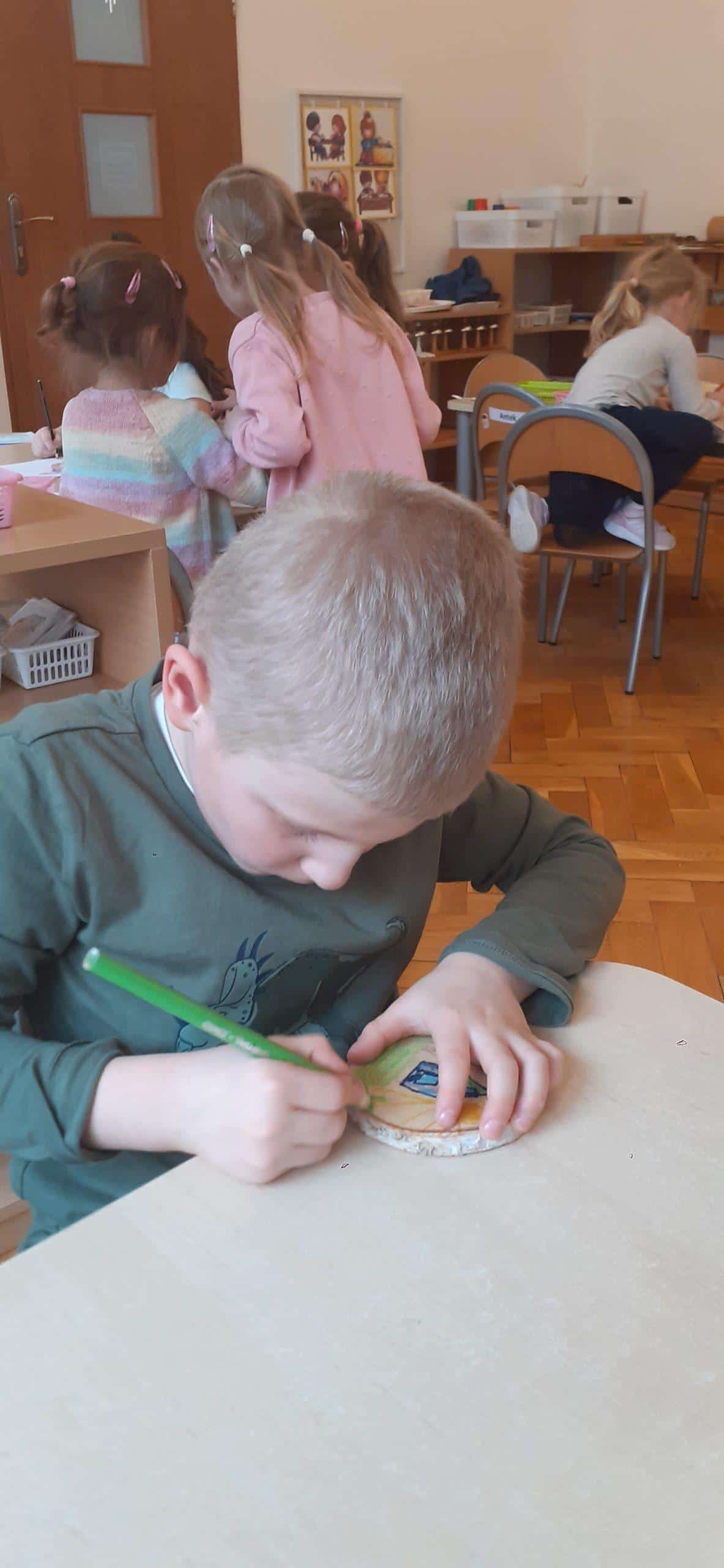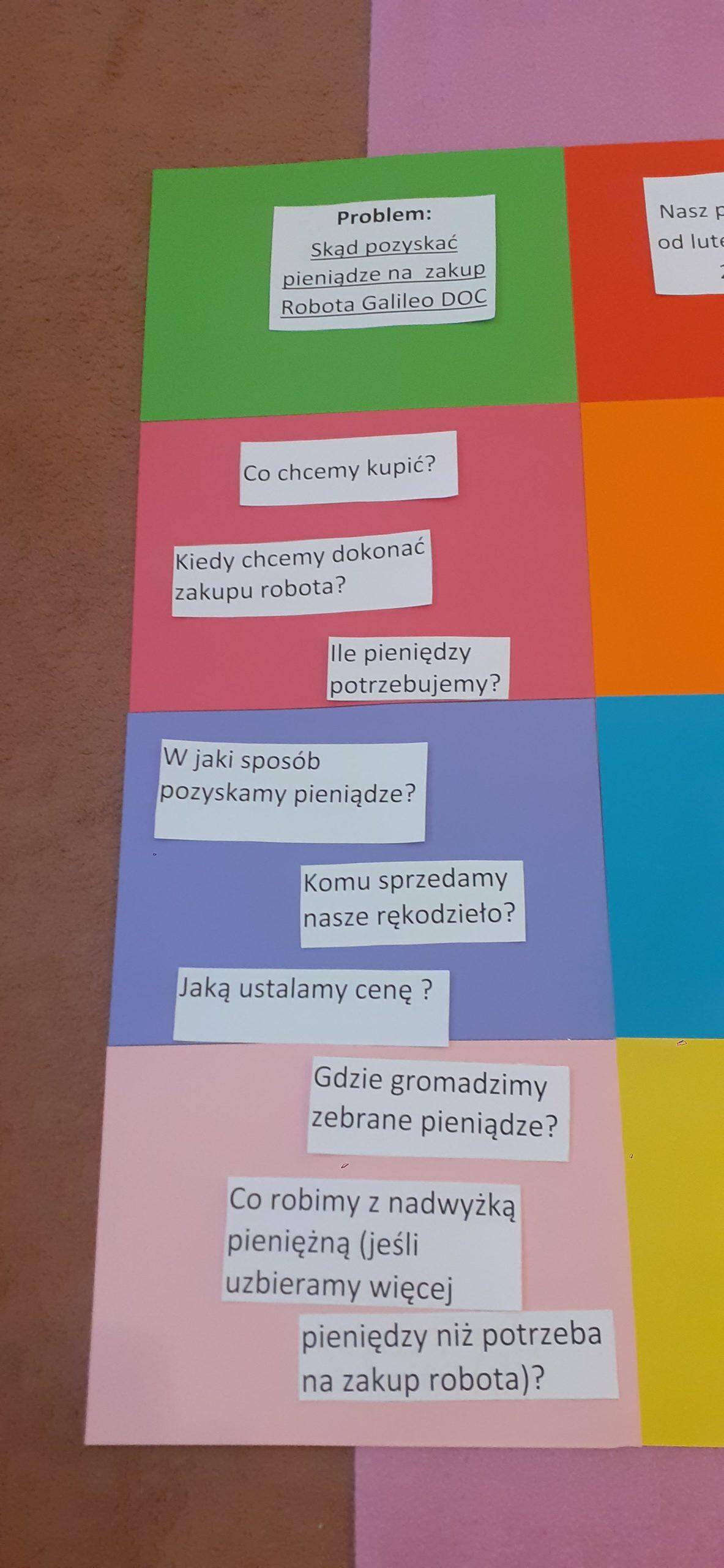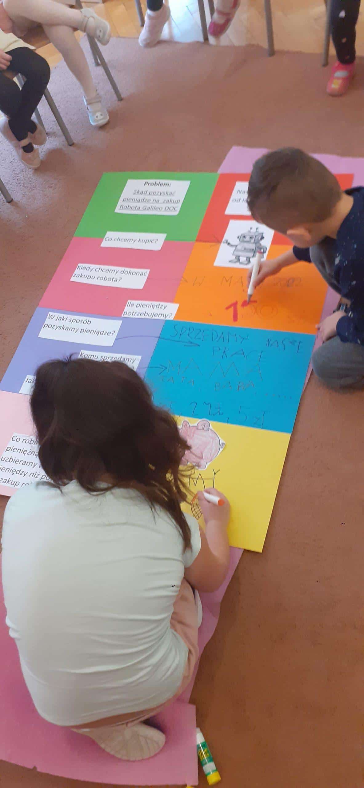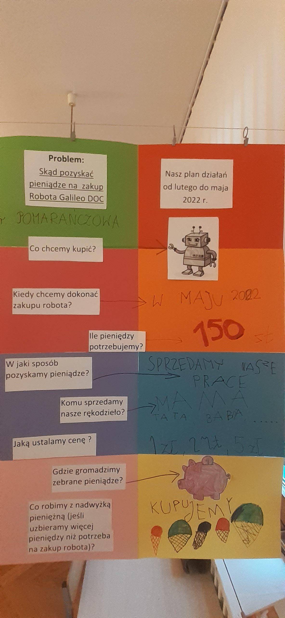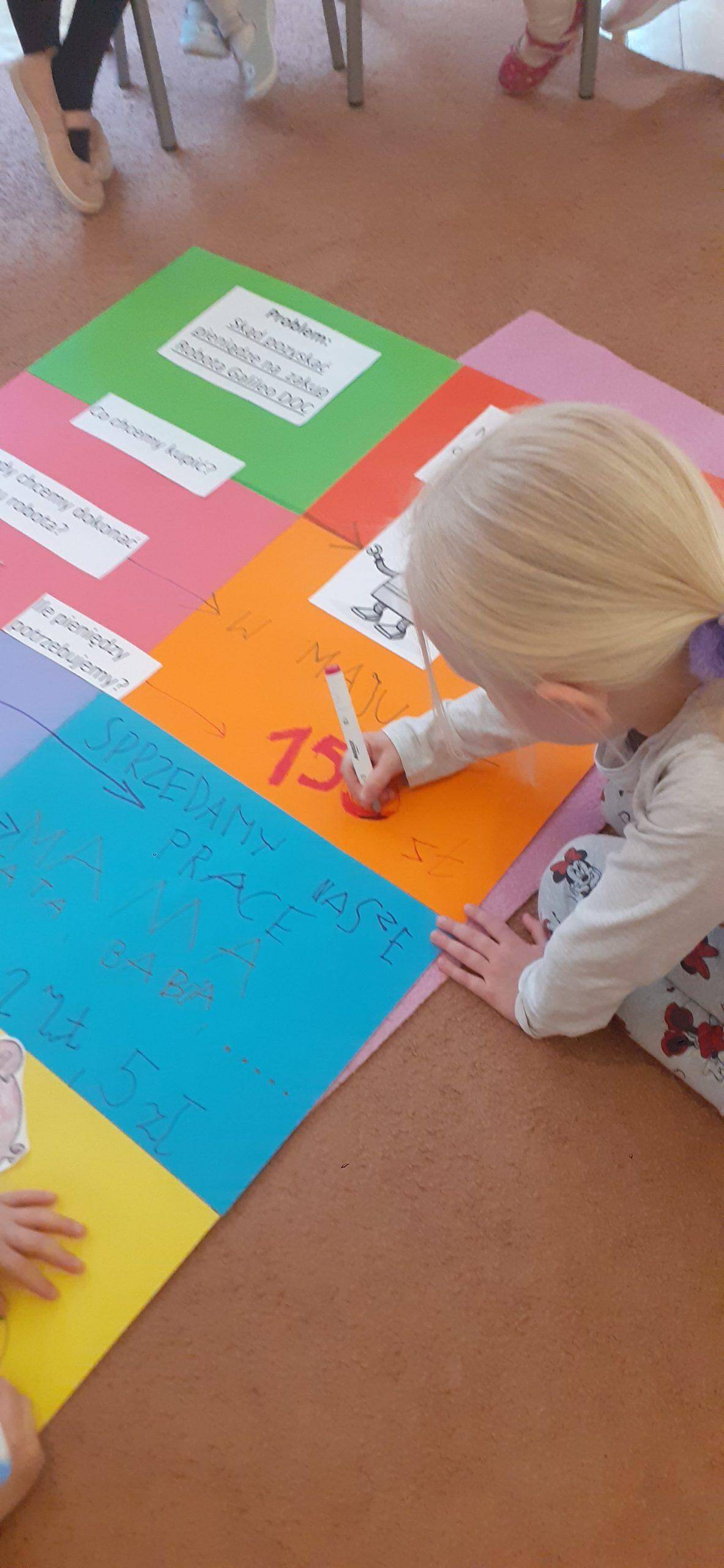 W tym roku realizujmy projekt „Przedsiębiorcze dzieciaki”, którego celem jest odkrycie tajemnic pieniądza, zarabiania, a także nauczenie dzieci planowania wydatków, a przede wszystkim oszczędzania. Stąd pomysł aktywności dzieci , dzięki którym dzieci zgromadzą środki pieniężne na zakup robota do nauki programowania . Dzieci w toku różnych działań zrozumiały, że aby zgromadzić odpowiednie zasoby finansowe muszą wykonać określoną pracę, zareklamować ją, a potem sprzedać. Na dużym arkuszu papieru sformułowano problem dotyczący tego w jaki sposób pozyskać pieniądze na zakup wspomnianego robota. Powstał w ten sposób plan działania , który realizowany będzie w lutym, marcu, kwietniu i maju, a zakończony będzie mamy nadzieję odpowiednim budżetem na zakup robota .Pierwszy etap pracy mamy za sobą, wykonaliśmy drewniane podkładki pod kubek i sprzedaliśmy je Rodzicom. Pozyskaliśmy w ten sposób 104 zł. Przed nami kolejne aktywności w następnym miesiącach i kolejne sprzedaże, do których planujemy także oprócz Rodziców włączyć pracowników przedszkola.