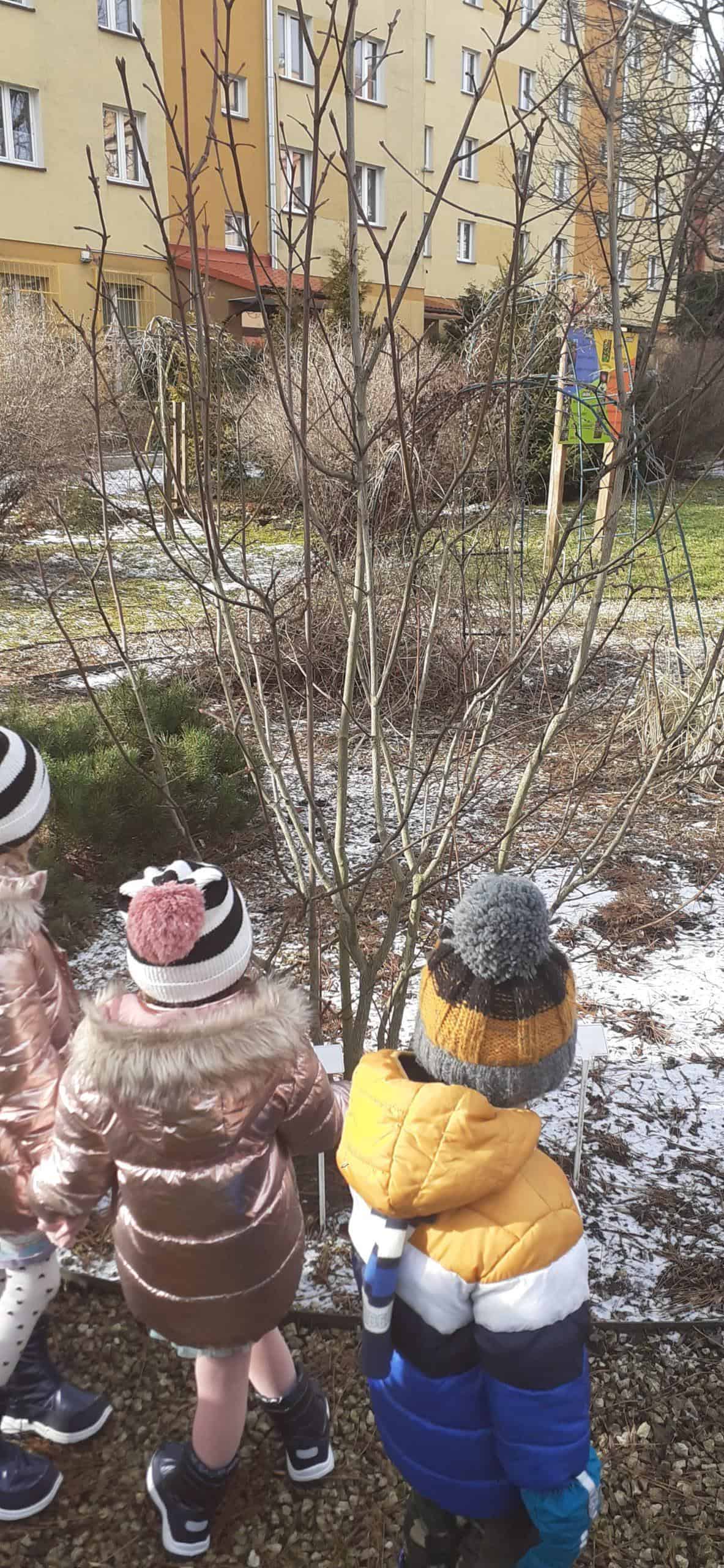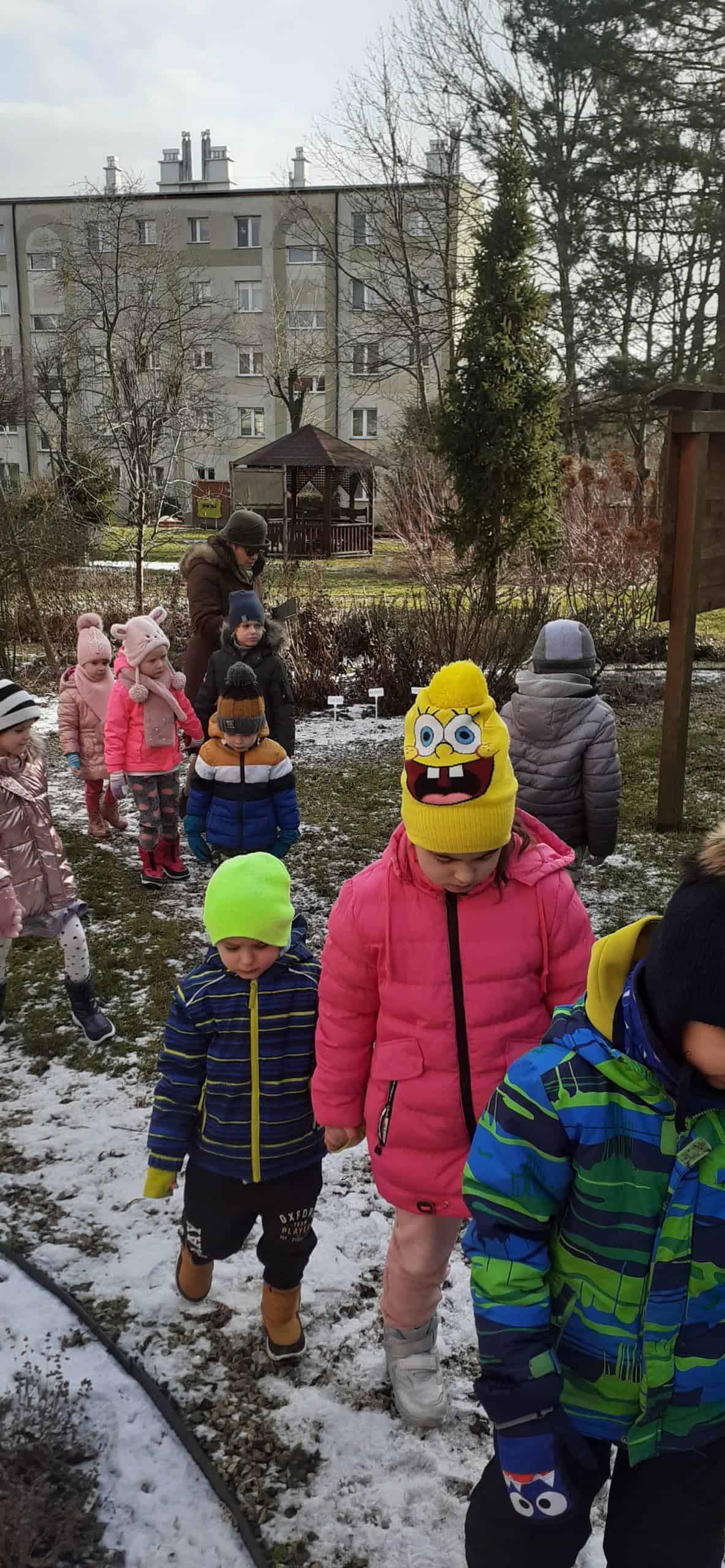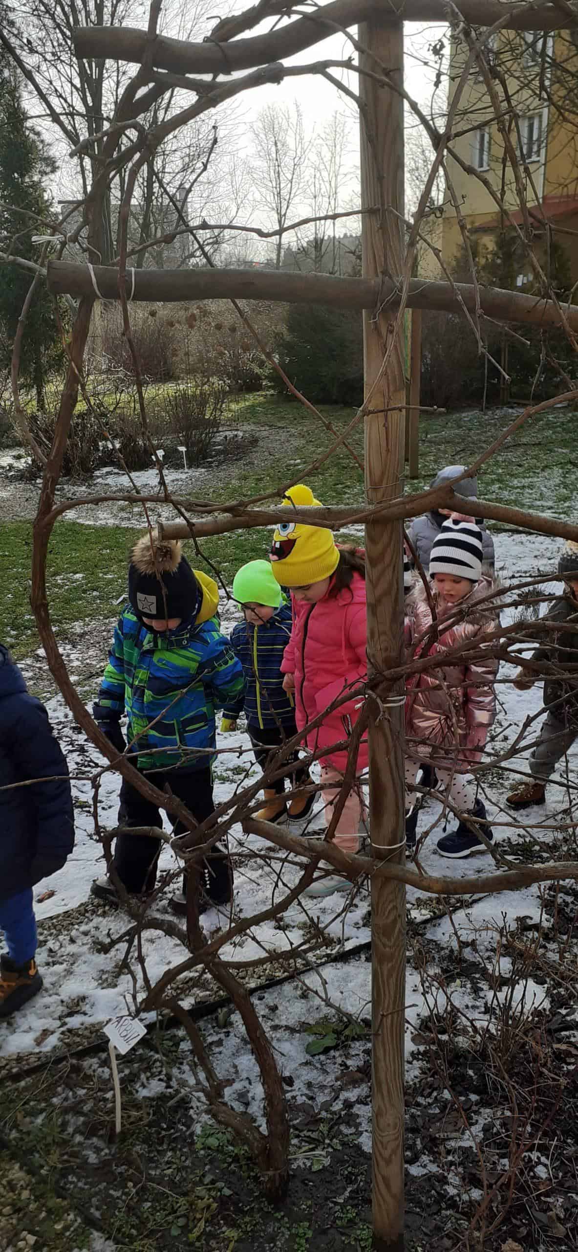Obserwacja roślin w zimowym uśpieniu to temat zajęcia, które odbyło się na terenie naszej przedszkolnej przyrodniczej ścieżki edukacyjnej. Dzieci doskonale wiedziały, że czas zimy to czas spoczynku i uśpienia roślin, co mogły zobaczyć na terenie ścieżki edukacyjnej. Już po krótkiej obserwacji dzieci z powodzeniem dostrzegły cechy roślin będących w zimowym spoczynku. Dowiedziały się też dlaczego rośliny muszą taki okres odbyć – żeby potem być silniejszymi, bardziej odpornymi i ładniejszymi. W stan spoczynku może zapadać cała roślina lub jej część np pędy, bulwy, kłącza, których rozwój zahamowany jest przez brak słońca. Jak się okazało były to istotne ciekawostki dla dzieci. A potem w zacienionych miejscach naszego terenu wokół przedszkola dzieci dostrzegły śnieg – a na nim jakieś ślady – to była zagadka. Ale szybko odgadnięta, bowiem były to ślady kota i ptaka. Relaksacyjny spacer w ogrodzie przedszkolnym połączony z obserwacją środowiska przyrodniczego w okresie zimy był bardzo udany. Teraz czekamy na pierwsze przebudzenia roślin.