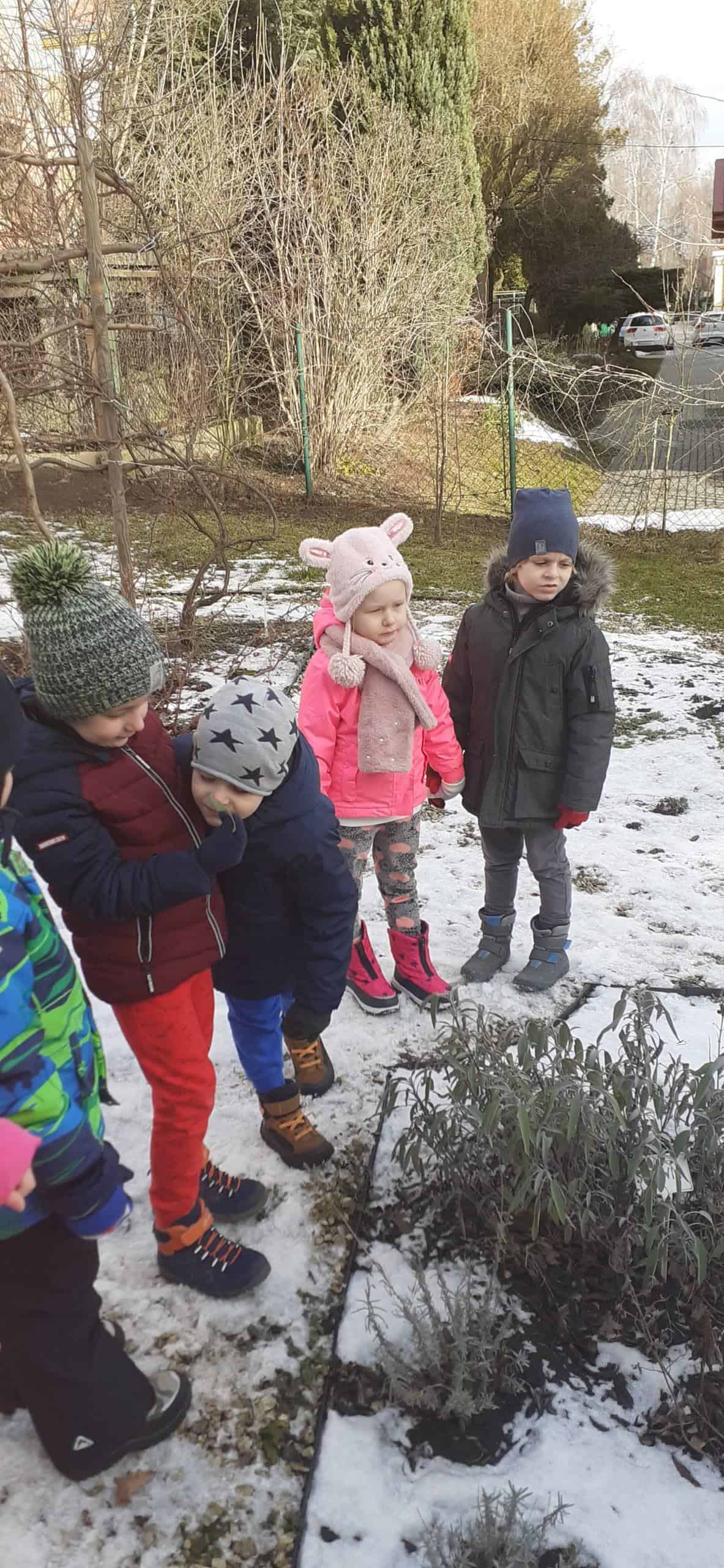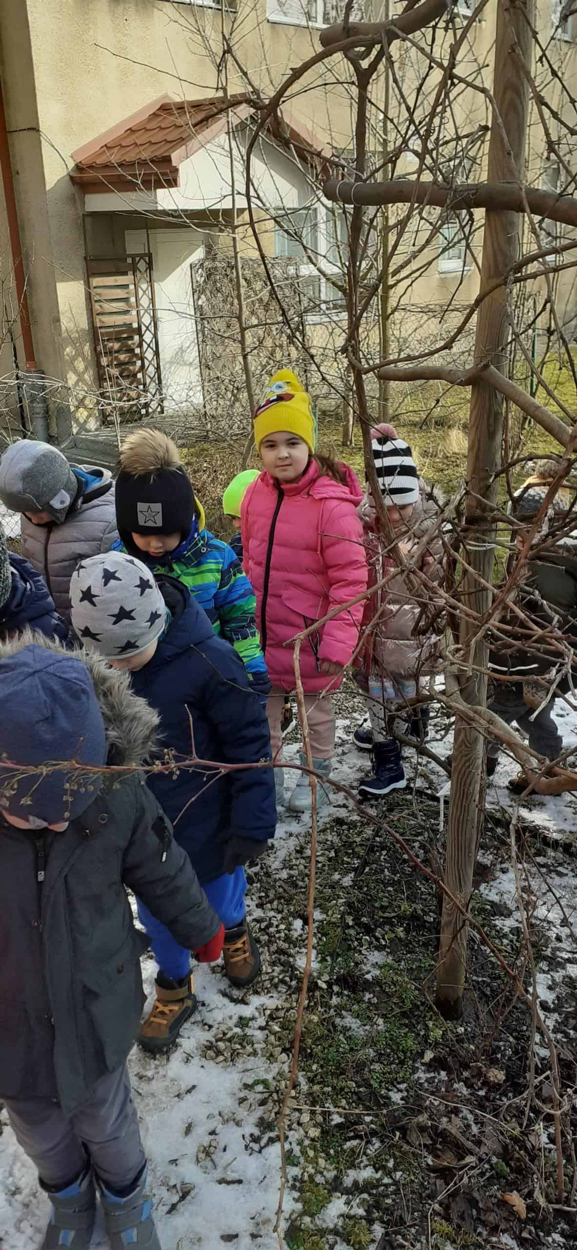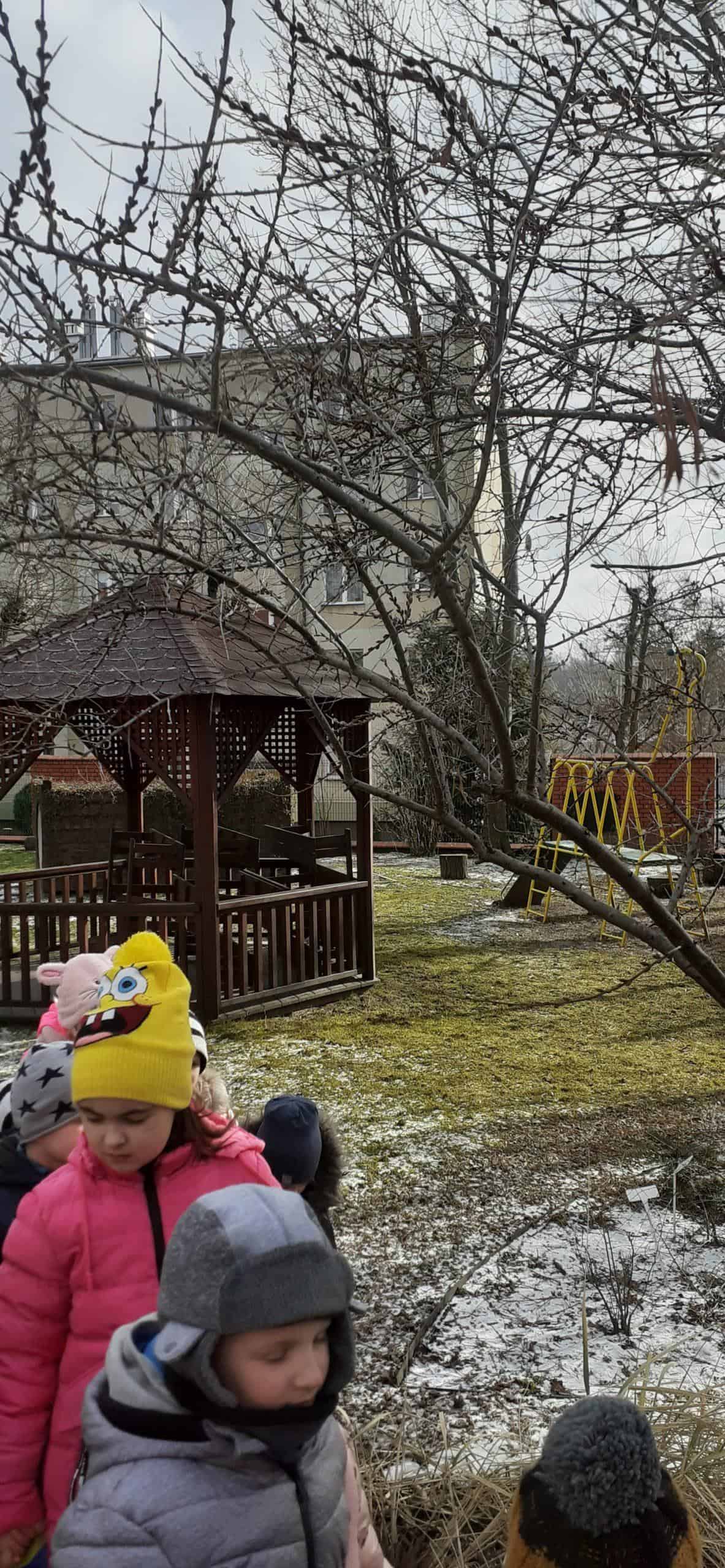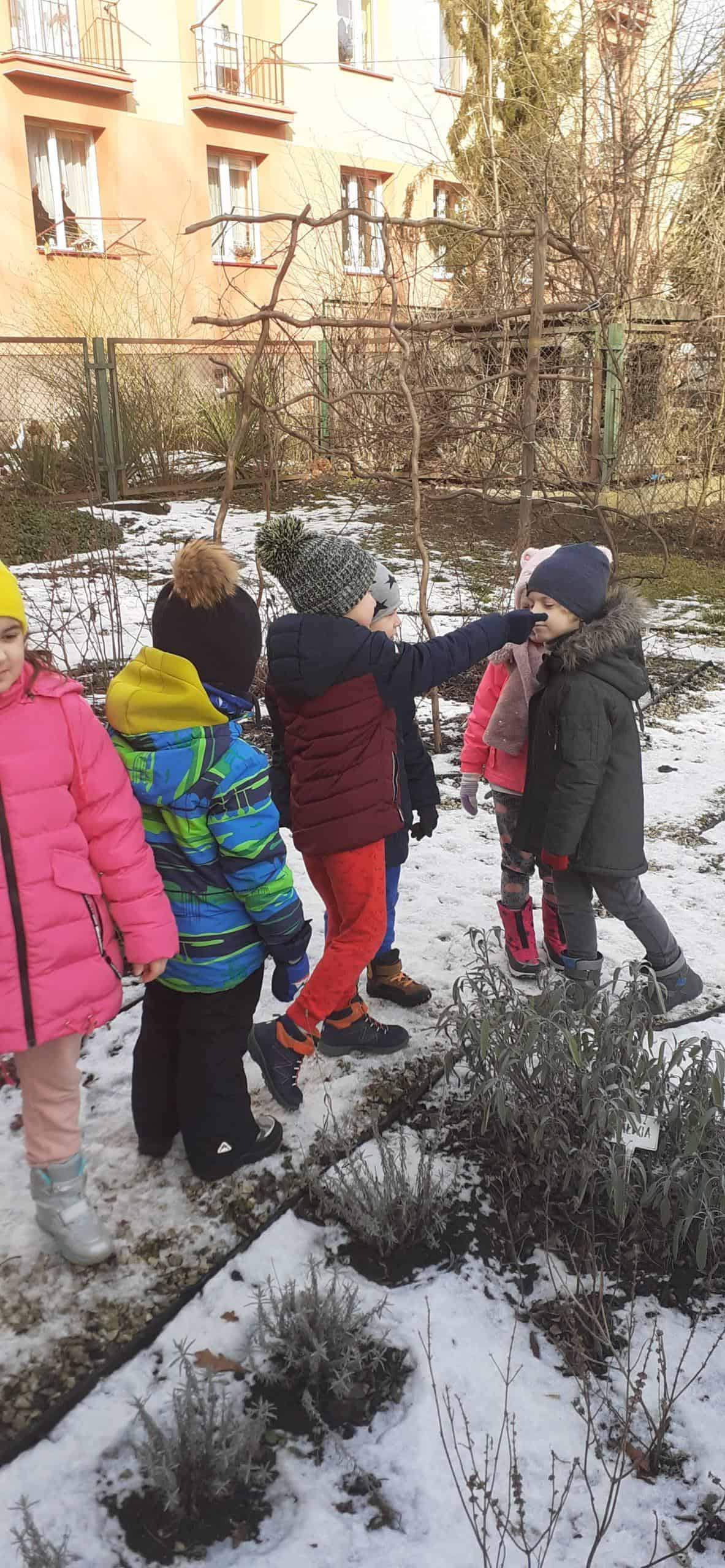 Obserwacja roślin w zimowym uśpieniu to temat zajęcia, które odbyło się na terenie naszej przedszkolnej przyrodniczej ścieżki edukacyjnej. Dzieci doskonale wiedziały, że czas zimy to czas spoczynku i uśpienia roślin, co mogły zobaczyć na terenie ścieżki edukacyjnej. Już po krótkiej obserwacji dzieci z powodzeniem dostrzegły cechy roślin będących w zimowym spoczynku. Dowiedziały się też dlaczego rośliny muszą taki okres odbyć – żeby potem być silniejszymi, bardziej odpornymi i ładniejszymi. W stan spoczynku może zapadać cała roślina lub jej część np pędy, bulwy, kłącza, których rozwój zahamowany jest przez brak słońca. Jak się okazało były to istotne ciekawostki dla dzieci. A potem w zacienionych miejscach naszego terenu wokół przedszkola dzieci dostrzegły śnieg – a na nim jakieś ślady – to była zagadka. Ale szybko odgadnięta, bowiem były to ślady kota i ptaka. Relaksacyjny spacer w ogrodzie przedszkolnym połączony z obserwacją środowiska przyrodniczego w okresie zimy był bardzo udany. Teraz czekamy na pierwsze przebudzenia roślin.