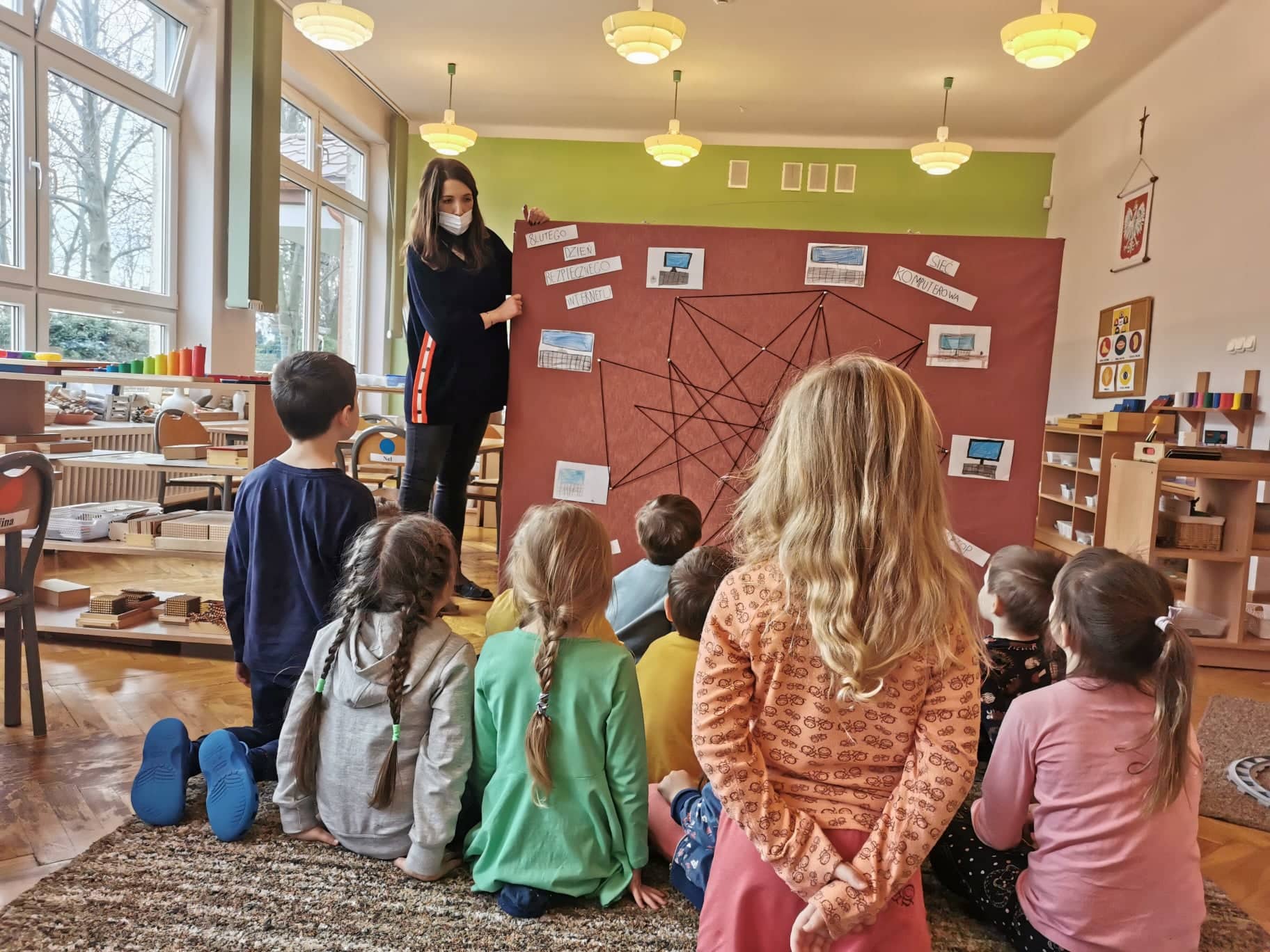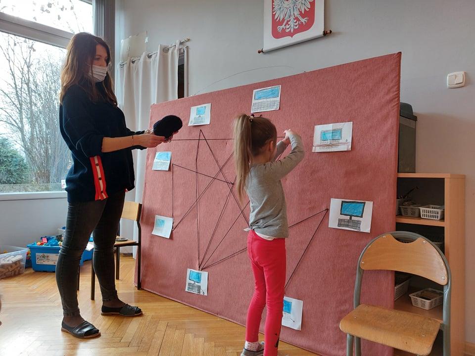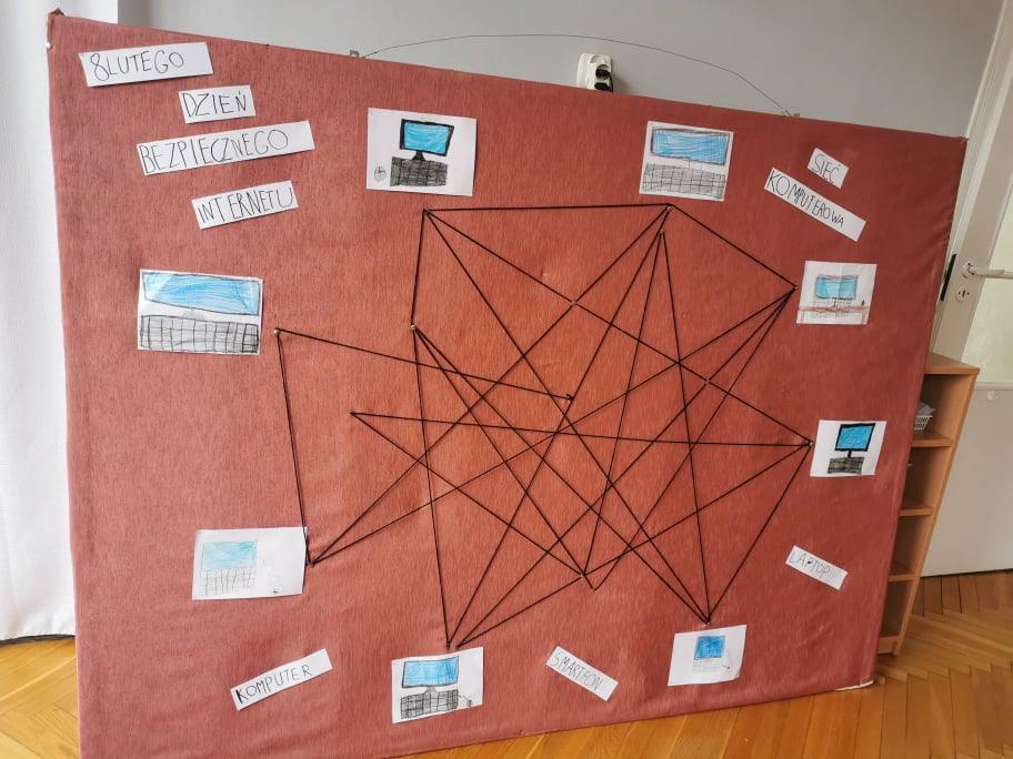 Na koniec, aby zobrazować dzieciom sieć komputerową wykonaliśmy jej wizualizację z wykorzystaniem wełny.