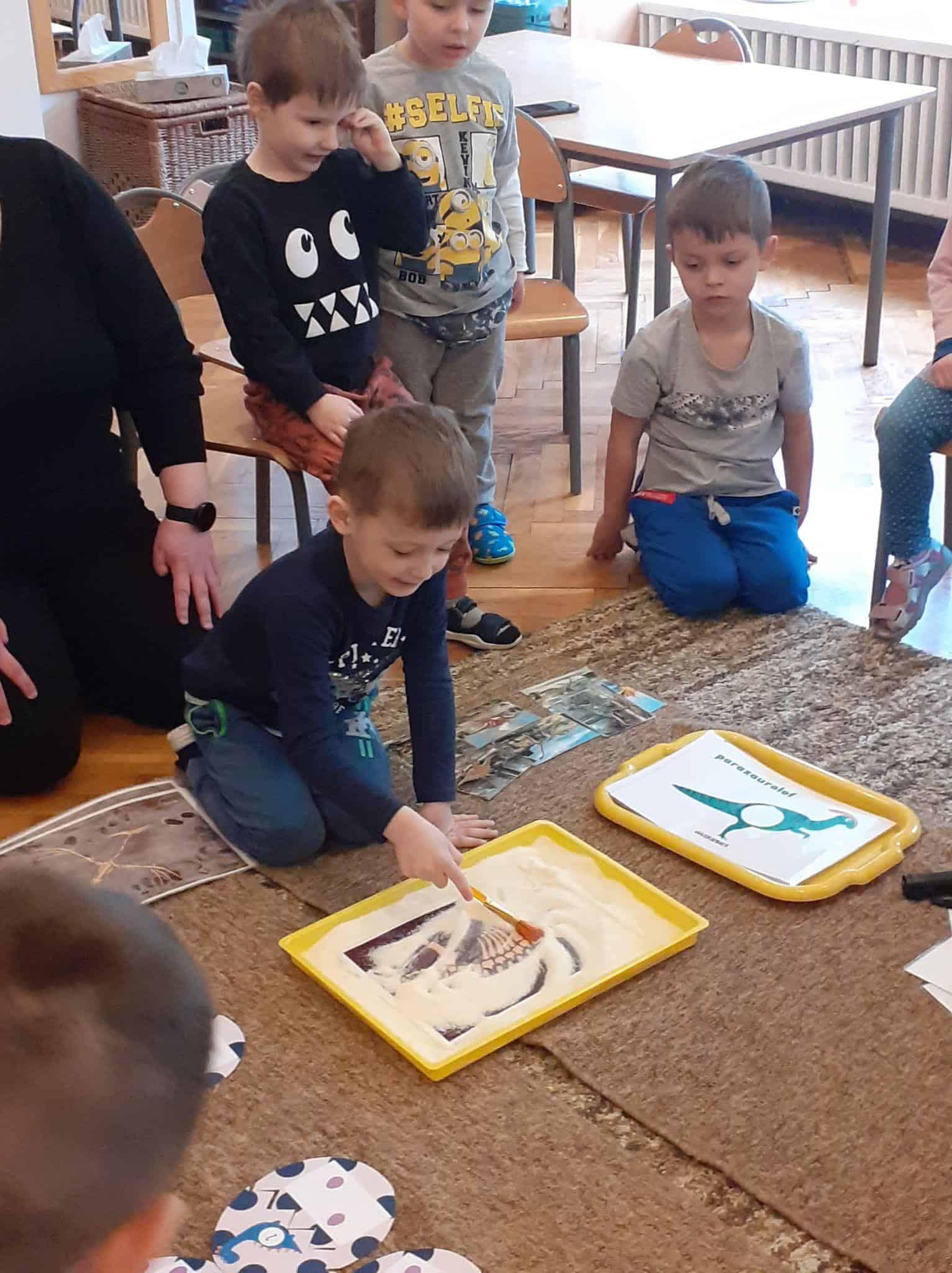 Mimo tego, iż dzieci tak dużo wiedzą o dinozaurach bardzo aktywnie i ochoczo brały udział w zajęciach. To bardzo cieszy i motywuje do szukania dodatkowych materiałów, które rozszerzą ich wiedzę i zainteresowania względem tych prehistorycznych gadów.
