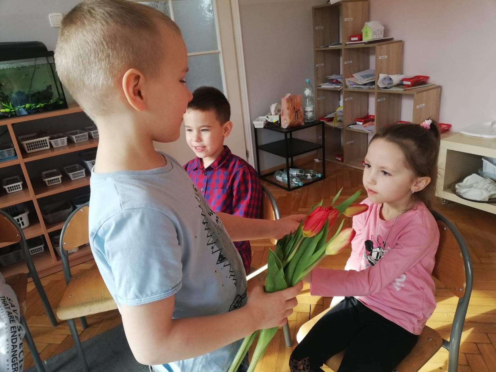 Dzień Kobiet to wyjątkowy dzień, ważny dla wszystkich kobiet i tych dużych i tych małych. We wtorek 8 marca w naszej grupie odbyła się uroczystość z okazji tego święta. Radosna atmosfera panowała od samego rana. W tym szczególnym dniu wszystkie dziewczynki otrzymały od chłopców upominki jak również kwiaty, nie zabrakło także słodkiego poczęstunku. Chłopcy złożyli dziewczynkom życzenia oraz dołożyli wszelkich starań aby ten dzień był dla nich wyjątkowo miły. Święto Kobiet, które obchodziliśmy to doskonały sposób umożliwiający kształtowanie u dzieci nawyku obdarowywania bliskich nam osób upominkami. W imieniu wszystkich dziewczynek dziękujemy za życzenia i upominki, które sprawiły, że ten dzień był wyjątkowy.