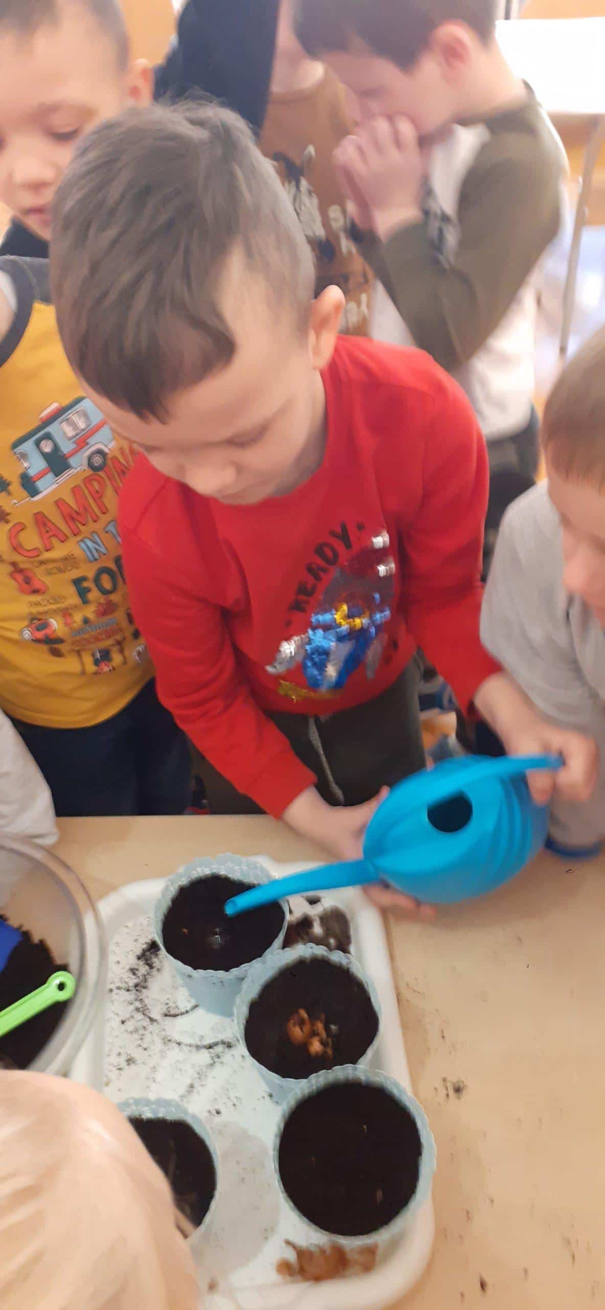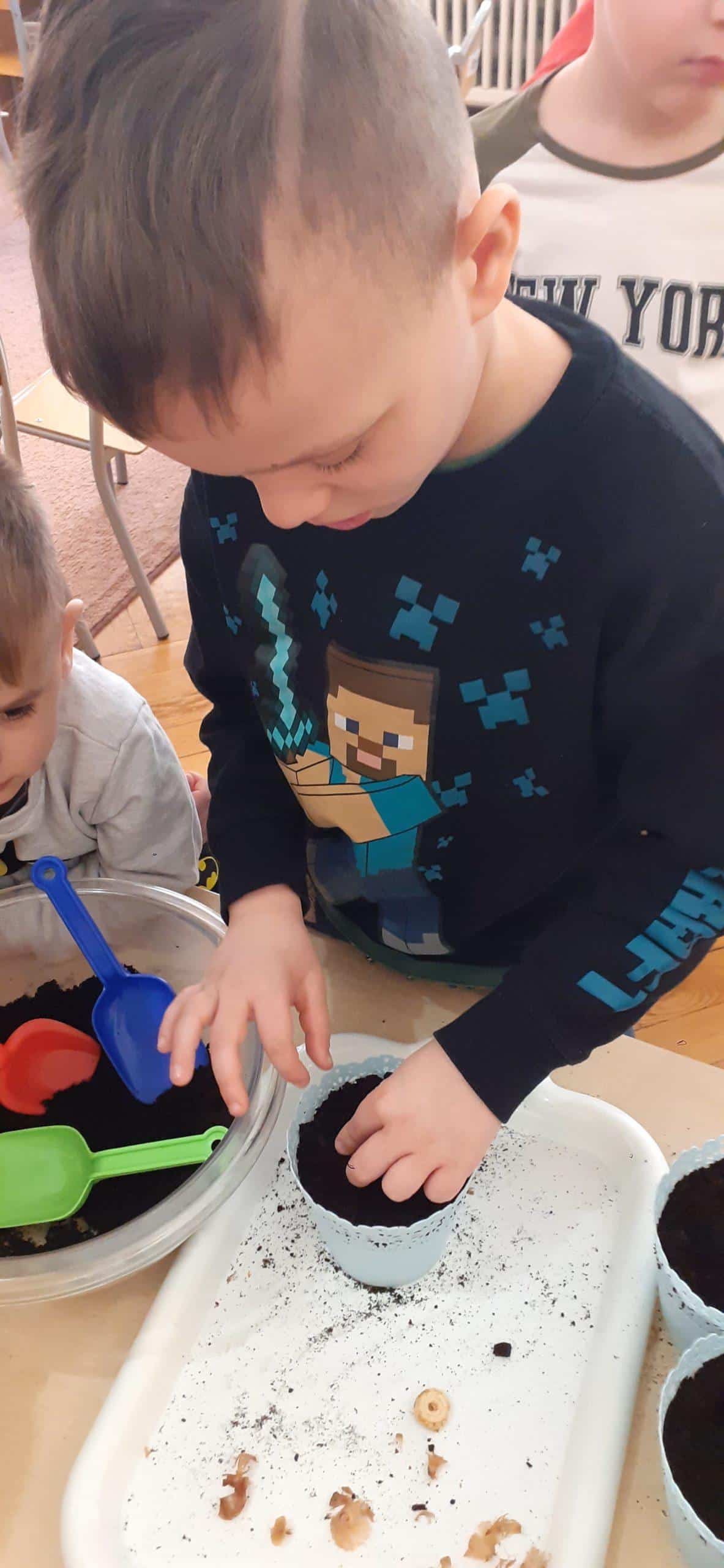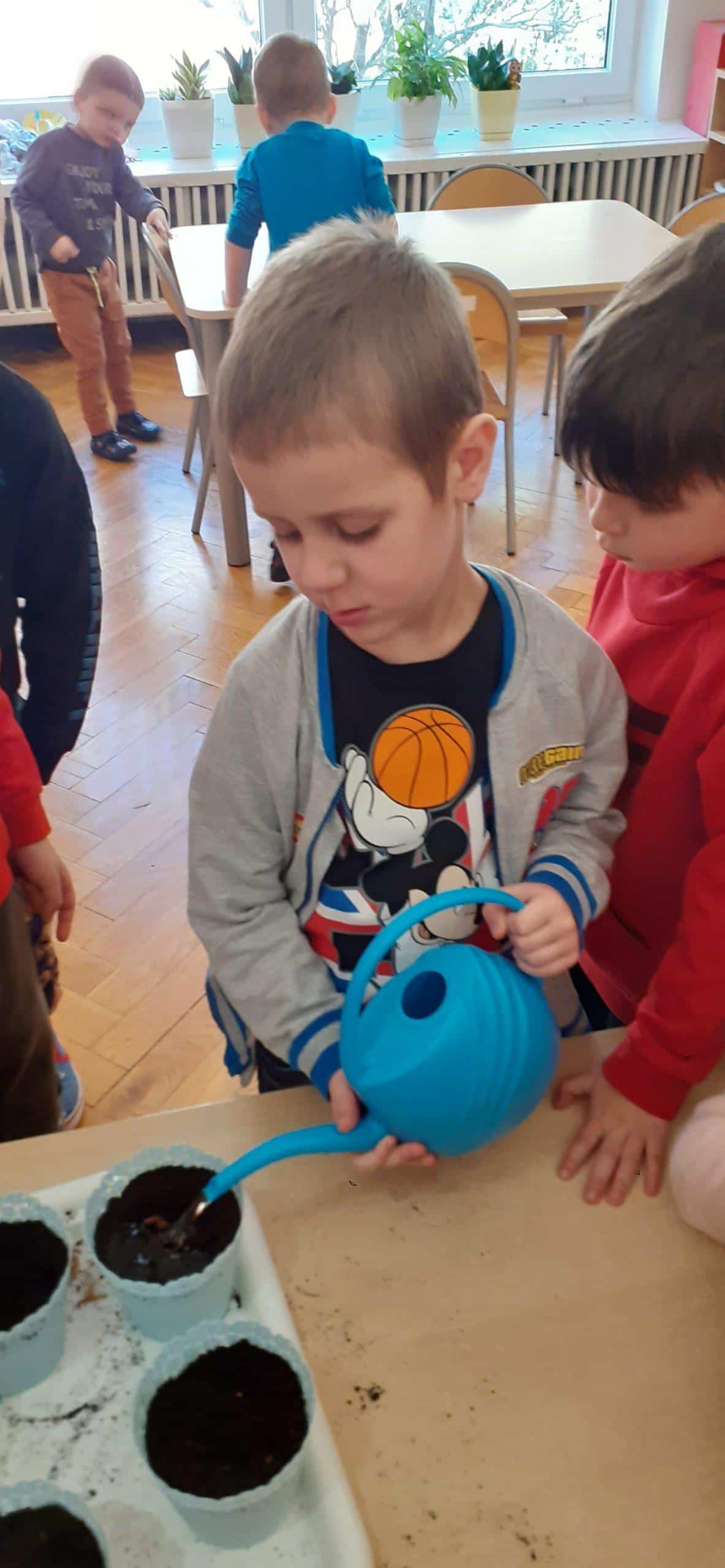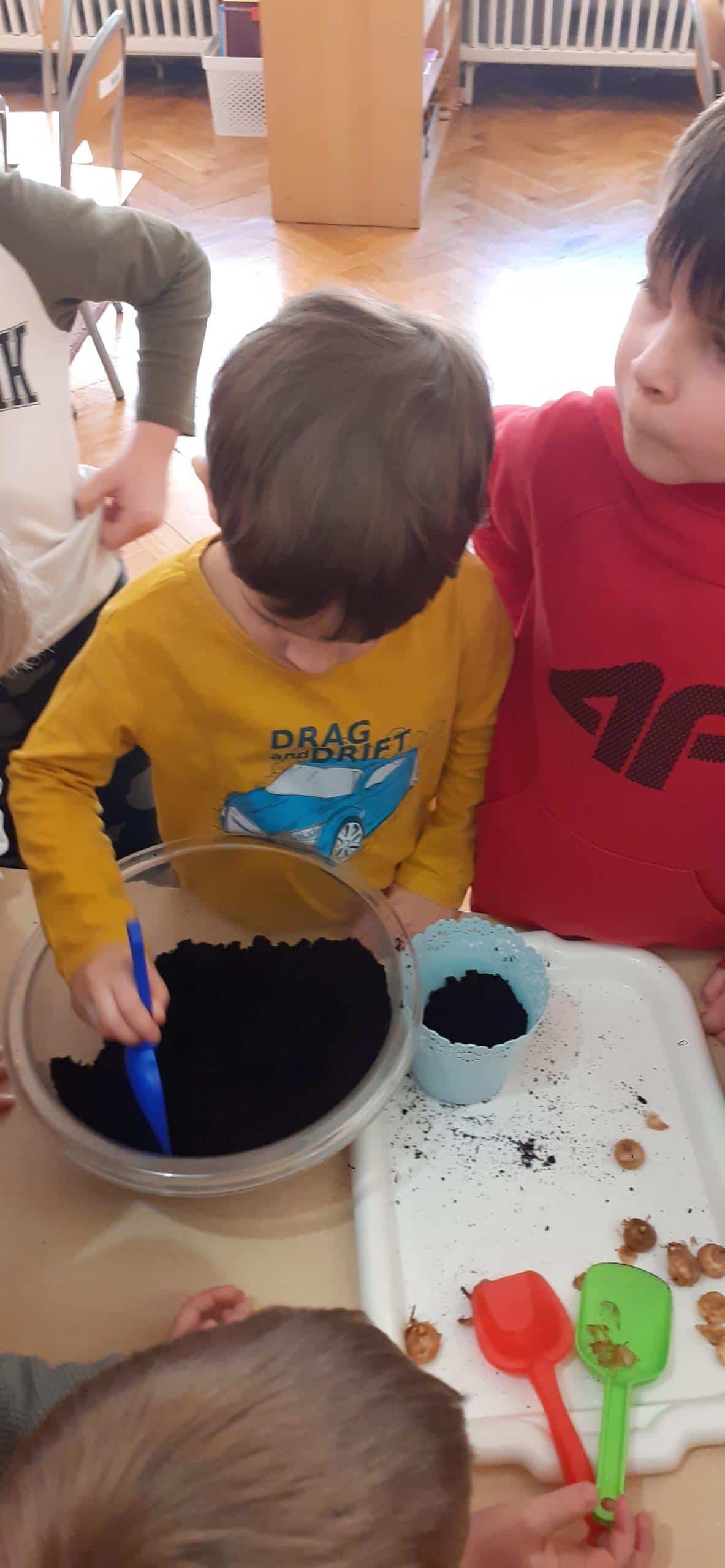 Lekcję o kwiatach cebulowych dzieci mają już za sobą . Odbyła się ona jeszcze jesienią, na terenie przyrodniczej ścieżki edukacyjnej, kiedy to dzieci dowiedziały się , że aby wiosną w ogródku pojawiły się tulipany, szafirki , krokusy, hiacynty , to trzeba jeszcze w czasie jesieni zasadzić je do ziemi. I tak zrobiliśmy , teraz niecierpliwie czekamy na efekty. W tym tygodniu postanowiliśmy założyć hodowlę kwiatów cebulowych w sali zajęć, aby zrobiło się w niej tak wiosennie. Wybór padł na krokusy. Zgromadziliśmy potrzebne rzeczy, obejrzeliśmy cebulki kwiatowe, zasadziliśmy, podlaliśmy , ustawiliśmy na parapecie i teraz tylko czekamy, aż pojawią się piękne kwiaty. Teraz będziemy obserwować proces wzrostu.