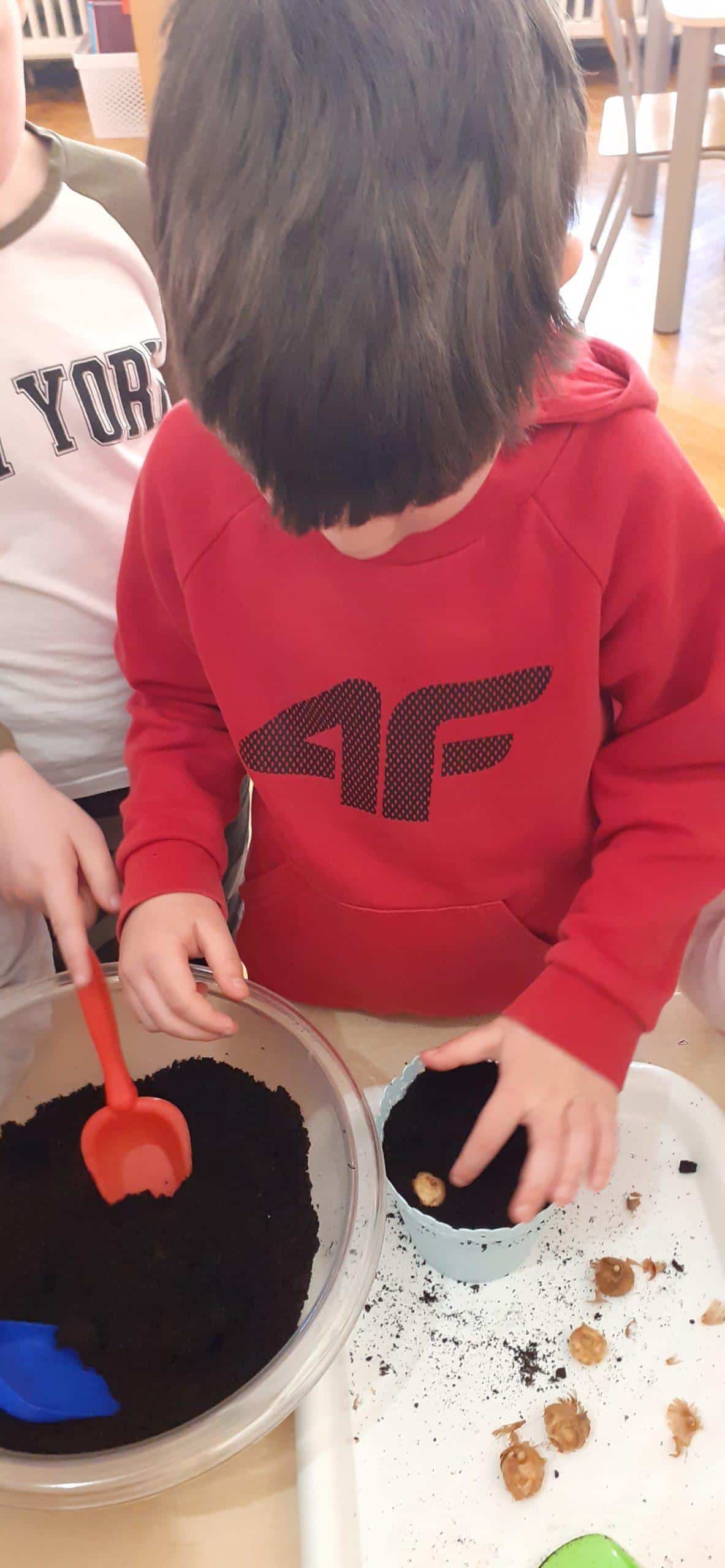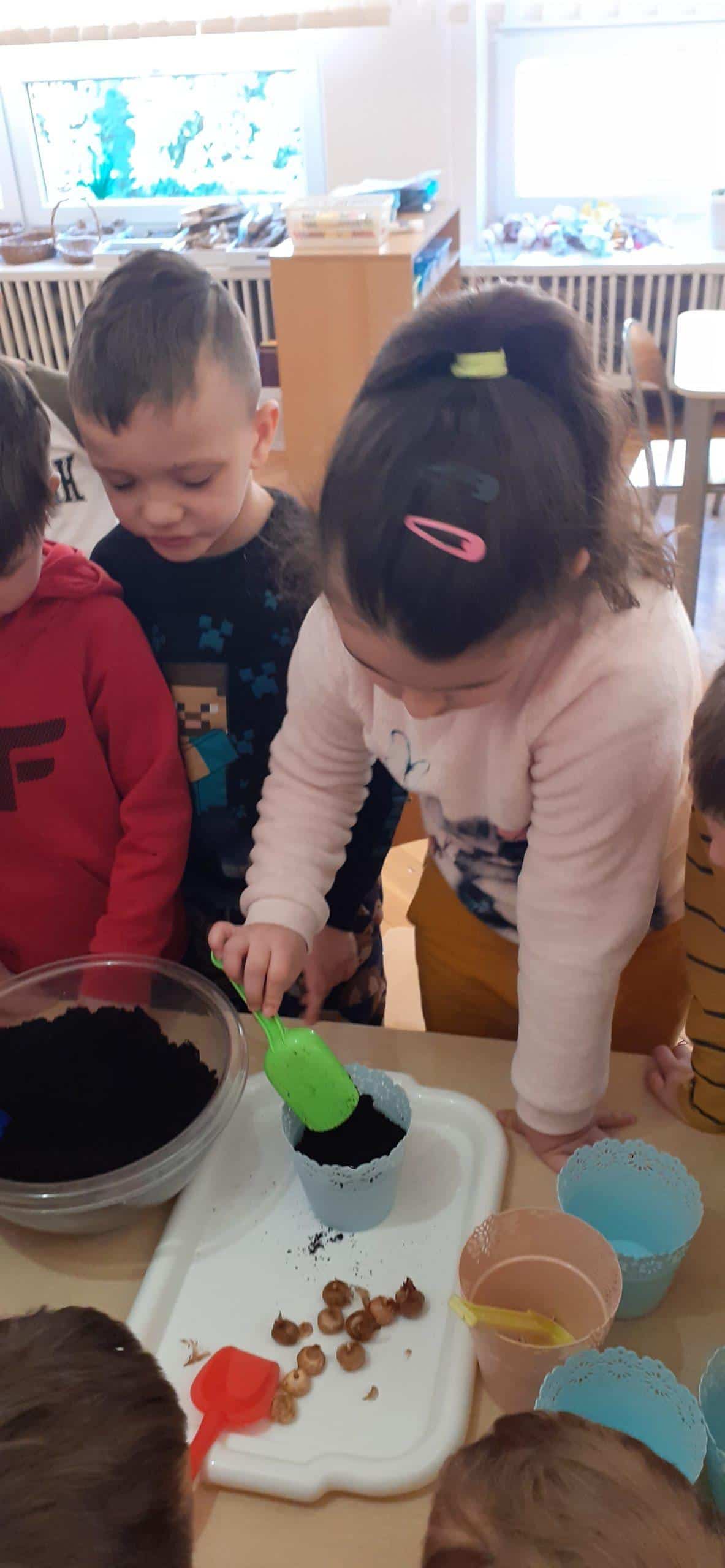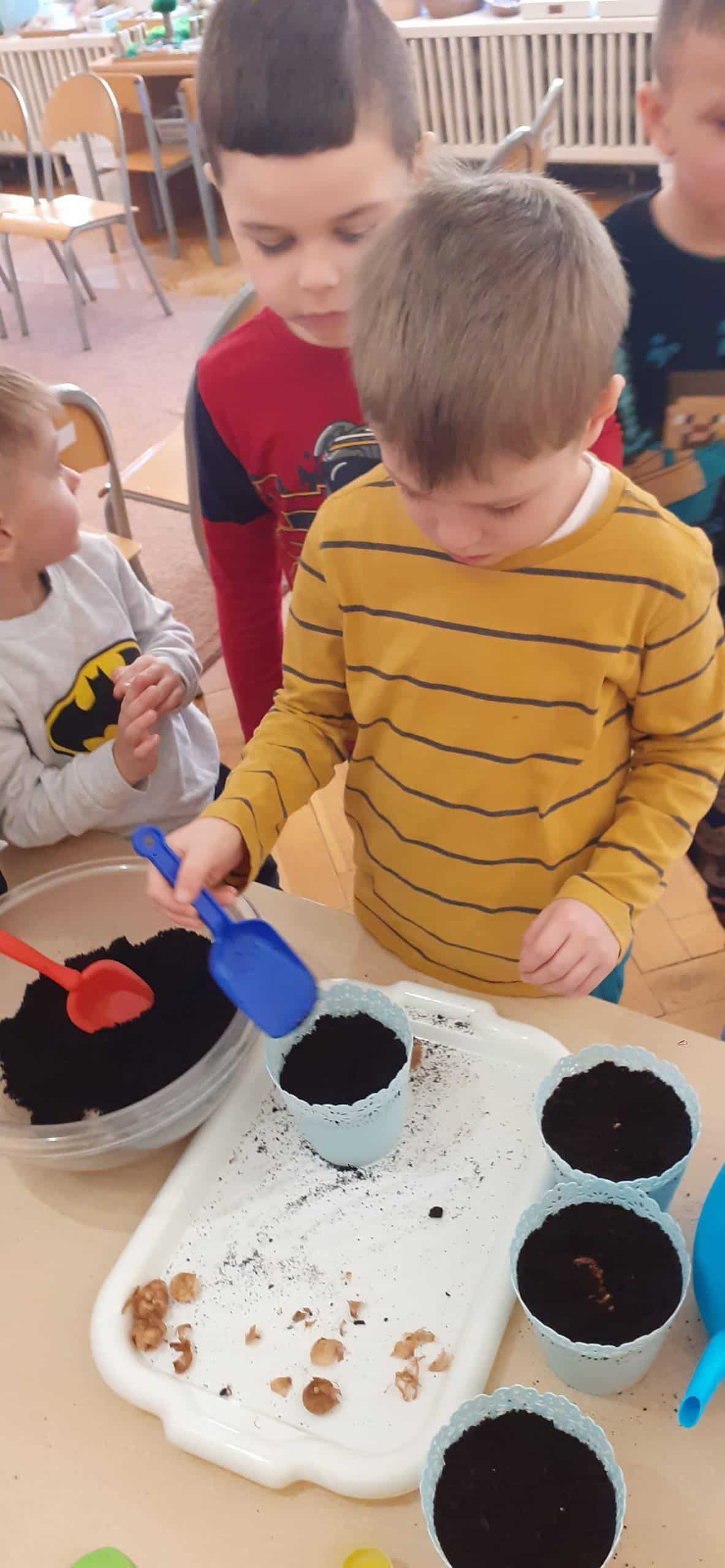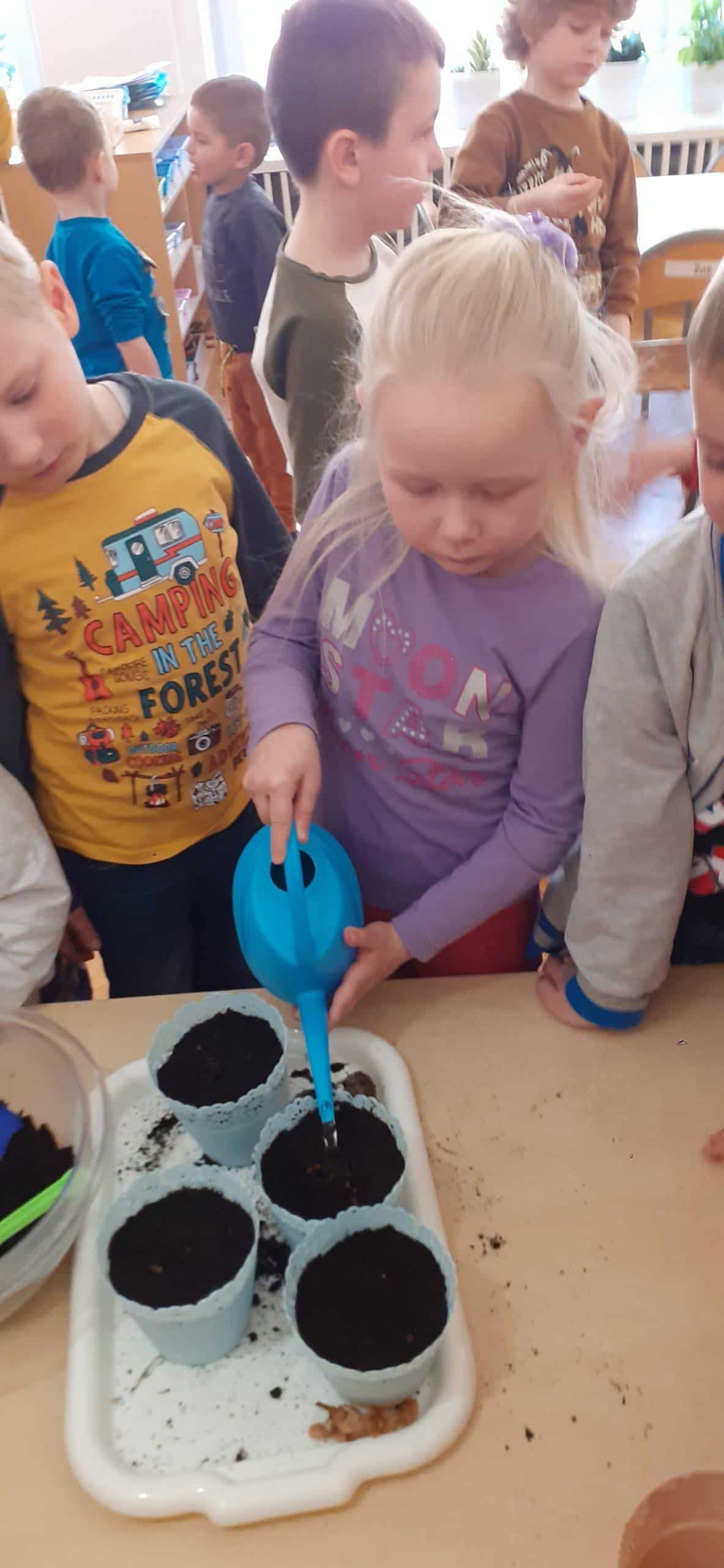Lekcję o kwiatach cebulowych dzieci mają już za sobą . Odbyła się ona jeszcze jesienią, na terenie przyrodniczej ścieżki edukacyjnej, kiedy to dzieci dowiedziały się , że aby wiosną w ogródku pojawiły się tulipany, szafirki , krokusy, hiacynty , to trzeba jeszcze w czasie jesieni zasadzić je do ziemi. I tak zrobiliśmy , teraz niecierpliwie czekamy na efekty. W tym tygodniu postanowiliśmy założyć hodowlę kwiatów cebulowych w sali zajęć, aby zrobiło się w niej tak wiosennie. Wybór padł na krokusy. Zgromadziliśmy potrzebne rzeczy, obejrzeliśmy cebulki kwiatowe, zasadziliśmy, podlaliśmy , ustawiliśmy na parapecie i teraz tylko czekamy, aż pojawią się piękne kwiaty. Teraz będziemy obserwować proces wzrostu.