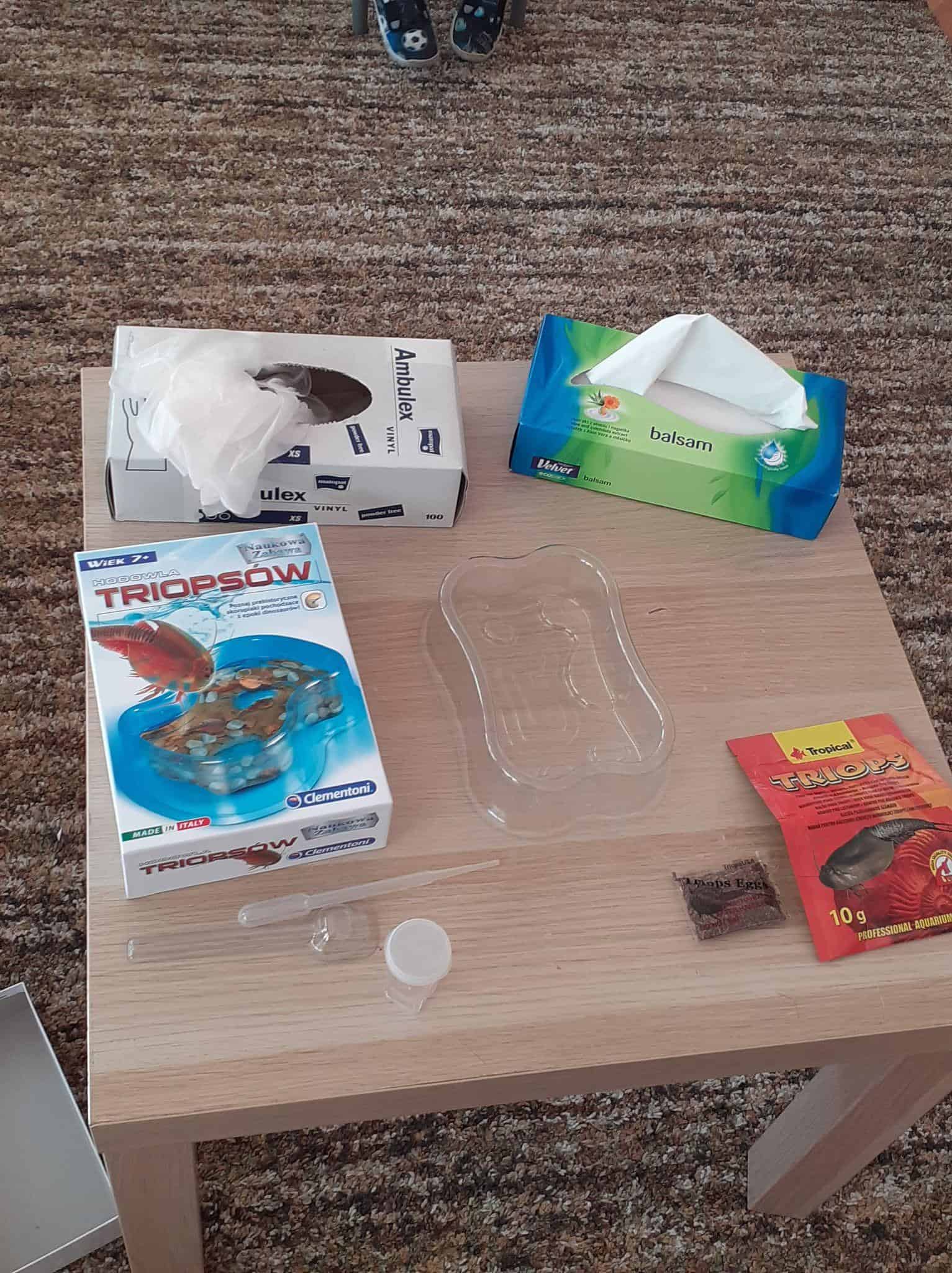 Nie tak dawno bardzo dużo rozmawialiśmy na temat dinozaurów, ich życia i warunków bytowania, dlatego zestaw ten stał się dla nas doskonałym uzupełnieniem i rozszerzeniem tych treści, bo te małe stworzonka, zwane Triopsami, to gatunek skorupiaków, który pojawił się właśnie w epoce dinozaurów. W niezmiennej formie przetrwał ponad 200 milionów lat!