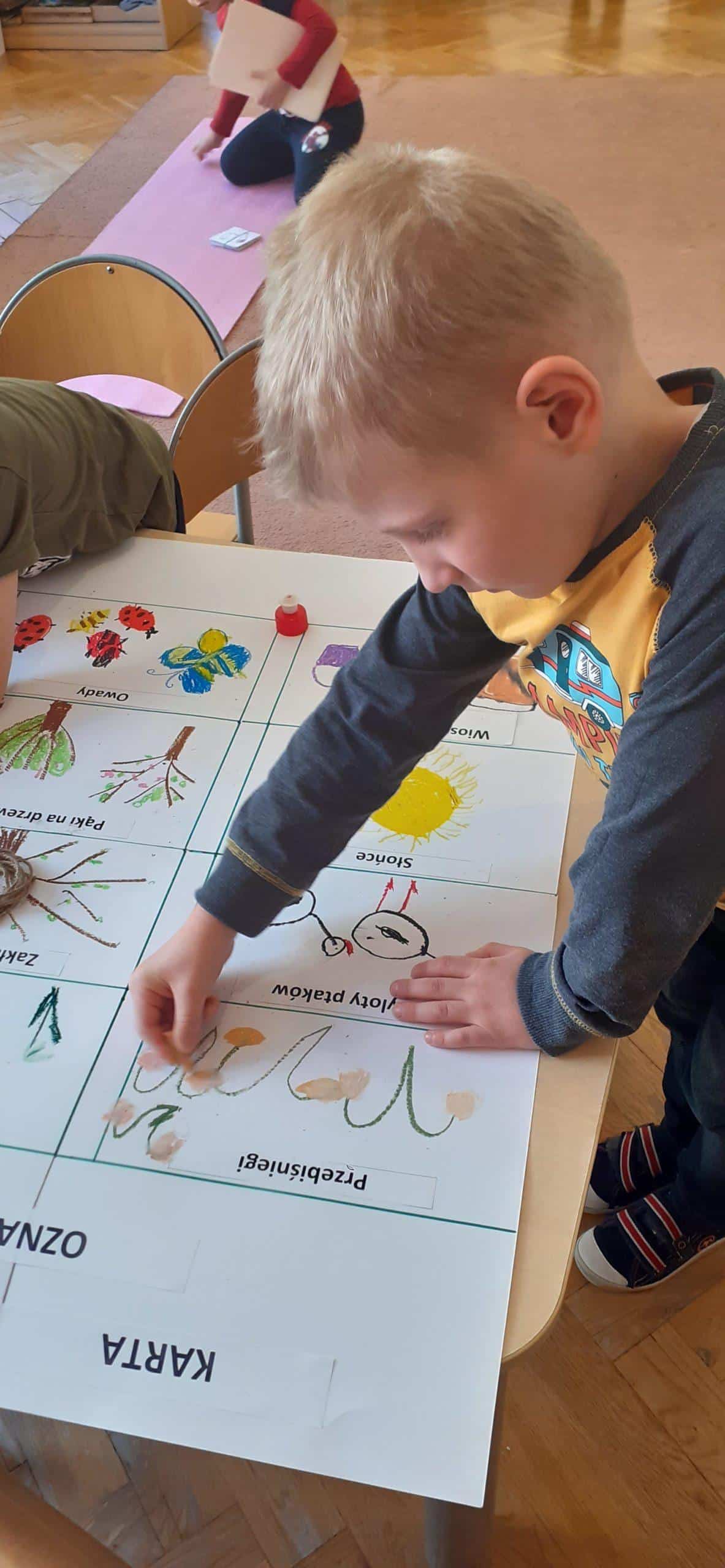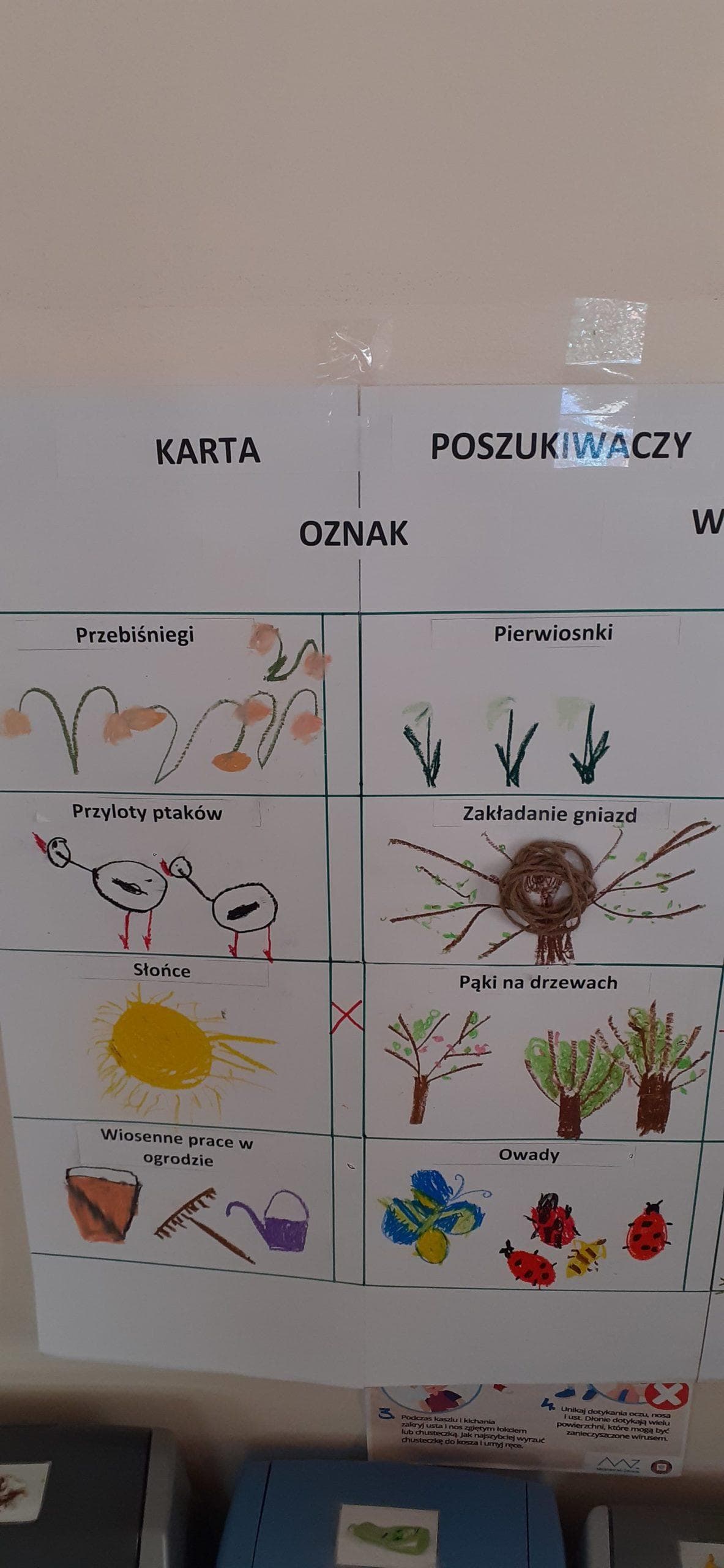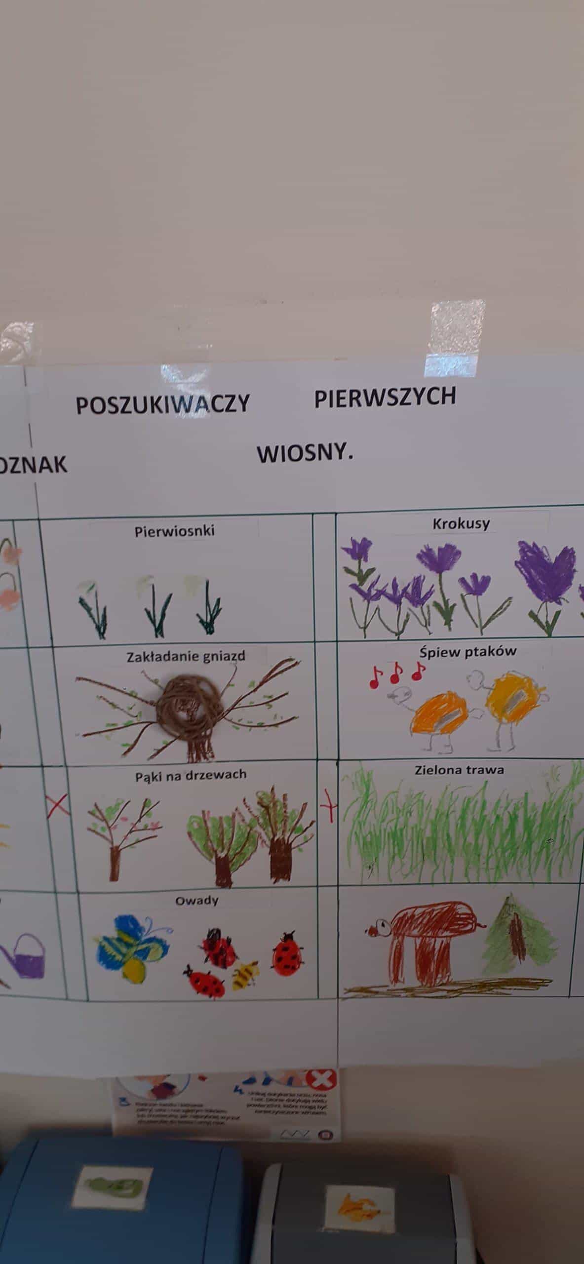 Za przedwiośnie przyjmuje się okres roku na styku zimy i wiosny. Teraz nam właśnie towarzyszy, więc tradycyjnie przyszedł czas na poszukiwanie pierwszych symptomów wiosny. Ale zanim to nastąpiło dzieci wykonały planszę , którą nazwaliśmy „Kartą poszukiwaczy pierwszych oznak wiosny”. Karta ta posłuży nam do zaznaczania zaobserwowanych symptomów wiosny np : słońce, zielona trwa, powroty ptaków, zakładanie gniazd, śpiew ptaków , pierwsze wiosenne kwiaty, pąki na drzewach . Służyć temu będą spacery połączone z obserwacją otoczenia przyrodniczego i wyszukiwaniu zamian związanych z wiosną. Każdy zaobserwowany symptom wiosny zostanie zaznaczony na planszy. Stąd dziś pobyt dzieci na terenie edukacyjnej ścieżki edukacyjnej i poszukiwanie oznak wiosny .Udało się , to co dzieci zaobserwowały uwidoczniły na zdjęciach , a po powrocie zaznaczyły na planszy.