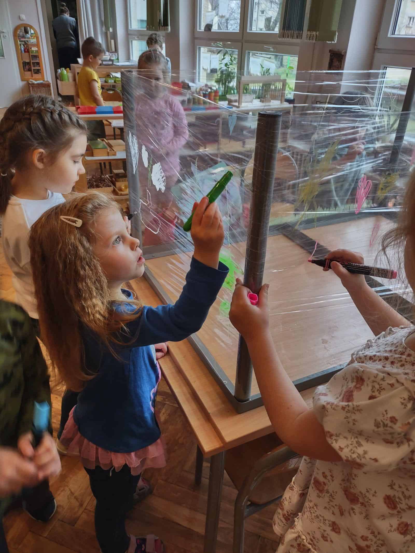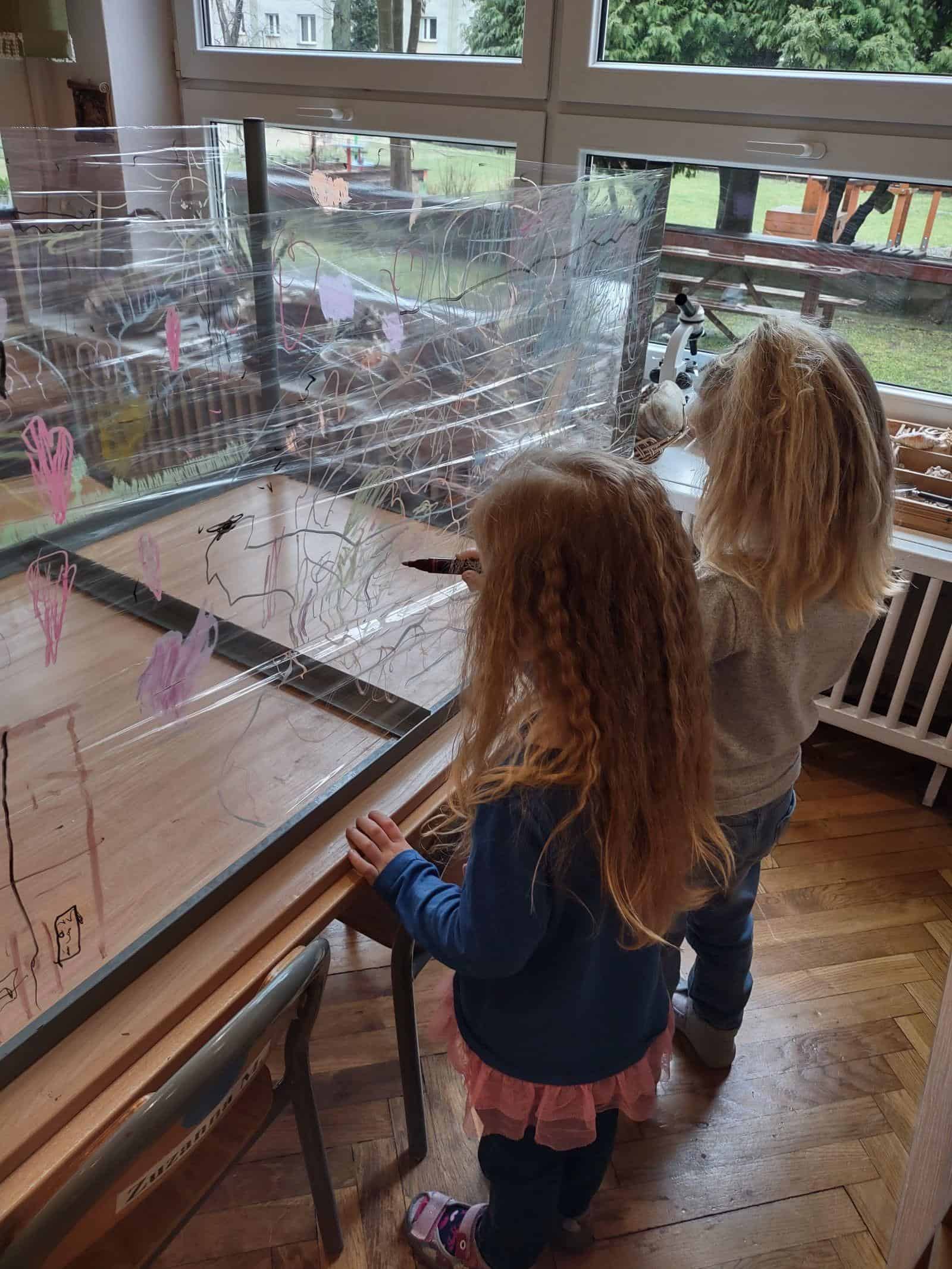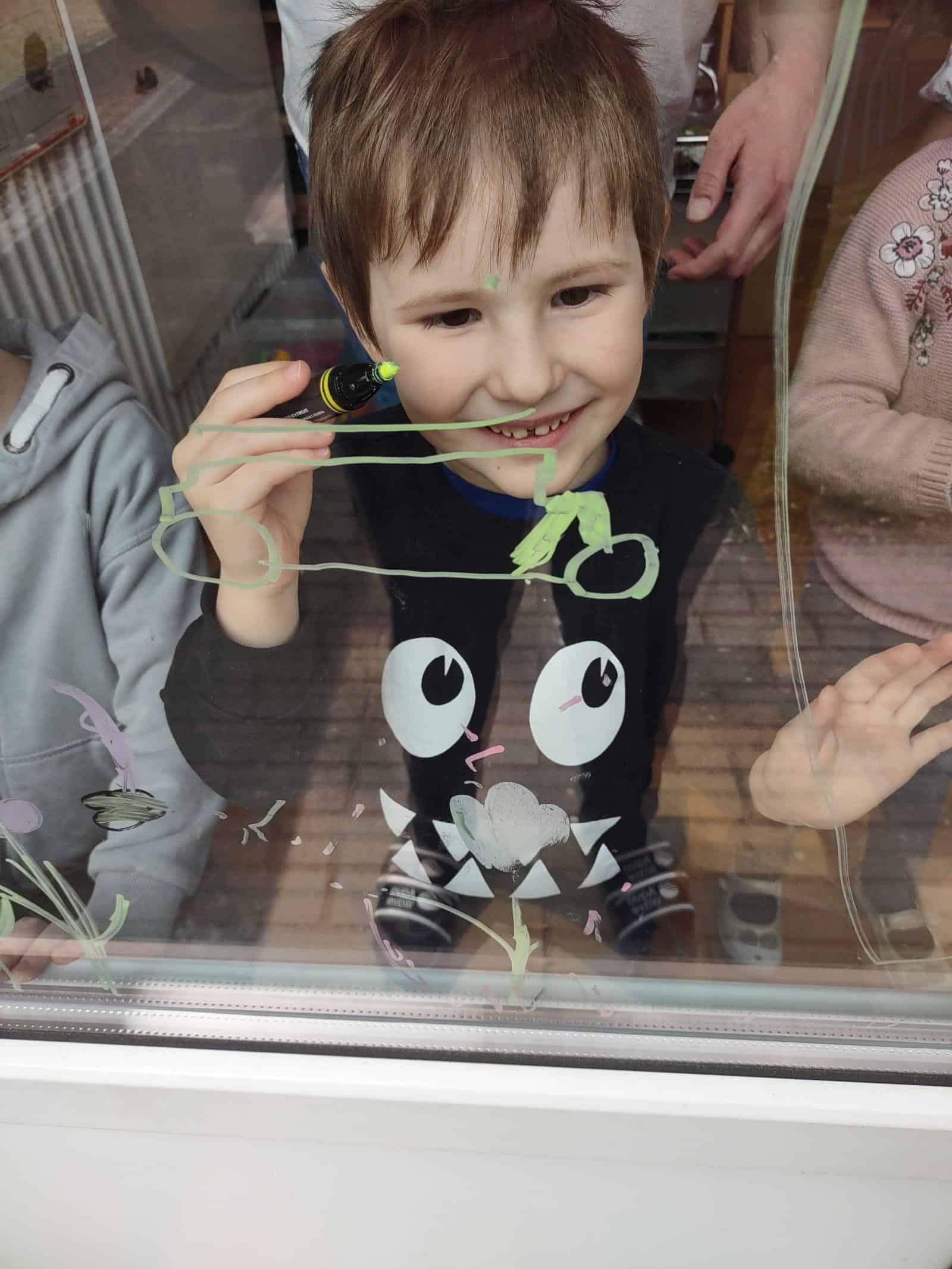 My w tym tygodniu skupiliśmy się na malowaniu na szkle i na folii spożywczej (przestrzennie i płasko). Nie zabrakło też codziennej, „zwykłej” twórczości plastycznej z użyciem kartek, mazaków, farb, pasteli. Było projektowanie tras oraz swobodna twórczość dzieci. Oto galeria naszego minionego tygodnia 🙂
