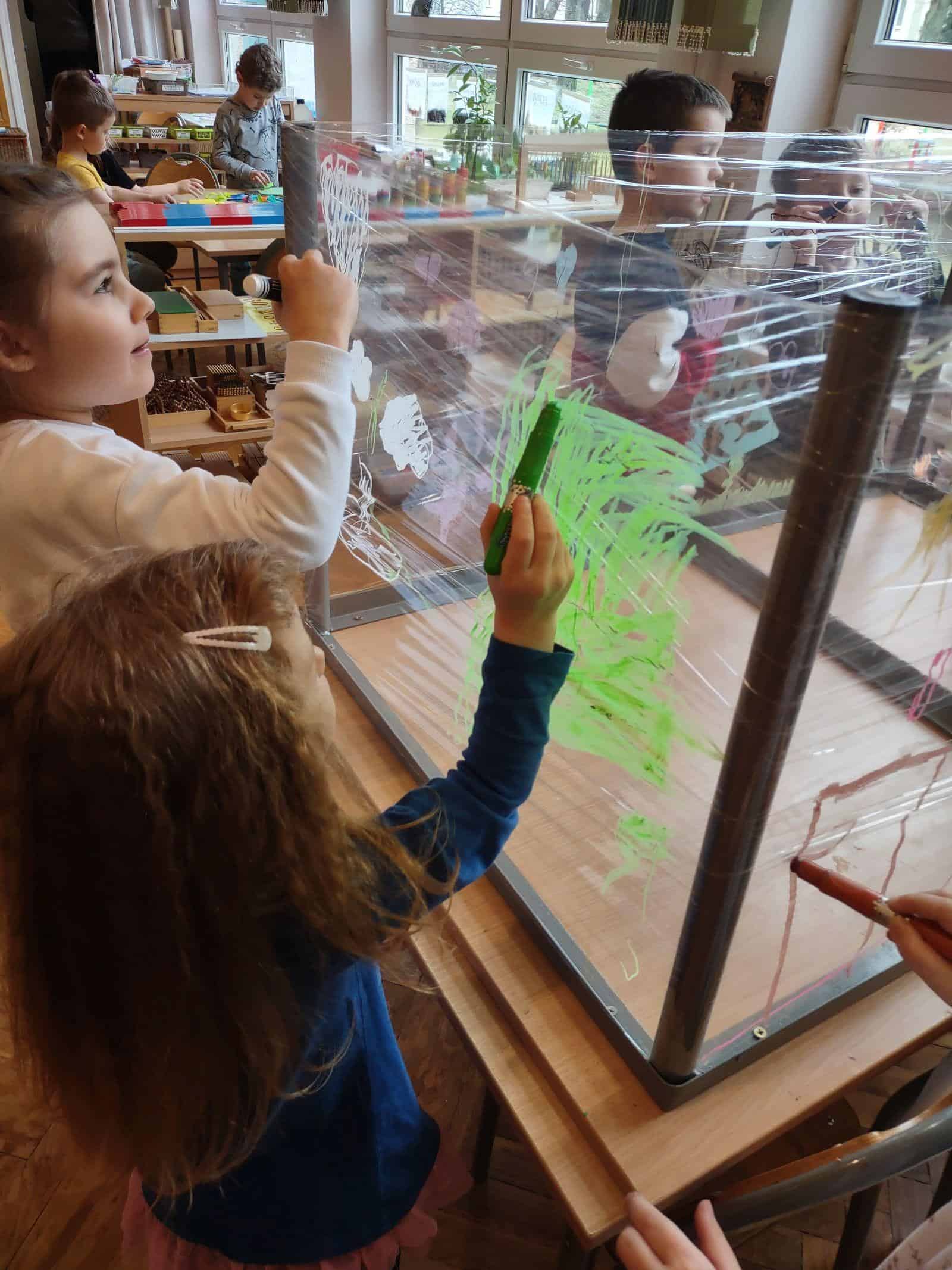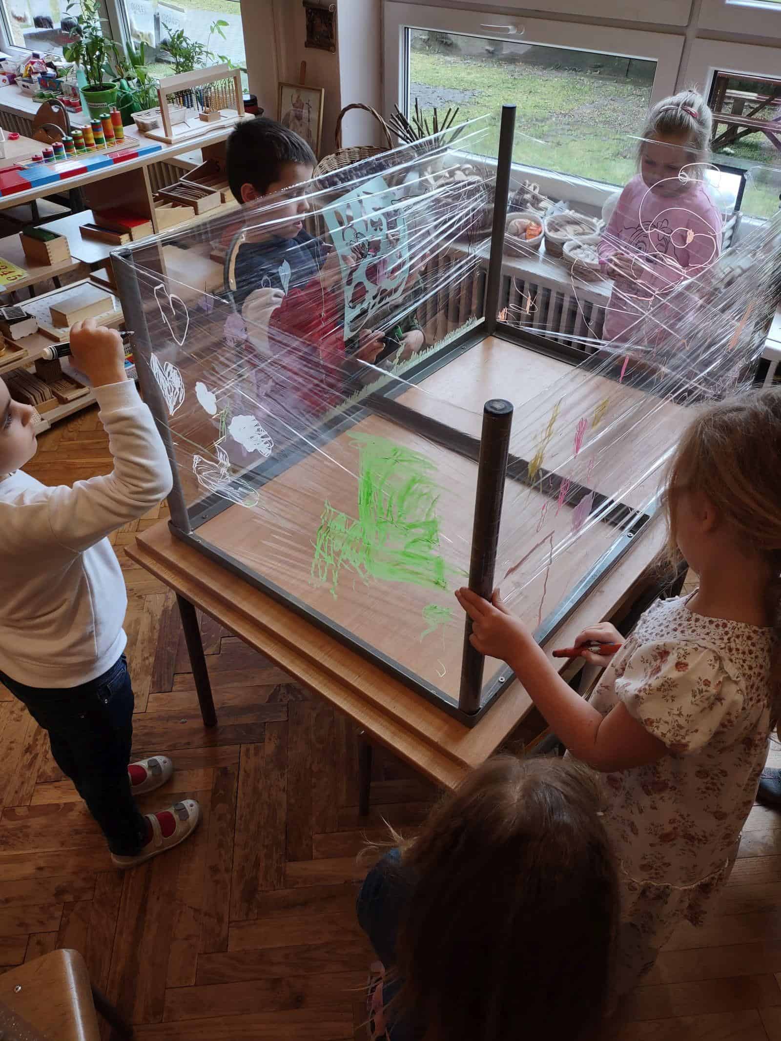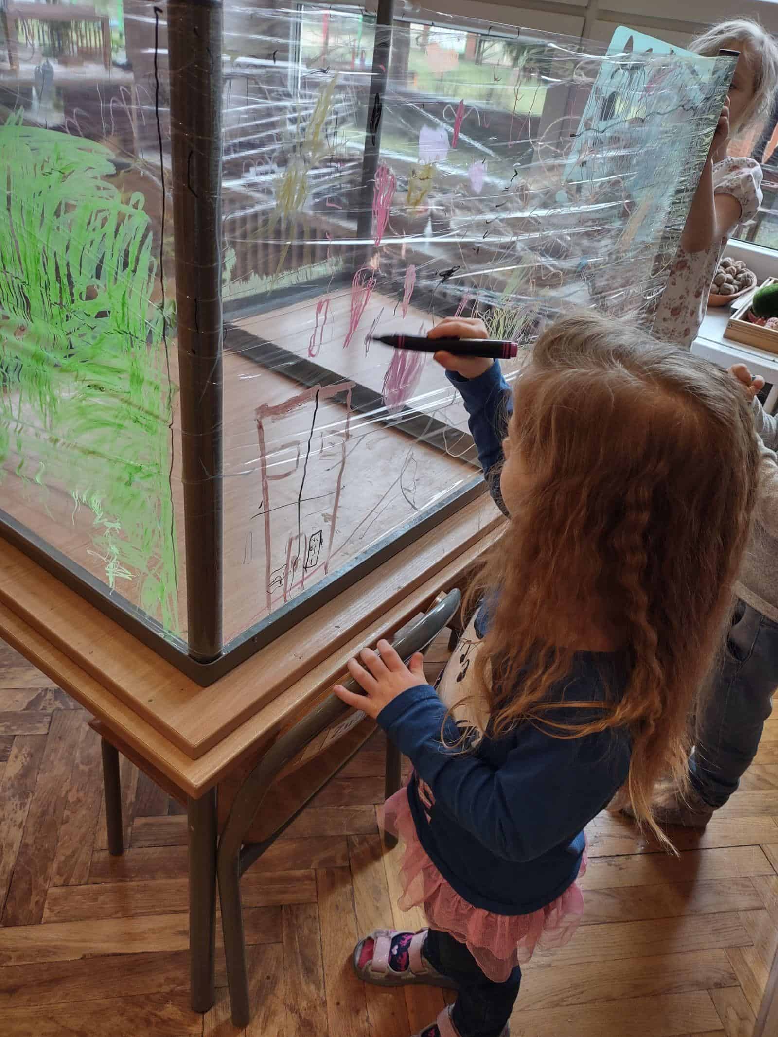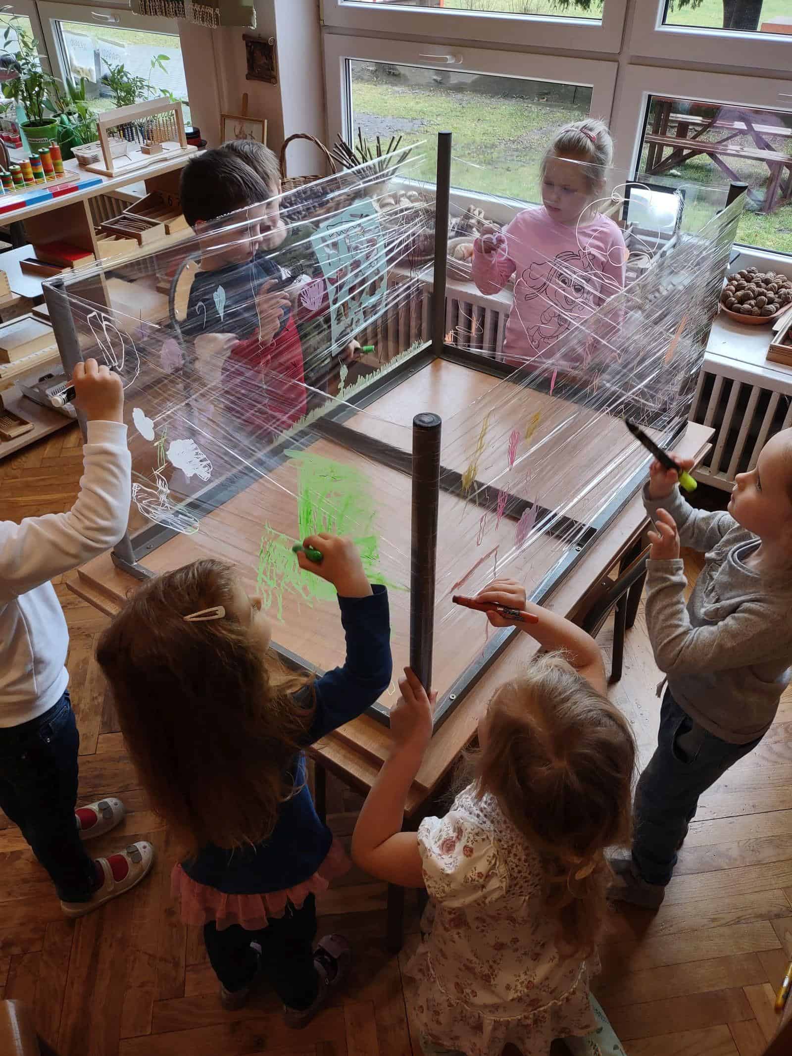 My w tym tygodniu skupiliśmy się na malowaniu na szkle i na folii spożywczej (przestrzennie i płasko). Nie zabrakło też codziennej, „zwykłej” twórczości plastycznej z użyciem kartek, mazaków, farb, pasteli. Było projektowanie tras oraz swobodna twórczość dzieci. Oto galeria naszego minionego tygodnia 🙂