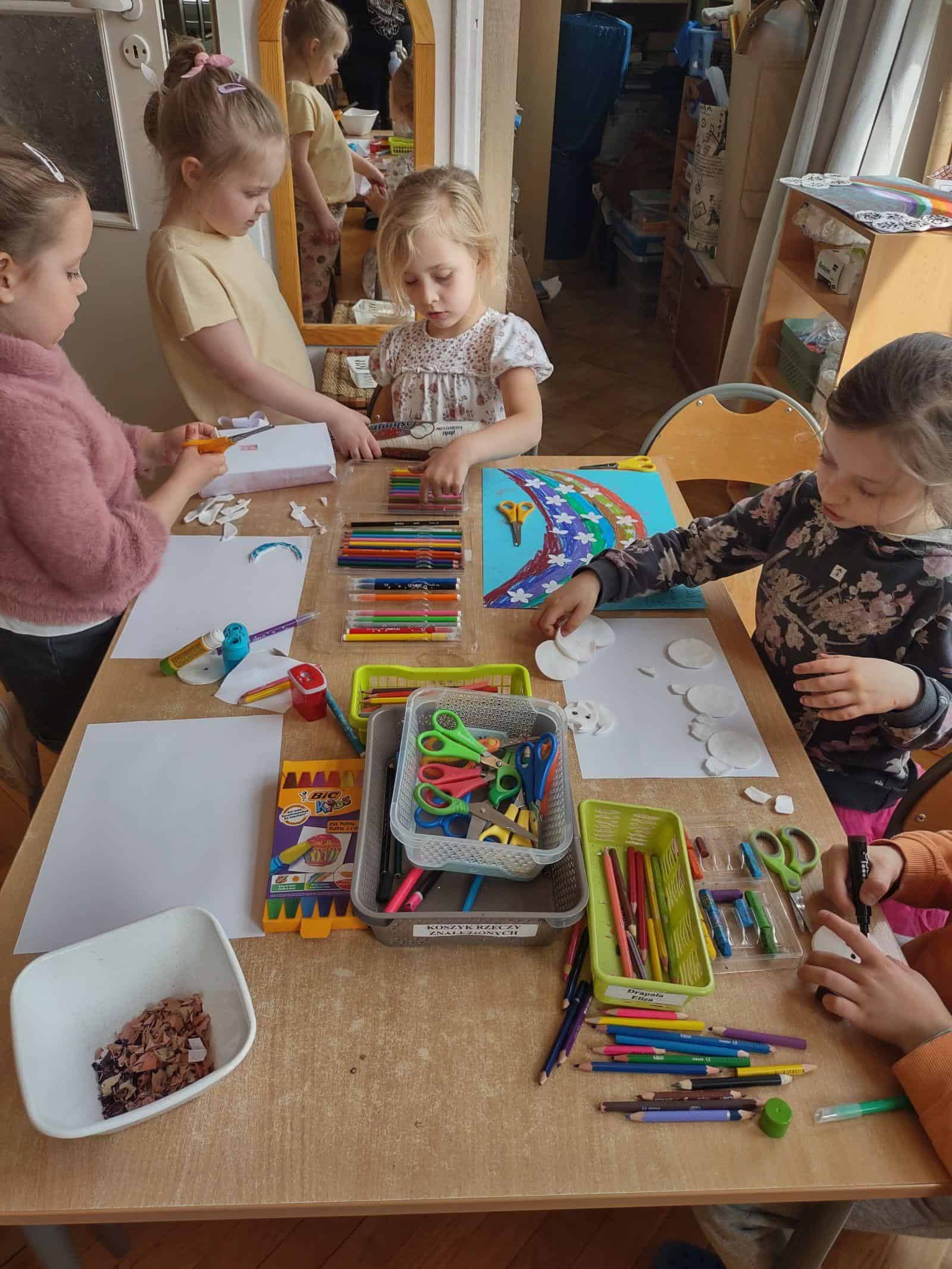 Twórczość plastyczna dziecka będzie bogatsza, jeśli będzie ono miało możliwość eksperymentowania z rożnymi technikami plastycznymi oraz z różnorodnymi narzędziami do tego typu działań. Dziecko tworząc odwołuje się do swoich spostrzeżeń, wyraża swoje osądy, uczy się niezależności myślenia. Istotne jest, aby działalność artystyczna dziecka miała związek z percepcją otaczającego świata. A gdzie lepiej i najpełniej dziecko działa plastycznie jeżeli nie w przedszkolu 🙂