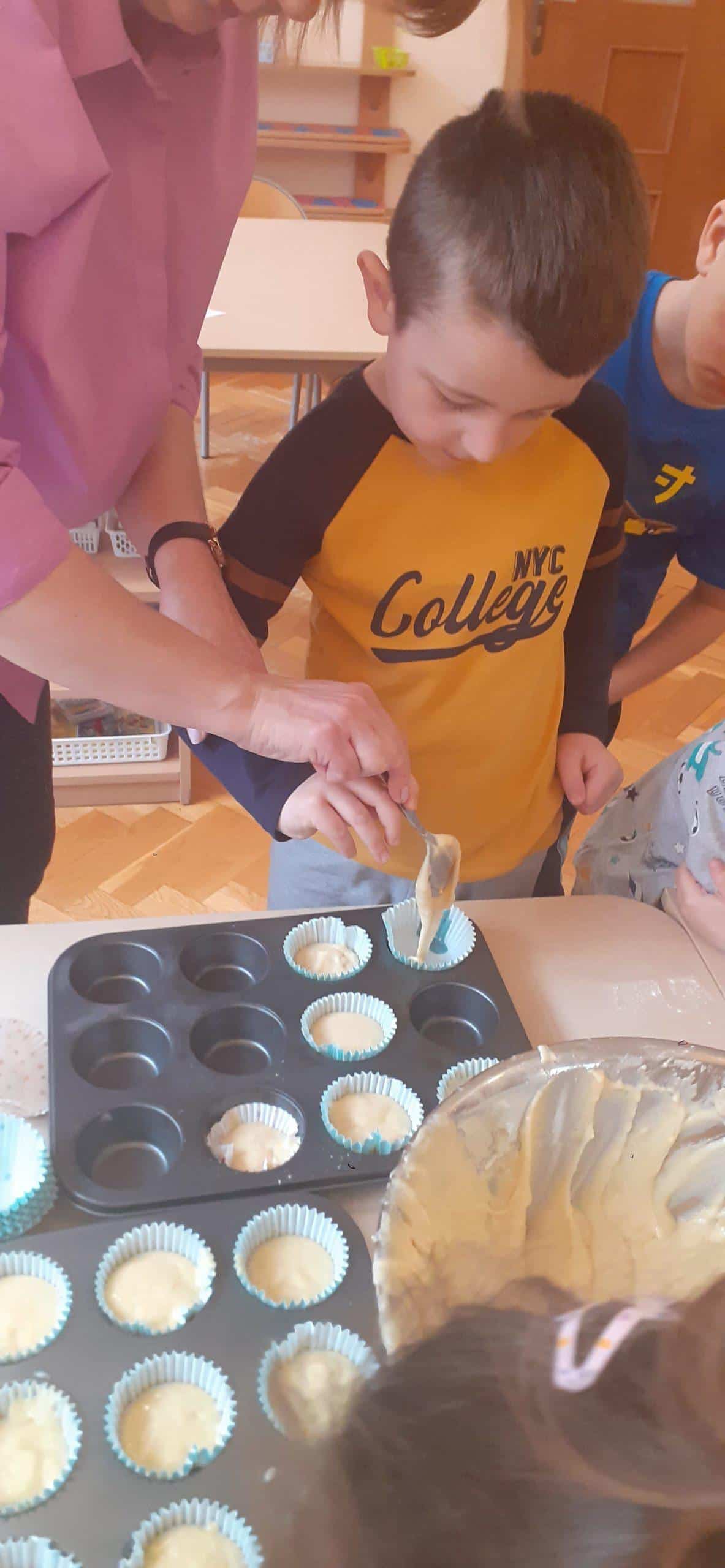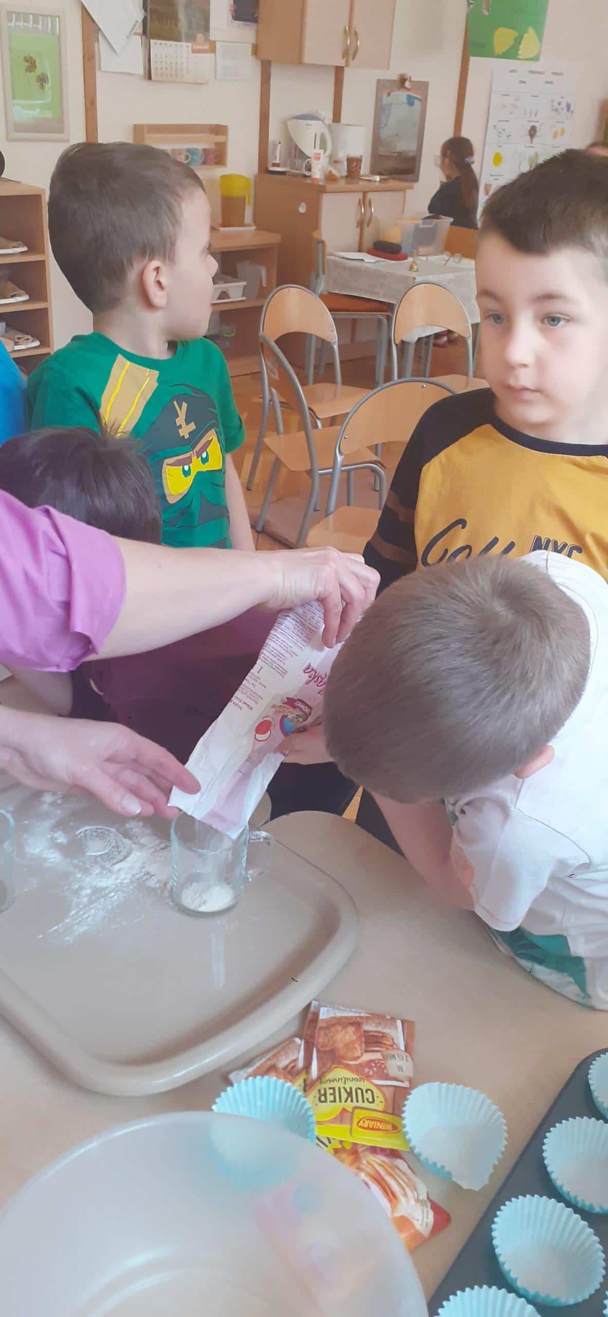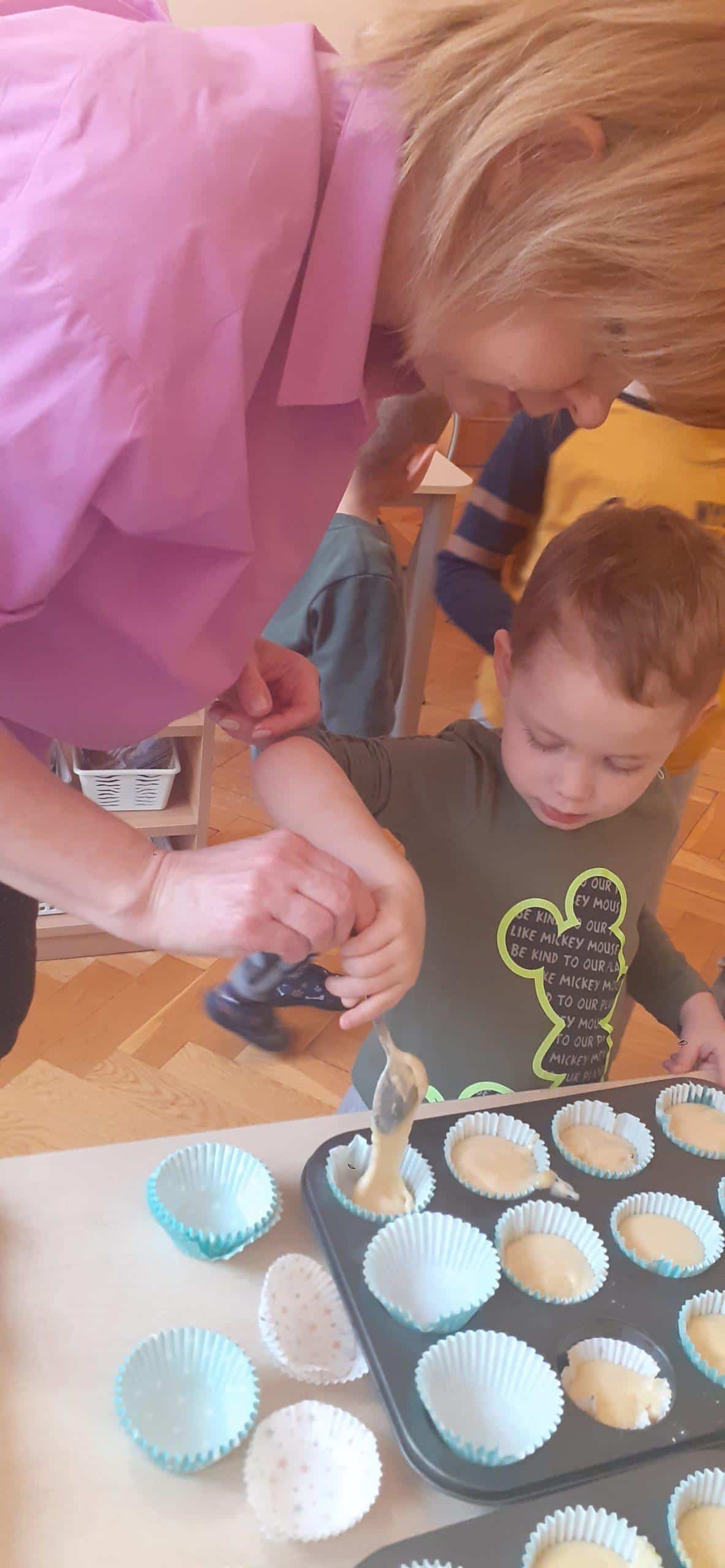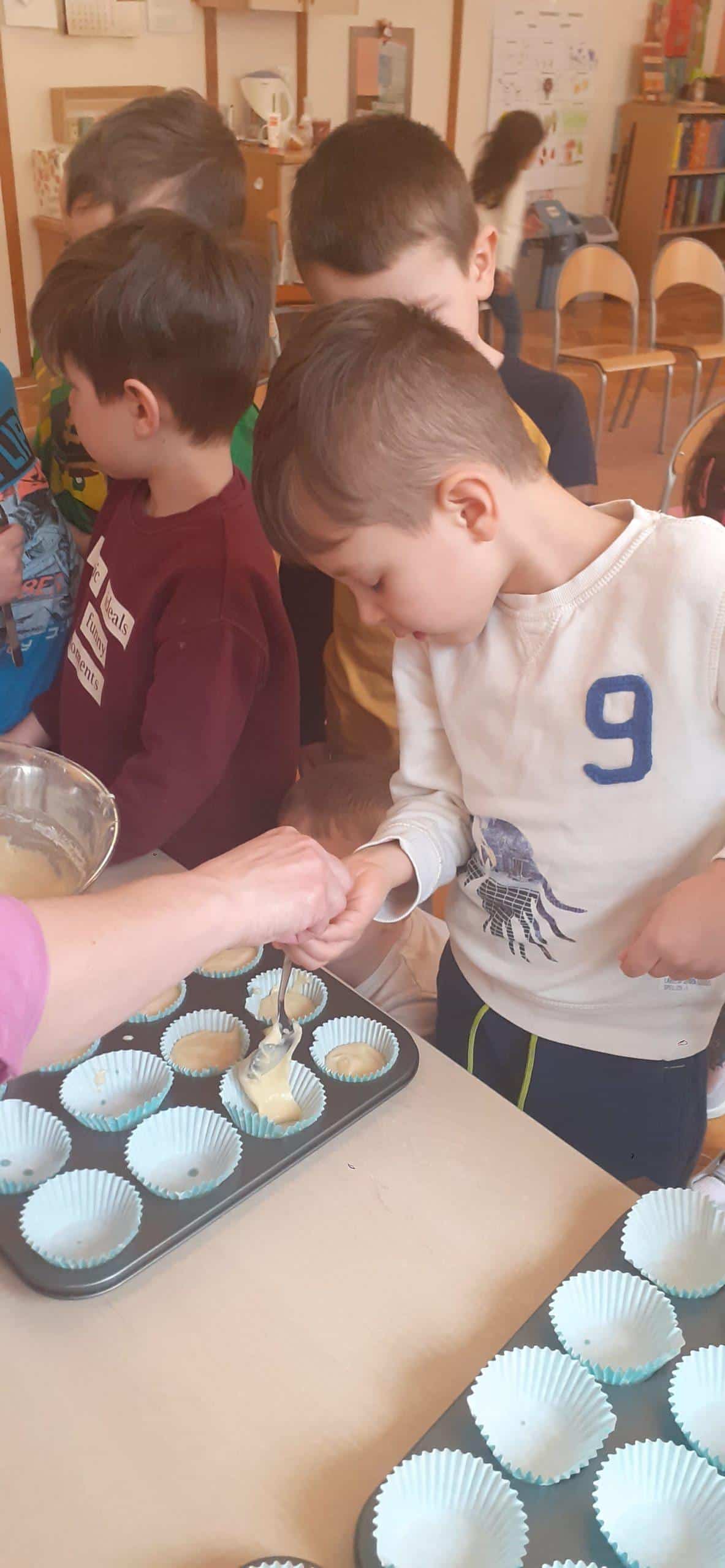 Babeczki wielkanocne to tradycja. W każdym koszyczku wielkanocnym takiej babeczki nie powinno zabraknąć. Baba wielkanocna ta najbardziej rozpoznawany symbol Wielkanocy. Tradycja wypiekania tych bab sięga XV wieku. To najstarszy wypiek sporządzany w Polsce. Zwyczaj ten przywędrował do nas z Litwy i Białorusi. Baba wielkanocna jest symbolem dostatku i umiejętności kucharskich, wypiekano je ze szczególną starannością, aby były jak najbardziej dorodne. Dzieci z grupy Pomarańczowej dzisiaj też wykazały się ogromną starannością. Dokładnie odmierzały wszystkie składniki zawarte w przepisie, dokładnie łączyły składniki suche z mokrymi, z pietyzmem dodawały aromatu pomarańczowego i całą masę mieszały. A potem nakładały do małych foremek. Dobrze, że czas pieczenia nie był zbyt długi , bo niektóre dzieci nie mogły się doczekać, kiedy babeczki się upieką i wystygną. No i wreszcie degustacja -babeczki smakowały wszystkim wyśmienicie.