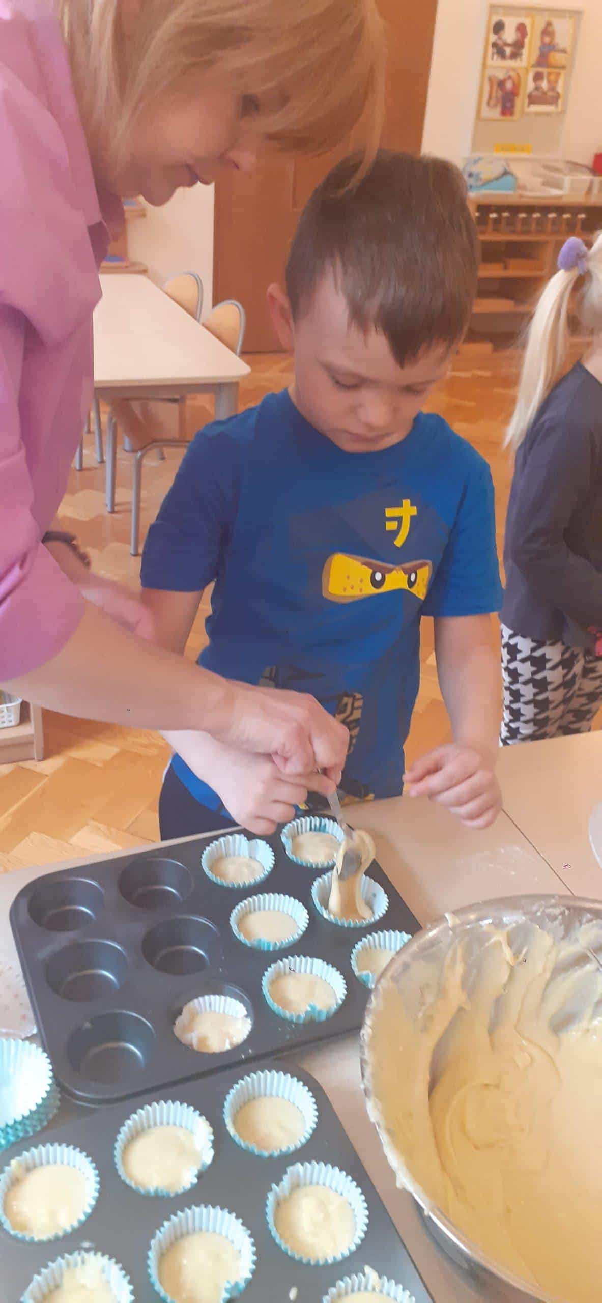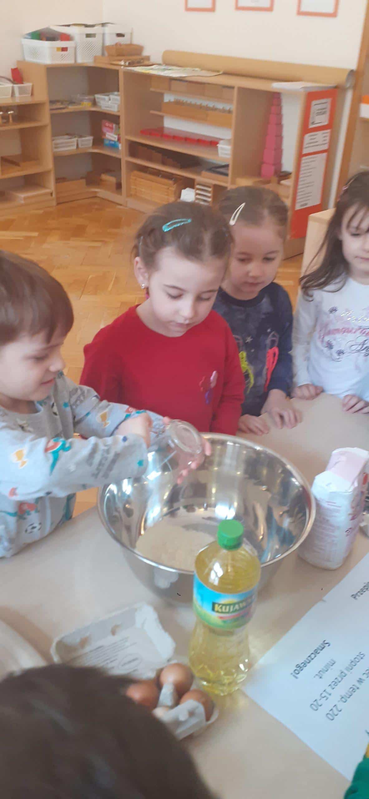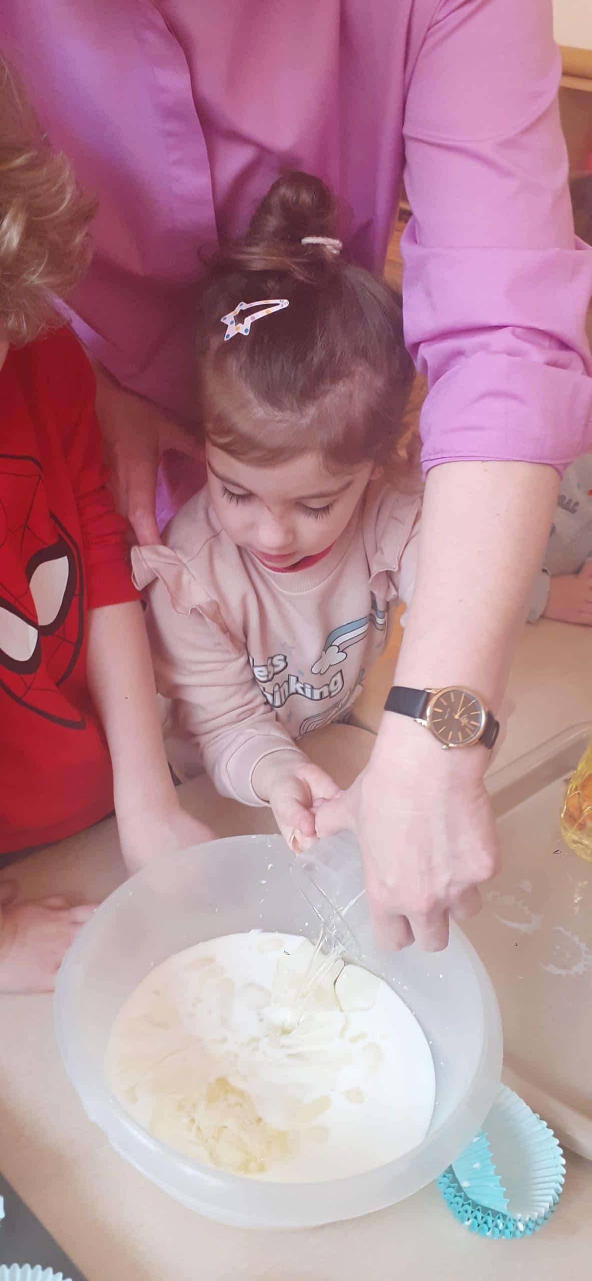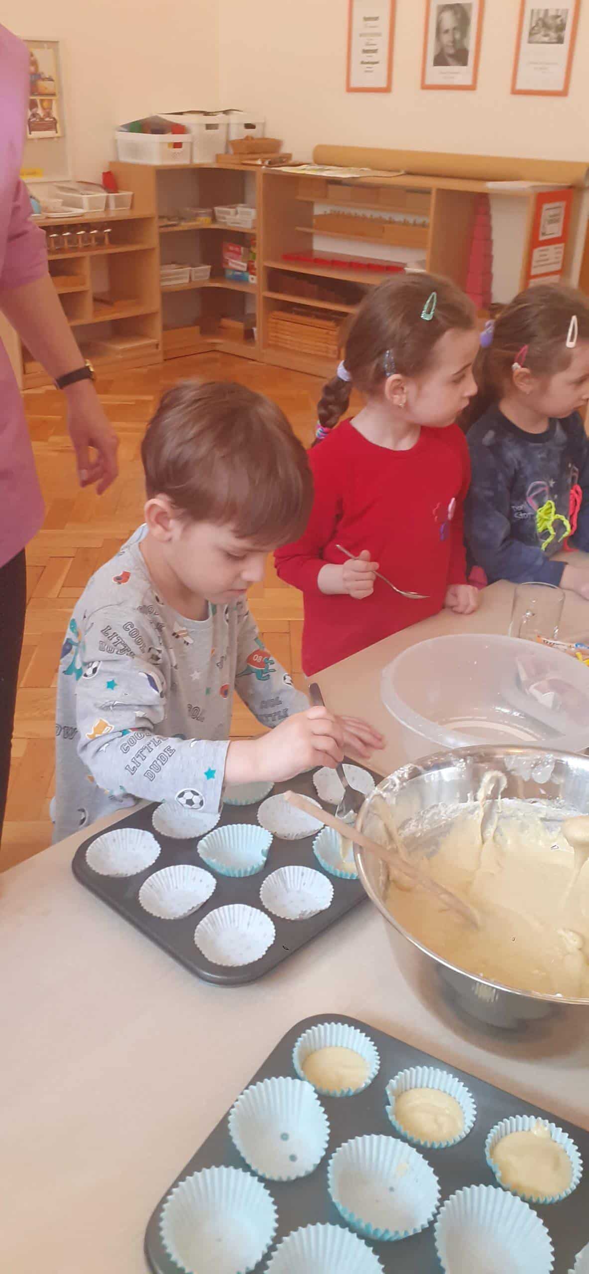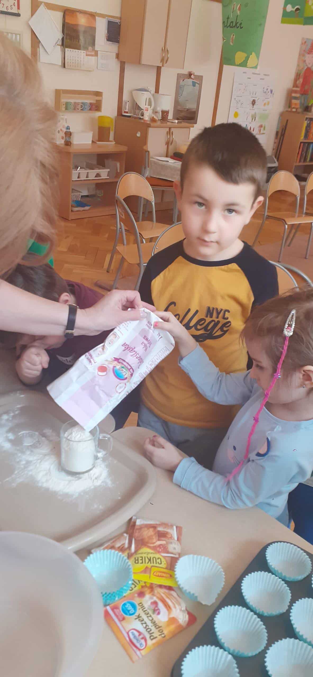 Babeczki wielkanocne to tradycja. W każdym koszyczku wielkanocnym takiej babeczki nie powinno zabraknąć. Baba wielkanocna ta najbardziej rozpoznawany symbol Wielkanocy. Tradycja wypiekania tych bab sięga XV wieku. To najstarszy wypiek sporządzany w Polsce. Zwyczaj ten przywędrował do nas z Litwy i Białorusi. Baba wielkanocna jest symbolem dostatku i umiejętności kucharskich, wypiekano je ze szczególną starannością, aby były jak najbardziej dorodne. Dzieci z grupy Pomarańczowej dzisiaj też wykazały się ogromną starannością. Dokładnie odmierzały wszystkie składniki zawarte w przepisie, dokładnie łączyły składniki suche z mokrymi, z pietyzmem dodawały aromatu pomarańczowego i całą masę mieszały. A potem nakładały do małych foremek. Dobrze, że czas pieczenia nie był zbyt długi , bo niektóre dzieci nie mogły się doczekać, kiedy babeczki się upieką i wystygną. No i wreszcie degustacja -babeczki smakowały wszystkim wyśmienicie.