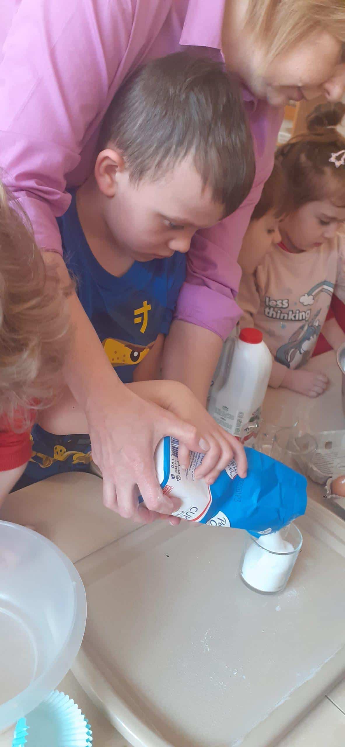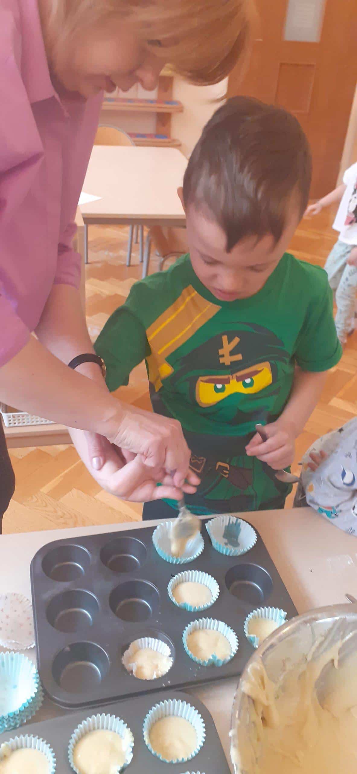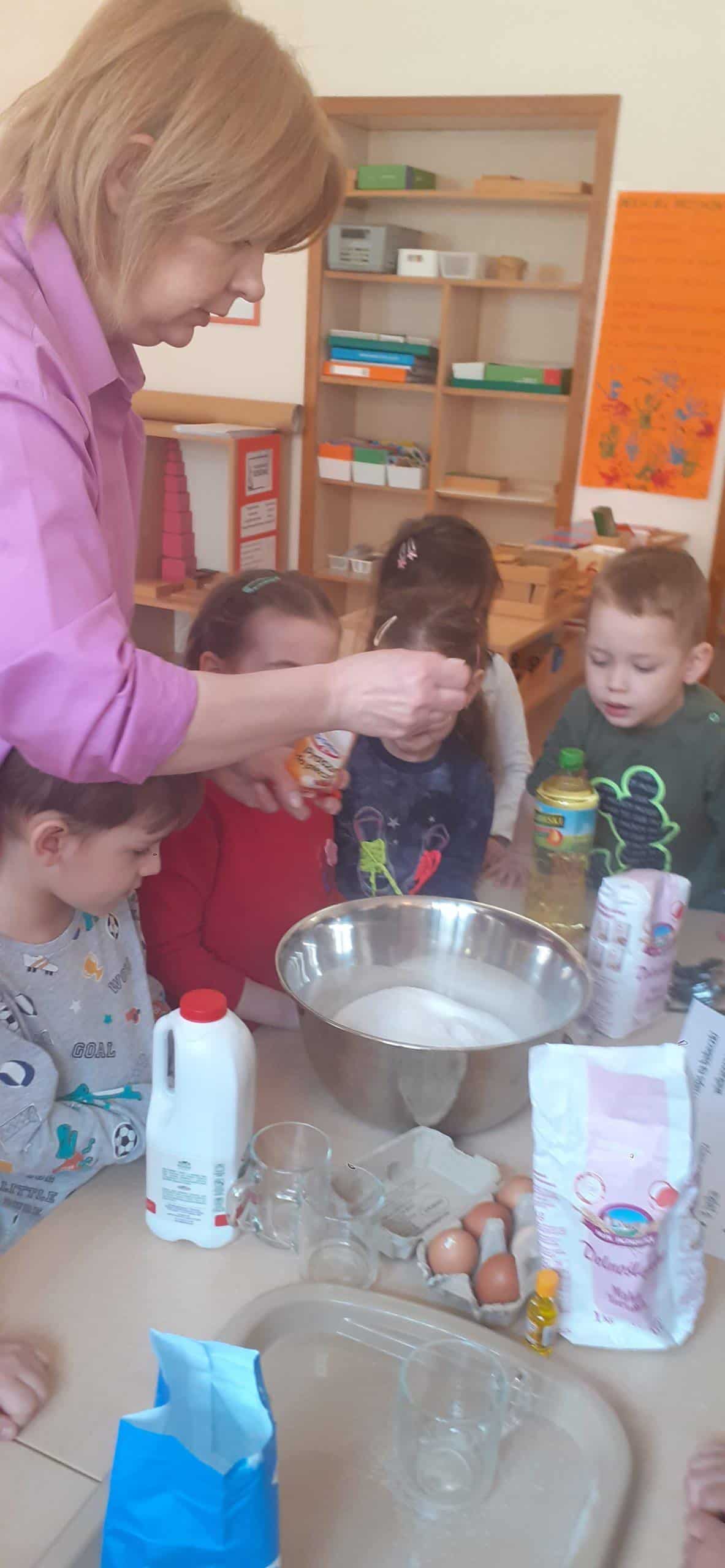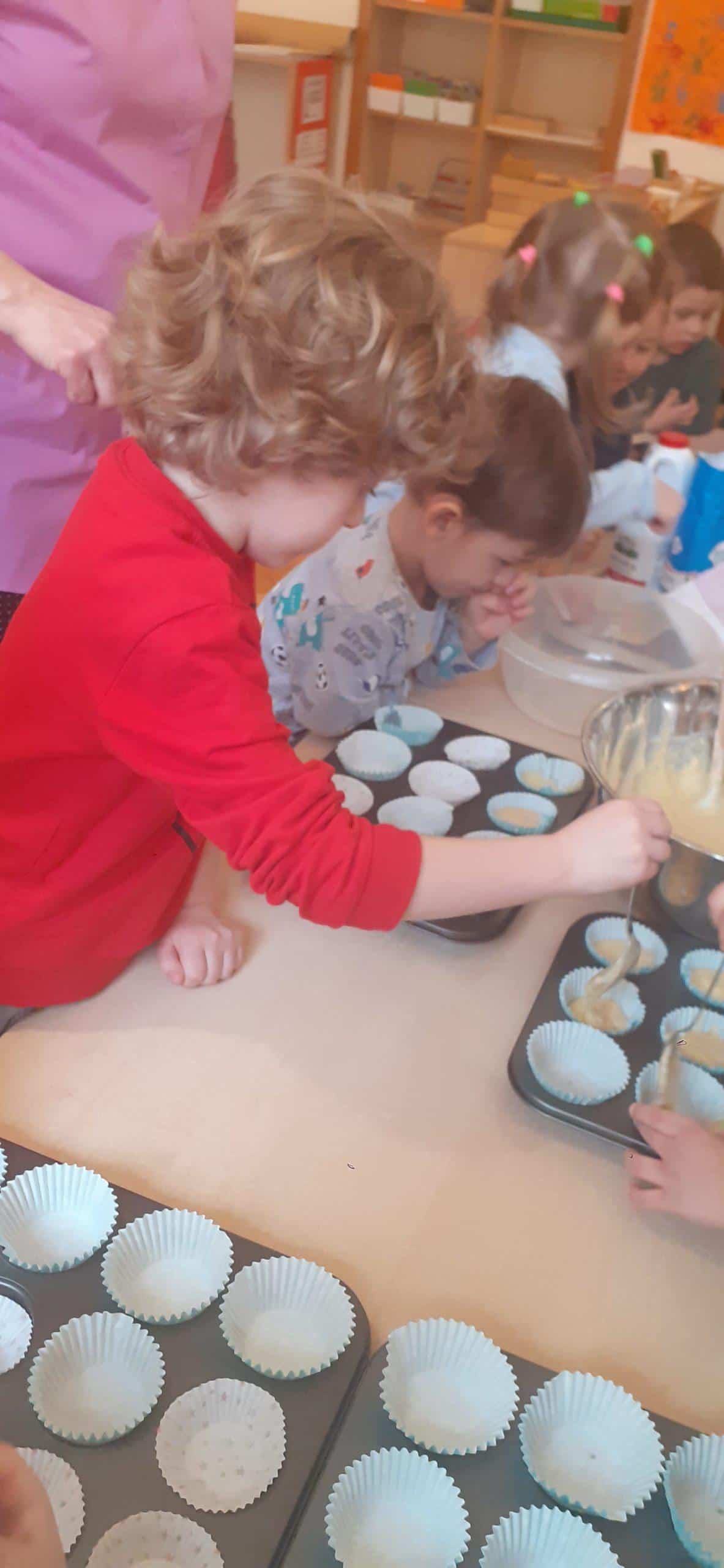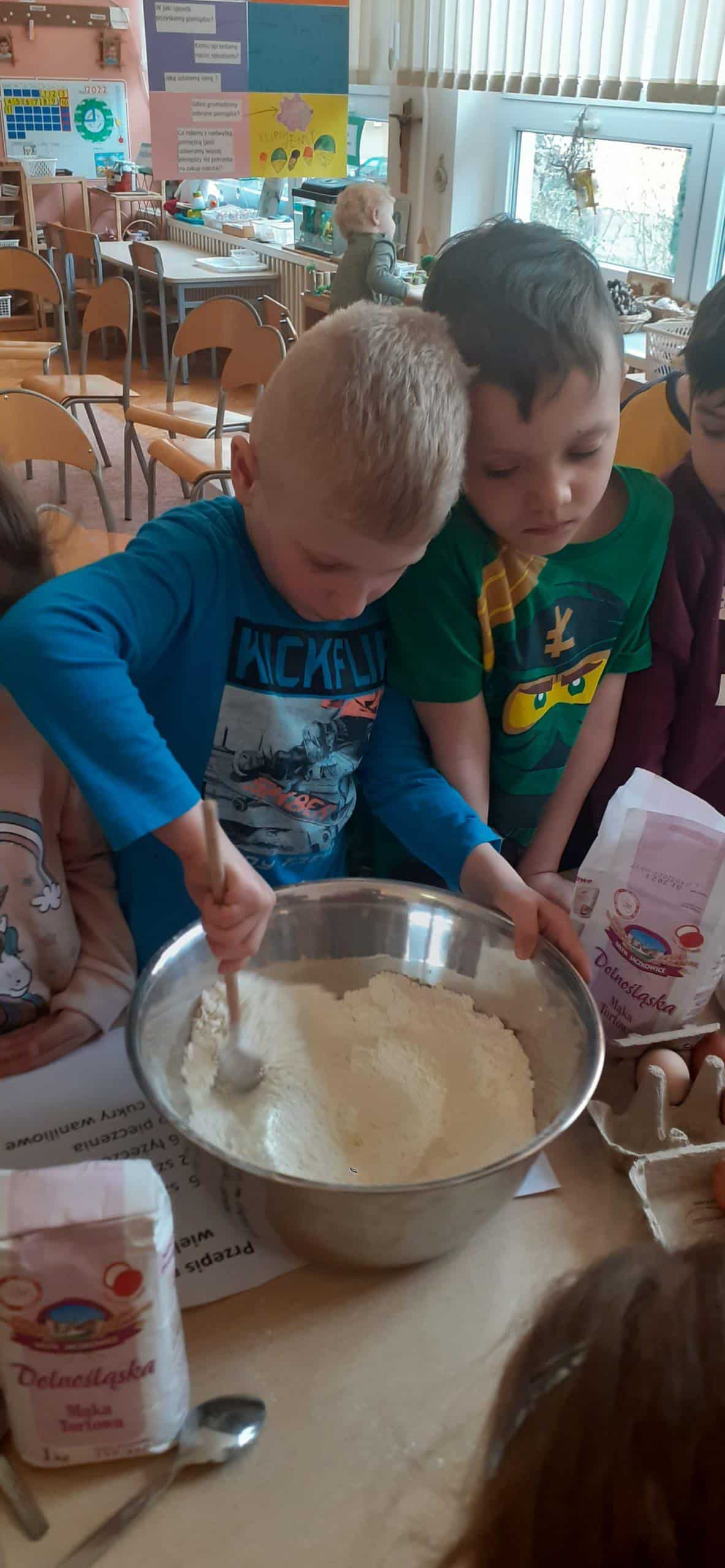 Babeczki wielkanocne to tradycja. W każdym koszyczku wielkanocnym takiej babeczki nie powinno zabraknąć. Baba wielkanocna ta najbardziej rozpoznawany symbol Wielkanocy. Tradycja wypiekania tych bab sięga XV wieku. To najstarszy wypiek sporządzany w Polsce. Zwyczaj ten przywędrował do nas z Litwy i Białorusi. Baba wielkanocna jest symbolem dostatku i umiejętności kucharskich, wypiekano je ze szczególną starannością, aby były jak najbardziej dorodne. Dzieci z grupy Pomarańczowej dzisiaj też wykazały się ogromną starannością. Dokładnie odmierzały wszystkie składniki zawarte w przepisie, dokładnie łączyły składniki suche z mokrymi, z pietyzmem dodawały aromatu pomarańczowego i całą masę mieszały. A potem nakładały do małych foremek. Dobrze, że czas pieczenia nie był zbyt długi , bo niektóre dzieci nie mogły się doczekać, kiedy babeczki się upieką i wystygną. No i wreszcie degustacja -babeczki smakowały wszystkim wyśmienicie.
