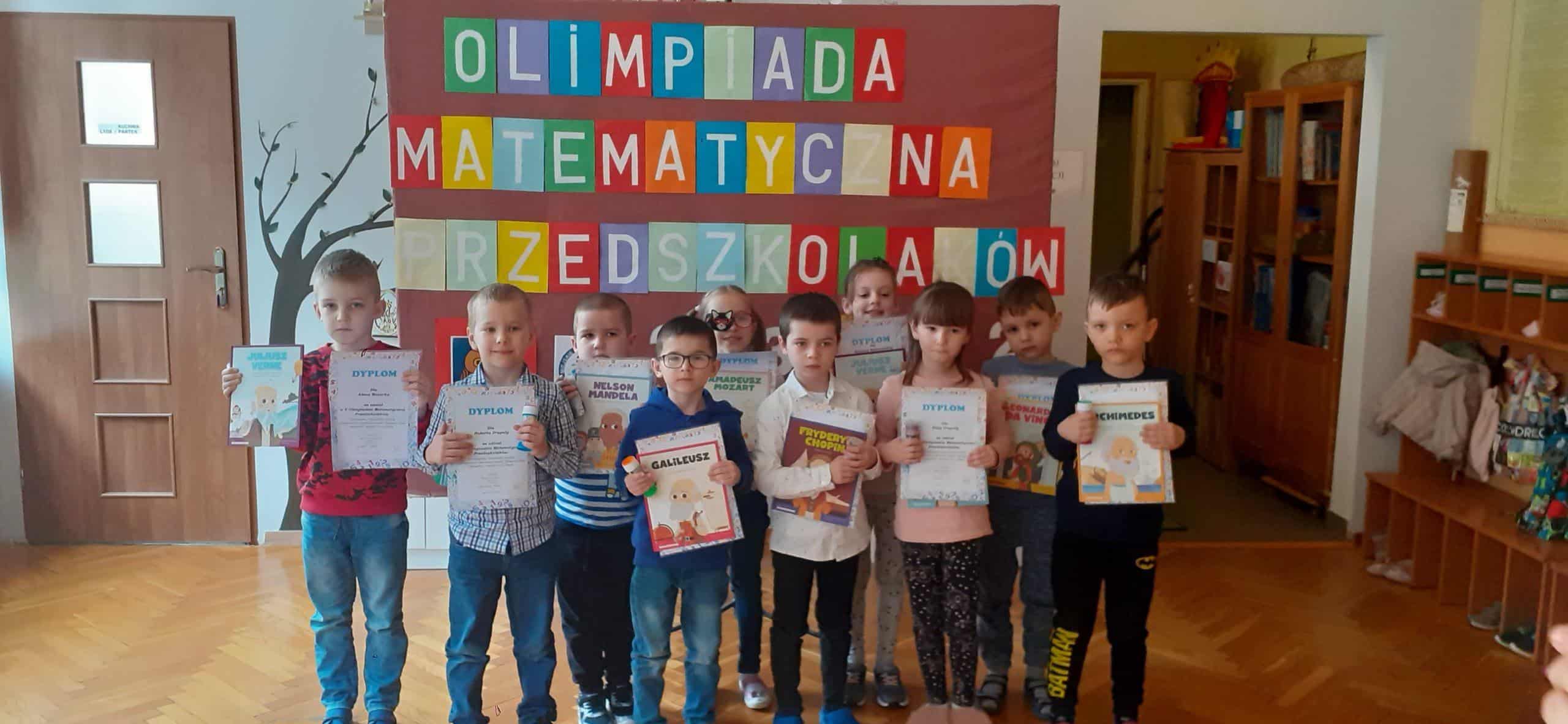 Okres przedszkolny to szczególny czas otwierania się ciekawskich dziecięcych oczu na świat. To też szczególny okres, kiedy ujawniają się pierwsze zainteresowania, zdolności , czy też predyspozycje, również w zakresie poznawania i rozumienia pojęć matematycznych . Przedszkole wychodzi naprzeciw rozwijającym się w tym względzie potrzebom dzieci , niekiedy te potrzeby są bardzo specyficzne. Z myślą o dzieciach, które wykazują zainteresowania matematyczne nasze przedszkole już po raz piąty zorganizowało Olimpiadę Matematyczną Przedszkolaków. W zmaganiach matematycznych wzięło udział po dwoje reprezentantów z każdej grupy przedszkolnej. Dzieci w parach rozwiązywały zadania matematyczne o różnym stopniu trudności, z powodzeniem radziły sobie z zadaniami , które swoją treścią znacznie wykraczały poza ramy podstawy programowej wychowania przedszkolnego. Dzieci bardzo cieszyły się, kiedy pokonywały coraz to trudniejsze zadania matematyczne. Niektóre zadania były bardzo emocjonujące, w przypadku niektórych uczestnicy musieli wykazać się kreatywnym podejściem do matematycznego problemu. Trzeba przyznać, że dzieci odniosły ogromny sukces. Gratulujemy! Dla każdego uczestnika Olimpiady przygotowano dyplomy i pamiątkowe książki.