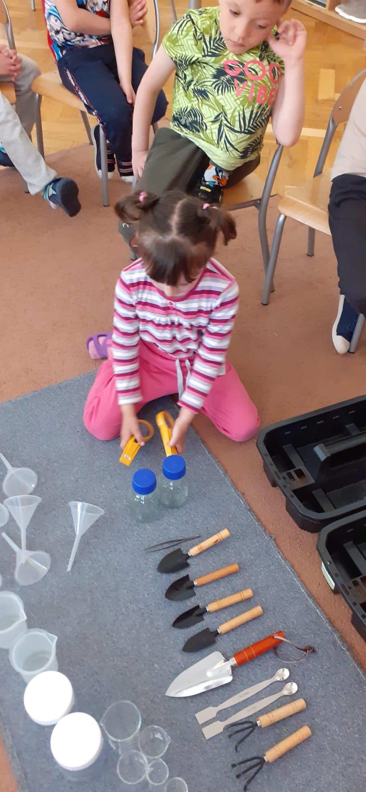 w placówkach montessoriańskich nie dawaj więcej oczom i uszom, niż możesz dać rękom uczą się przez: działanie, doświadczanie materiału, eksperymentowanie z nim i powtarzanie czynności. Robią to samodzielnie lub z pomocą osoby dorosłej. Dotyczy to każdej sfery edukacji od czytania, pisania, liczenia do umiejętności praktycznych, jak zapinanie guzików, korzystanie z toalety, porządkowanie swojego miejsca pracy i zabawy.