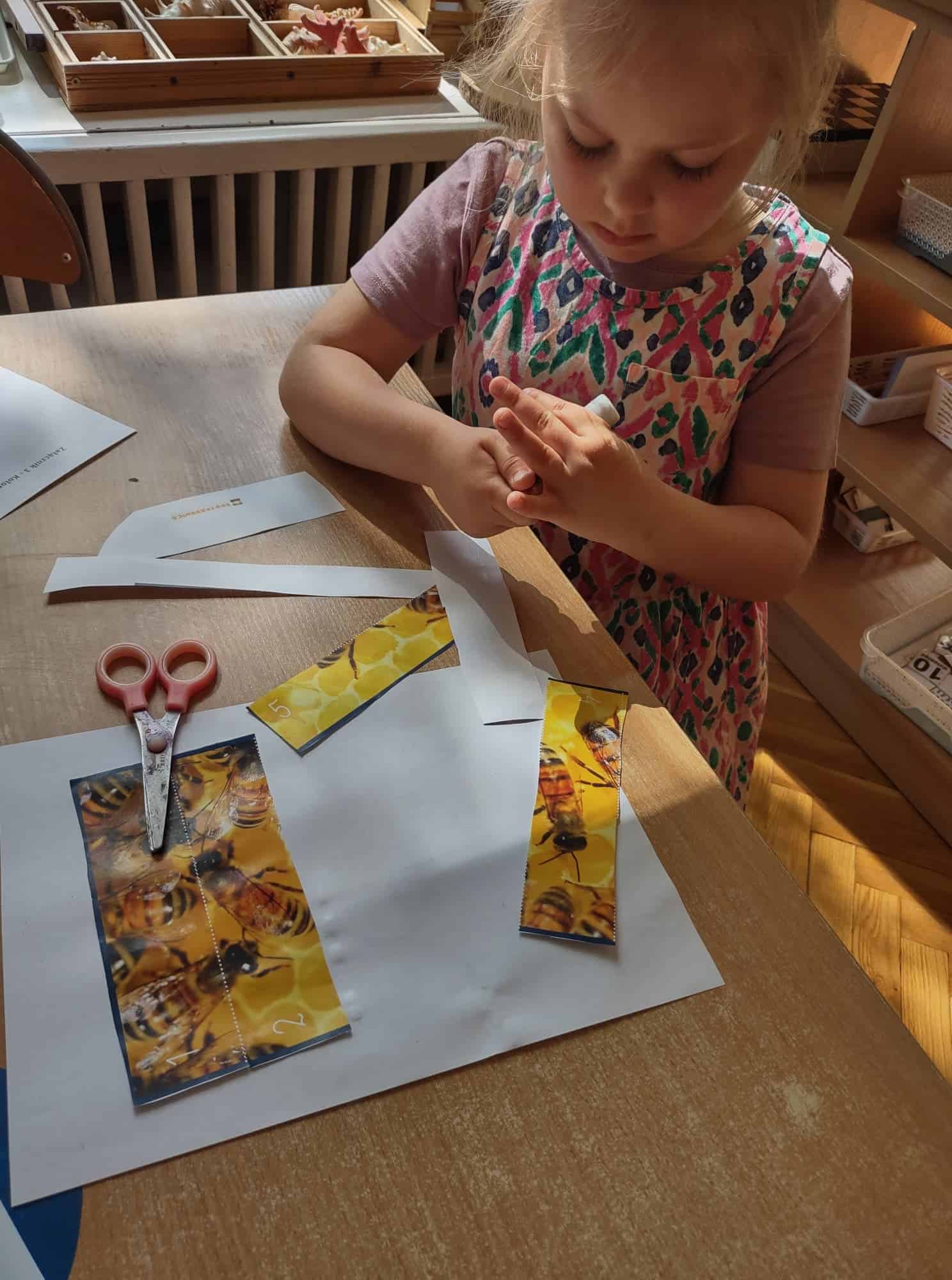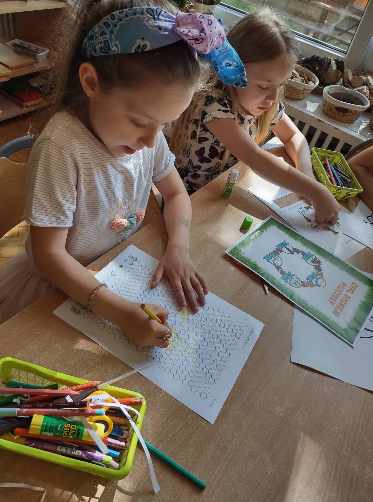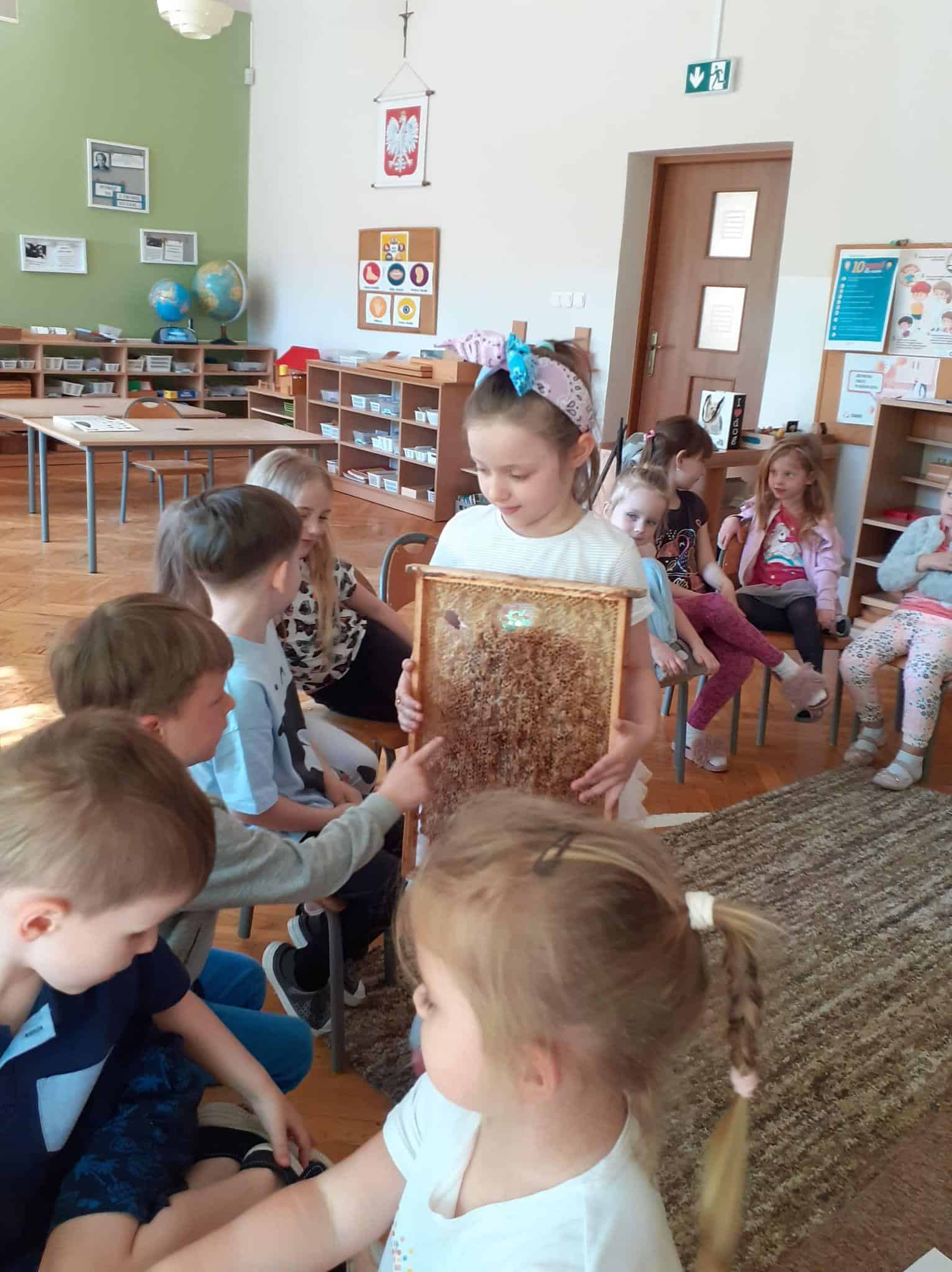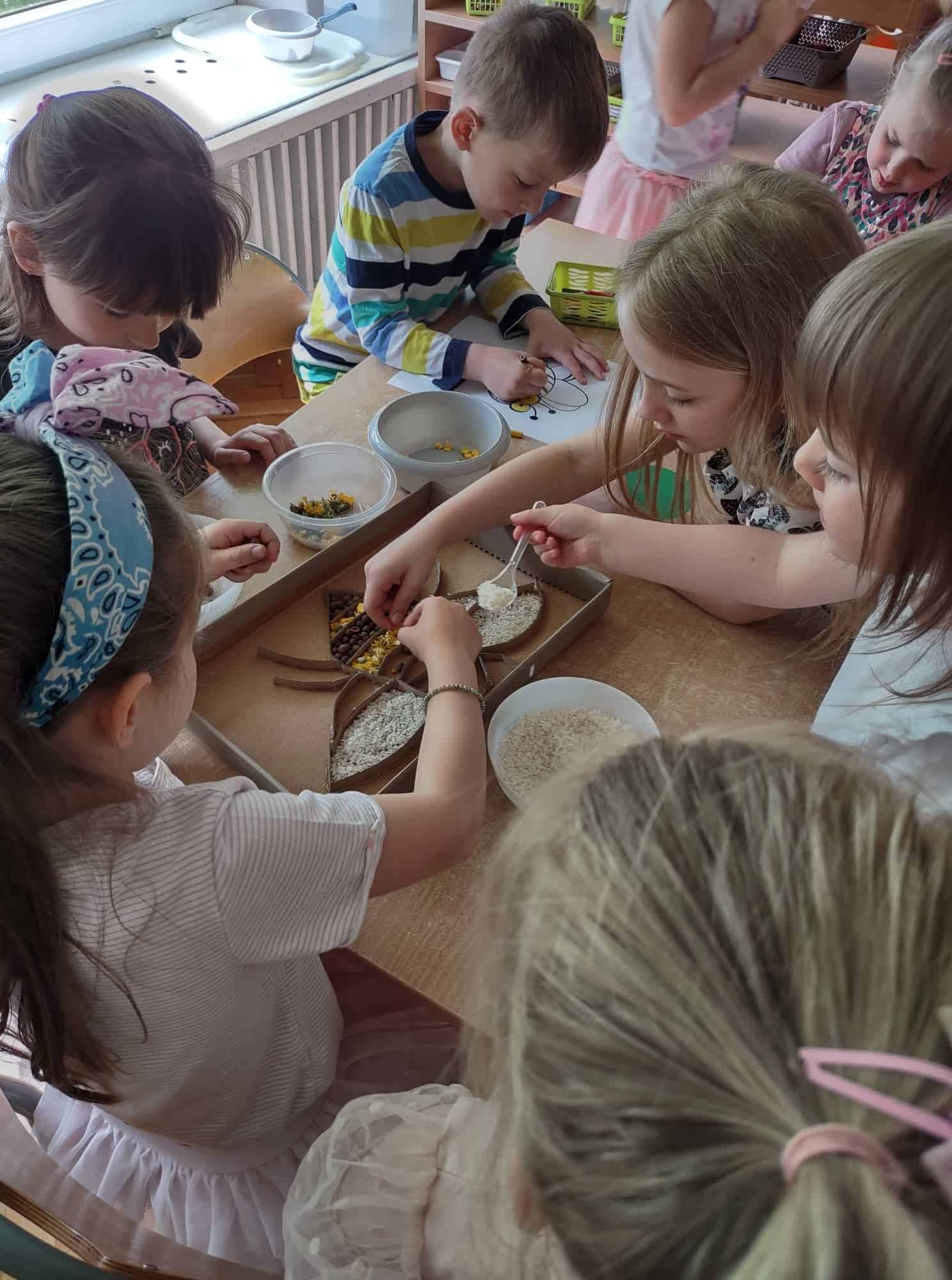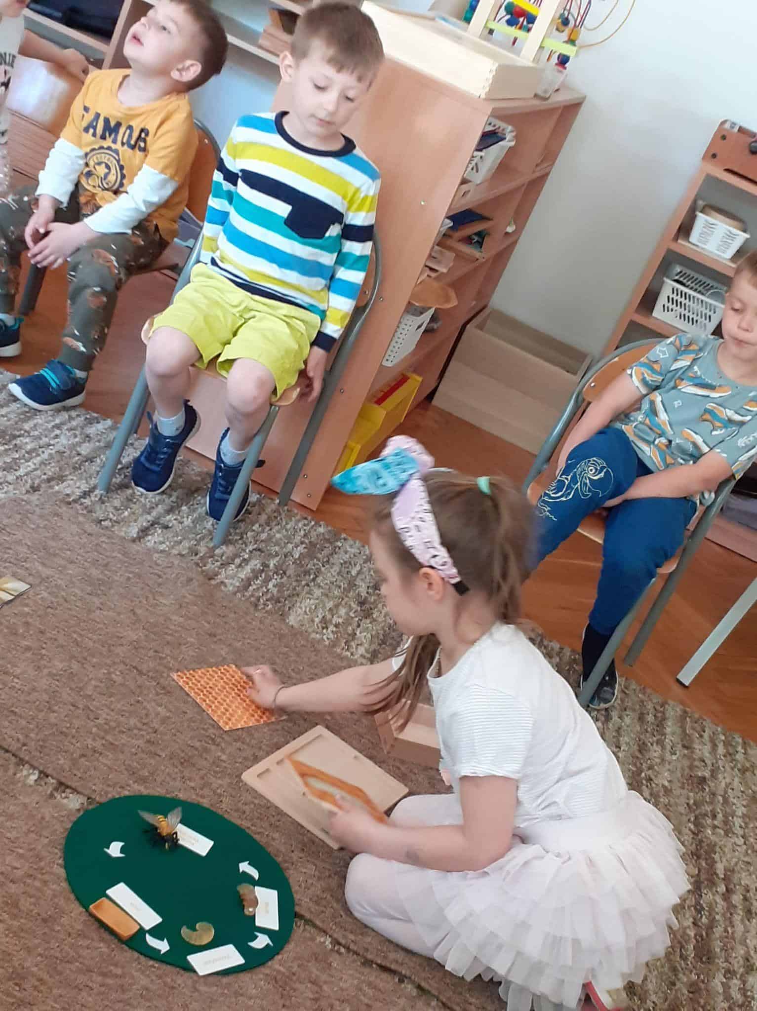20 maja przypada Światowy Dzień Pszczół. Z tej okazji dzieci z Grupy Zielonej aktywnie włączyły się w działania, których celem było budzenie świadomości na temat pożyteczności pszczół, pokonywanie strachu przed tymi owadami, ale również pomoc pszczołom w ich przetrwaniu. Podążając za myślą Alberta Einsteina, że: “jeśli z Ziemi zniknie pszczoła, człowiekowi pozostaną tylko cztery lata życia; nie ma więcej pszczół, nie ma więcej zapylania, nie ma więcej roślin, nie ma więcej zwierząt, nie ma więcej ludzi…” dlatego ważne jest, aby rolę i znaczenie tych owadów poznawać już od najmłodszych lat. Przedszkolaki dowiedziały się, jakie znaczenie ma praca pszczół dla świata przyrody, poznały cykl rozwojowy pszczoły, rozmawialiśmy na temat pracy pszczelarza – poznaliśmy narzędzia jego pracy oraz strój, którym musi zabezpieczyć się podczas wykonywania swoich zajęć. Dzięki filmowi edukacyjnemu „Życie pszczół” przedszkolaki obserwowały życie toczące się na łące. Zabawy ruchowe, zagadki, puzzle, działania matematyczne i językowe podkreśliły atrakcyjność zajęć. Podsumowaniem naszych działań było stworzenie pięknej, sensorycznej pszczoły 🙂 Efekty naszej pracy w poniższej fotorelacji 🙂