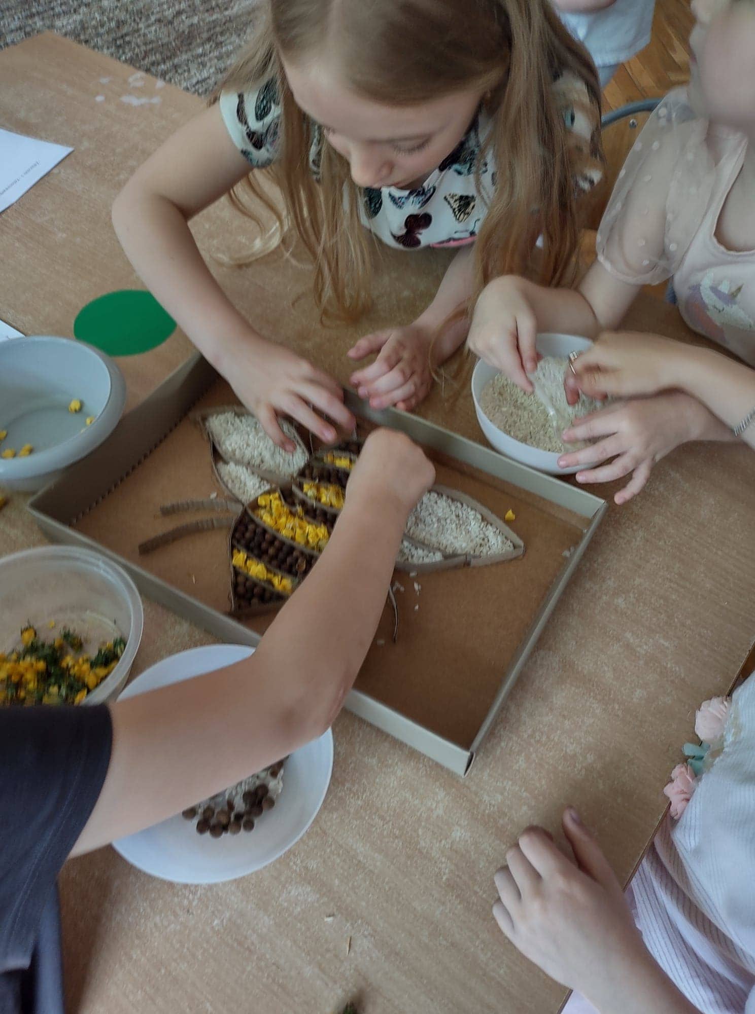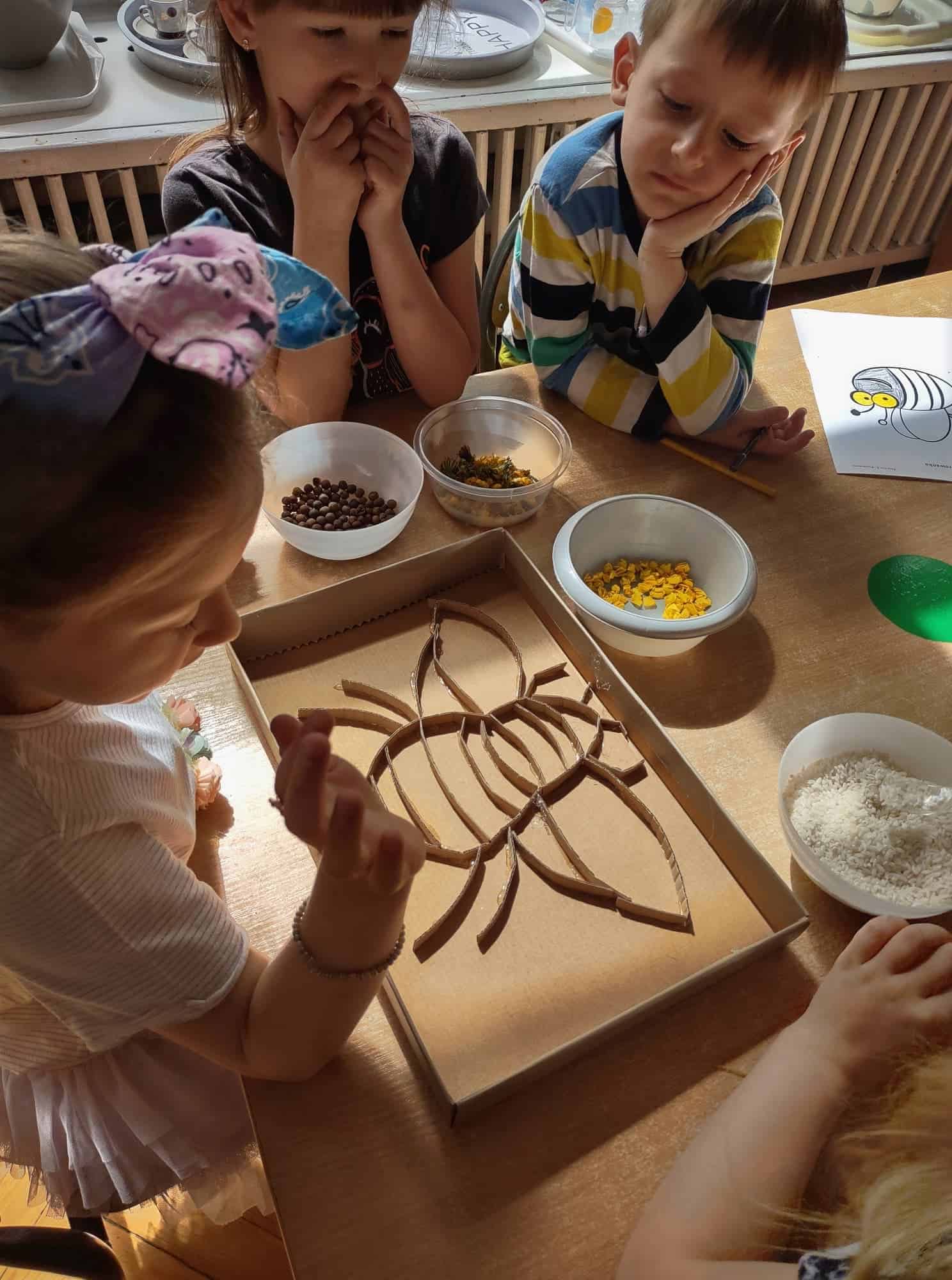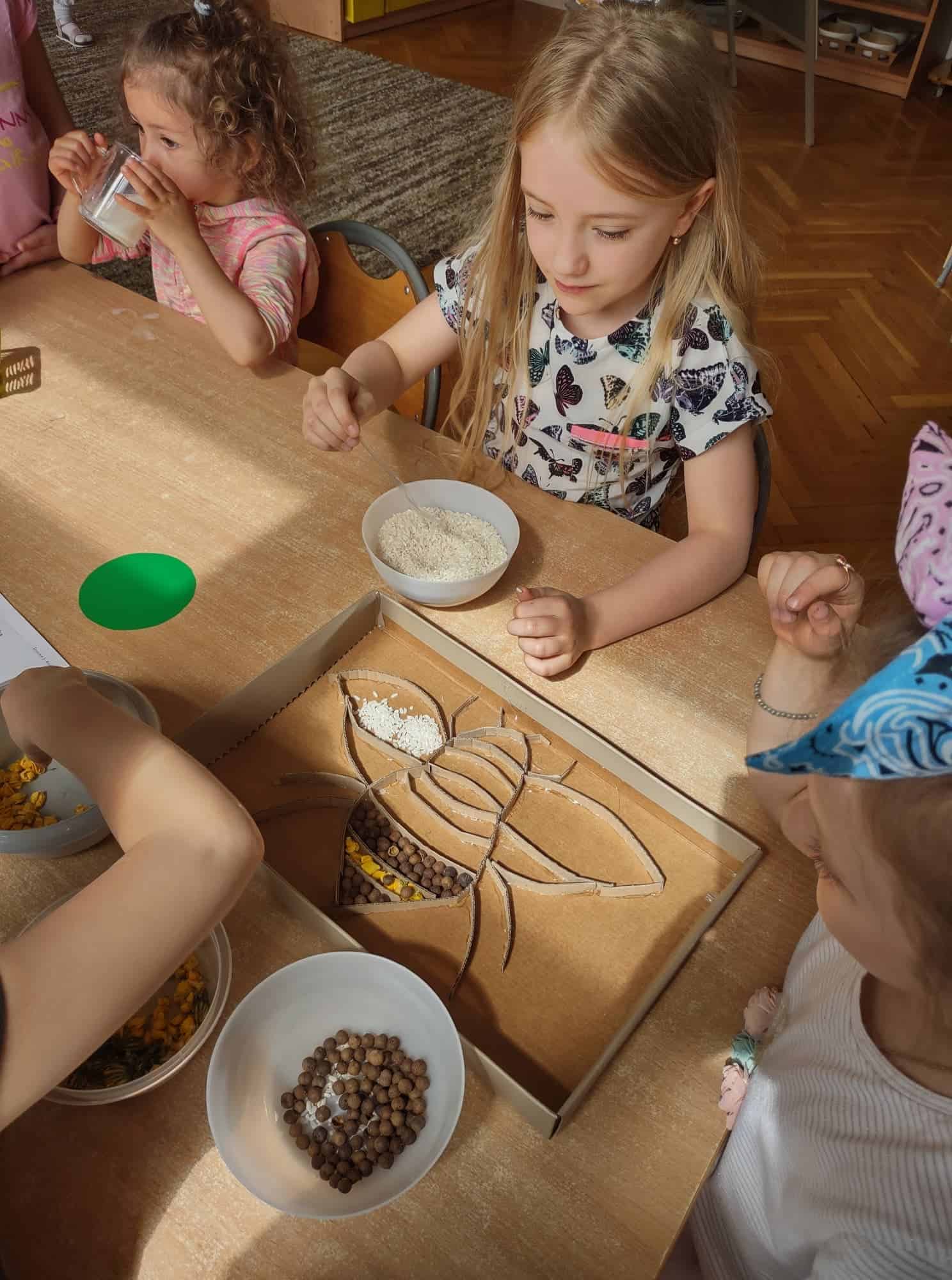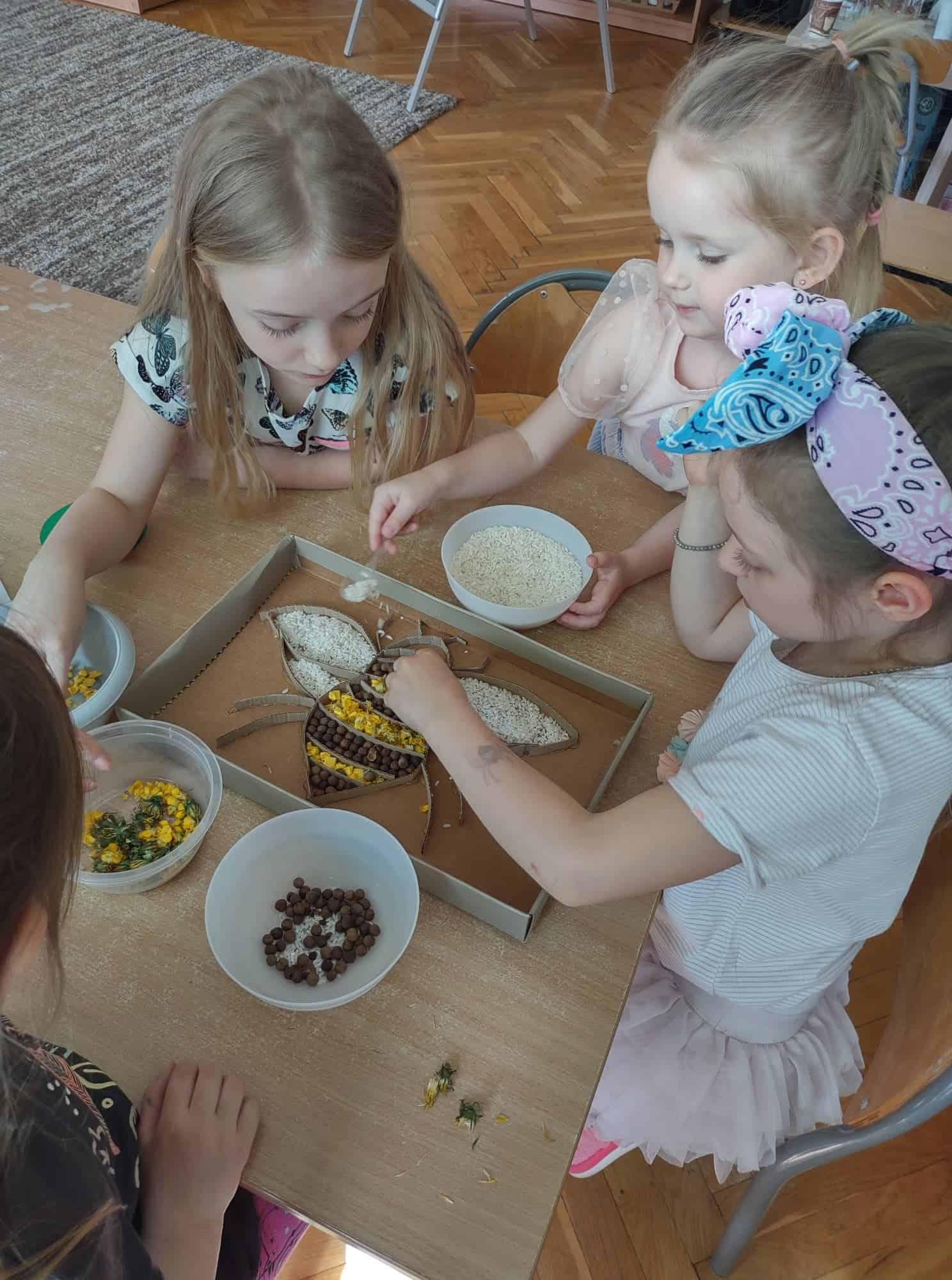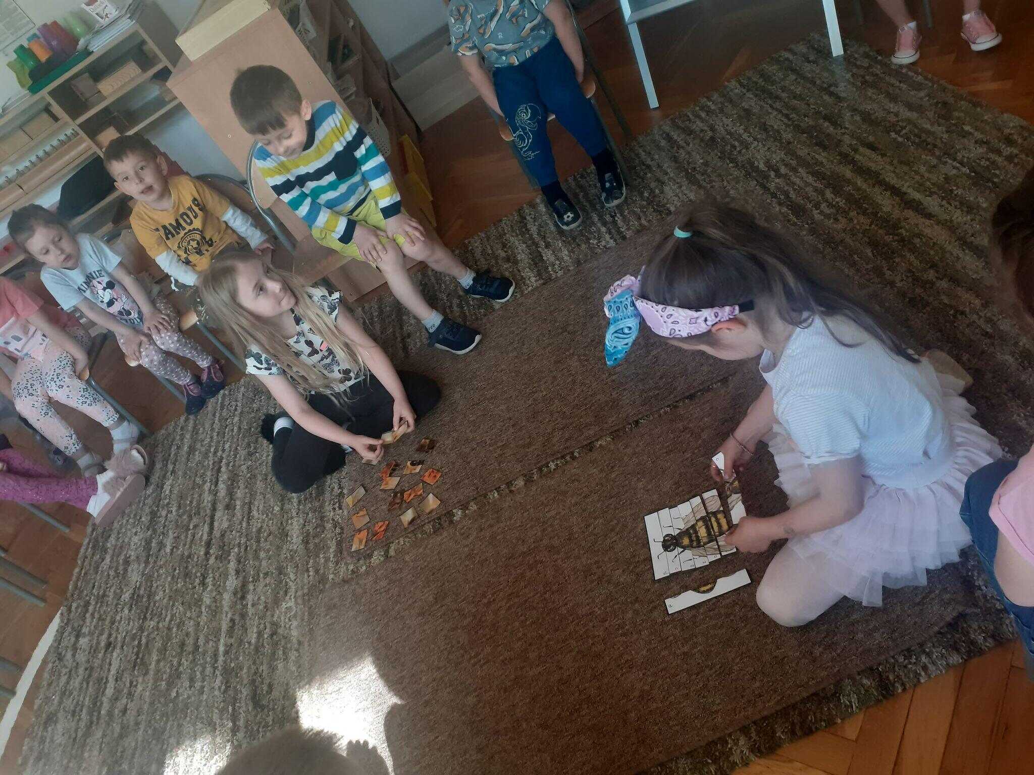 20 maja przypada Światowy Dzień Pszczół. Z tej okazji dzieci z Grupy Zielonej aktywnie włączyły się w działania, których celem było budzenie świadomości na temat pożyteczności pszczół, pokonywanie strachu przed tymi owadami, ale również pomoc pszczołom w ich przetrwaniu. Podążając za myślą Alberta Einsteina, że: “jeśli z Ziemi zniknie pszczoła, człowiekowi pozostaną tylko cztery lata życia; nie ma więcej pszczół, nie ma więcej zapylania, nie ma więcej roślin, nie ma więcej zwierząt, nie ma więcej ludzi…” dlatego ważne jest, aby rolę i znaczenie tych owadów poznawać już od najmłodszych lat. Przedszkolaki dowiedziały się, jakie znaczenie ma praca pszczół dla świata przyrody, poznały cykl rozwojowy pszczoły, rozmawialiśmy na temat pracy pszczelarza – poznaliśmy narzędzia jego pracy oraz strój, którym musi zabezpieczyć się podczas wykonywania swoich zajęć. Dzięki filmowi edukacyjnemu „Życie pszczół” przedszkolaki obserwowały życie toczące się na łące. Zabawy ruchowe, zagadki, puzzle, działania matematyczne i językowe podkreśliły atrakcyjność zajęć. Podsumowaniem naszych działań było stworzenie pięknej, sensorycznej pszczoły 🙂 Efekty naszej pracy w poniższej fotorelacji 🙂