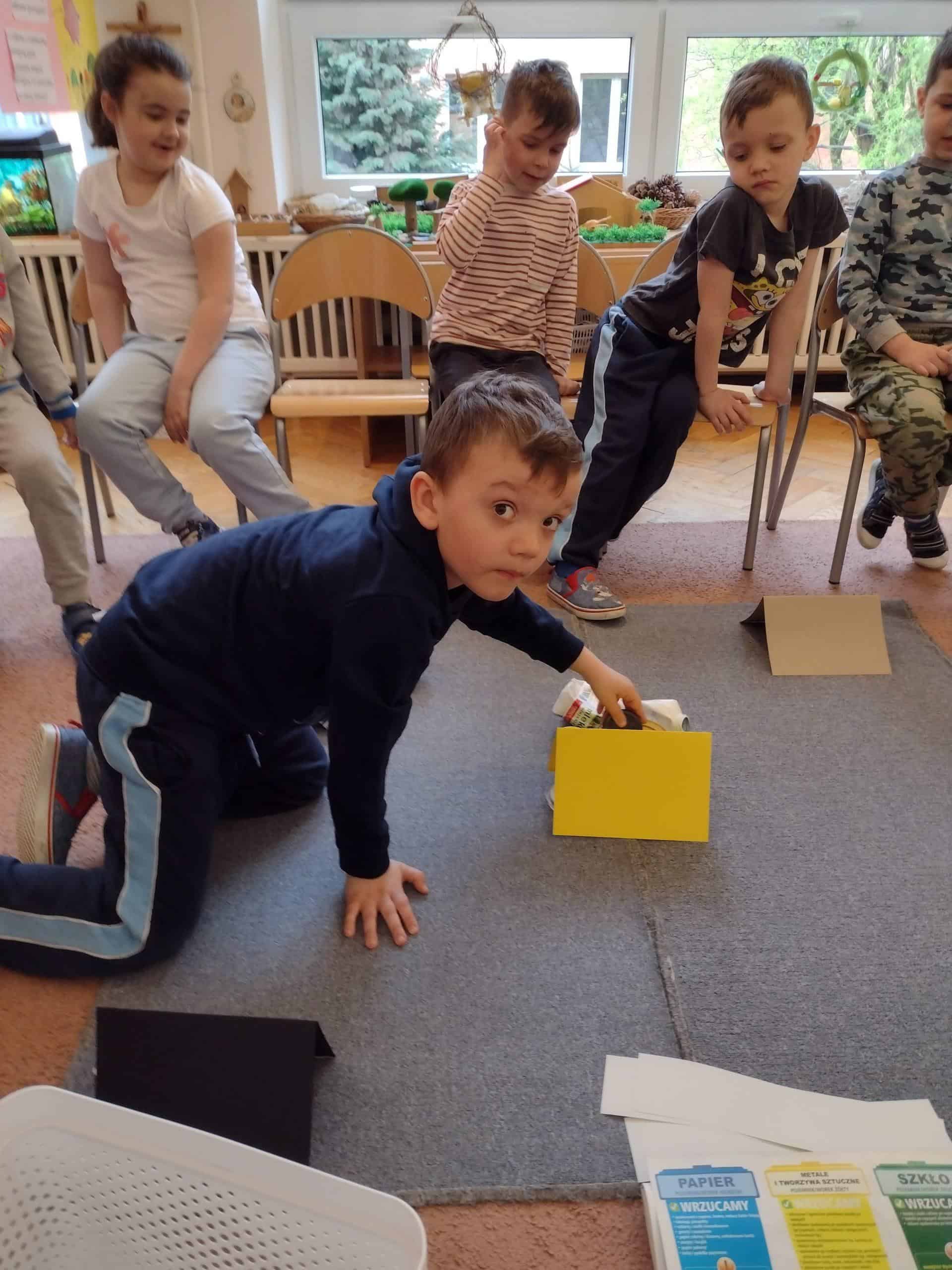W tym roku dzieci z naszej grupy uczciły dzień Ziemi wykonując wielki, wspólny plakat przedstawiający czystą planetę. Wcześniej omówiliśmy na zajęciach zagadnienia związane z dbaniem o Ziemię. Dzieci dobierały w pary obrazki, które przedstawiały przeciwieństwa dotyczące zachowań pozytywnych i negatywnych w stosunku do naszej planety i jej mieszkańców – roślin i zwierząt. Dzieci doskonale wiedziały, co należy zrobić, aby nie zanieczyszczać powietrza, wody czy gleby i jak można zmienić np. źródła energii na te przyjazne naszej planecie. Bardzo ważnym elementem zajęć było przypomnienie, jak segregować śmieci, po co to robić i co to właściwie jest ten recykling. Z nową wiedzą i umiejętnościami nasze dzieci ruszyły do swych domów, by razem ze swoimi rodzinami wspólnie zadbać o czystszą planetę Ziemię – nasz wspólny dom.