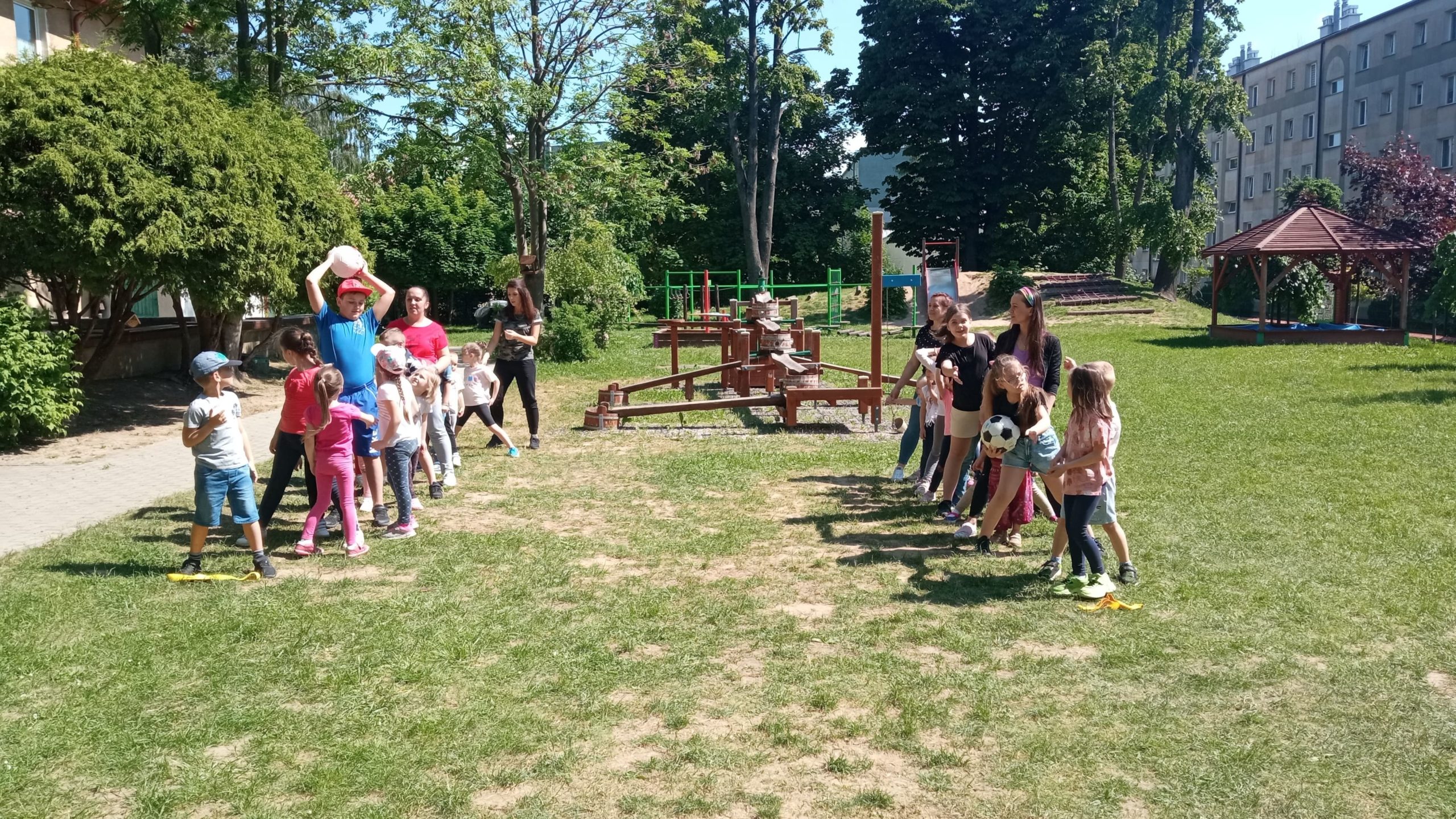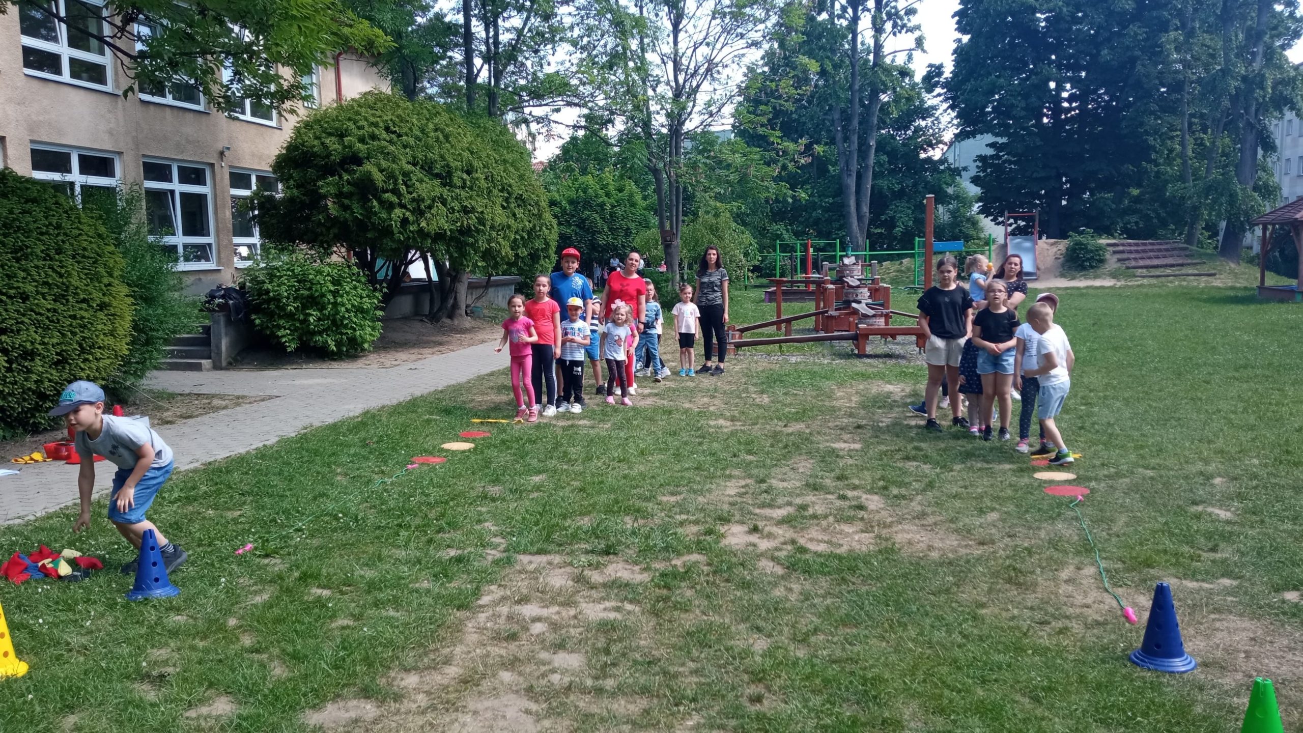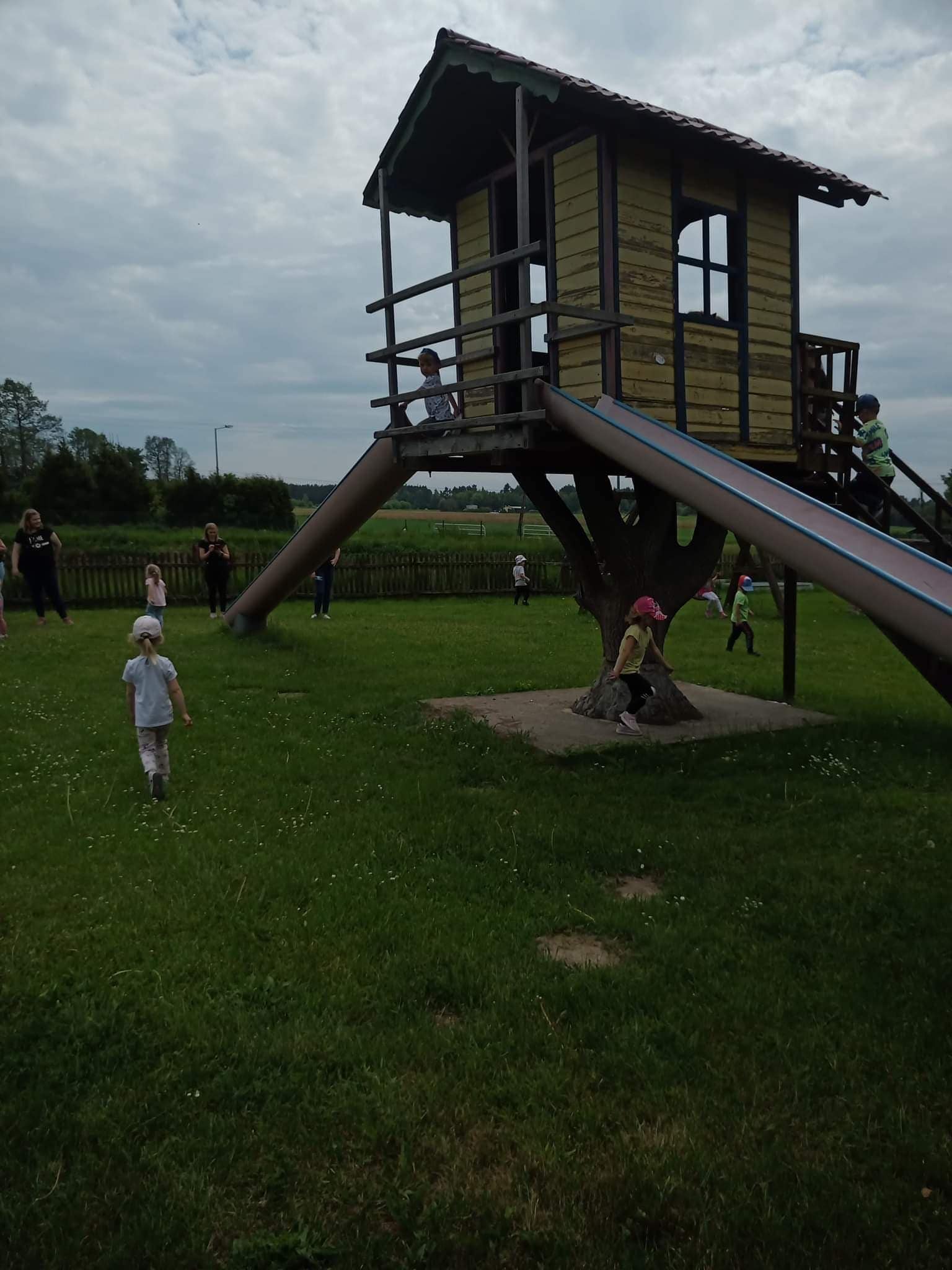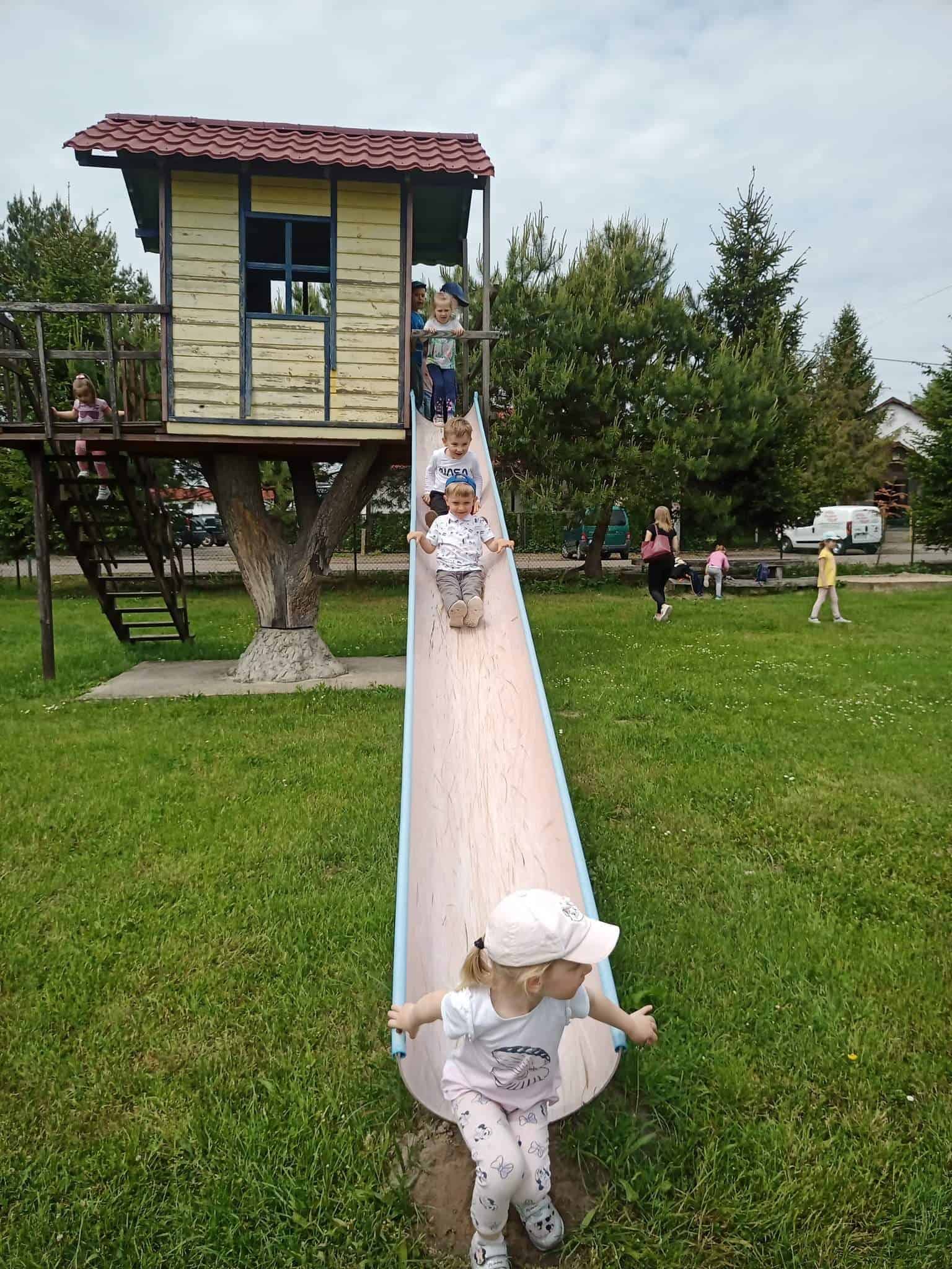 – plac zabaw z murowanym zamkiem, zjeżdżalniami i huśtawkami;