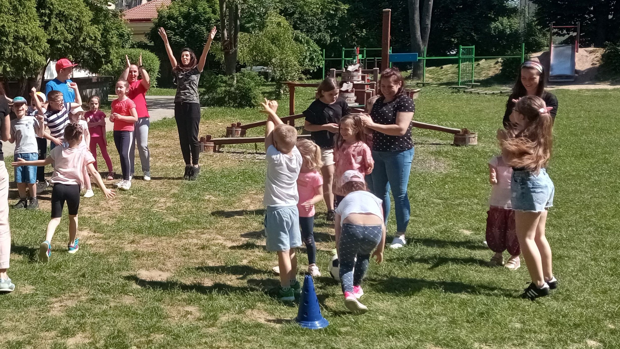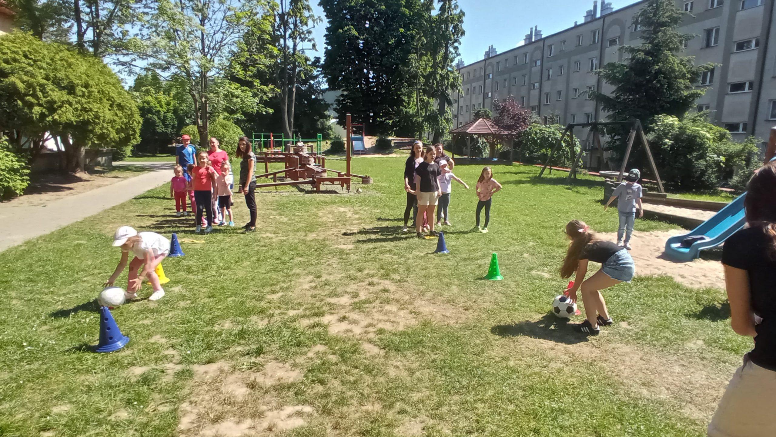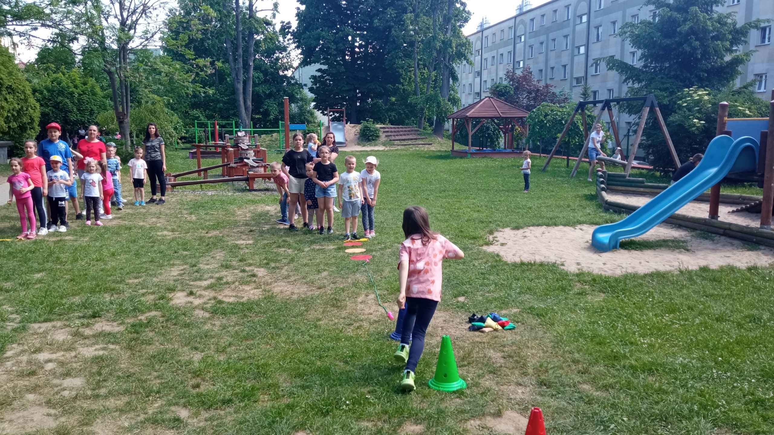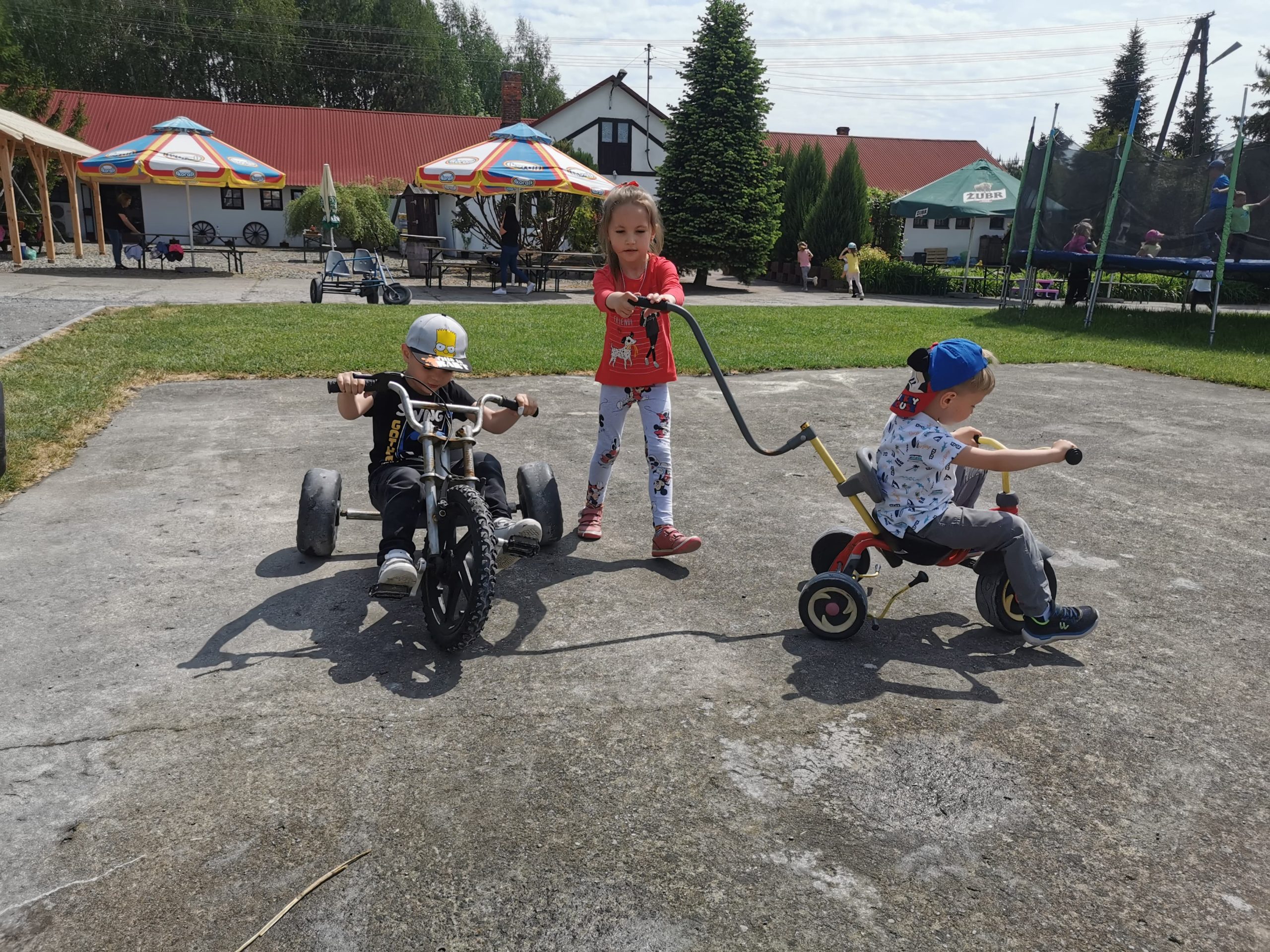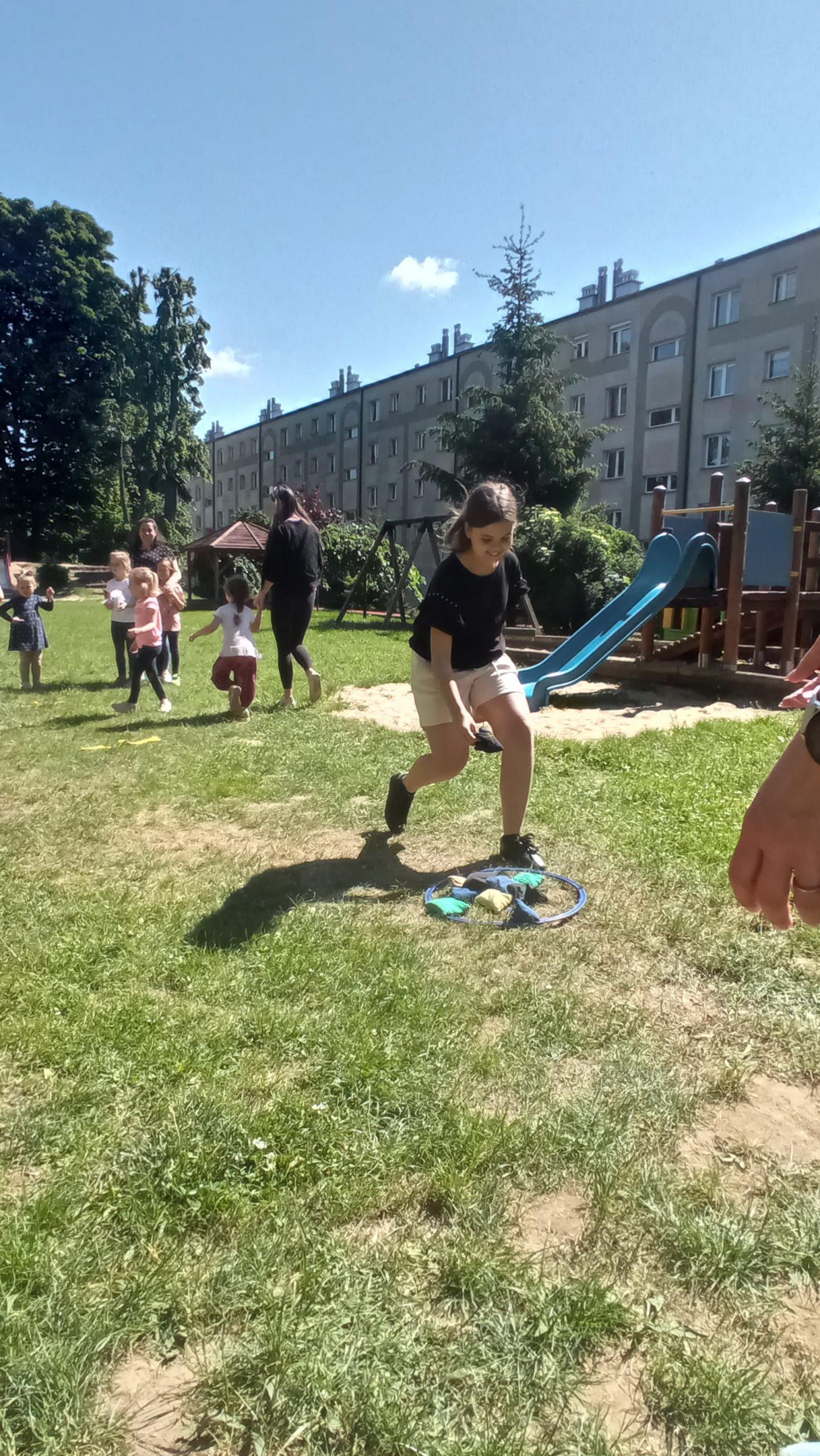 – plac zabaw z murowanym zamkiem, zjeżdżalniami i huśtawkami;