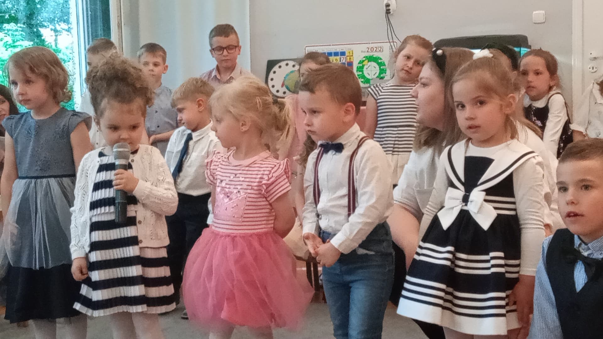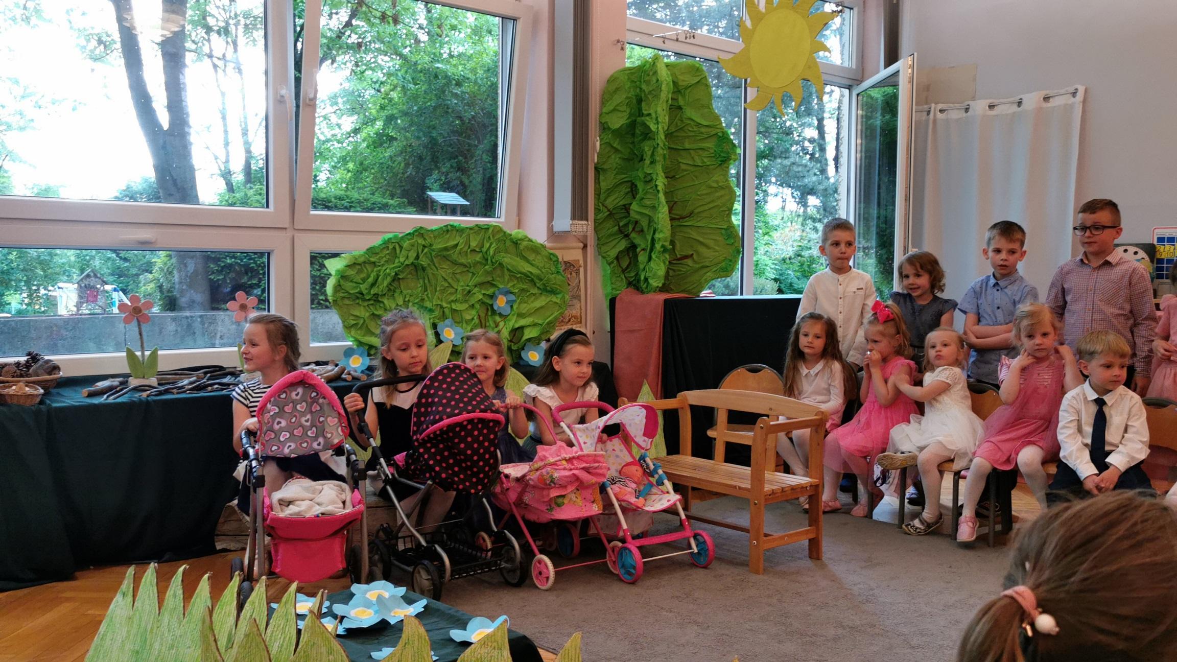 Jednak to nie wszystko nasze dzielne cheerleaderki wraz z paniami przygotowały układ taneczny, który dodawał naszym zawodnikom sił i zachęcał ich do dalszego udziału w Olimpiadzie. Na zakończenie wszyscy stanęliśmy na podium i otrzymaliśmy medale za uczestnictwo w olimpiadzie. Przedszkolaki wróciły zadowolone choć odrobinę zmęczone, z medalami na szyi, do przedszkola.