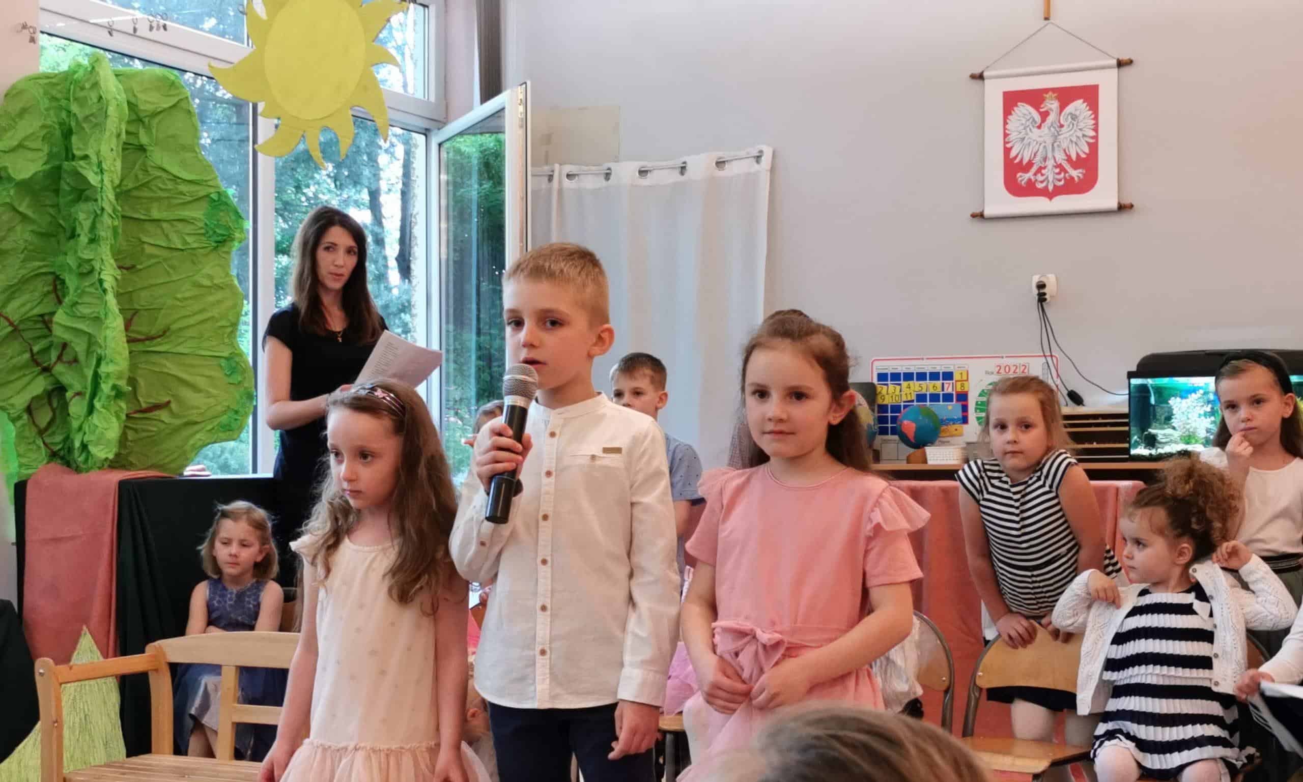 We wtorek 31 maja nasze starszaki wybrały się na Stadion Miejski, aby wziąć udział w Olimpiadzie Przedszkolaka, w której udział wzięły dzieci z przedszkoli oraz z oddziałów przedszkolnych w szkołach. Celem powyższego wydarzenia było propagowanie wśród najmłodszych zdrowego stylu życia poprzez branie udziału w imprezie o charakterze sportowym, aktywności fizycznej, zapoznanie dzieci z obiektem sportowym w tym przypadku stadionem, a także integracji między przedszkolami. Na początku wszyscy wzięliśmy udział w rozgrzewce prowadzonej na płycie stadionu. Następnie dzieci podzielone na zespoły wzięły udział w następujących dyscyplinach: