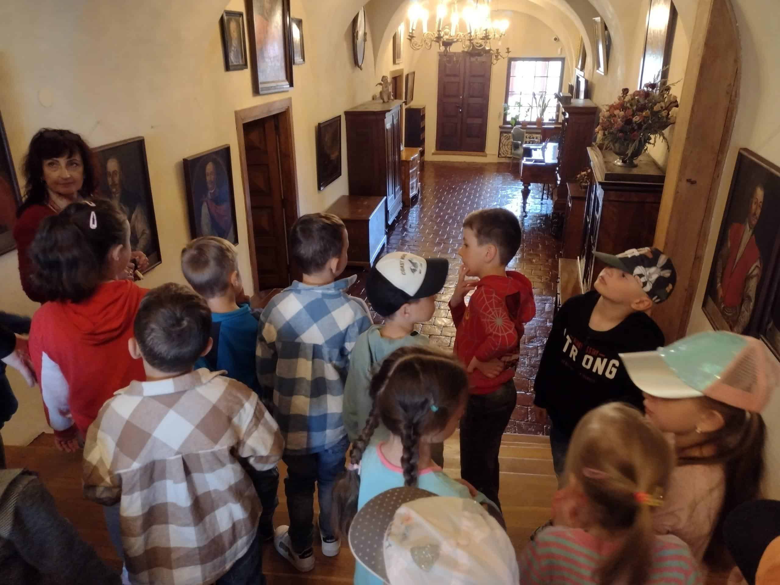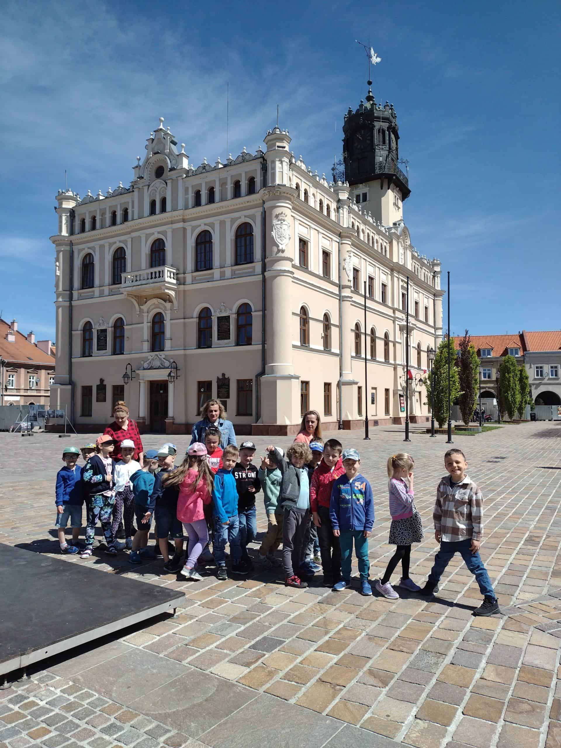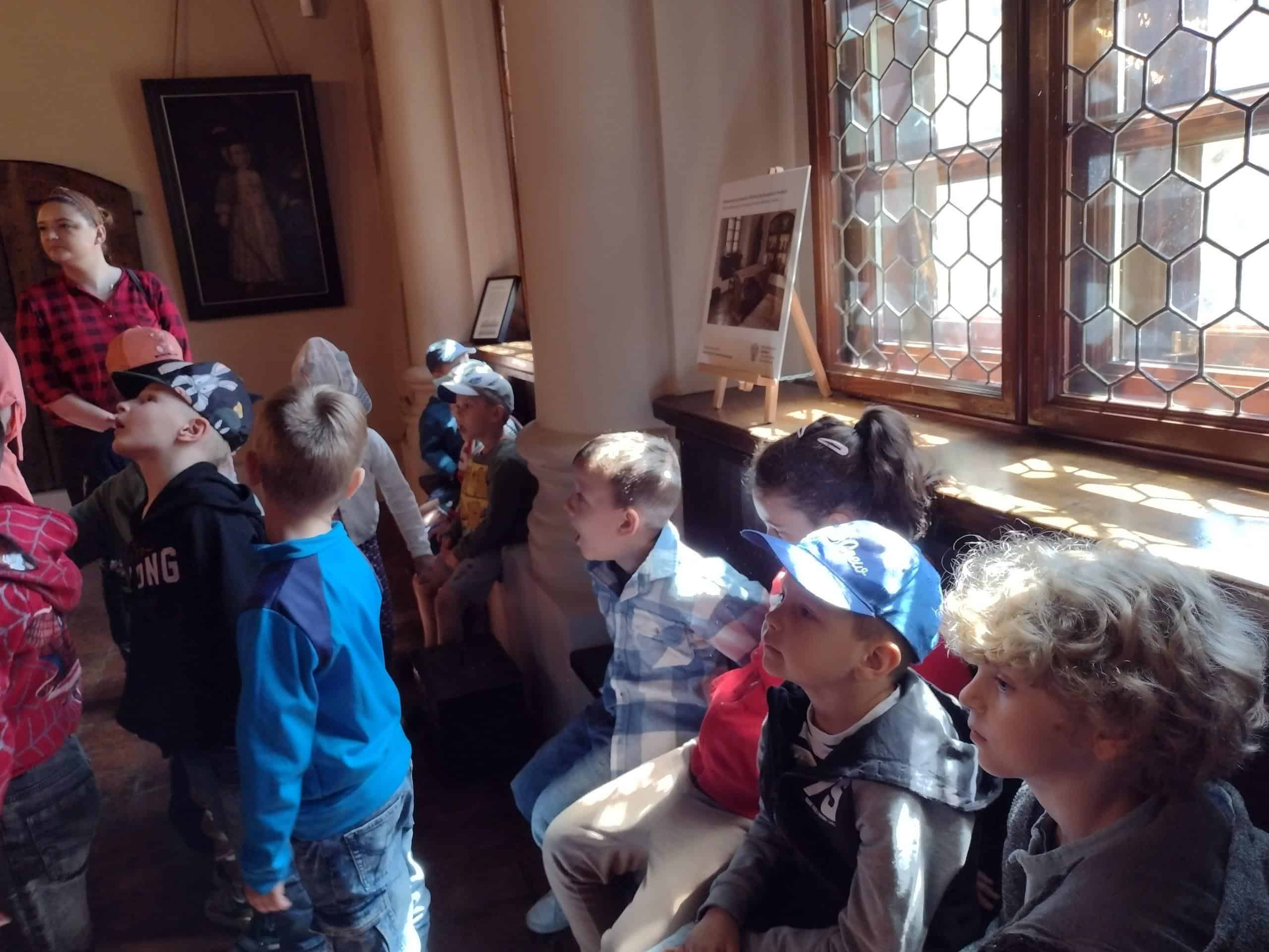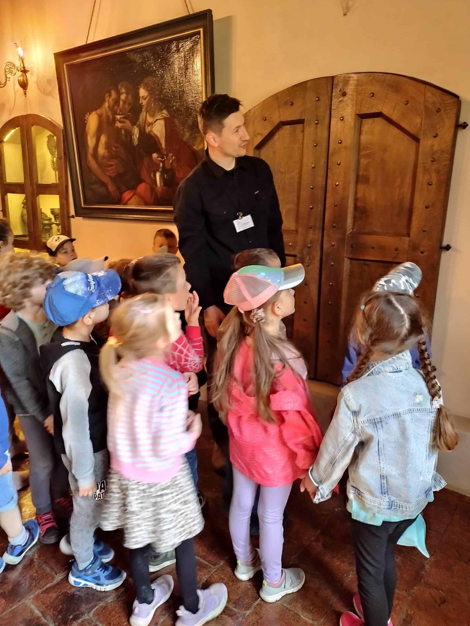 W dniu 19 maja starszaki z naszej grupy i grupy niebieskiej wybrały się razem na pieszą wycieczkę do jarosławskiego muzeum. Gdy dotarliśmy na rynek, nie mogliśmy się oprzeć urokowi pięknych, kolorowych kamieniczek otaczających rynek. Dzieci wypatrywały ozdobnych detali na fasadach kamienic, w różnych kształtach przypominających kwiaty i liście. Obejrzeliśmy także ratusz stojący w centralnym miejscu rynku, podziwialiśmy wieżę ratuszową i zegar na niej umieszczony. Największym zainteresowaniem cieszyła się jednak fontanna wyrzucająca raz po raz wodę. Gdy weszliśmy do muzeum, przywitała nas przewodnik, który oprowadzał dzieci po kupieckiej kamienicy Orsettich w Jarosławiu. Dzieci były zauroczone wnętrzami, zadawały dużo pytań i uważnie przyglądały się przedmiotom. Największą trudność sprawiło im nie dotykanie eksponatów, gdyż jak wiadomo dzieci, aby poznać – chcą dotknąć. Zwiedzaliśmy Wielką Izbę, gdzie właściciel gościł swoich partnerów w interesach i podpisywał ważne umowy kupieckie. Weszliśmy także na piętro, gdzie właściciele kamienicy mieli swoje prywatne pomieszczenia. Dzieci stwierdziły, że jest tam jak w zamku i dało się słyszeć głosy zachwytu nad wnętrzami. Co rusz odkrywały ciekawe przedmioty, które na pierwszy rzut oka nie zdradzały swojego przeznaczenia, dopiero po wyjaśnieniach pana przewodnika wszystko stawało się jasne. Na zakończenie dzieci mogły przenieść się starodawnego sklepu z zabytkową kasą, a także samodzielnie wykonać kartki pamiątkowe, a także otrzymały przewodniki dla dzieci „Jarosław (nie) do poznania. Wycieczka była bardzo udana i dzieci jeszcze do końca dnia wspominały, co ciekawego widziały w muzeum.