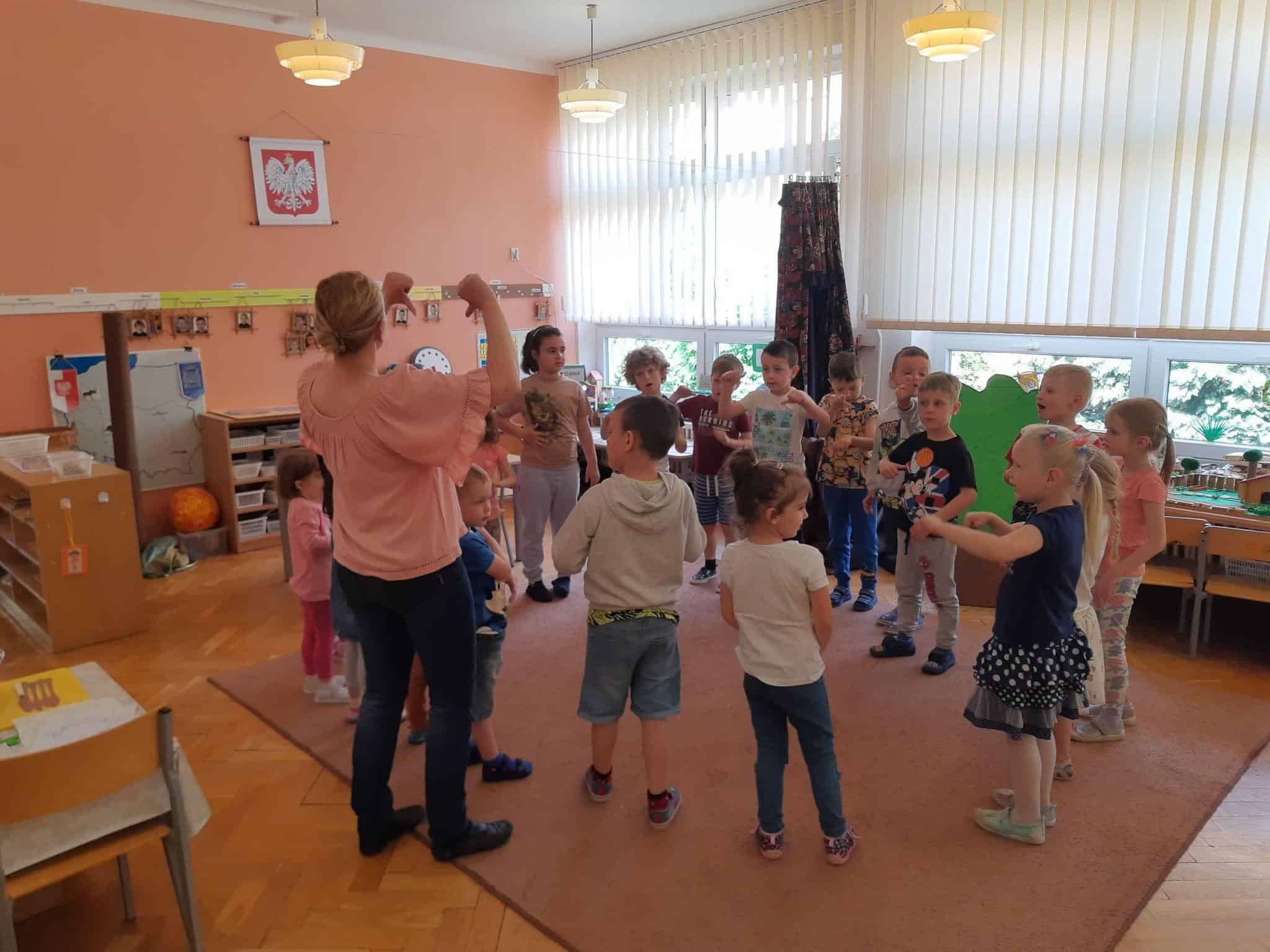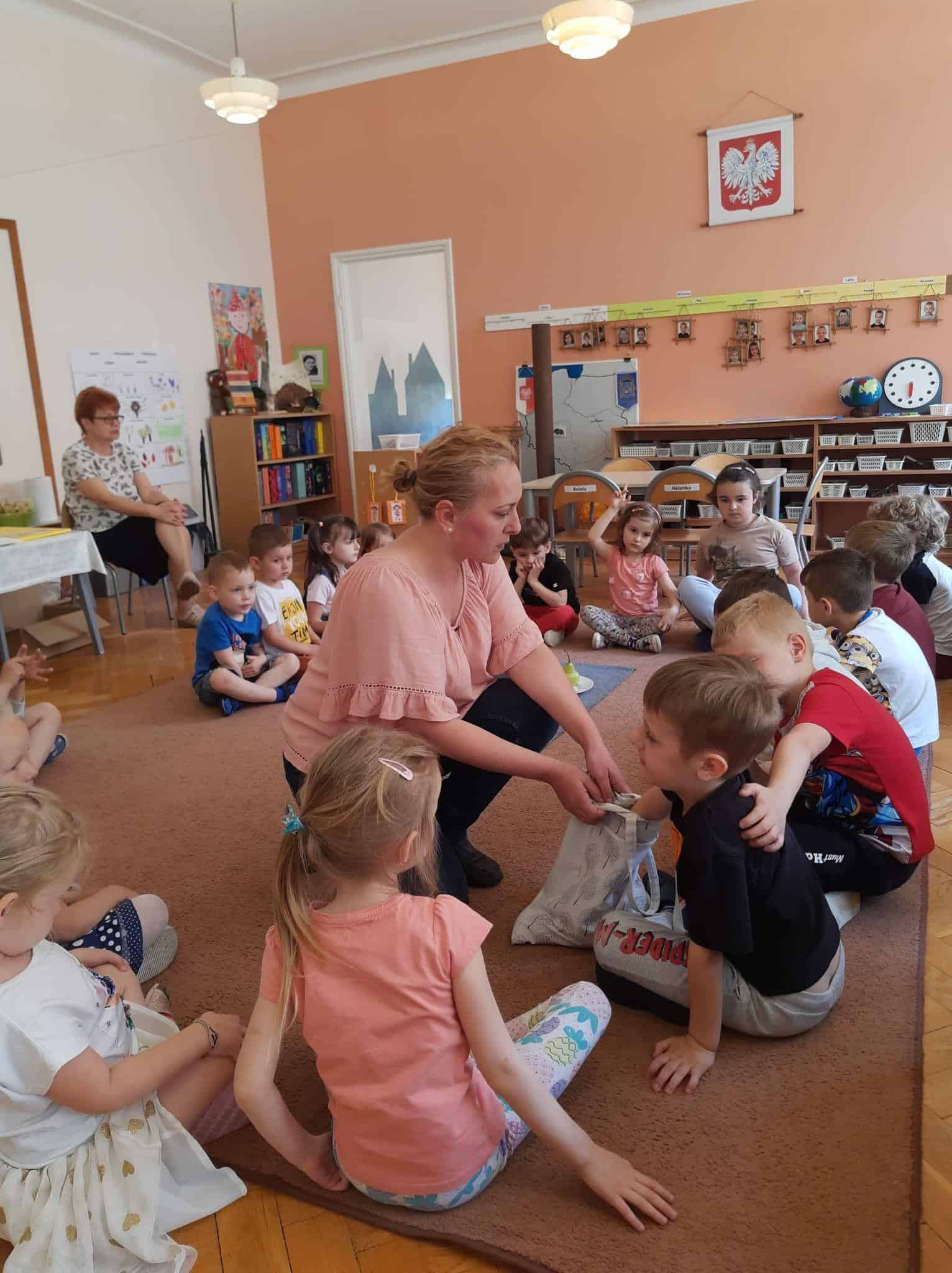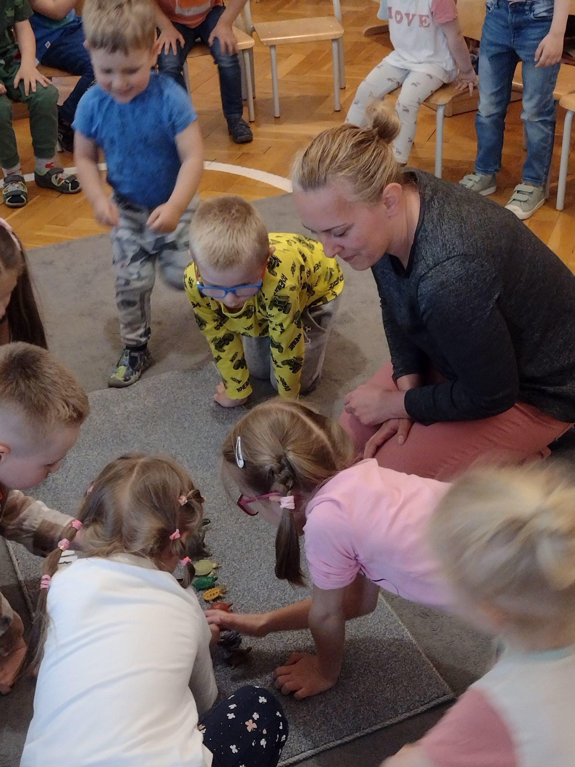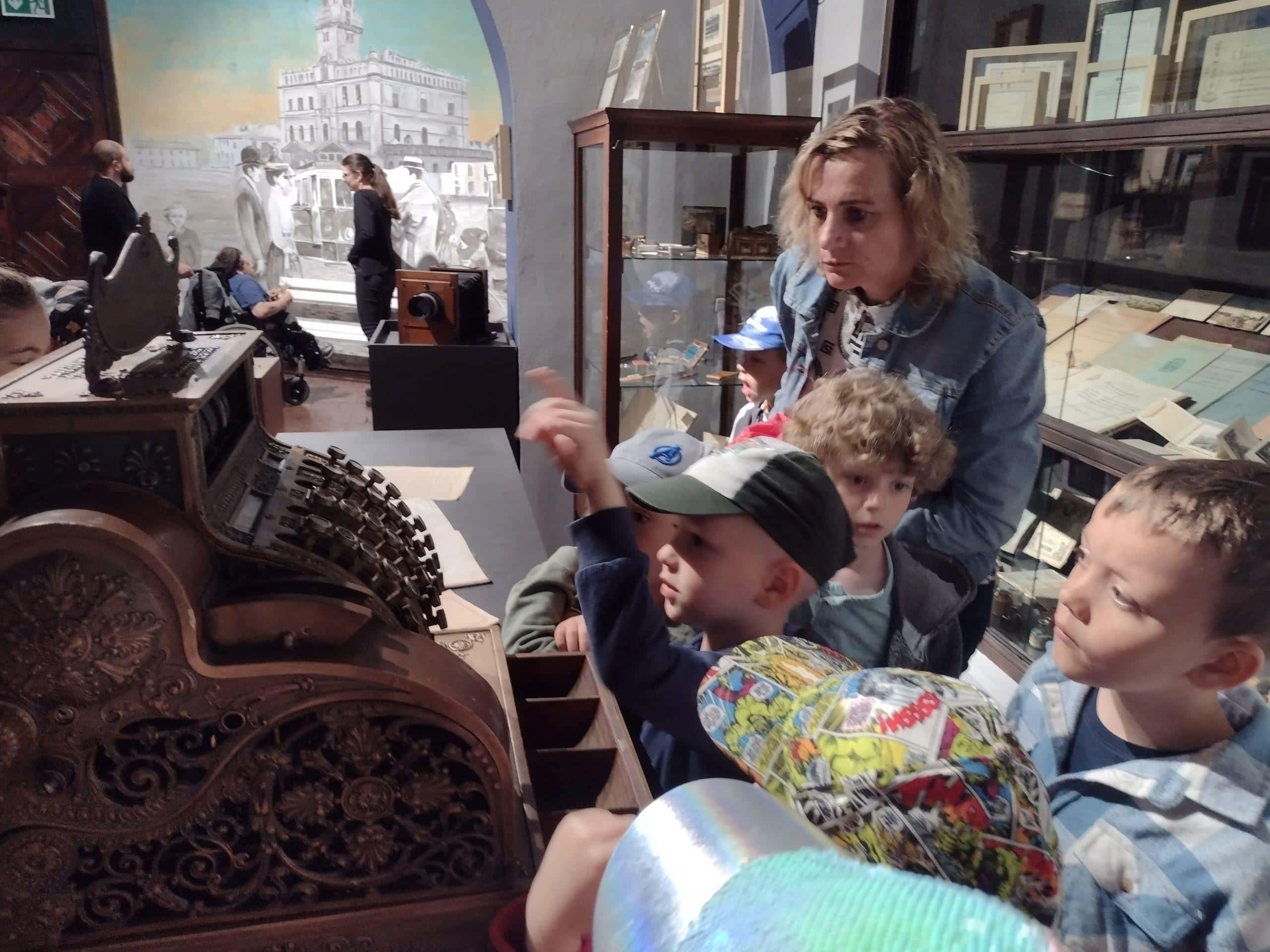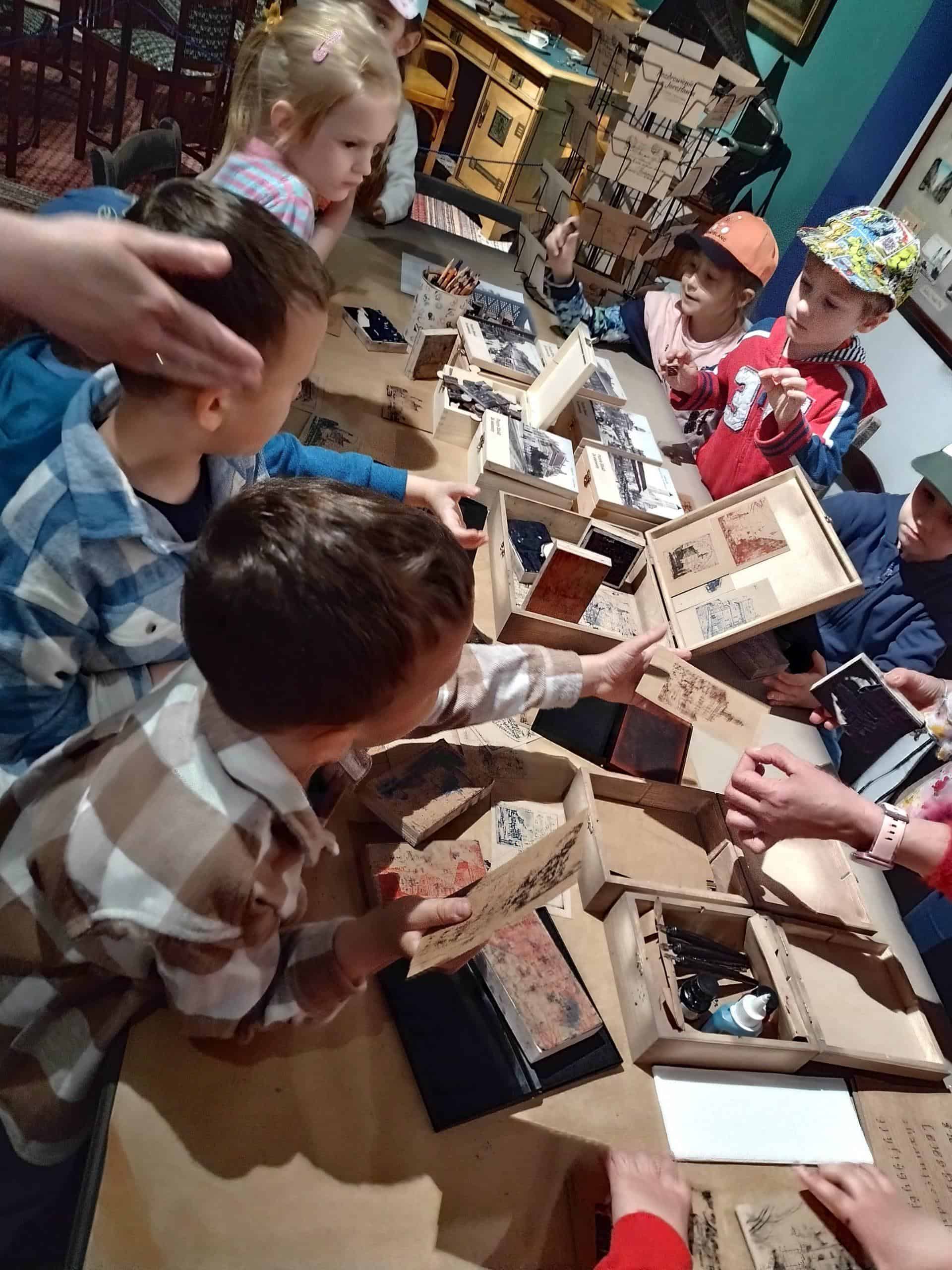 W dniu 19 maja starszaki z naszej grupy i grupy niebieskiej wybrały się razem na pieszą wycieczkę do jarosławskiego muzeum. Gdy dotarliśmy na rynek, nie mogliśmy się oprzeć urokowi pięknych, kolorowych kamieniczek otaczających rynek. Dzieci wypatrywały ozdobnych detali na fasadach kamienic, w różnych kształtach przypominających kwiaty i liście. Obejrzeliśmy także ratusz stojący w centralnym miejscu rynku, podziwialiśmy wieżę ratuszową i zegar na niej umieszczony. Największym zainteresowaniem cieszyła się jednak fontanna wyrzucająca raz po raz wodę. Gdy weszliśmy do muzeum, przywitała nas przewodnik, który oprowadzał dzieci po kupieckiej kamienicy Orsettich w Jarosławiu. Dzieci były zauroczone wnętrzami, zadawały dużo pytań i uważnie przyglądały się przedmiotom. Największą trudność sprawiło im nie dotykanie eksponatów, gdyż jak wiadomo dzieci, aby poznać – chcą dotknąć. Zwiedzaliśmy Wielką Izbę, gdzie właściciel gościł swoich partnerów w interesach i podpisywał ważne umowy kupieckie. Weszliśmy także na piętro, gdzie właściciele kamienicy mieli swoje prywatne pomieszczenia. Dzieci stwierdziły, że jest tam jak w zamku i dało się słyszeć głosy zachwytu nad wnętrzami. Co rusz odkrywały ciekawe przedmioty, które na pierwszy rzut oka nie zdradzały swojego przeznaczenia, dopiero po wyjaśnieniach pana przewodnika wszystko stawało się jasne. Na zakończenie dzieci mogły przenieść się starodawnego sklepu z zabytkową kasą, a także samodzielnie wykonać kartki pamiątkowe, a także otrzymały przewodniki dla dzieci „Jarosław (nie) do poznania. Wycieczka była bardzo udana i dzieci jeszcze do końca dnia wspominały, co ciekawego widziały w muzeum.