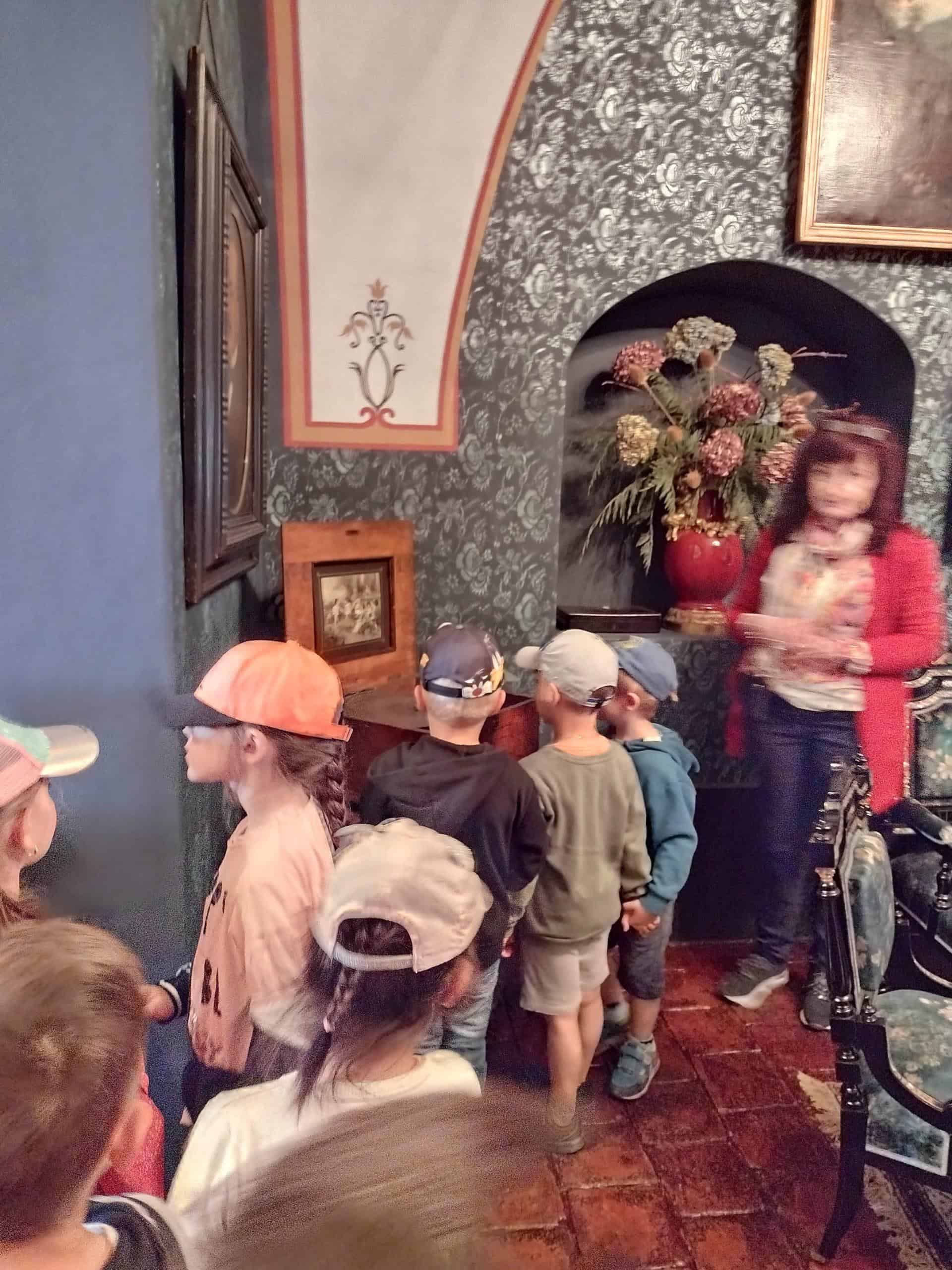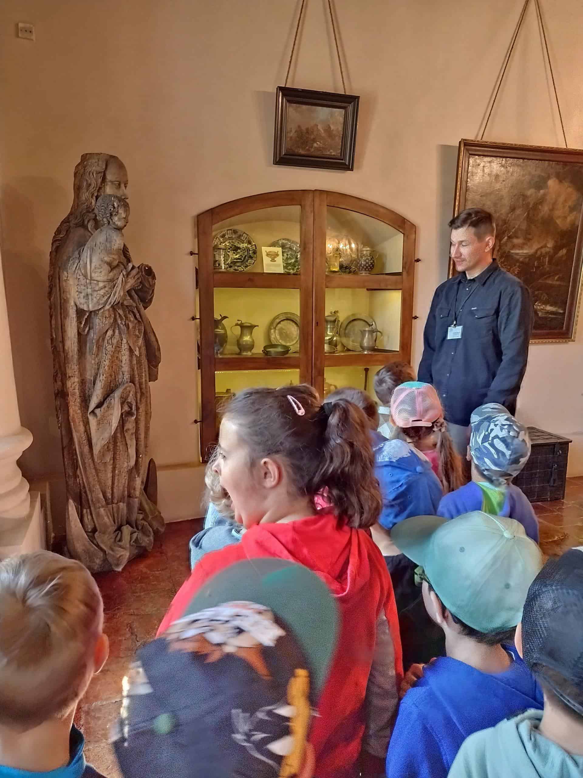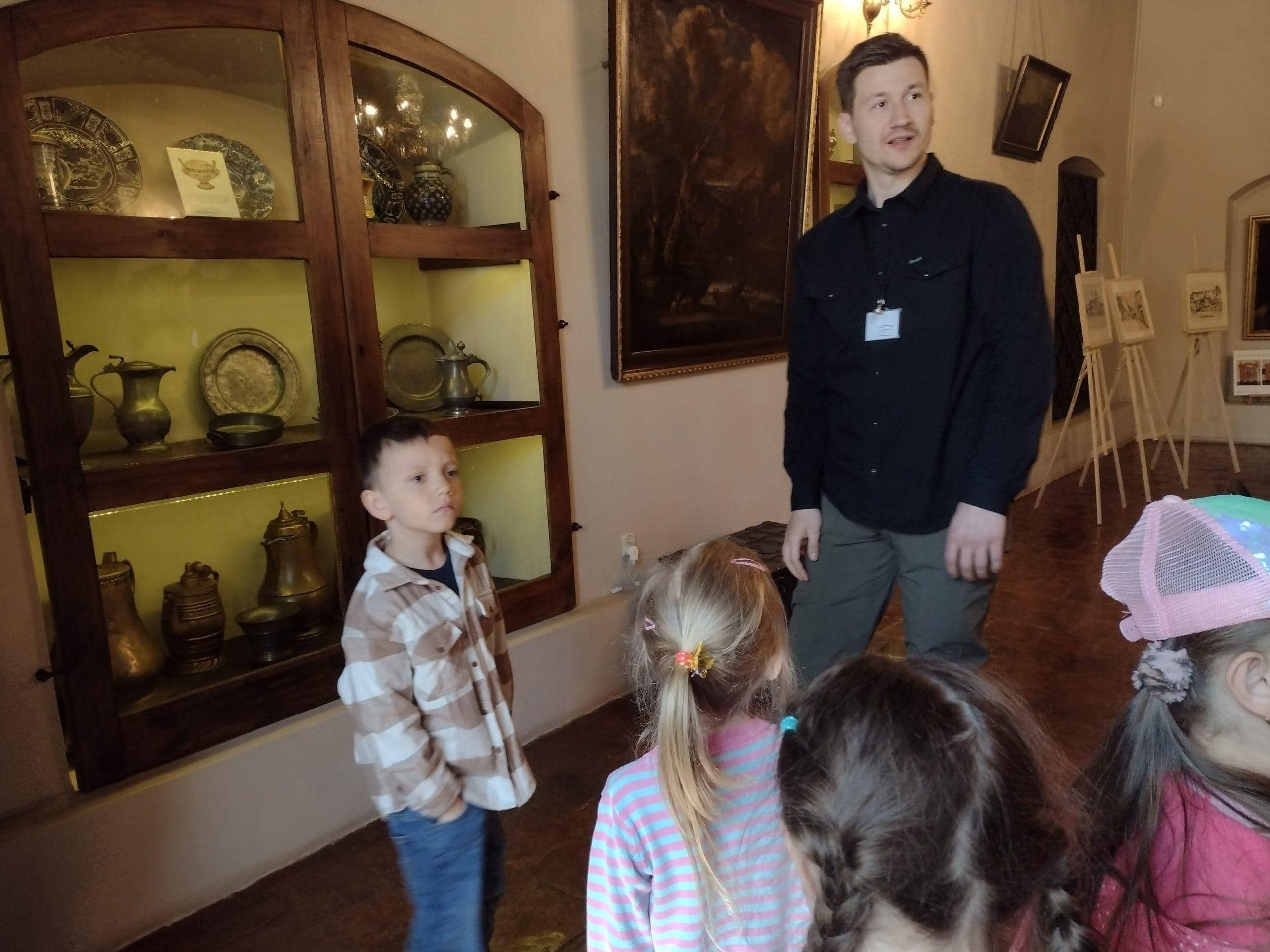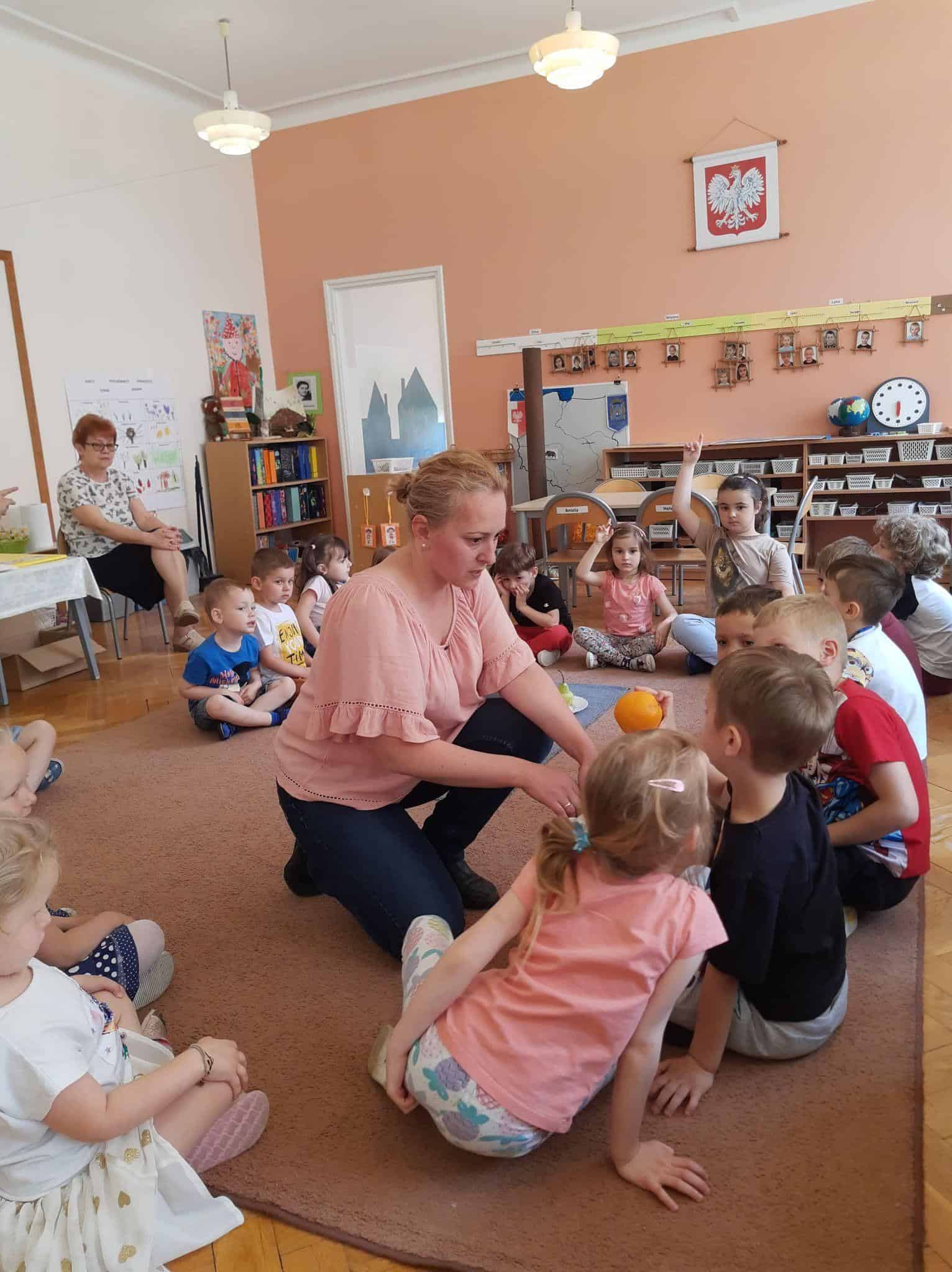 W dniu 19 maja starszaki z naszej grupy i grupy niebieskiej wybrały się razem na pieszą wycieczkę do jarosławskiego muzeum. Gdy dotarliśmy na rynek, nie mogliśmy się oprzeć urokowi pięknych, kolorowych kamieniczek otaczających rynek. Dzieci wypatrywały ozdobnych detali na fasadach kamienic, w różnych kształtach przypominających kwiaty i liście. Obejrzeliśmy także ratusz stojący w centralnym miejscu rynku, podziwialiśmy wieżę ratuszową i zegar na niej umieszczony. Największym zainteresowaniem cieszyła się jednak fontanna wyrzucająca raz po raz wodę. Gdy weszliśmy do muzeum, przywitała nas przewodnik, który oprowadzał dzieci po kupieckiej kamienicy Orsettich w Jarosławiu. Dzieci były zauroczone wnętrzami, zadawały dużo pytań i uważnie przyglądały się przedmiotom. Największą trudność sprawiło im nie dotykanie eksponatów, gdyż jak wiadomo dzieci, aby poznać – chcą dotknąć. Zwiedzaliśmy Wielką Izbę, gdzie właściciel gościł swoich partnerów w interesach i podpisywał ważne umowy kupieckie. Weszliśmy także na piętro, gdzie właściciele kamienicy mieli swoje prywatne pomieszczenia. Dzieci stwierdziły, że jest tam jak w zamku i dało się słyszeć głosy zachwytu nad wnętrzami. Co rusz odkrywały ciekawe przedmioty, które na pierwszy rzut oka nie zdradzały swojego przeznaczenia, dopiero po wyjaśnieniach pana przewodnika wszystko stawało się jasne. Na zakończenie dzieci mogły przenieść się starodawnego sklepu z zabytkową kasą, a także samodzielnie wykonać kartki pamiątkowe, a także otrzymały przewodniki dla dzieci „Jarosław (nie) do poznania. Wycieczka była bardzo udana i dzieci jeszcze do końca dnia wspominały, co ciekawego widziały w muzeum.