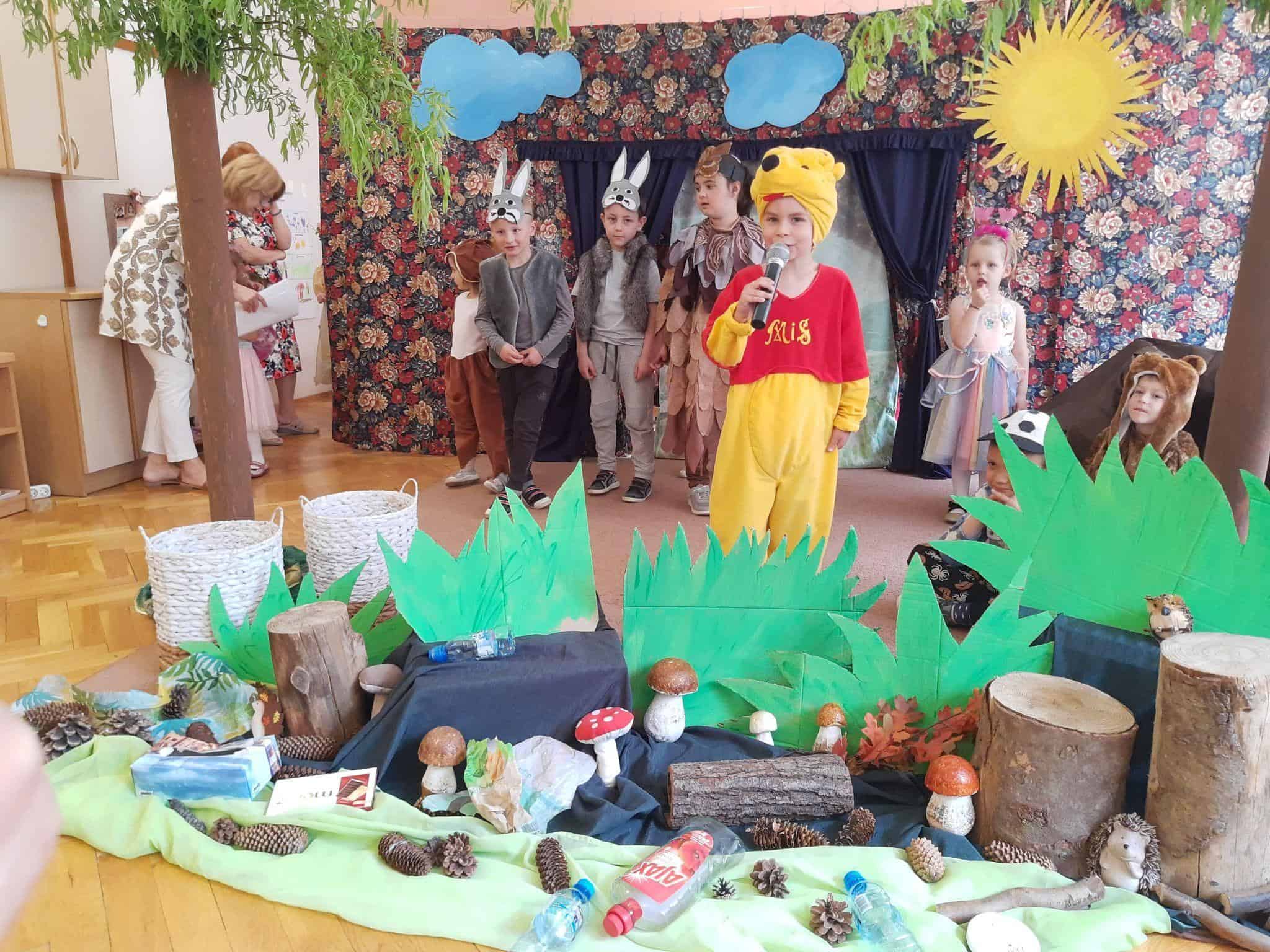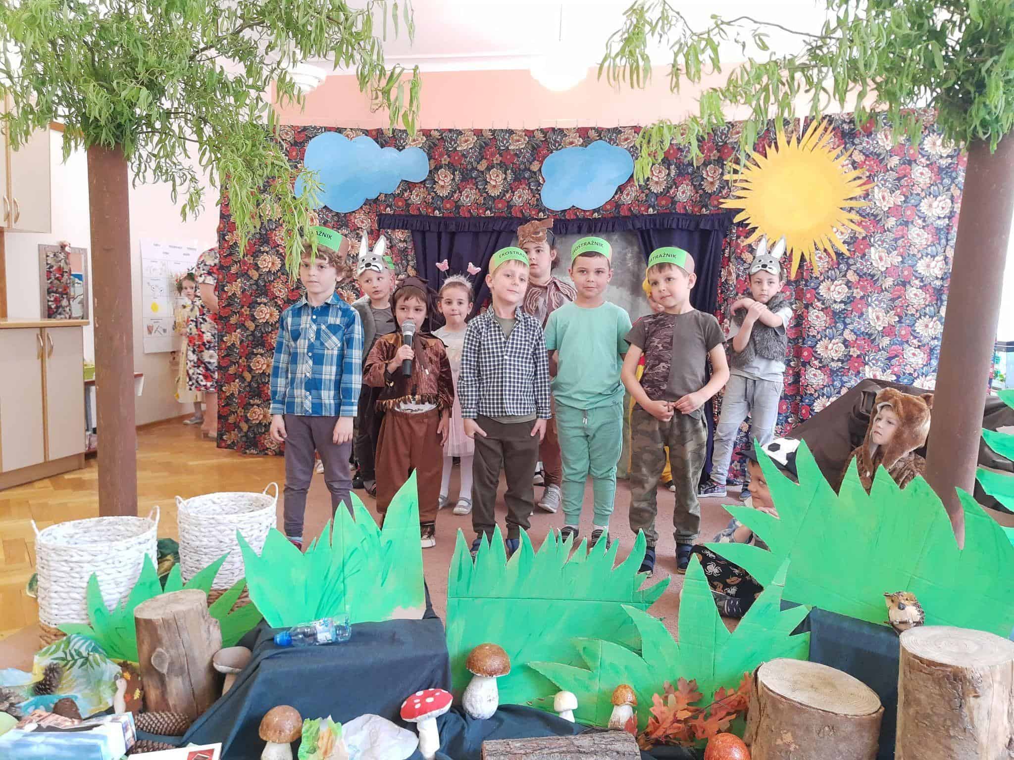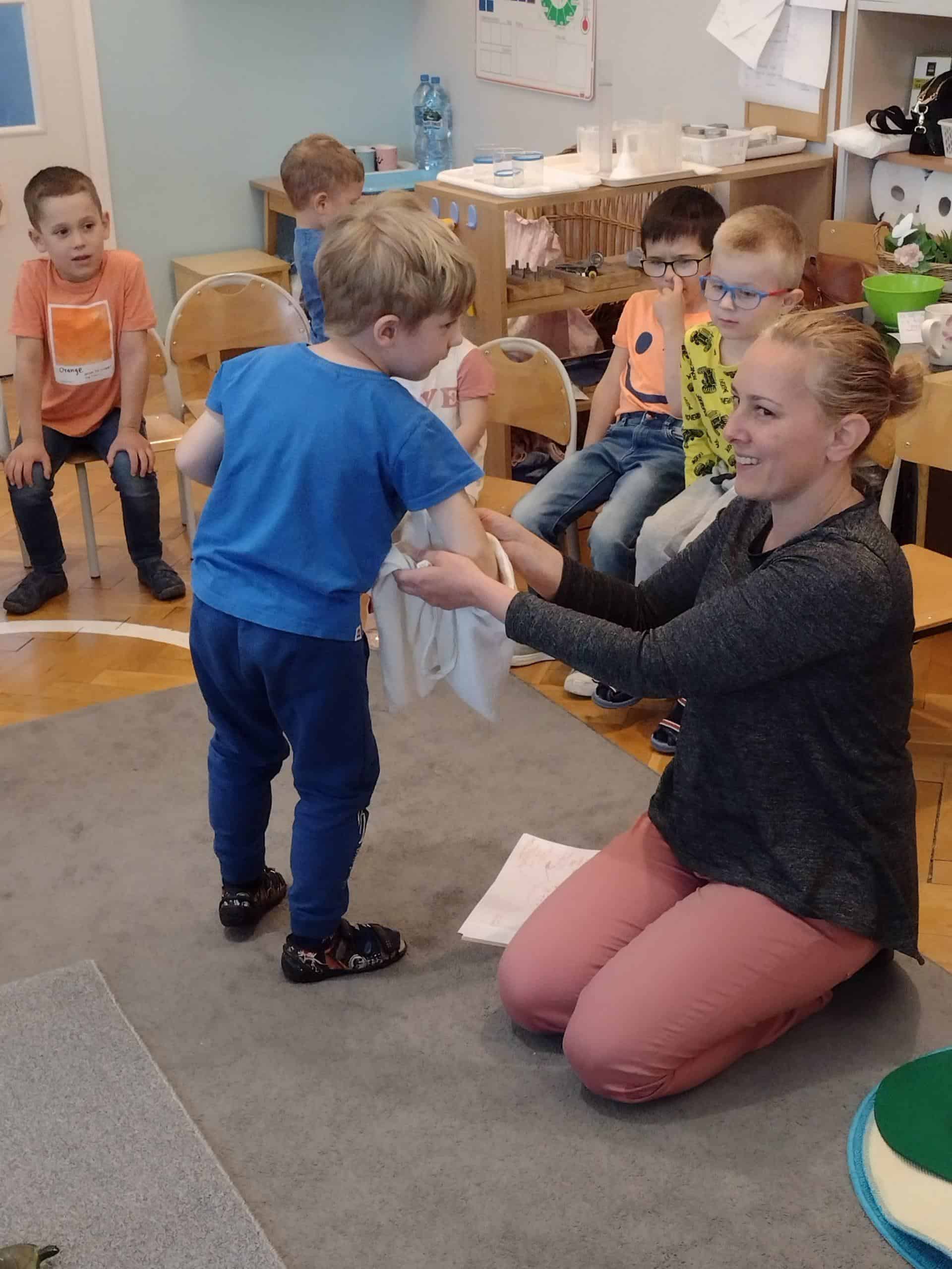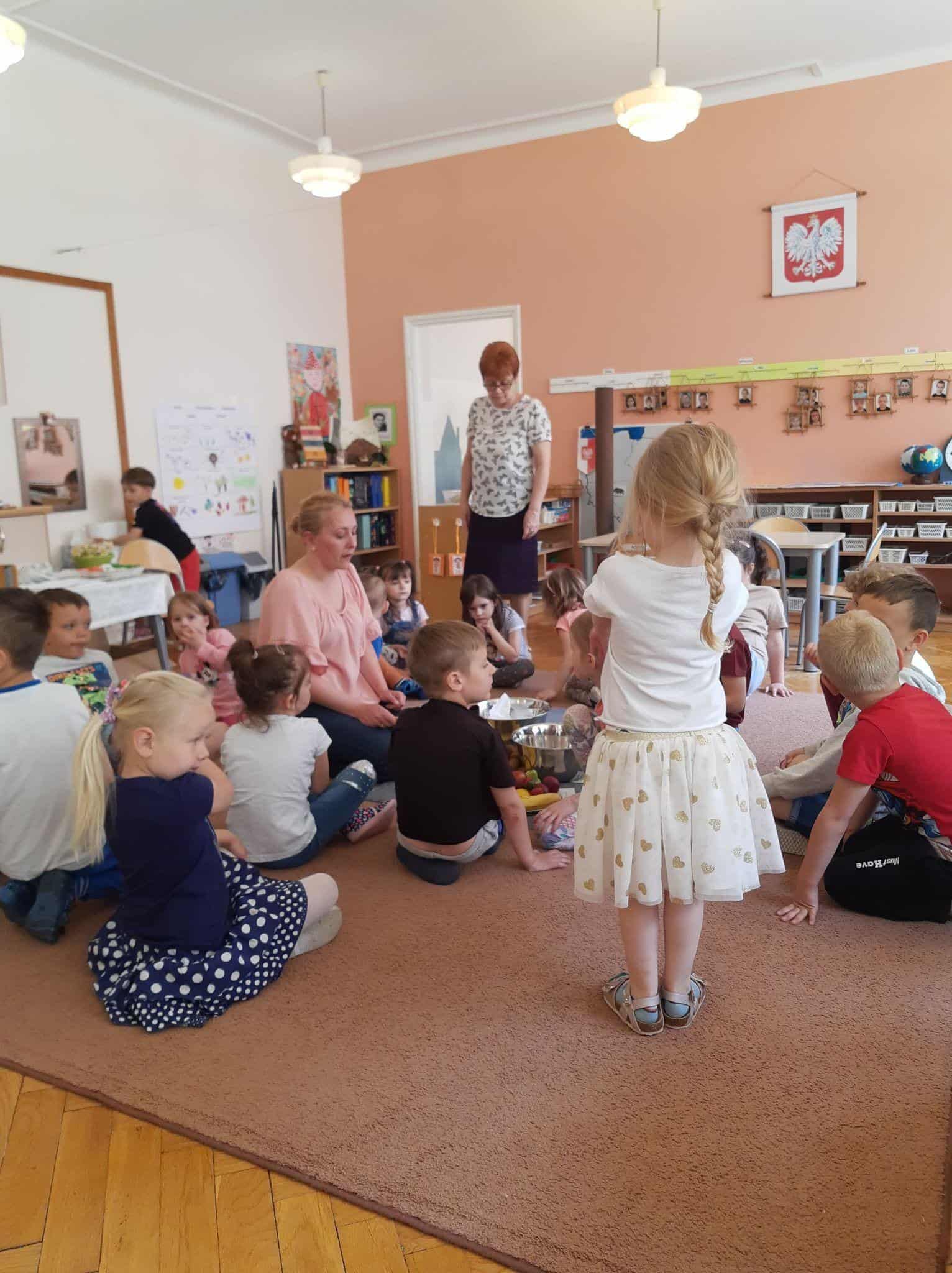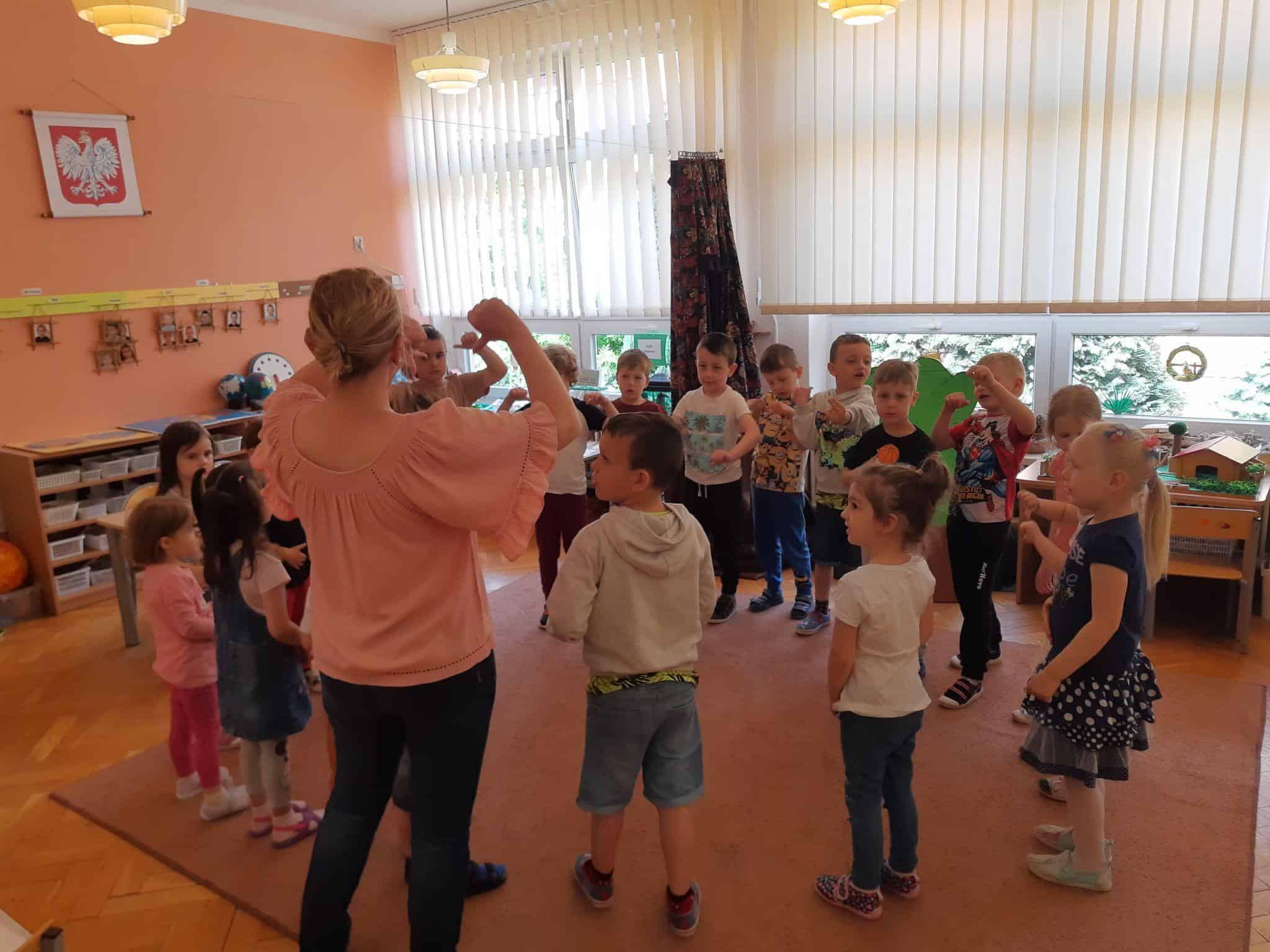 W dniu 19 maja starszaki z naszej grupy i grupy niebieskiej wybrały się razem na pieszą wycieczkę do jarosławskiego muzeum. Gdy dotarliśmy na rynek, nie mogliśmy się oprzeć urokowi pięknych, kolorowych kamieniczek otaczających rynek. Dzieci wypatrywały ozdobnych detali na fasadach kamienic, w różnych kształtach przypominających kwiaty i liście. Obejrzeliśmy także ratusz stojący w centralnym miejscu rynku, podziwialiśmy wieżę ratuszową i zegar na niej umieszczony. Największym zainteresowaniem cieszyła się jednak fontanna wyrzucająca raz po raz wodę. Gdy weszliśmy do muzeum, przywitała nas przewodnik, który oprowadzał dzieci po kupieckiej kamienicy Orsettich w Jarosławiu. Dzieci były zauroczone wnętrzami, zadawały dużo pytań i uważnie przyglądały się przedmiotom. Największą trudność sprawiło im nie dotykanie eksponatów, gdyż jak wiadomo dzieci, aby poznać – chcą dotknąć. Zwiedzaliśmy Wielką Izbę, gdzie właściciel gościł swoich partnerów w interesach i podpisywał ważne umowy kupieckie. Weszliśmy także na piętro, gdzie właściciele kamienicy mieli swoje prywatne pomieszczenia. Dzieci stwierdziły, że jest tam jak w zamku i dało się słyszeć głosy zachwytu nad wnętrzami. Co rusz odkrywały ciekawe przedmioty, które na pierwszy rzut oka nie zdradzały swojego przeznaczenia, dopiero po wyjaśnieniach pana przewodnika wszystko stawało się jasne. Na zakończenie dzieci mogły przenieść się starodawnego sklepu z zabytkową kasą, a także samodzielnie wykonać kartki pamiątkowe, a także otrzymały przewodniki dla dzieci „Jarosław (nie) do poznania. Wycieczka była bardzo udana i dzieci jeszcze do końca dnia wspominały, co ciekawego widziały w muzeum.