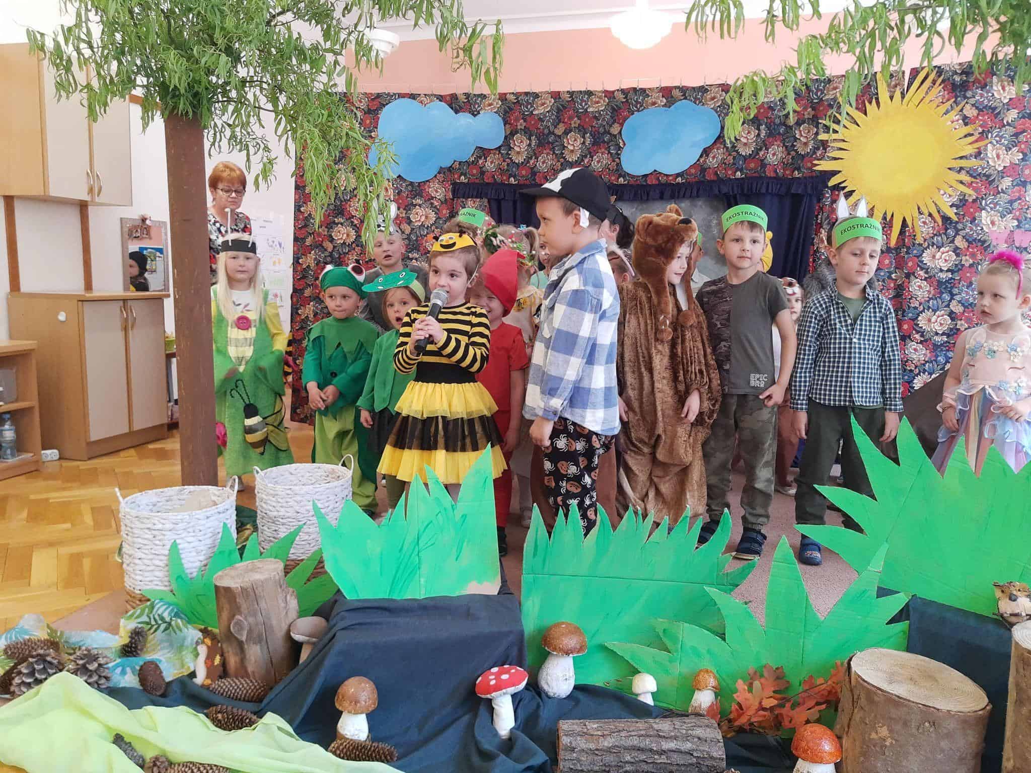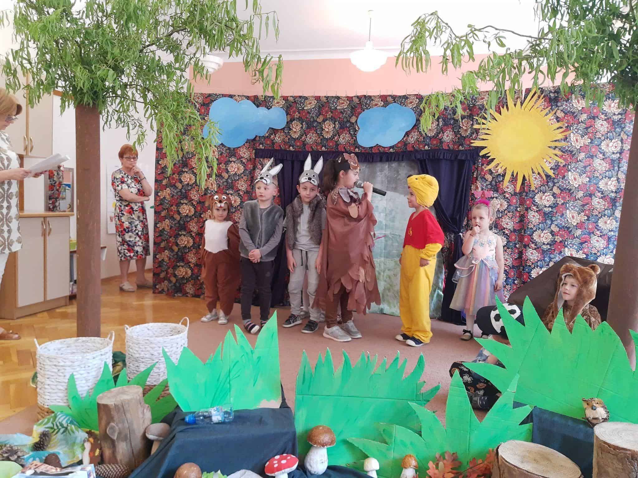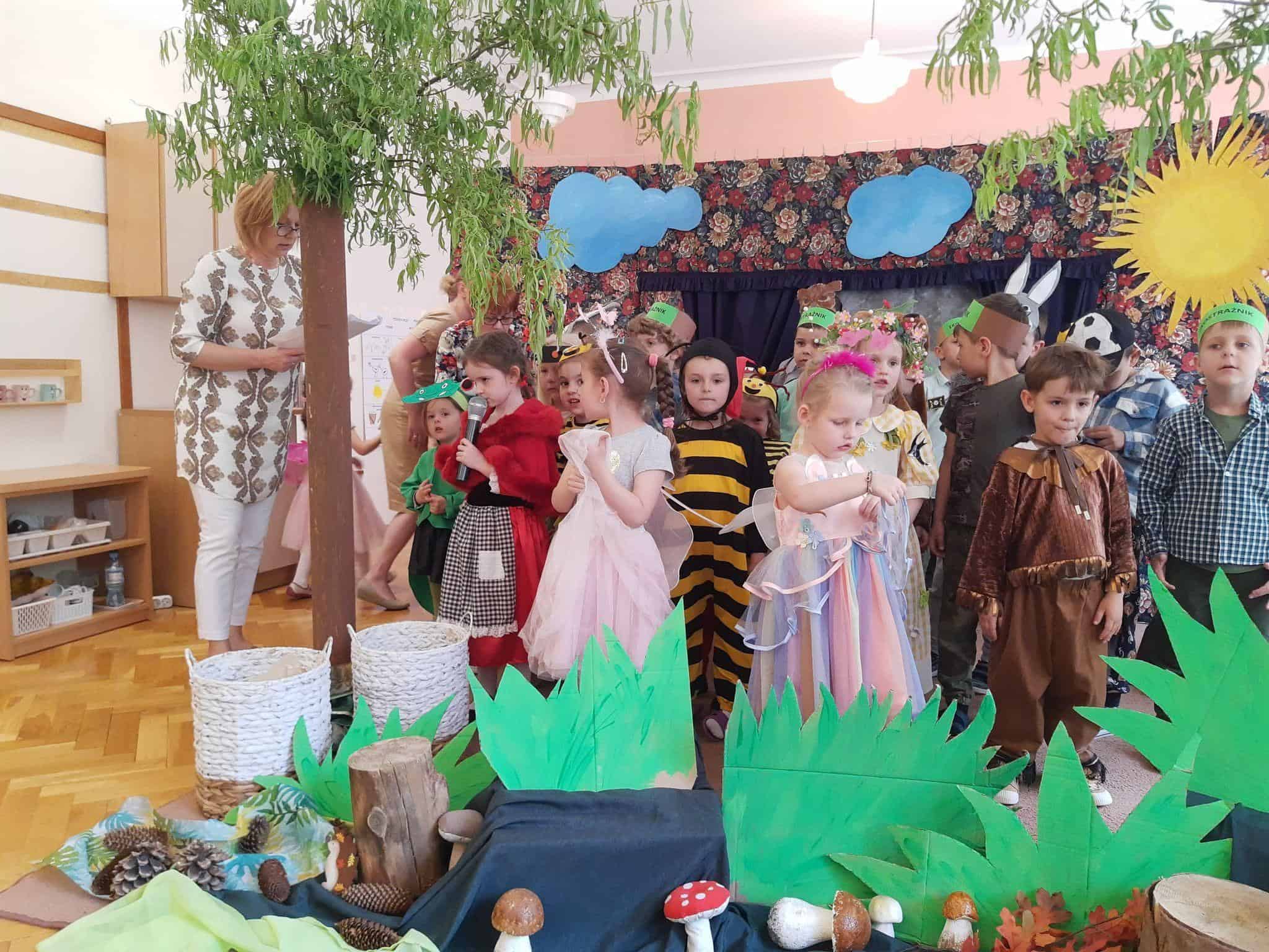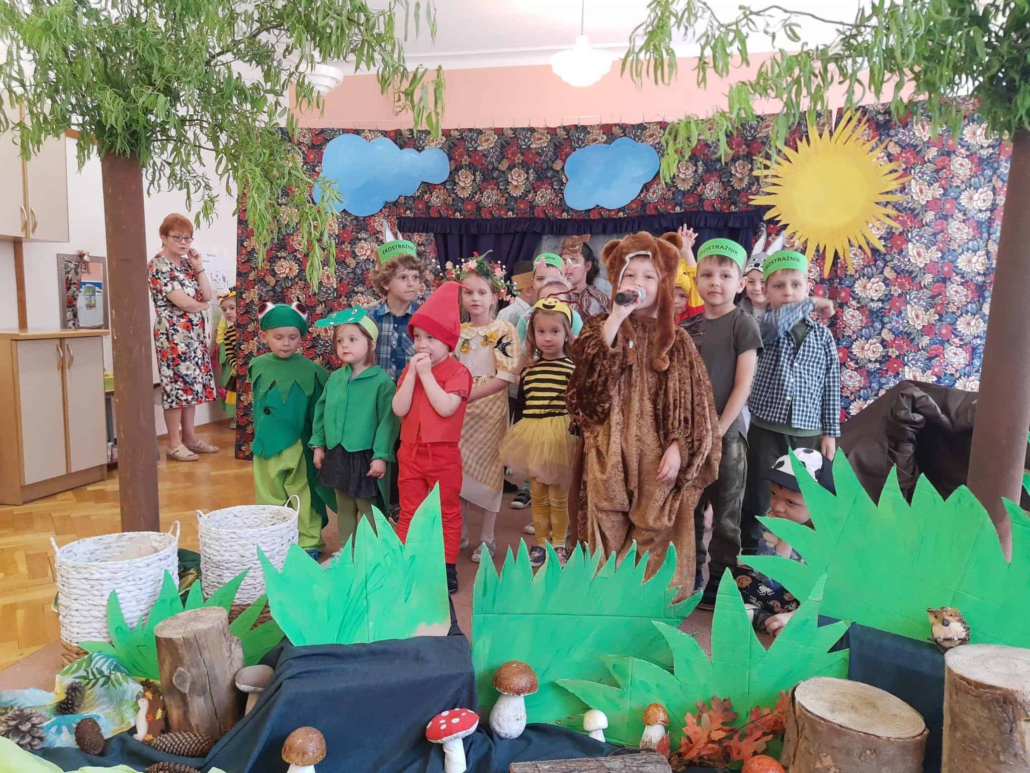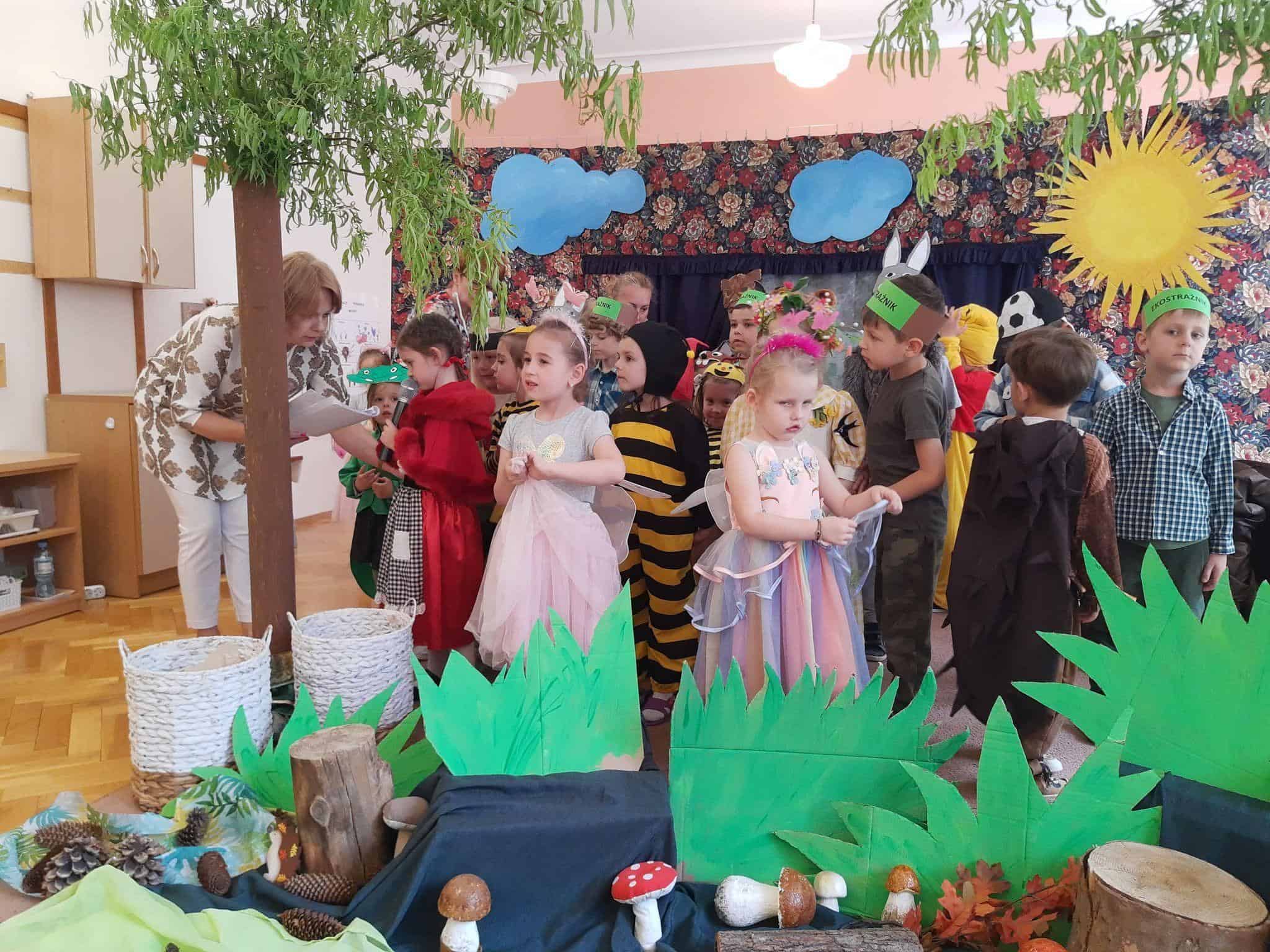 W dniu 19 maja starszaki z naszej grupy i grupy niebieskiej wybrały się razem na pieszą wycieczkę do jarosławskiego muzeum. Gdy dotarliśmy na rynek, nie mogliśmy się oprzeć urokowi pięknych, kolorowych kamieniczek otaczających rynek. Dzieci wypatrywały ozdobnych detali na fasadach kamienic, w różnych kształtach przypominających kwiaty i liście. Obejrzeliśmy także ratusz stojący w centralnym miejscu rynku, podziwialiśmy wieżę ratuszową i zegar na niej umieszczony. Największym zainteresowaniem cieszyła się jednak fontanna wyrzucająca raz po raz wodę. Gdy weszliśmy do muzeum, przywitała nas przewodnik, który oprowadzał dzieci po kupieckiej kamienicy Orsettich w Jarosławiu. Dzieci były zauroczone wnętrzami, zadawały dużo pytań i uważnie przyglądały się przedmiotom. Największą trudność sprawiło im nie dotykanie eksponatów, gdyż jak wiadomo dzieci, aby poznać – chcą dotknąć. Zwiedzaliśmy Wielką Izbę, gdzie właściciel gościł swoich partnerów w interesach i podpisywał ważne umowy kupieckie. Weszliśmy także na piętro, gdzie właściciele kamienicy mieli swoje prywatne pomieszczenia. Dzieci stwierdziły, że jest tam jak w zamku i dało się słyszeć głosy zachwytu nad wnętrzami. Co rusz odkrywały ciekawe przedmioty, które na pierwszy rzut oka nie zdradzały swojego przeznaczenia, dopiero po wyjaśnieniach pana przewodnika wszystko stawało się jasne. Na zakończenie dzieci mogły przenieść się starodawnego sklepu z zabytkową kasą, a także samodzielnie wykonać kartki pamiątkowe, a także otrzymały przewodniki dla dzieci „Jarosław (nie) do poznania. Wycieczka była bardzo udana i dzieci jeszcze do końca dnia wspominały, co ciekawego widziały w muzeum.