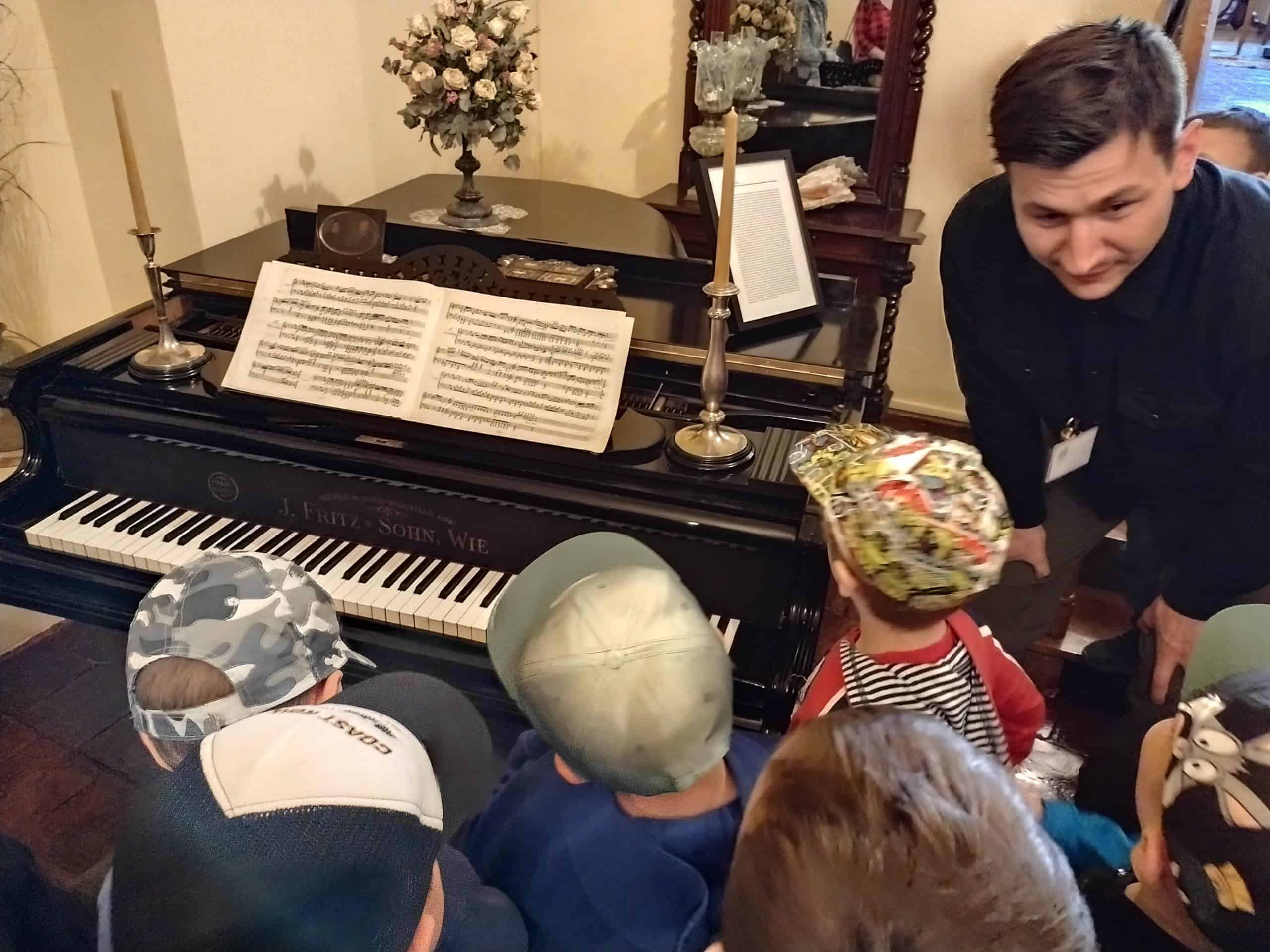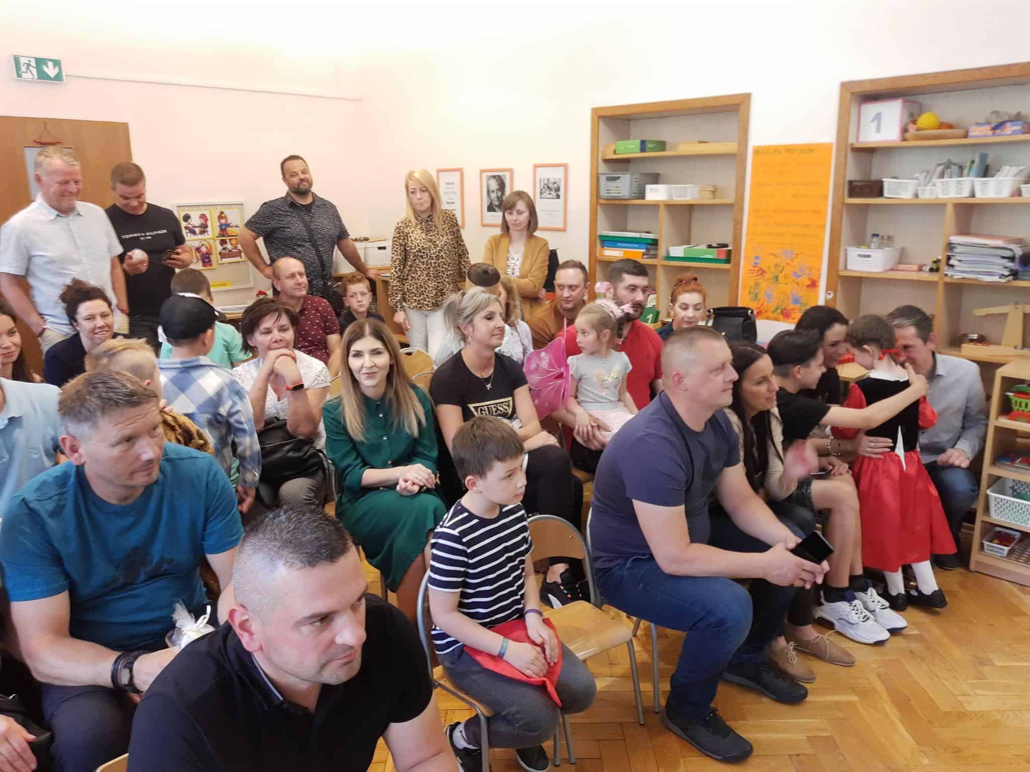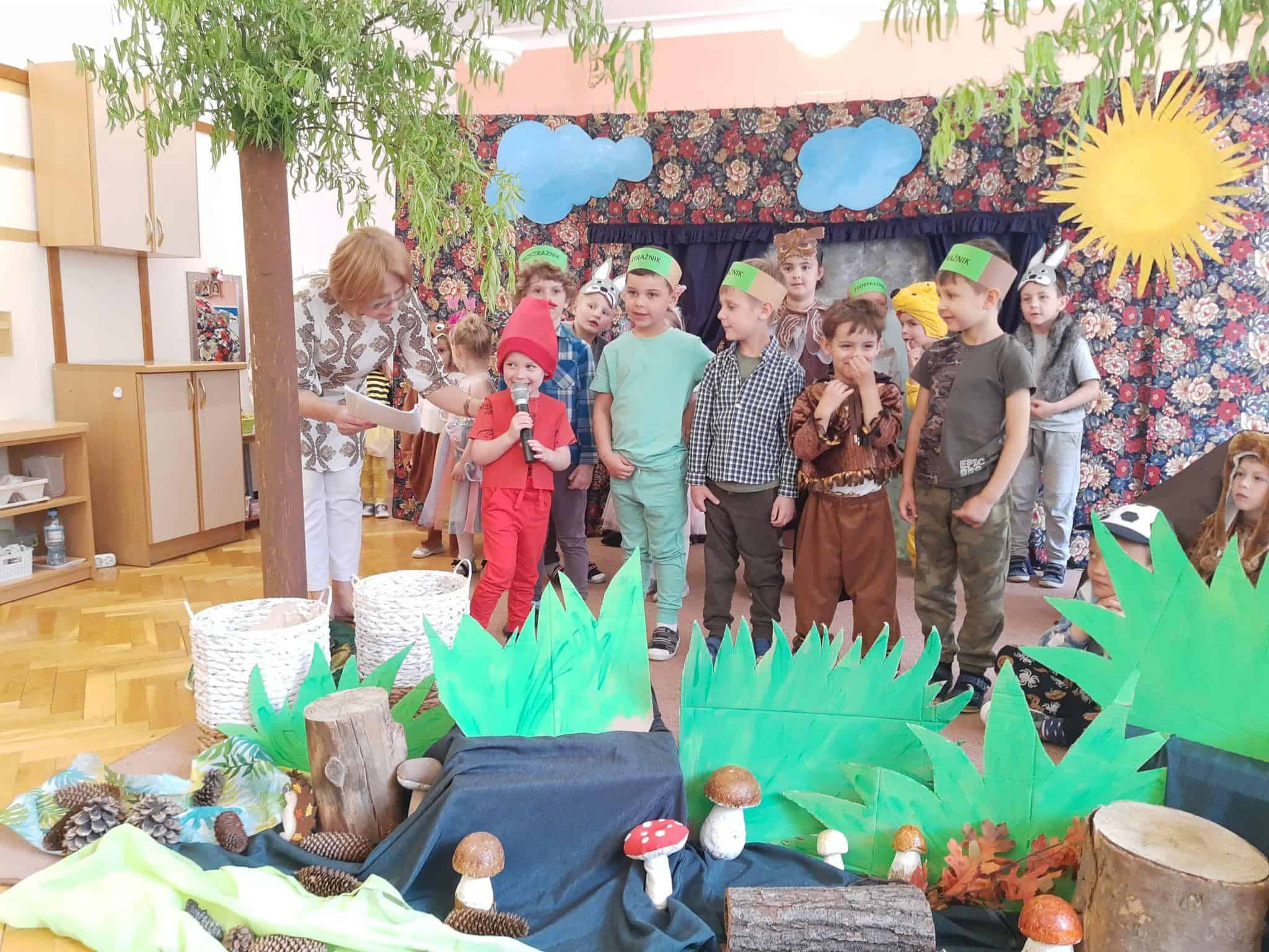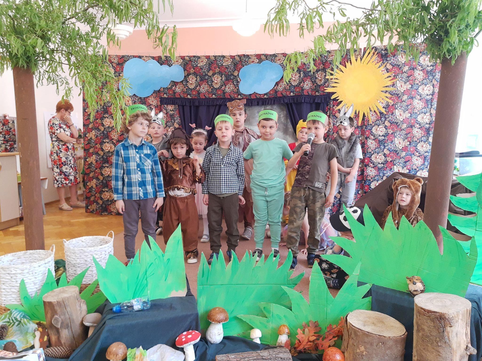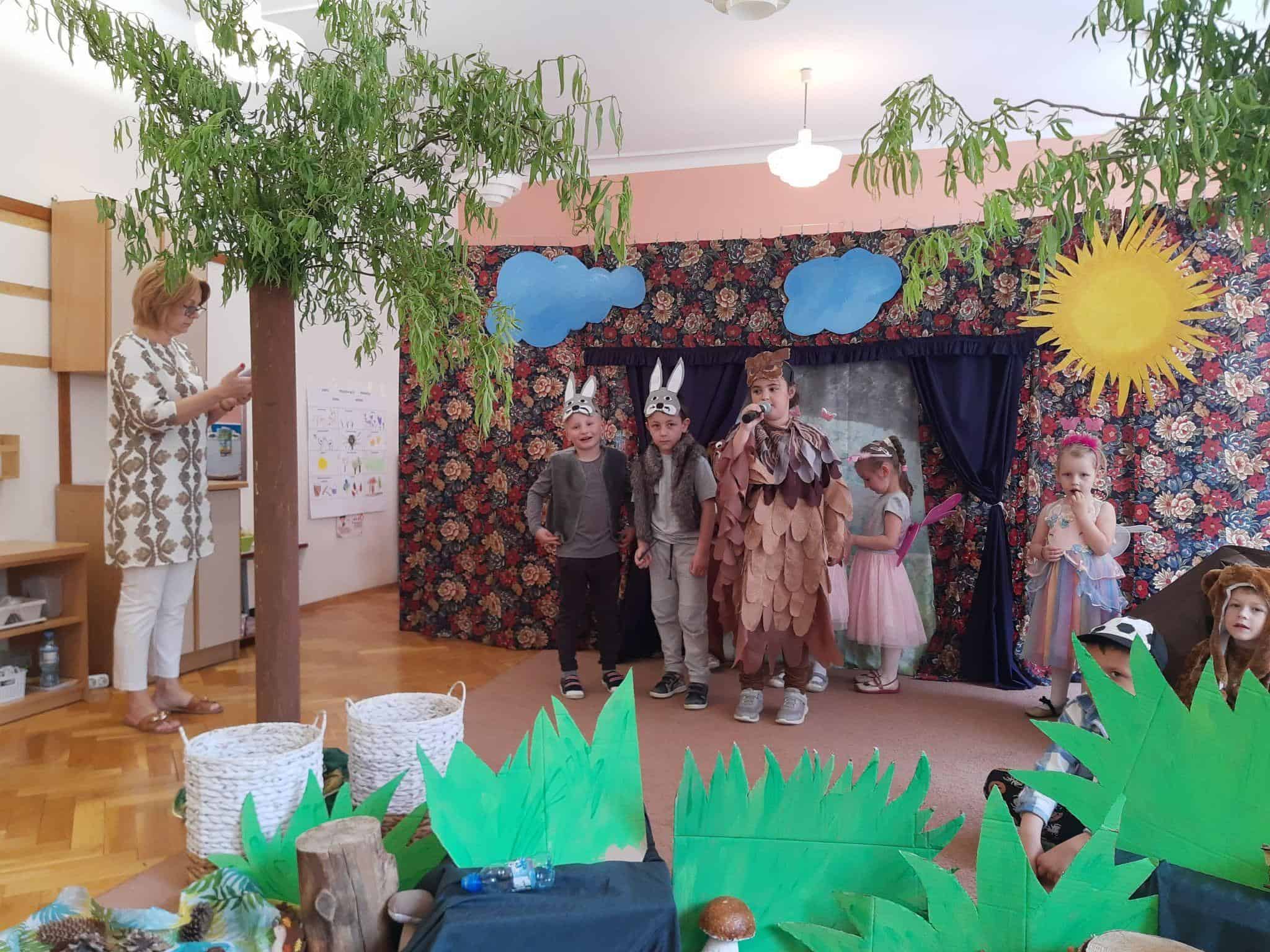 W dniu 19 maja starszaki z naszej grupy i grupy niebieskiej wybrały się razem na pieszą wycieczkę do jarosławskiego muzeum. Gdy dotarliśmy na rynek, nie mogliśmy się oprzeć urokowi pięknych, kolorowych kamieniczek otaczających rynek. Dzieci wypatrywały ozdobnych detali na fasadach kamienic, w różnych kształtach przypominających kwiaty i liście. Obejrzeliśmy także ratusz stojący w centralnym miejscu rynku, podziwialiśmy wieżę ratuszową i zegar na niej umieszczony. Największym zainteresowaniem cieszyła się jednak fontanna wyrzucająca raz po raz wodę. Gdy weszliśmy do muzeum, przywitała nas przewodnik, który oprowadzał dzieci po kupieckiej kamienicy Orsettich w Jarosławiu. Dzieci były zauroczone wnętrzami, zadawały dużo pytań i uważnie przyglądały się przedmiotom. Największą trudność sprawiło im nie dotykanie eksponatów, gdyż jak wiadomo dzieci, aby poznać – chcą dotknąć. Zwiedzaliśmy Wielką Izbę, gdzie właściciel gościł swoich partnerów w interesach i podpisywał ważne umowy kupieckie. Weszliśmy także na piętro, gdzie właściciele kamienicy mieli swoje prywatne pomieszczenia. Dzieci stwierdziły, że jest tam jak w zamku i dało się słyszeć głosy zachwytu nad wnętrzami. Co rusz odkrywały ciekawe przedmioty, które na pierwszy rzut oka nie zdradzały swojego przeznaczenia, dopiero po wyjaśnieniach pana przewodnika wszystko stawało się jasne. Na zakończenie dzieci mogły przenieść się starodawnego sklepu z zabytkową kasą, a także samodzielnie wykonać kartki pamiątkowe, a także otrzymały przewodniki dla dzieci „Jarosław (nie) do poznania. Wycieczka była bardzo udana i dzieci jeszcze do końca dnia wspominały, co ciekawego widziały w muzeum.