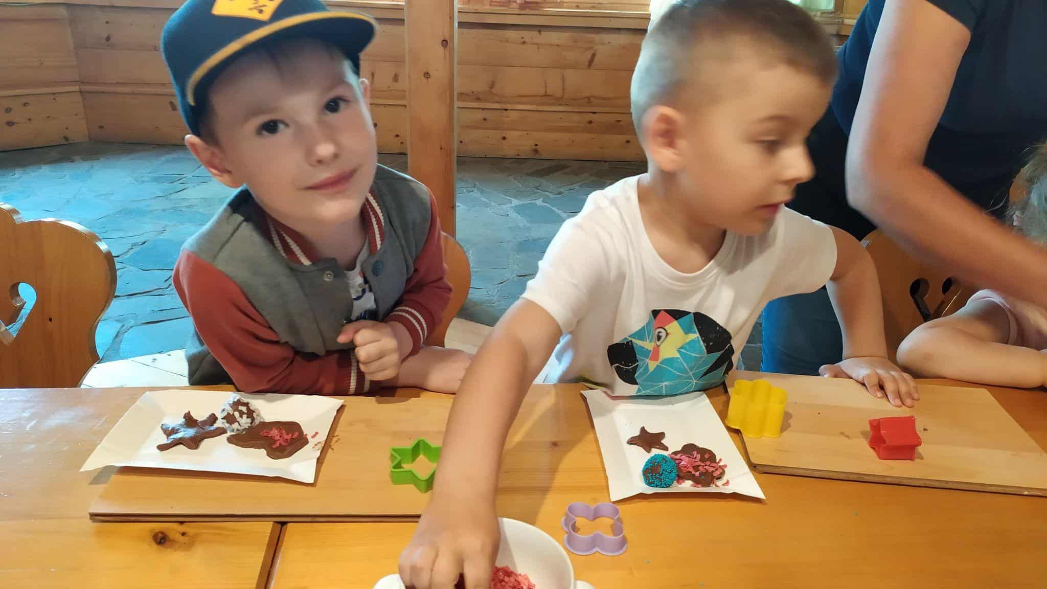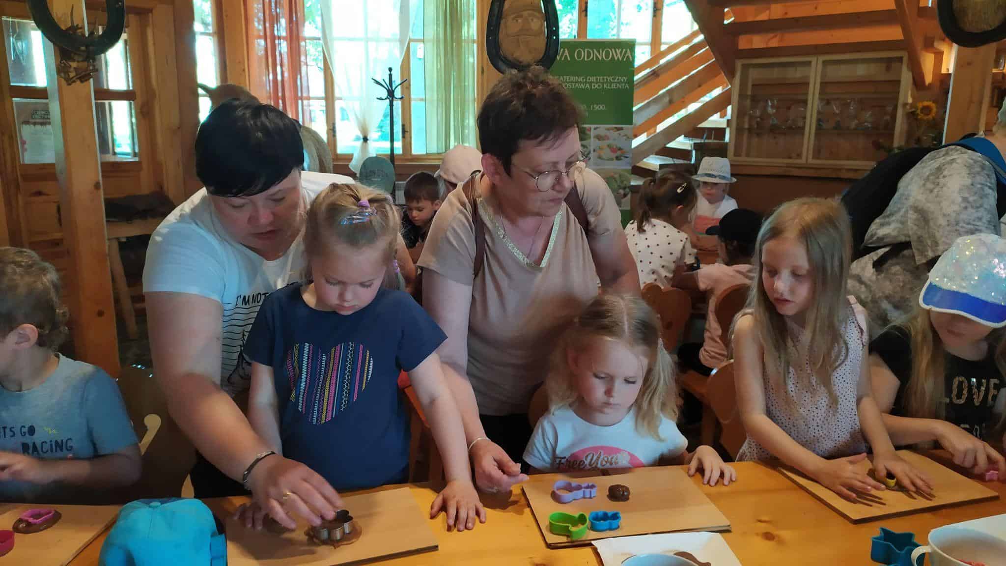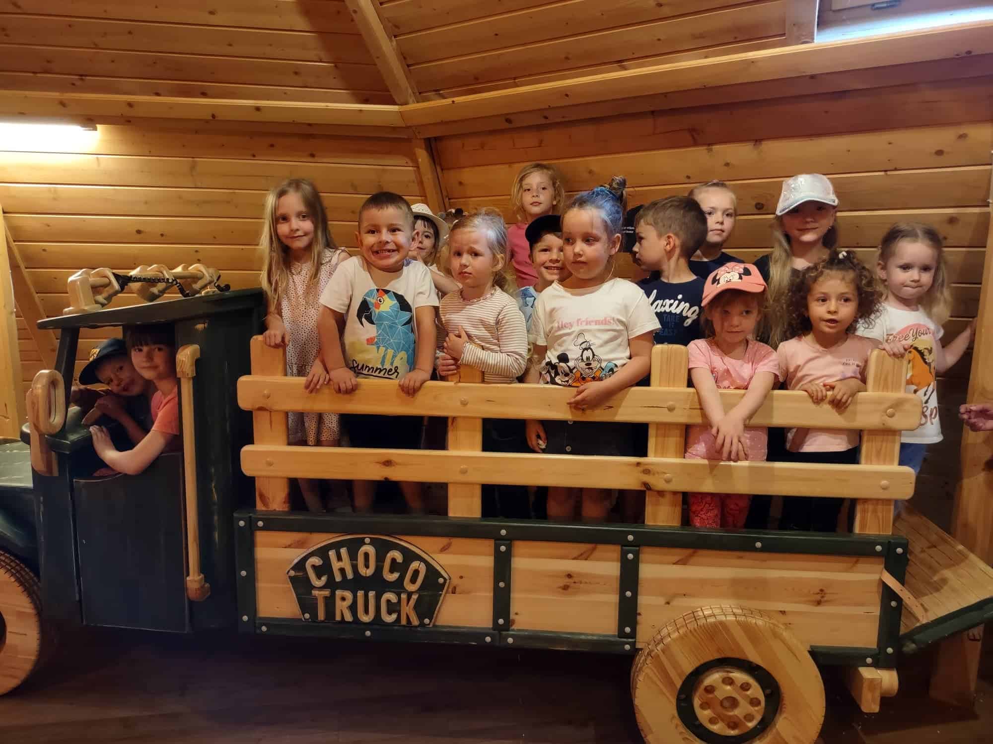 8 czerwca dzieci z naszej grupy wybrały się na autokarową wycieczkę do Wapowiec. Już sam przejazd autokarem był dla nich nie lada przygodą, ale główne atrakcje czekały nas na miejscu. Swój pobyt rozpoczęliśmy od zwiedzania Fabryki Czekolady – dzieci słuchały o historii czekolady, zmysłowo poznawały jej zapachy i różnorodne smaki. Miały również szansę przyjrzeć się prawdziwym owocom kakaowca. Po części teoretycznej, po zwiedzeniu i zrobieniu zdjęć przeszliśmy piętro niżej, aby spróbować swoich sił w praktyce. Tam czekały już na nas warsztaty manualne z czekoladą w roli głównej. Dzieci ugniatały, wałkowały, wycinały różne kształty i dekorowały po czym kosztowały swoich wytworów 🙂