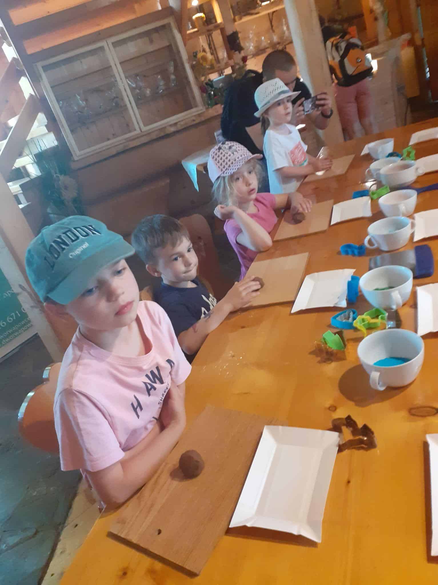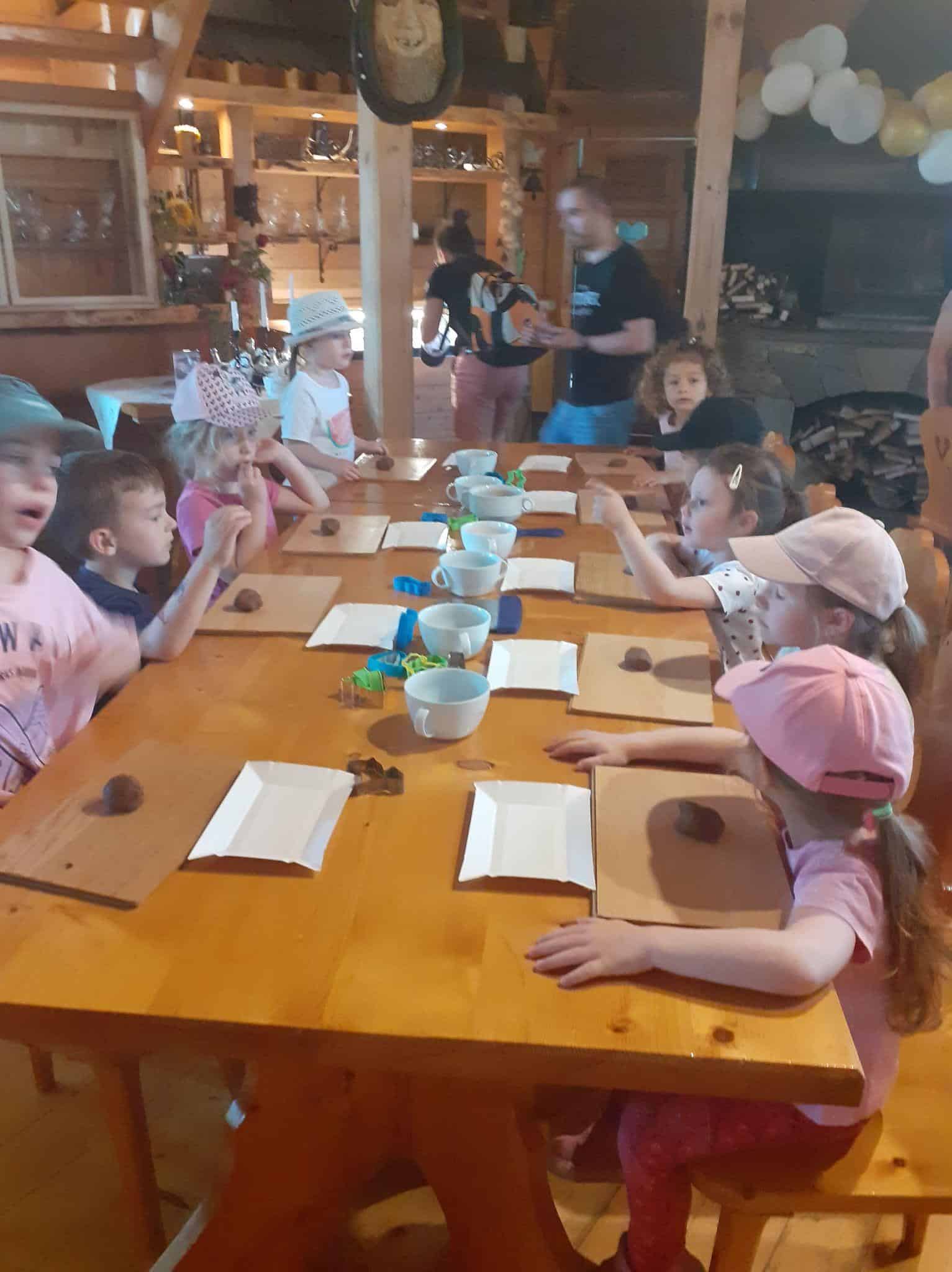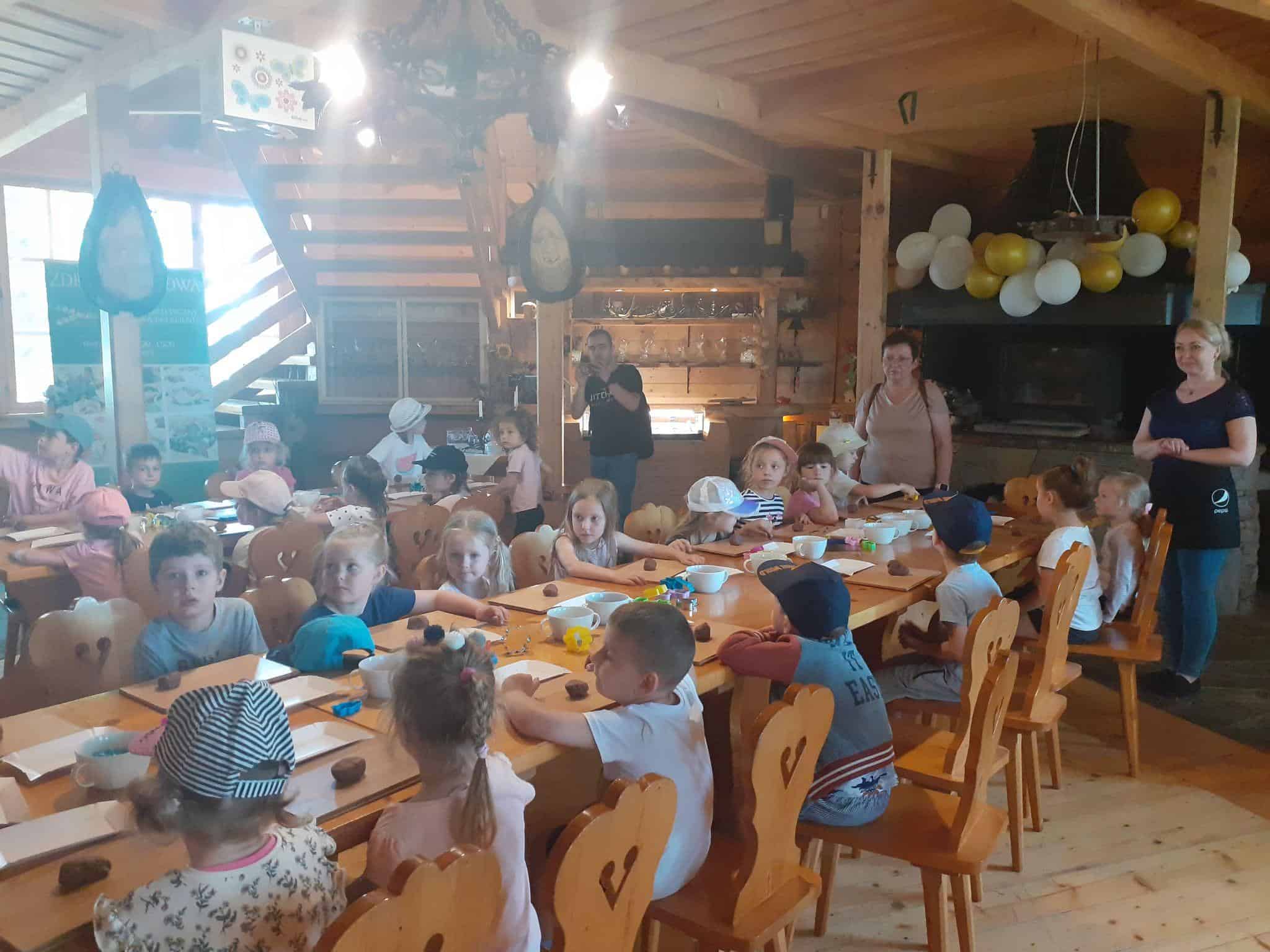 8 czerwca dzieci z naszej grupy wybrały się na autokarową wycieczkę do Wapowiec. Już sam przejazd autokarem był dla nich nie lada przygodą, ale główne atrakcje czekały nas na miejscu. Swój pobyt rozpoczęliśmy od zwiedzania Fabryki Czekolady – dzieci słuchały o historii czekolady, zmysłowo poznawały jej zapachy i różnorodne smaki. Miały również szansę przyjrzeć się prawdziwym owocom kakaowca. Po części teoretycznej, po zwiedzeniu i zrobieniu zdjęć przeszliśmy piętro niżej, aby spróbować swoich sił w praktyce. Tam czekały już na nas warsztaty manualne z czekoladą w roli głównej. Dzieci ugniatały, wałkowały, wycinały różne kształty i dekorowały po czym kosztowały swoich wytworów 🙂