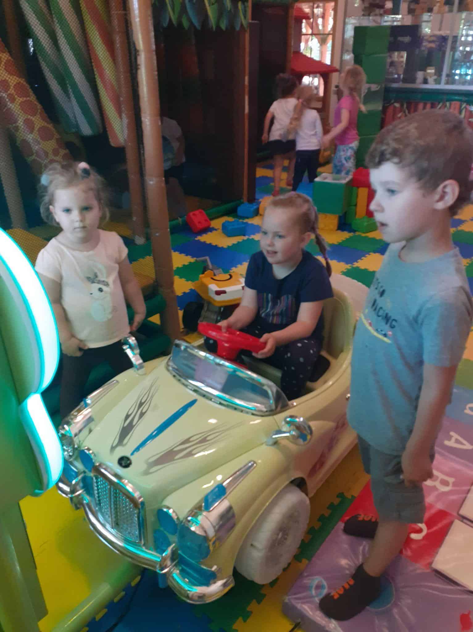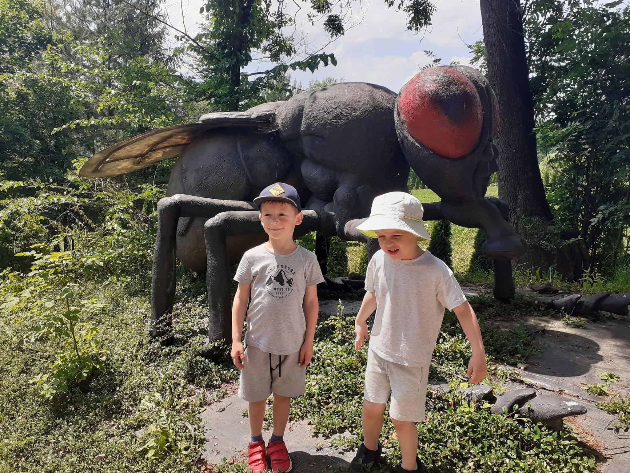 Oprócz warsztatów mieliśmy także do dyspozycji salę zabaw „Koliberek”, gdzie mogliśmy do woli wyhasać się na zjeżdżalniach, w suchym basenie z piłkami, poskakać na trampolinie, skorzystać ze ścianki wspinaczkowej, pograć na interaktywnym pianinie, pobawić się mega klockami, a po odpoczynku i zjedzeniu posiłku poszliśmy wszyscy do Parku Gigantycznych Owadów, które robiły nie tylko na dzieciach ogromne wrażenie 🙂