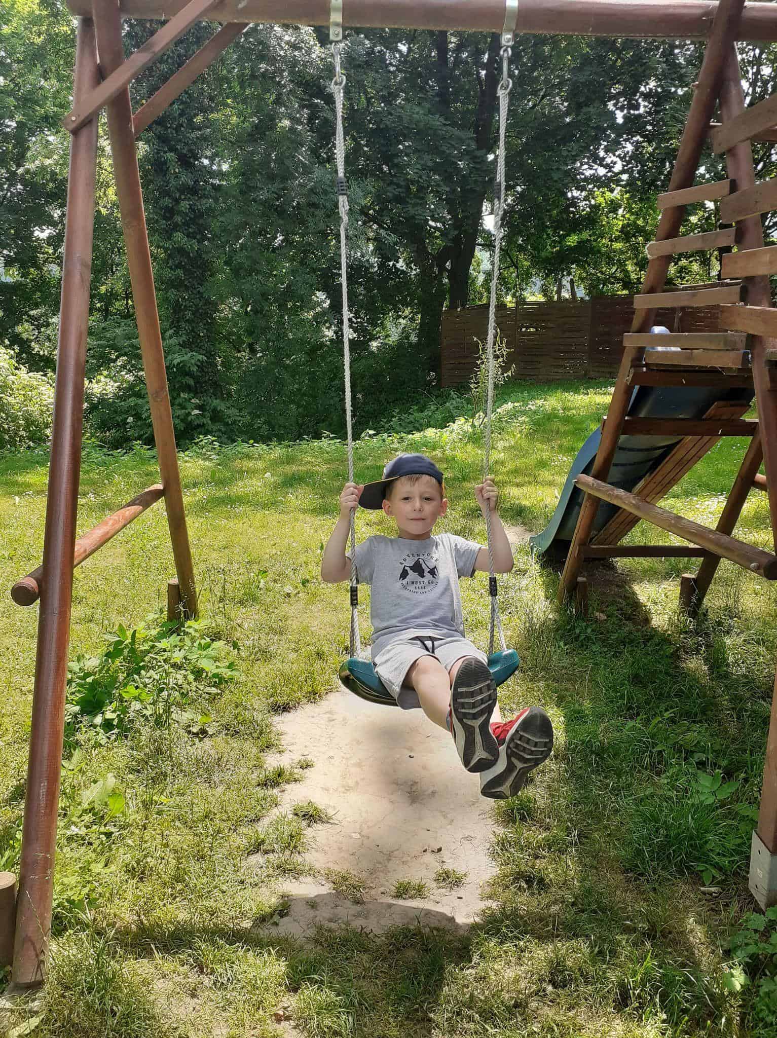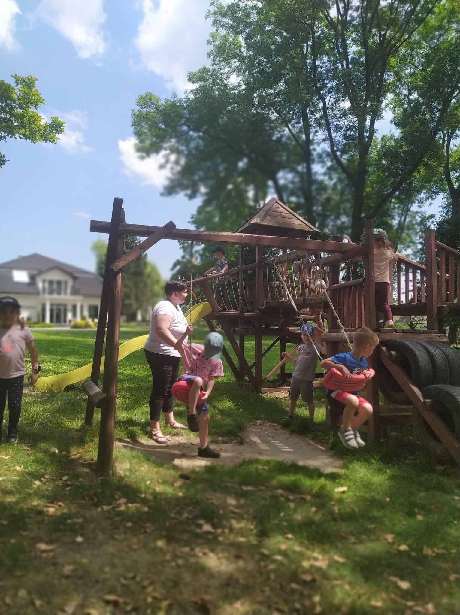 Po tych wszystkich atrakcjach mieliśmy jeszcze do dyspozycji ogromny plac zieleni z altanką, huśtawkami, drabinkami i zjeżdżalniami – radości nie było końca.