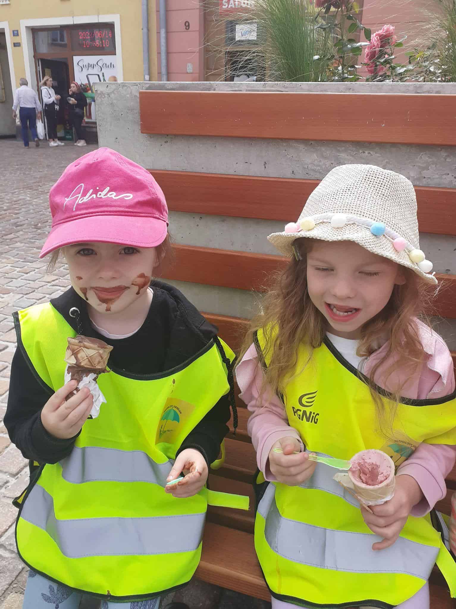 We wtorek, 14 czerwca, przedszkolaki z Grupy Zielonej wybrały się na jarosławski rynek. Nie był to tym razem spacer edukacyjny, ale długo planowane i wyczekiwane przez wszystkich wyjście na lody. Po dotarciu na miejsce wszyscy ustawili się w długi pociąg, który był naszą kolejką po lody. Dzieci po kolei podchodząc wybierały smak lodowej gałki. Wybory były różne, ale przeważał smak czekoladowy i smerfowy oczywiście 🙂