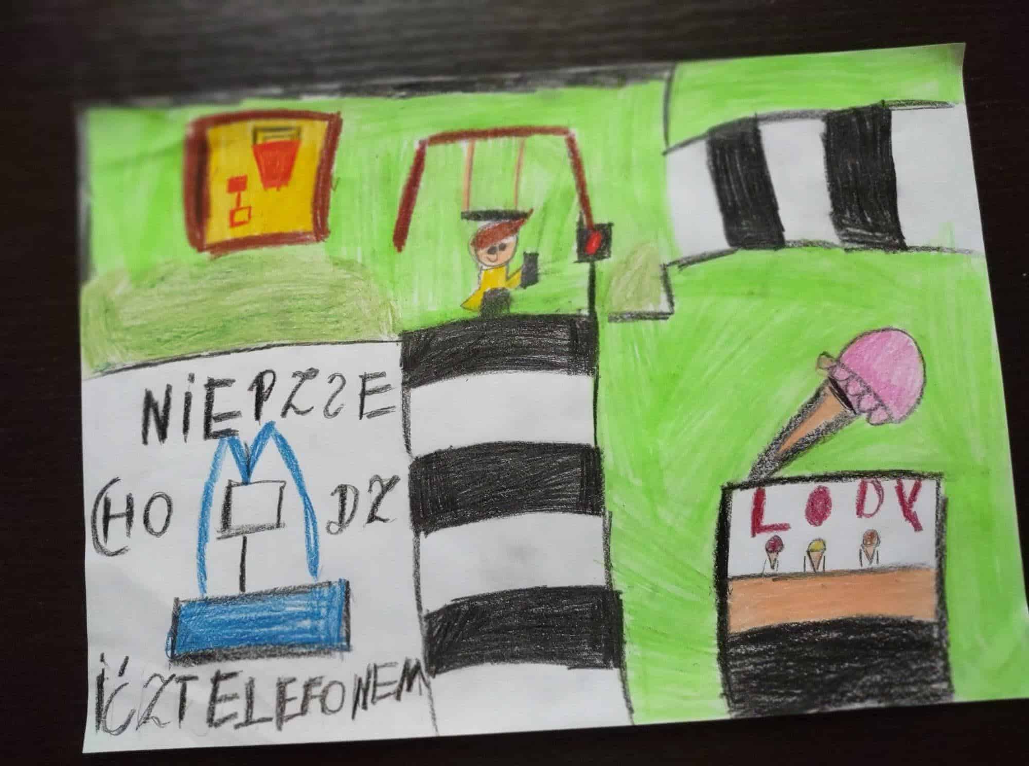 Czas wakacji to okres, kiedy rozmawiamy z dziećmi o rzeczach przyjemnych, ale nie unikamy też tematów trudnych związanych z niebezpieczeństwami na wakacjach – utonięcia, poparzenia słoneczne, wypadki w ruchu drogowym. Zatem czas zbliżających się wakacji to doskonały okres podczas którego można podjąć tematy związane z szeroko pojętym bezpieczeństwem. Tak też było i u nas, kiedy w ostatnich tygodniach podejmowaliśmy takie właśnie treści. Utrwaliliśmy najważniejsze zasady bezpieczeństwa w ruchu ulicznym, przypomnieliśmy sobie numery alarmowe. Zapoznaliśmy się z zawartością apteczki pierwszej pomocy, rozwiązywaliśmy zagadki o ruchu drogowym, odgrywaliśmy scenki dramowe, które pokazywały jak wiele niebezpieczeństw czyha na nas na drogach. Utrwaleniem zdobytej wiedzy były tworzone przez dzieci prace plastyczne dotyczące właśnie bezpieczeństwa w ruchu drogowych, ale wśród nich znalazły się i takie, które zwracały uwagę na niebezpieczeństwo płynące ze zbyt długiego korzystania z laptopów czy tabletów. Na swoich pracach dzieci doskonale zaakcentowały właściwe przechodzenie przez ulicę, noszenie odblasków, niekorzystanie podczas jazdy czy przechodzenia przez ulicę z telefonów komórkowych. Prace zachwycały różnorodnością, kolorystyką i estetyką wykonania. Wielkie podziękowania kierujemy w stronę Urzędu Miasta Jarosławia za współtworzenie projektu, w którym udział wzięło całe przedszkole (125 dzieci i 9 nauczycielek). To dzięki doposażeniu każdej grupy w materiały plastyczne, artykuły szkolne i pomoce dydaktyczne, kolorowanki oraz edukacyjne gry planszowe możliwe było zorganizowanie tak twórczego i kreatywnego czasu dla dzieci.