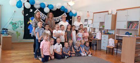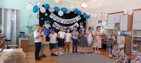 Był to czas niezwykły i niezapomniany, zarówno dla dzieci, rodziców,nauczycielek jak i pań asystentek. Skończył się bowiem 4 – letni okres przyjaźni, wspólnych zabaw i spotkań, wspólnej nauki i pracy. Dzieci, z maluszków, zagubionych i nieśmiałych, stały się samodzielnymi, odważnymi starszakami, pełnymi pomysłów, ciekawymi świata, chętnymi do podejmowania nowych, coraz trudniejszych zadań. Skończył się beztroski okres i nadszedł czas na przyjęcie innych obowiązków. Przedszkolaki pod kierunkiem swoich nauczycielek przygotowały specjalnie na tę okazję występ artystyczny. Były wiersze i piosenki. Na pamiątkę tego wydarzenia dzieci otrzymały pamiątkowe dyplomy, książki i zdjęcia grupowe. Były także życzenia i podziękowania ze strony p. Dyrektor,nauczycielek oraz Rodziców, nie zabrakło również łez wzruszenia. Ale tak to już jest, coś musi się skończyć, aby móc wejść w kolejny, nowy etap życia. Dziękujemy rodzicom za wspólnie spędzony czas, pomoc i wsparcie, dzieciom natomiast życzymy udanych wakacji, samych sukcesów w szkole, uśmiechu na co dzień oraz nowych przyjaźni.