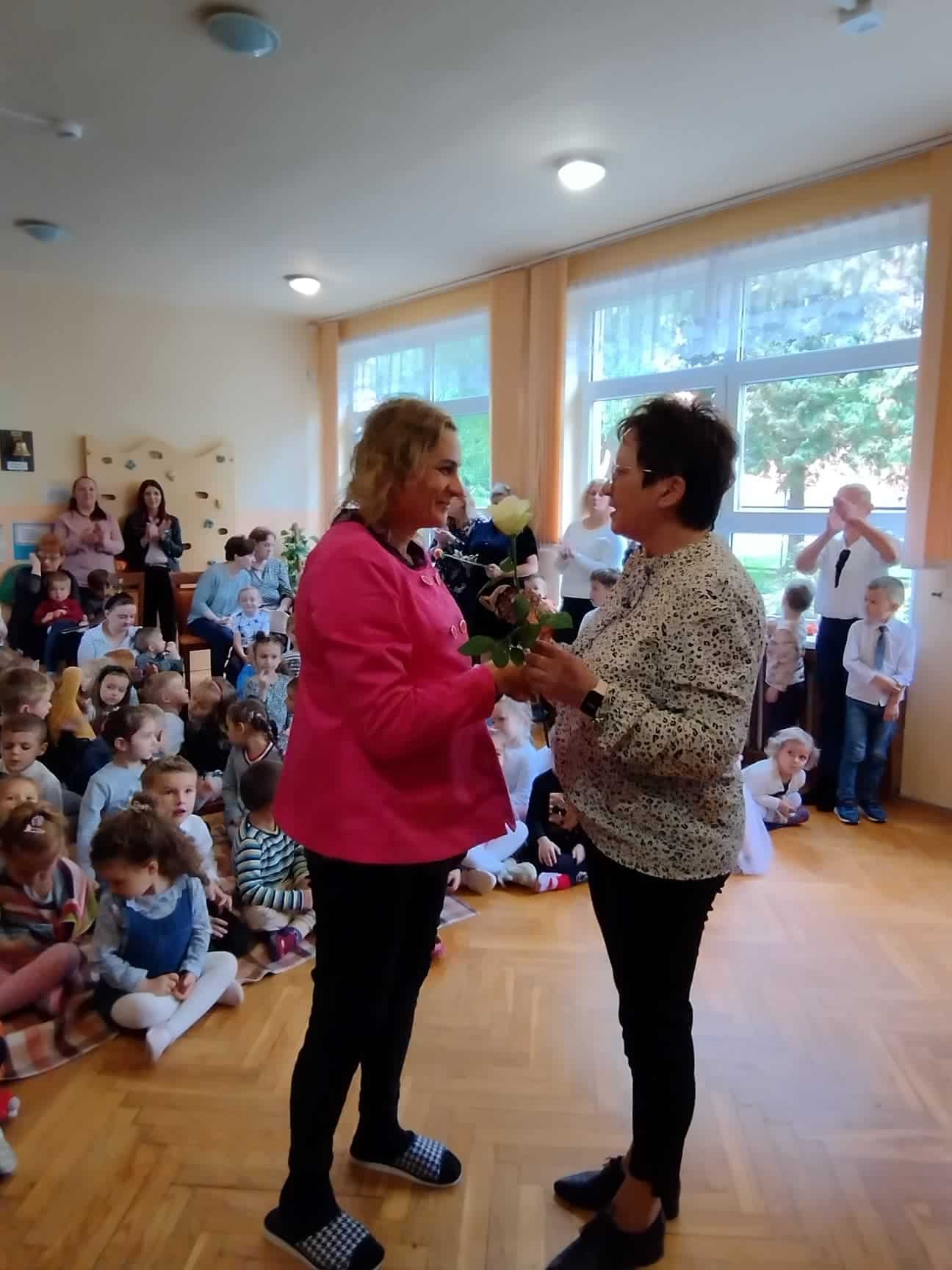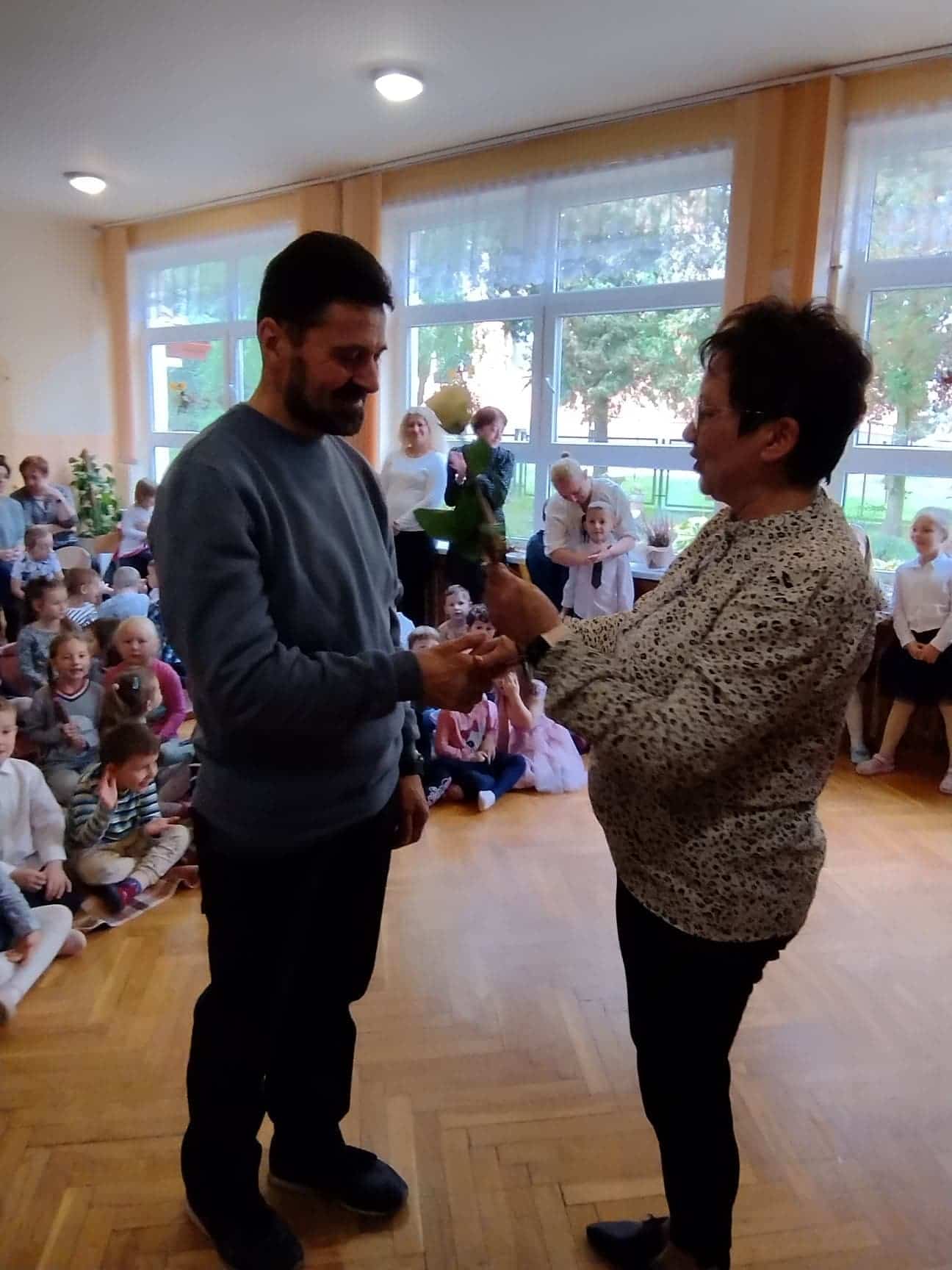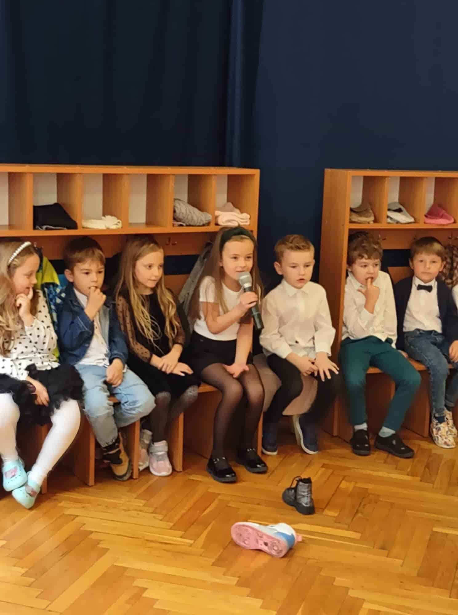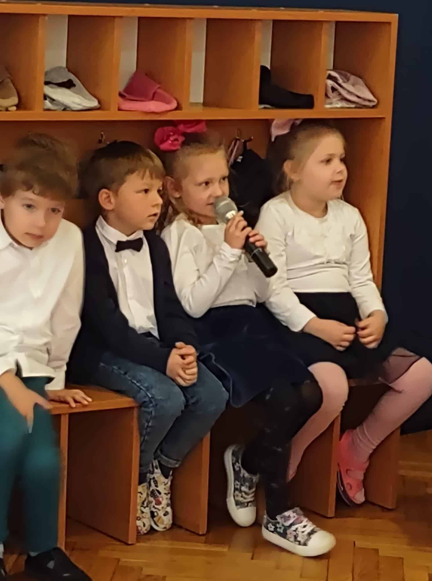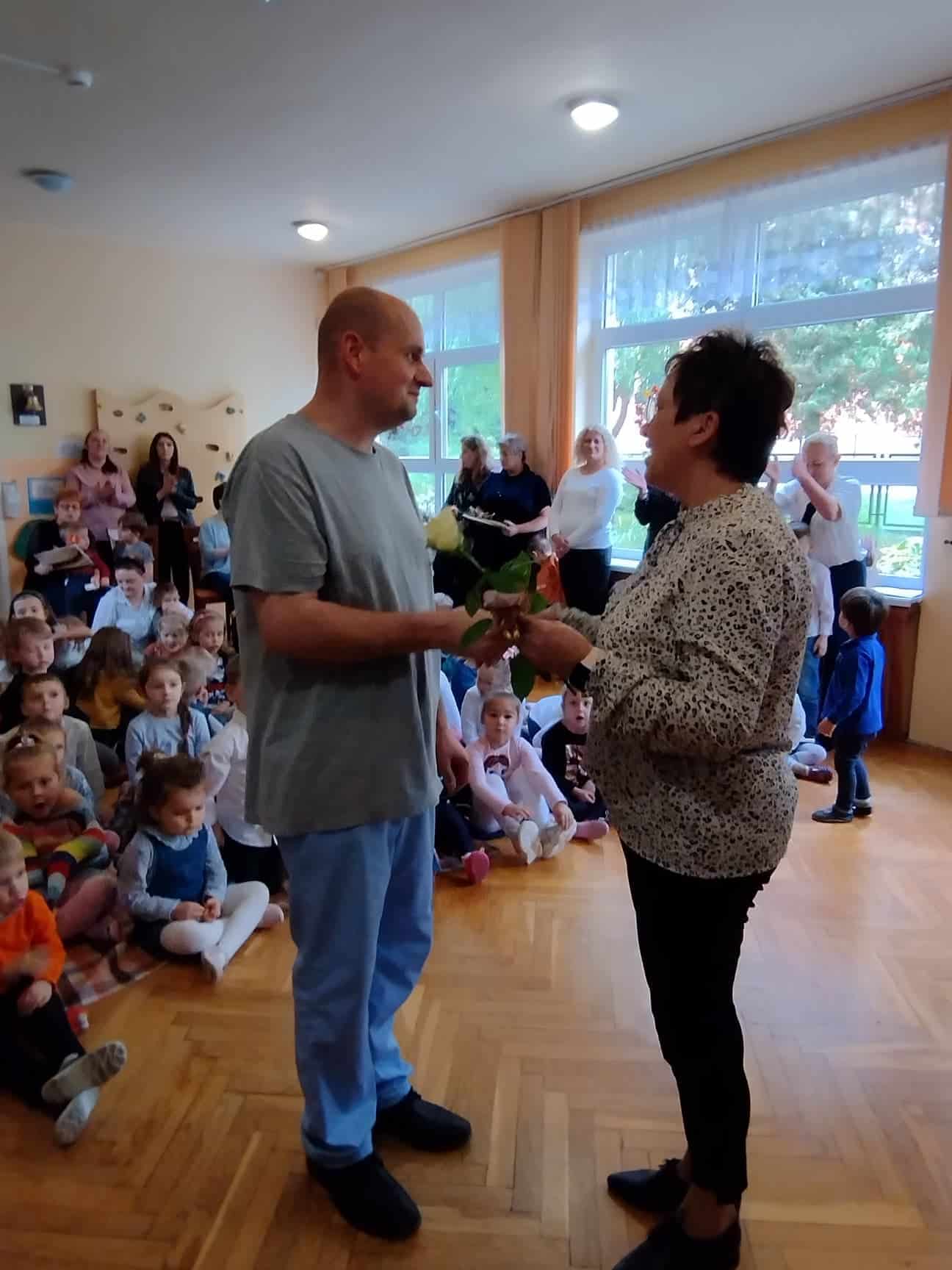 W podziękowaniu za czas spędzony z Panią Eweliną oraz zaprezentowanie książeczki o przygodach skarpetek dzieci zaśpiewały piosenkę „Odkrywam siebie” a p. Ewelina obdarowała wszystkich słodkim upominkiem.