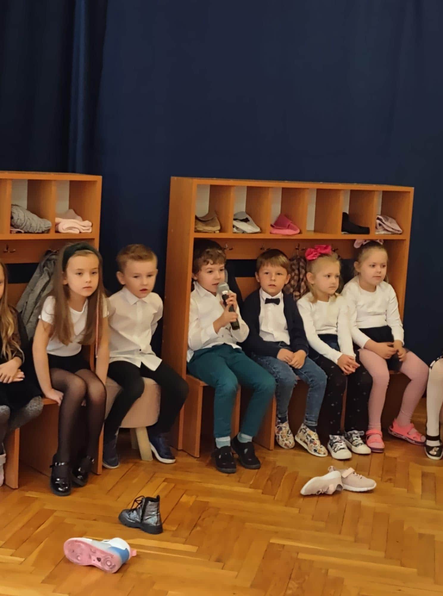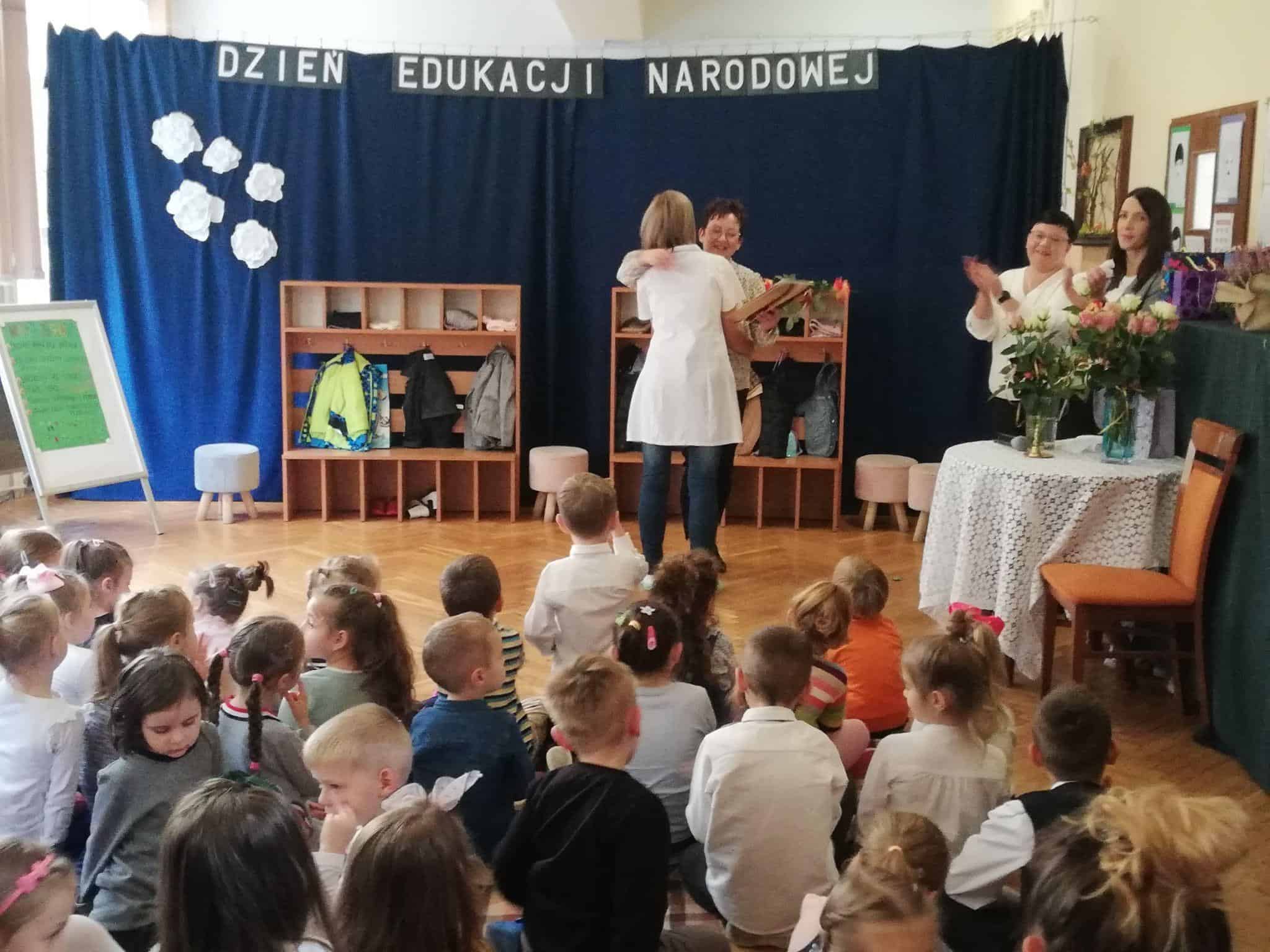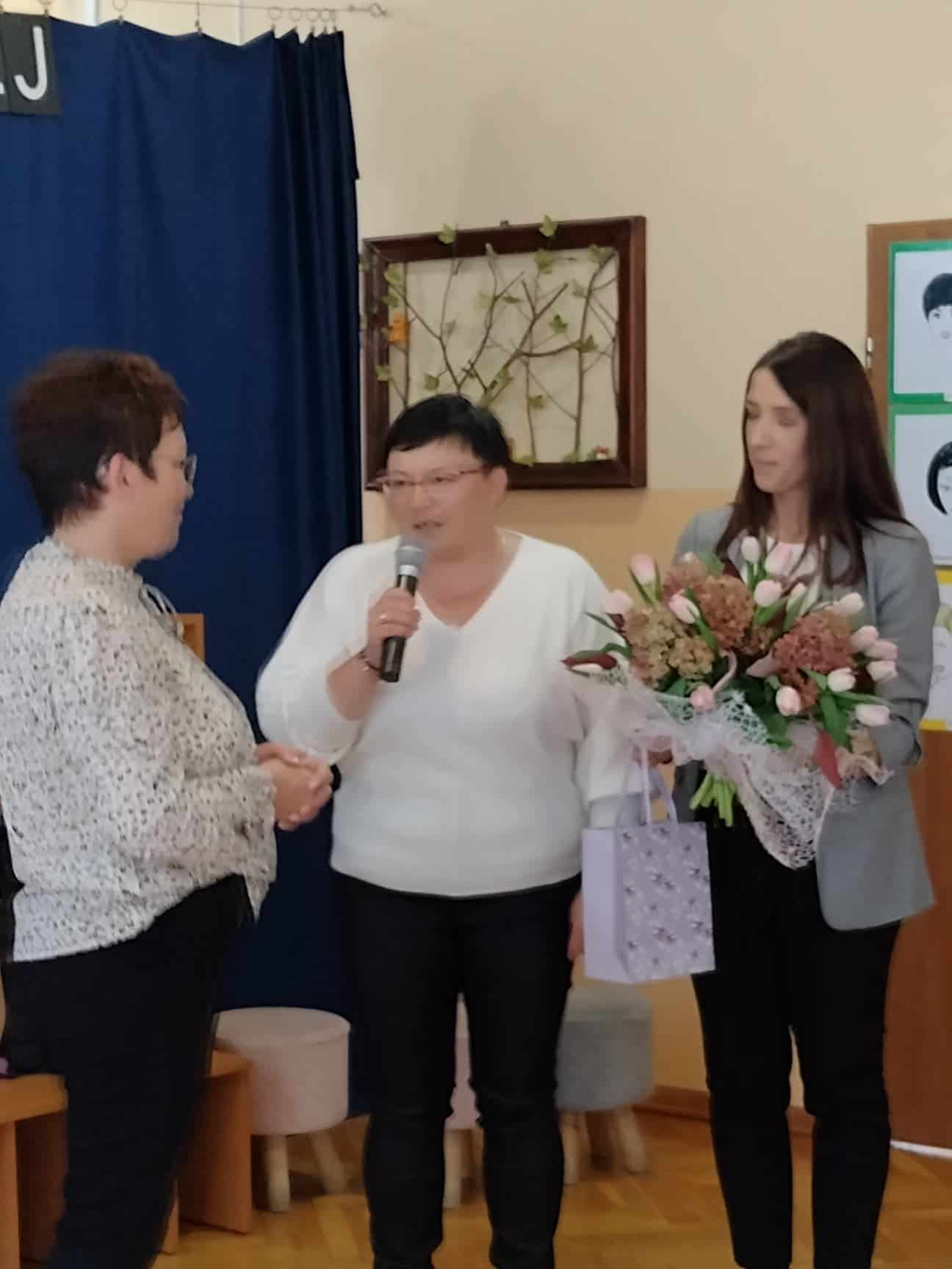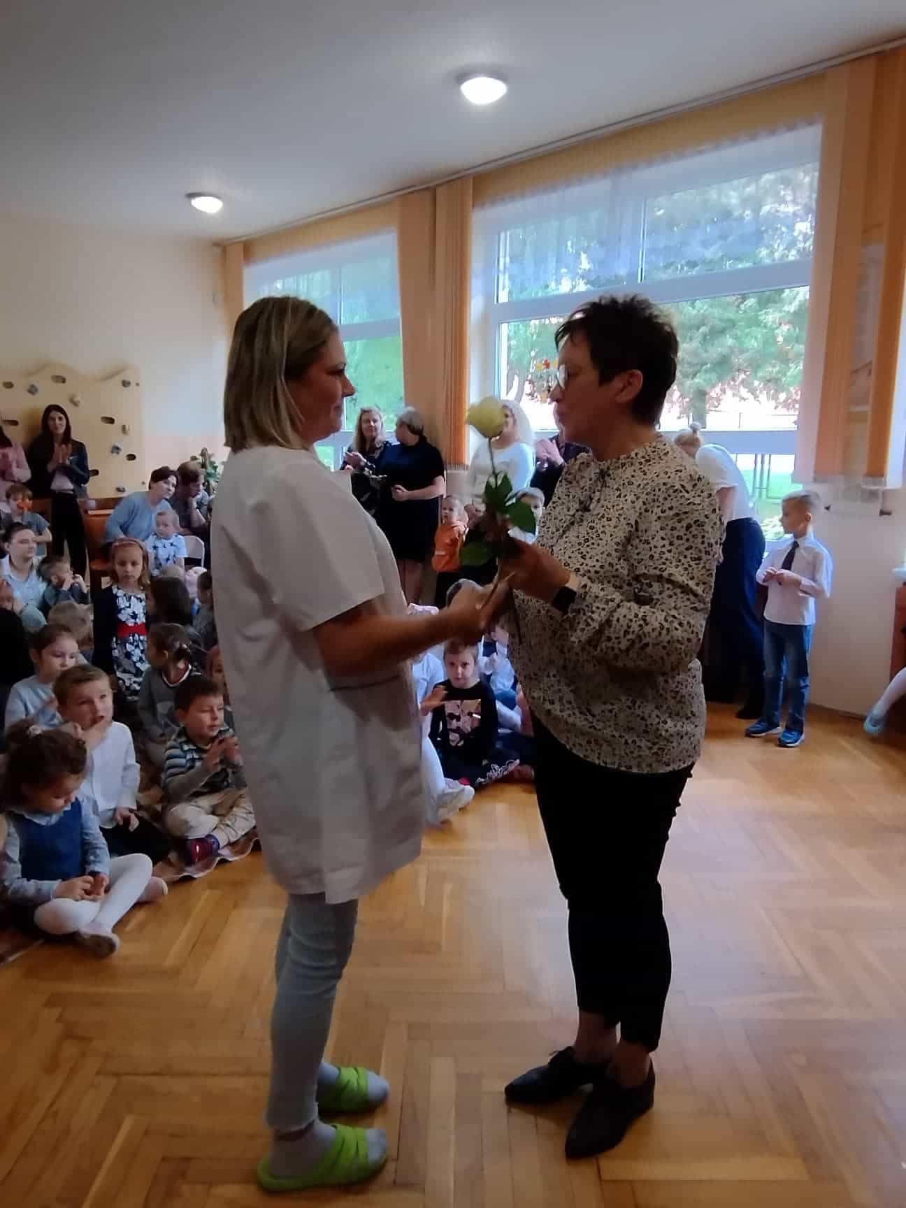 W podziękowaniu za czas spędzony z Panią Eweliną oraz zaprezentowanie książeczki o przygodach skarpetek dzieci zaśpiewały piosenkę „Odkrywam siebie” a p. Ewelina obdarowała wszystkich słodkim upominkiem.