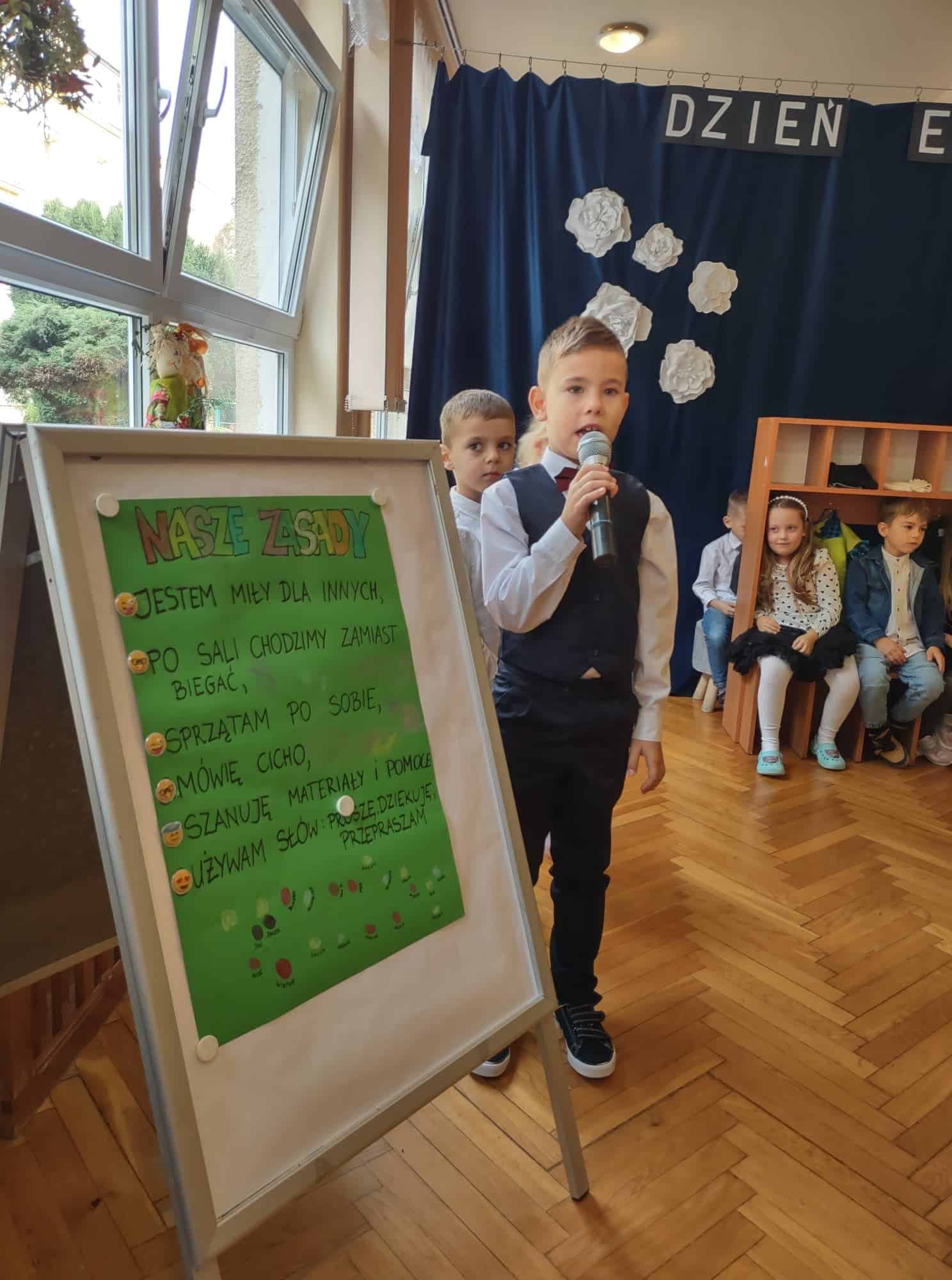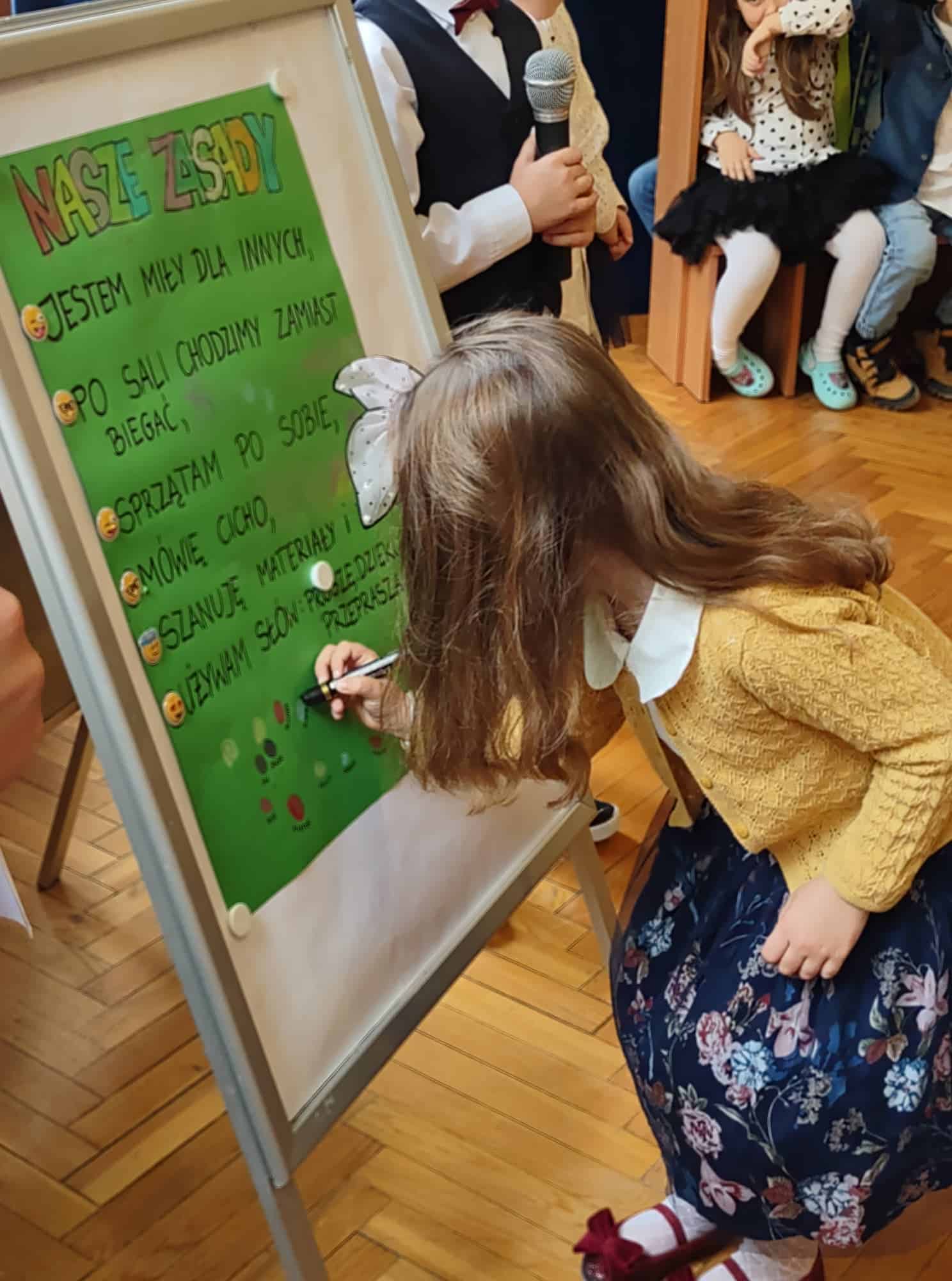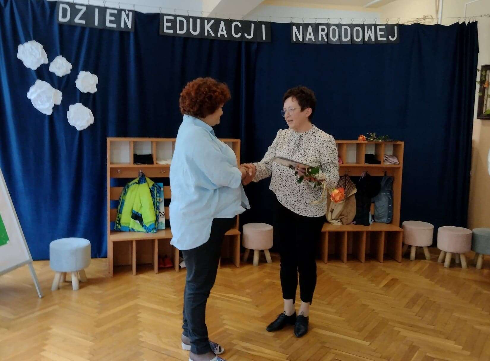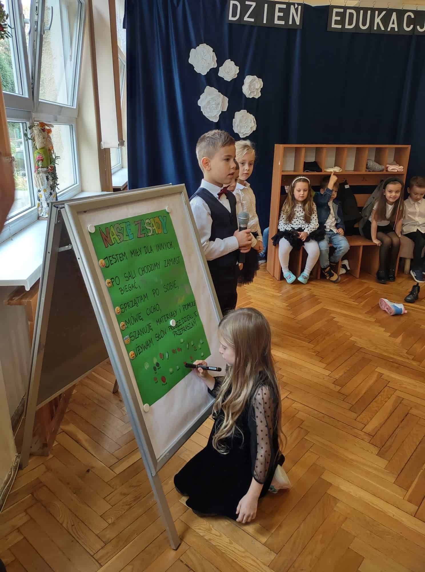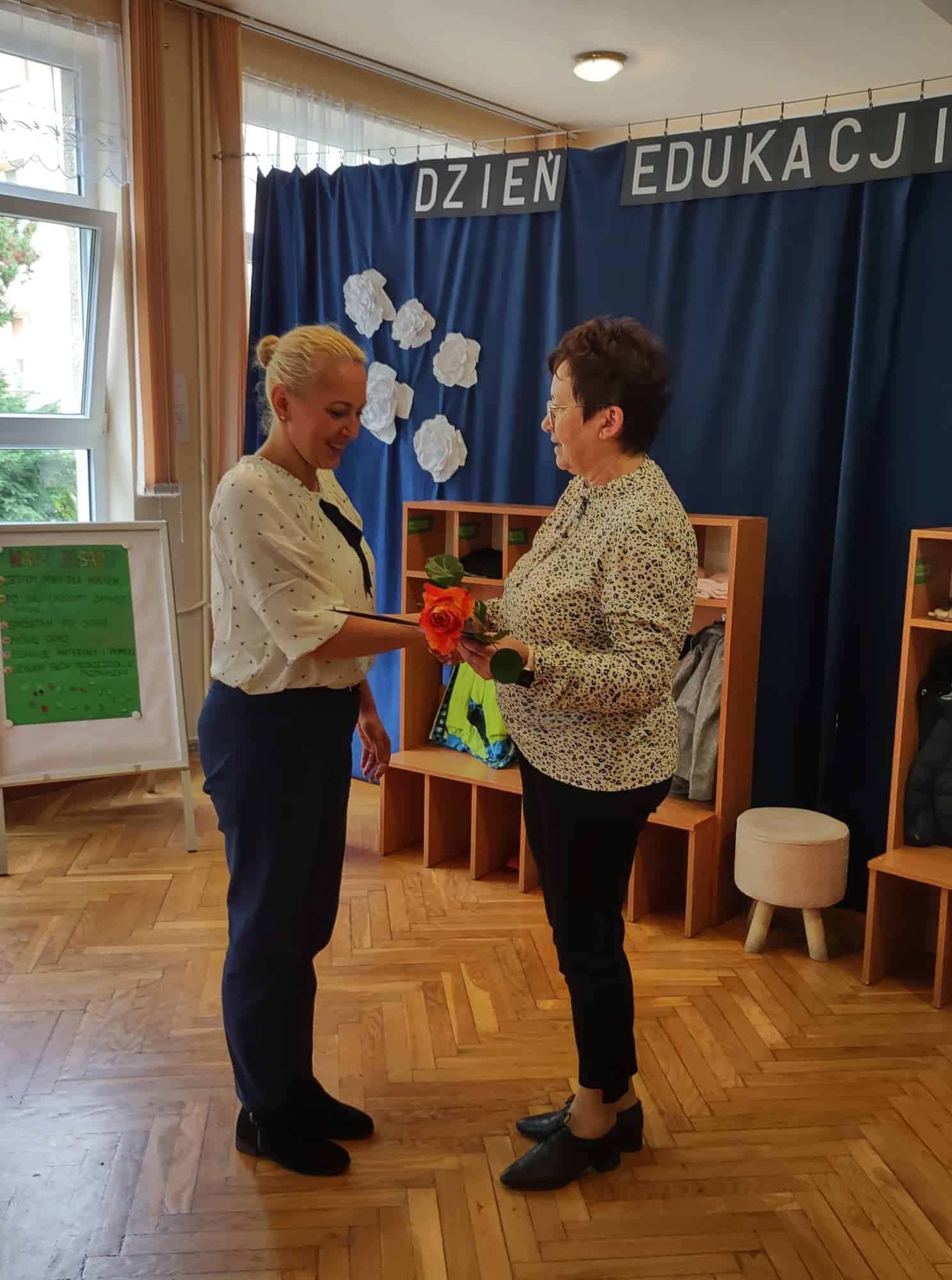 W podziękowaniu za czas spędzony z Panią Eweliną oraz zaprezentowanie książeczki o przygodach skarpetek dzieci zaśpiewały piosenkę „Odkrywam siebie” a p. Ewelina obdarowała wszystkich słodkim upominkiem.