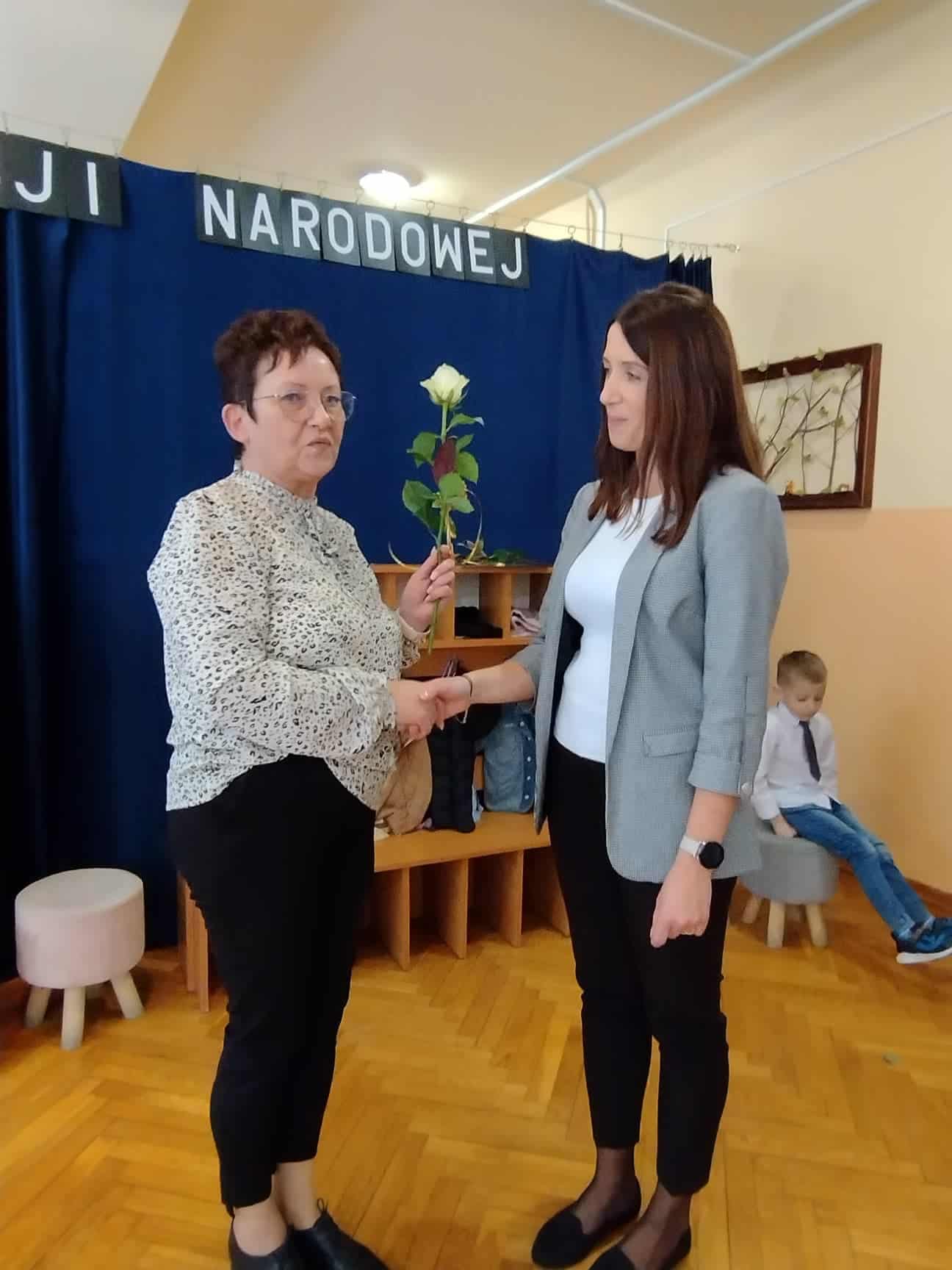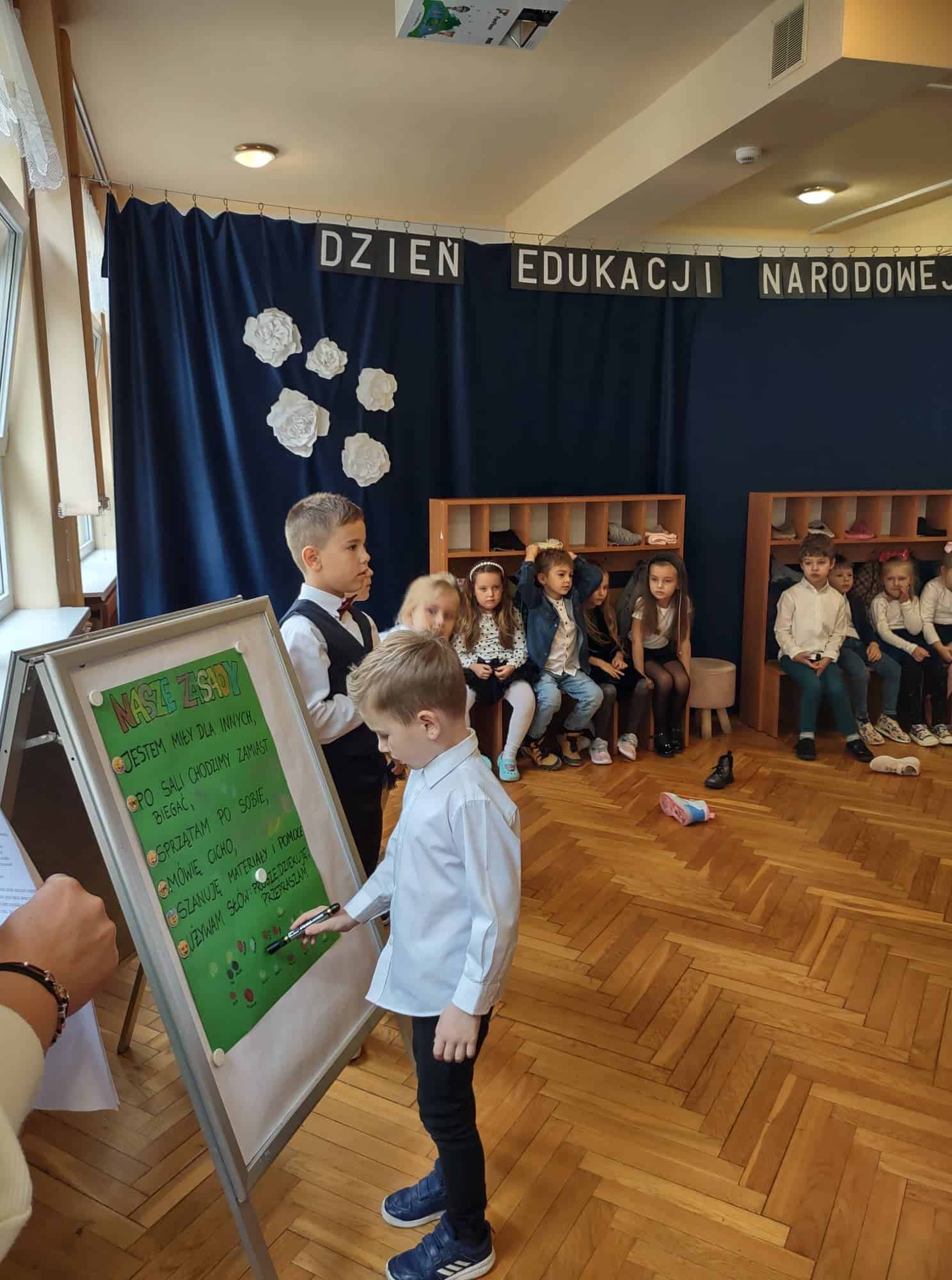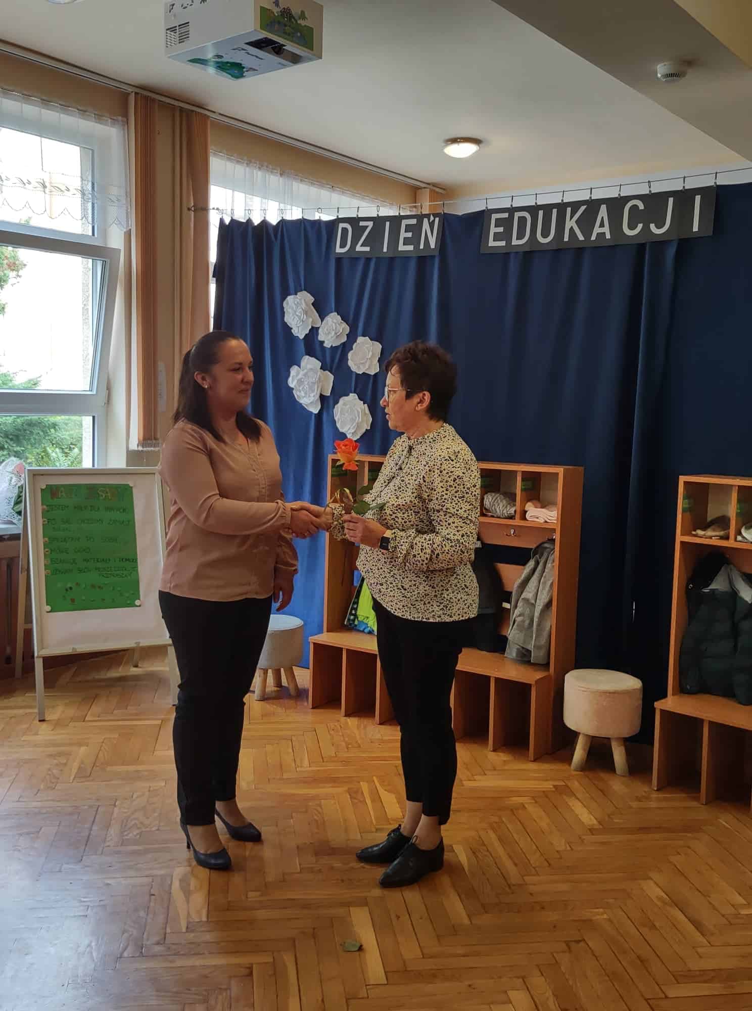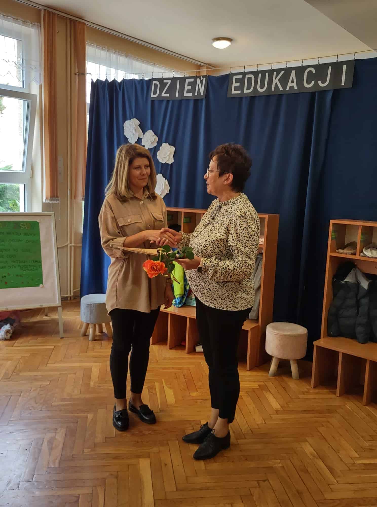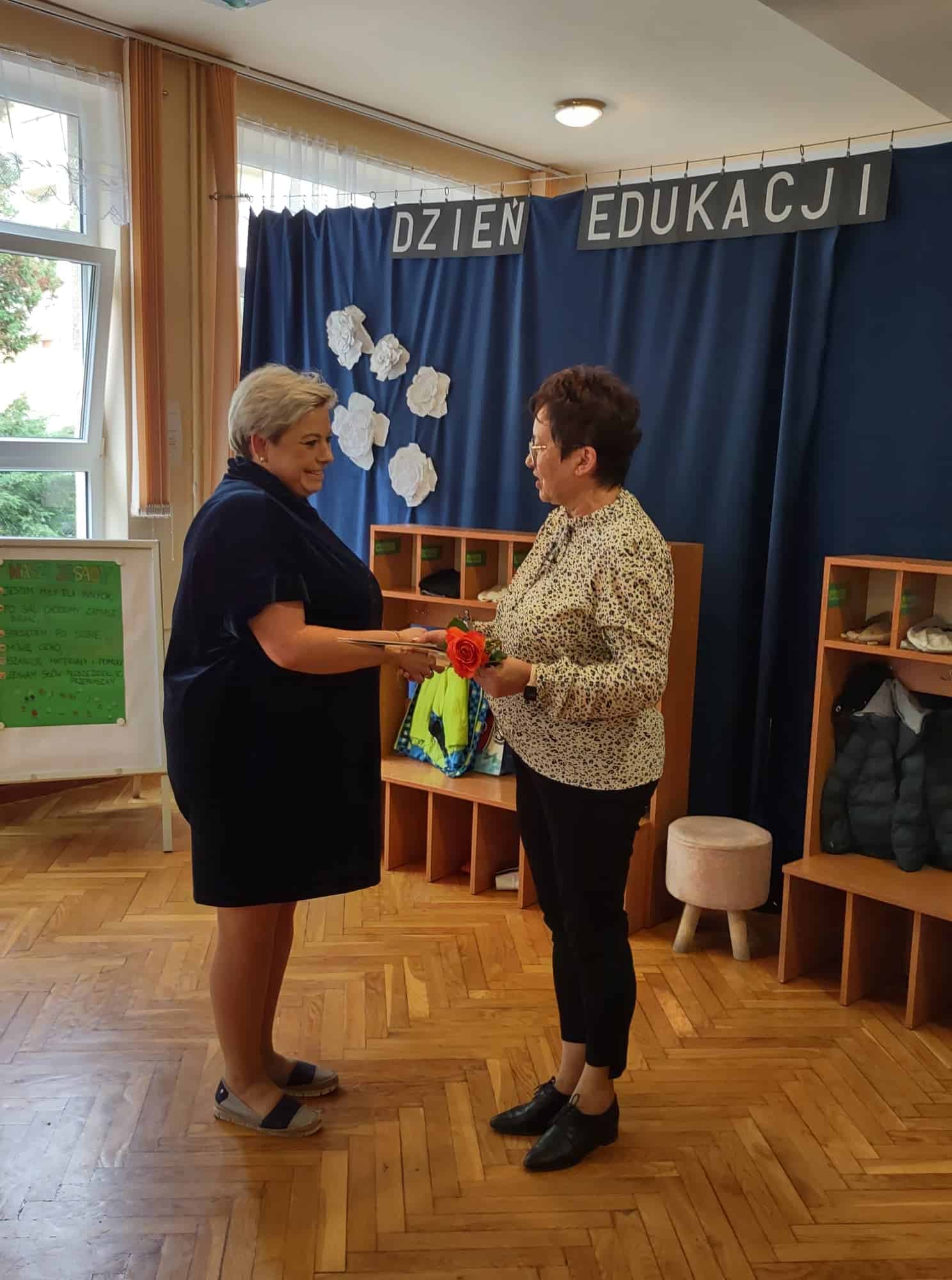 W podziękowaniu za czas spędzony z Panią Eweliną oraz zaprezentowanie książeczki o przygodach skarpetek dzieci zaśpiewały piosenkę „Odkrywam siebie” a p. Ewelina obdarowała wszystkich słodkim upominkiem.