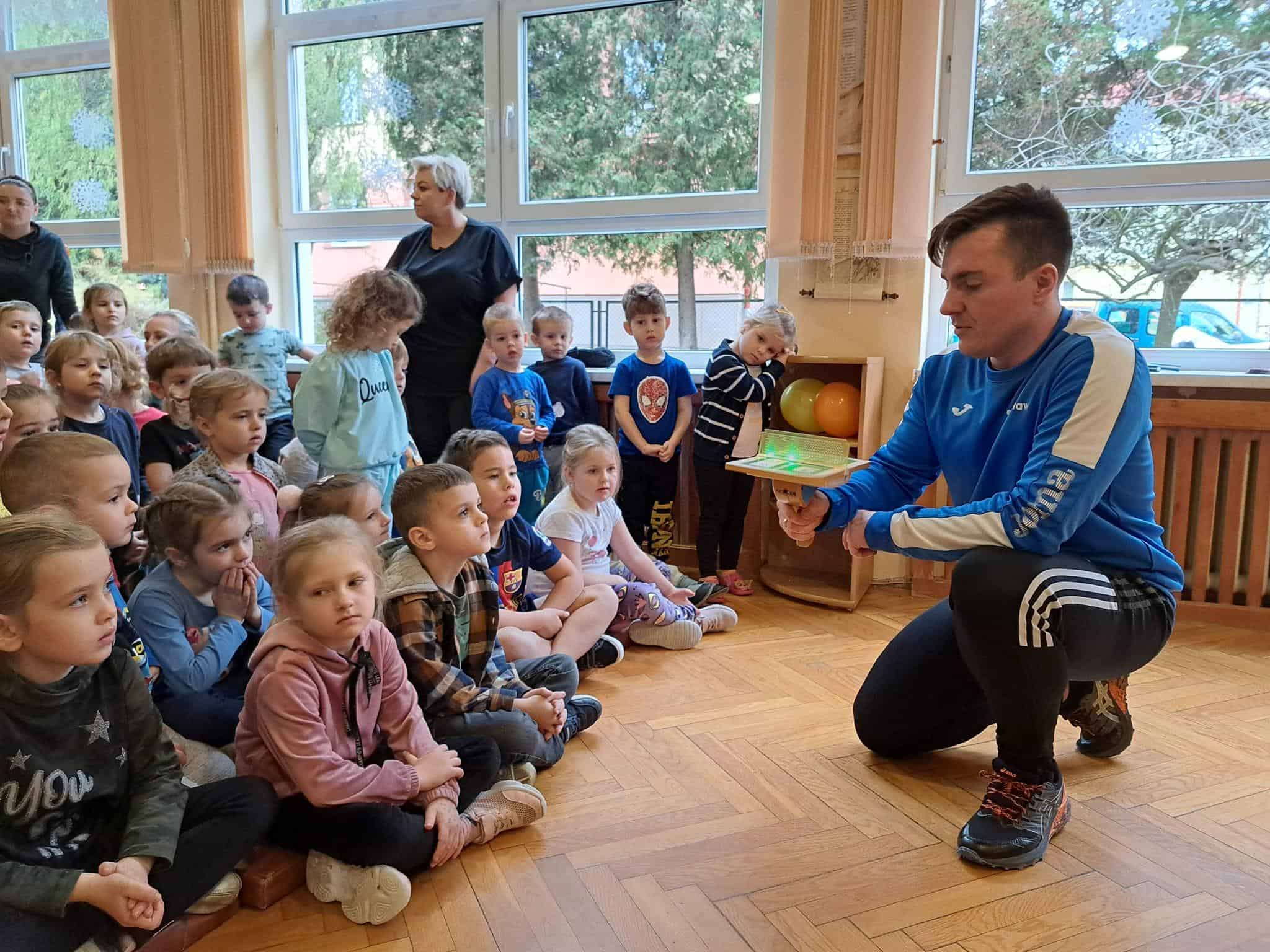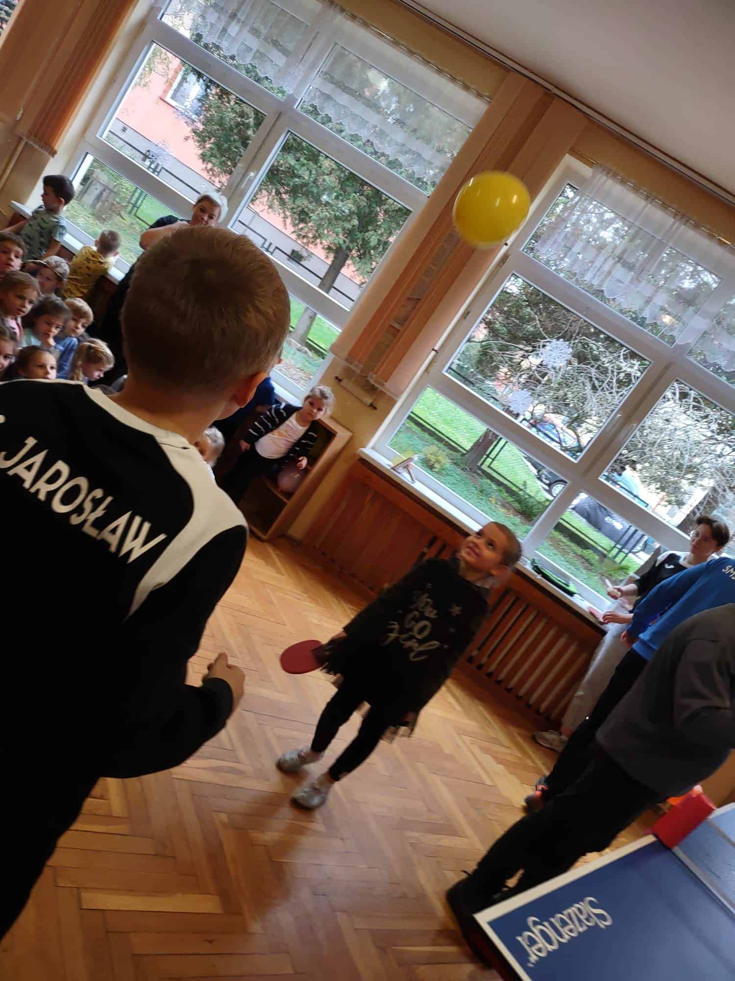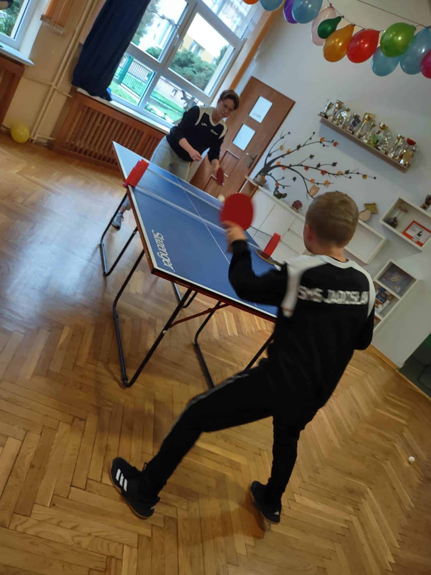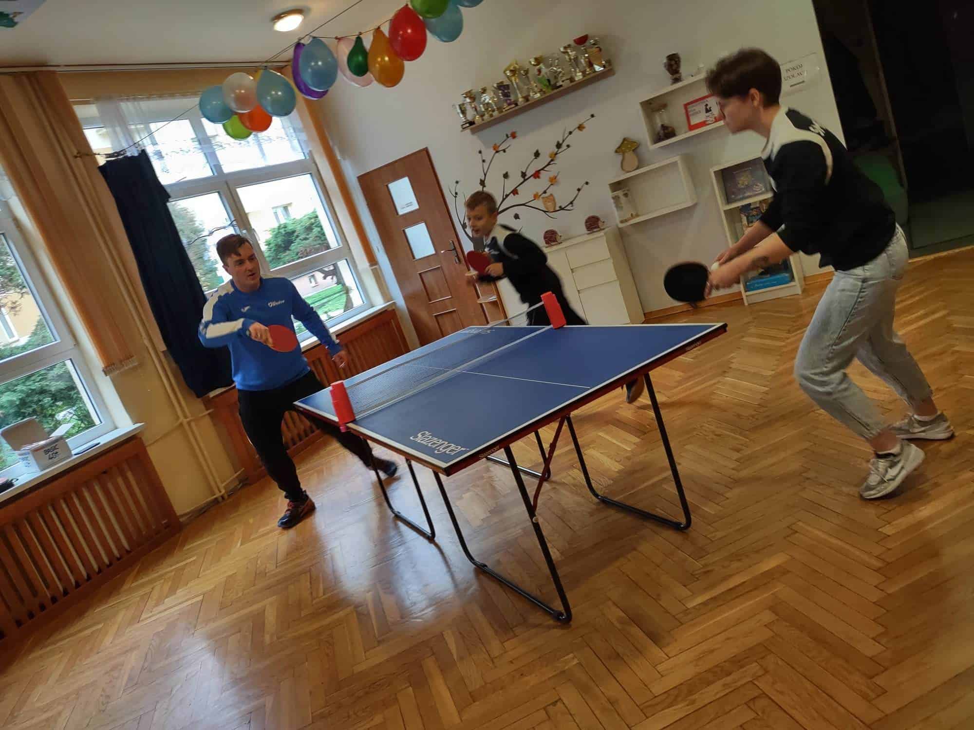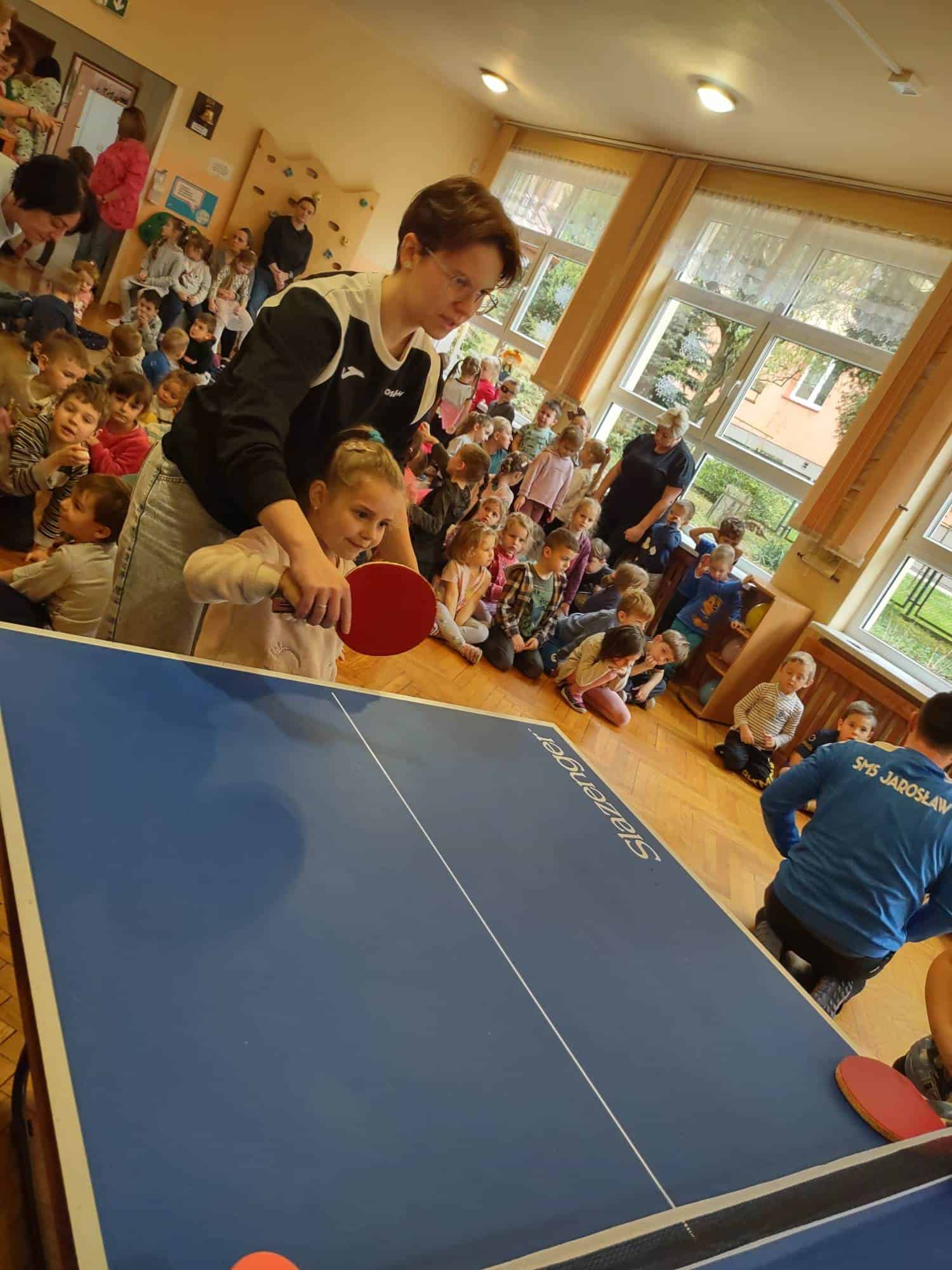 To fantastyczne spotkanie dało dzieciom możliwość poznania tajników gry w tenisa stołowego; co niektórzy próbowali nawet swoich sił przy stole. Pan Mateusz bardzo rzeczowo i ciekawie opowiadał wszystkim zebranym o treningach, o sposobie gry, o możliwościach rozwojowych jakie niesie ze sobą ten właśnie sport. Dzieci z dużym zaciekawieniem słuchały trenera, który zapraszał ich do aktywności i urozmaicał dzieciom czas różnorodnymi zabawami przy stole pingpongowym.