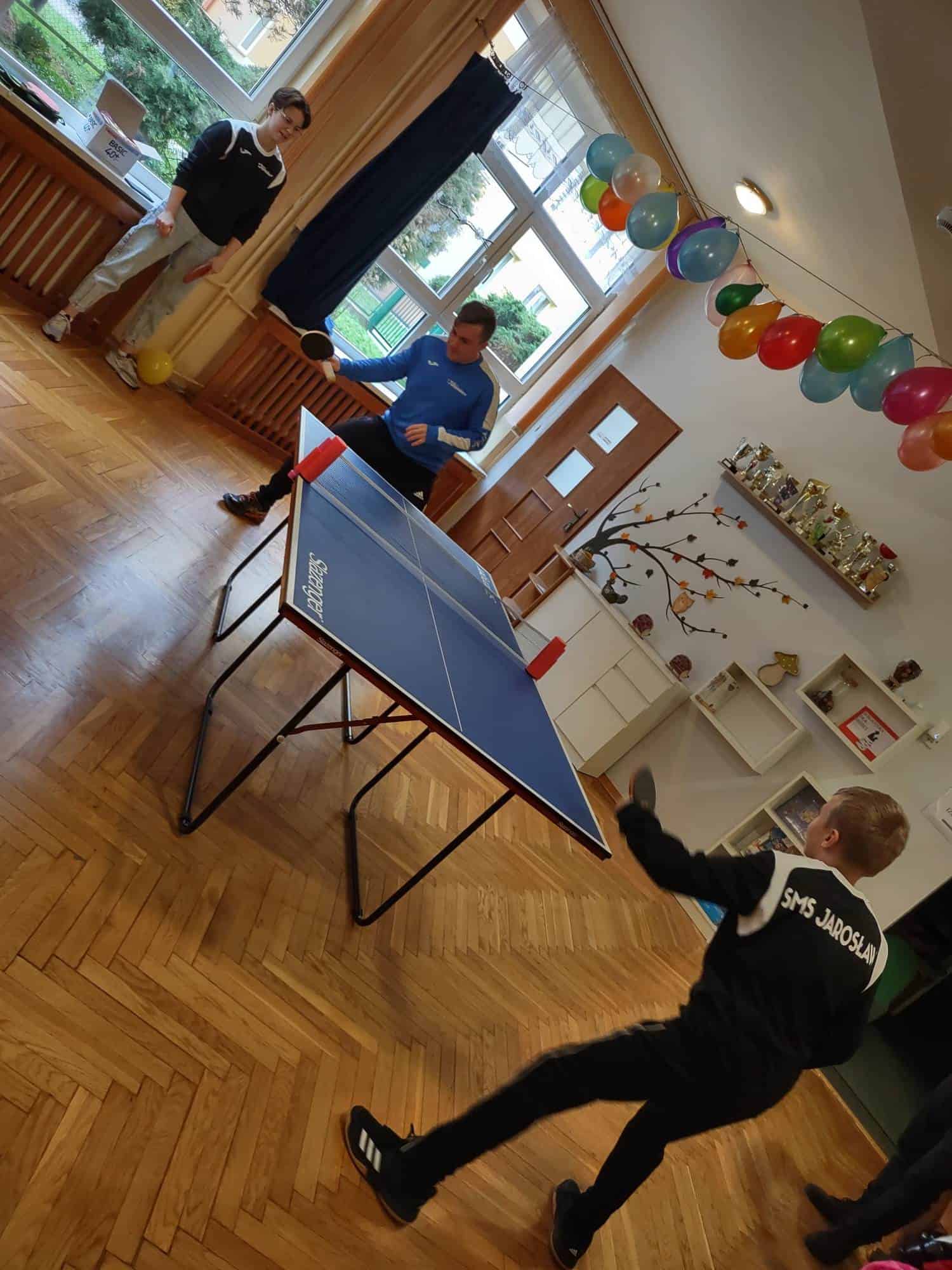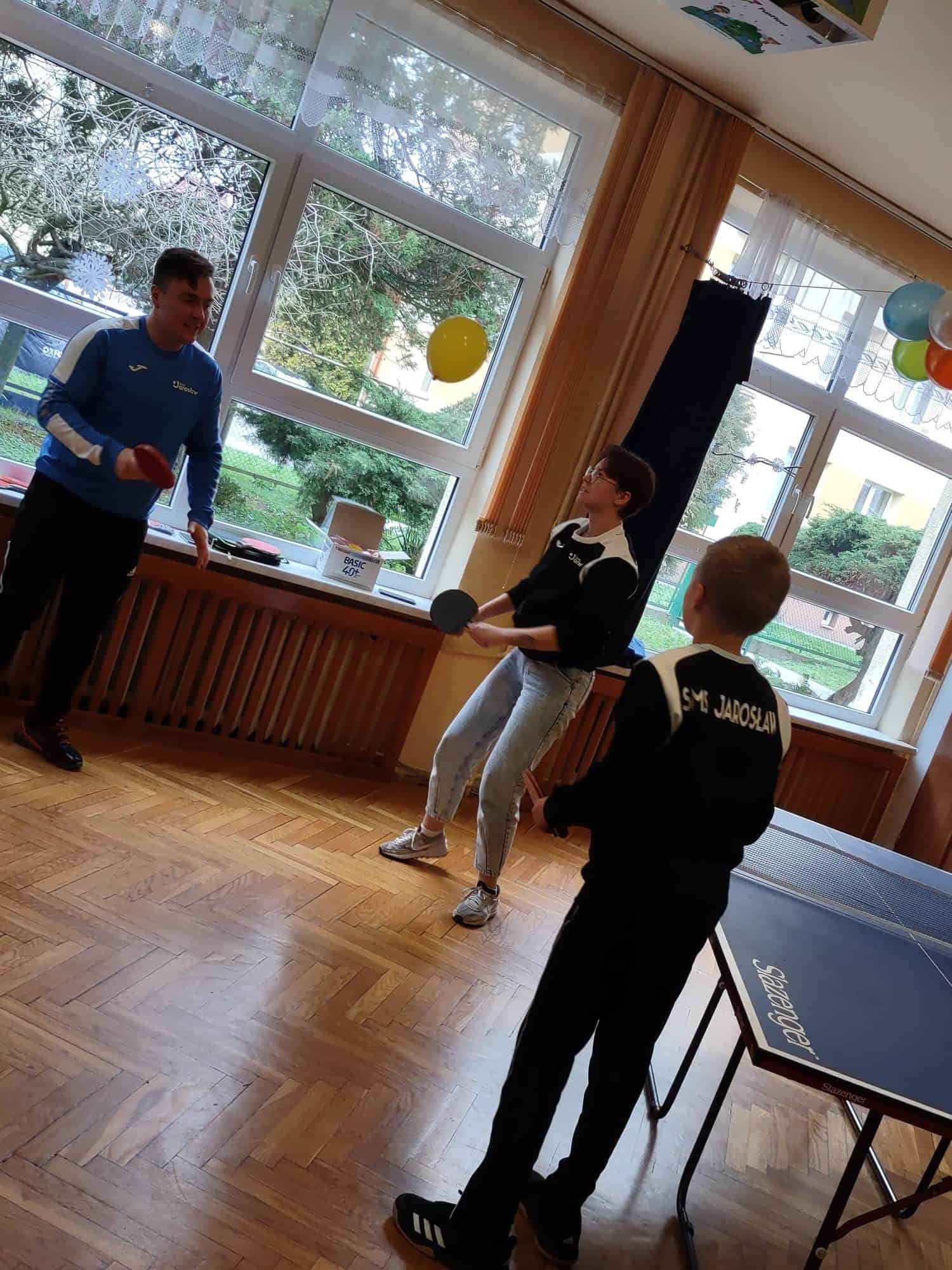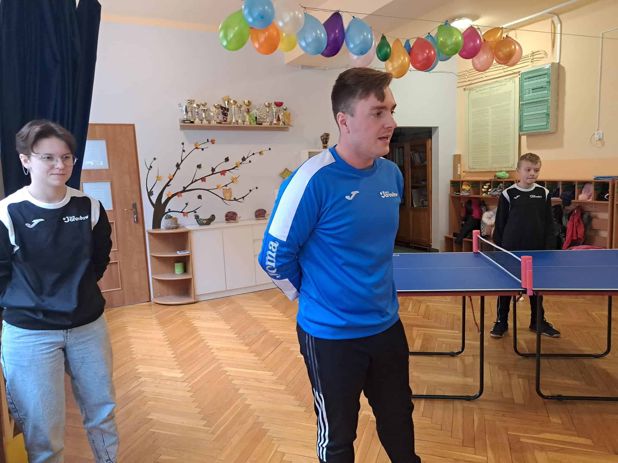We wtorek, 29 listopada, w ramach promocji i rozpowszechniania gry w tenisa stołowego, w naszym przedszkolu miało miejsce spotkanie z reprezentantami Szkoły Mistrzostwa Sportowego w Jarosławiu, a gościli u nas, Pan Mateusz Czernik – trener, oraz Jagoda Chwojko i Wojtek Flaumenhaft – uczniowie, a zarazem absolwenci naszego przedszkola 🙂 którzy zachwycili wszystkich talentem, pokazując wachlarz swoich możliwości i umiejętności związanych z grą w tenisa stołowego.