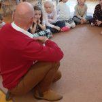 Naszą uroczystość uwieńczył gość specjalny – Pan Denis Rubelt – Żołnierz Wojska Polskiego, który dziękując za zaproszenie podkreślił jak ważne i potrzebne jest kształtowanie wśród dzieci postaw patriotycznych. Po podaniu komendy baczność do hymnu, wszyscy obecni na uroczystości odśpiewali hymn państwowy, który oficjalnie otworzył nasze patriotyczne warsztaty.