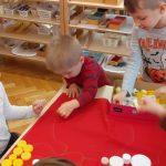 Ostatnią lekcję prowadziły wspólnie dwie grupy: Pomarańczowa i Czerwona. Dzieci zabrały nas w podróż po Polsce. Zwiedzanie zaczęliśmy od naszego miasta Jarosławia, po czym przenieśliśmy się do stolicy, czyli Warszawy, potem odwiedziliśmy Kraków, następnie wędrowaliśmy po naszych pięknych, polskich górach, a z gór wybraliśmy się nad nasze Bałtyckie Morze, później na Mazury, a na koniec zwiedziliśmy Śląsk. Przedszkolaki wykazały się umiejętnością czytania mapy, wskazywały na niej miejsca, o których mówiły. Informacje o charakterze geograficzno-historycznym na temat poszczególnych miejsc przeplatane były wierszami. Na zakończenie naszej wspólnej lekcji, radośnie i z dużą energią zaśpiewaliśmy piosenkę „Kocham Cię Polsko”.