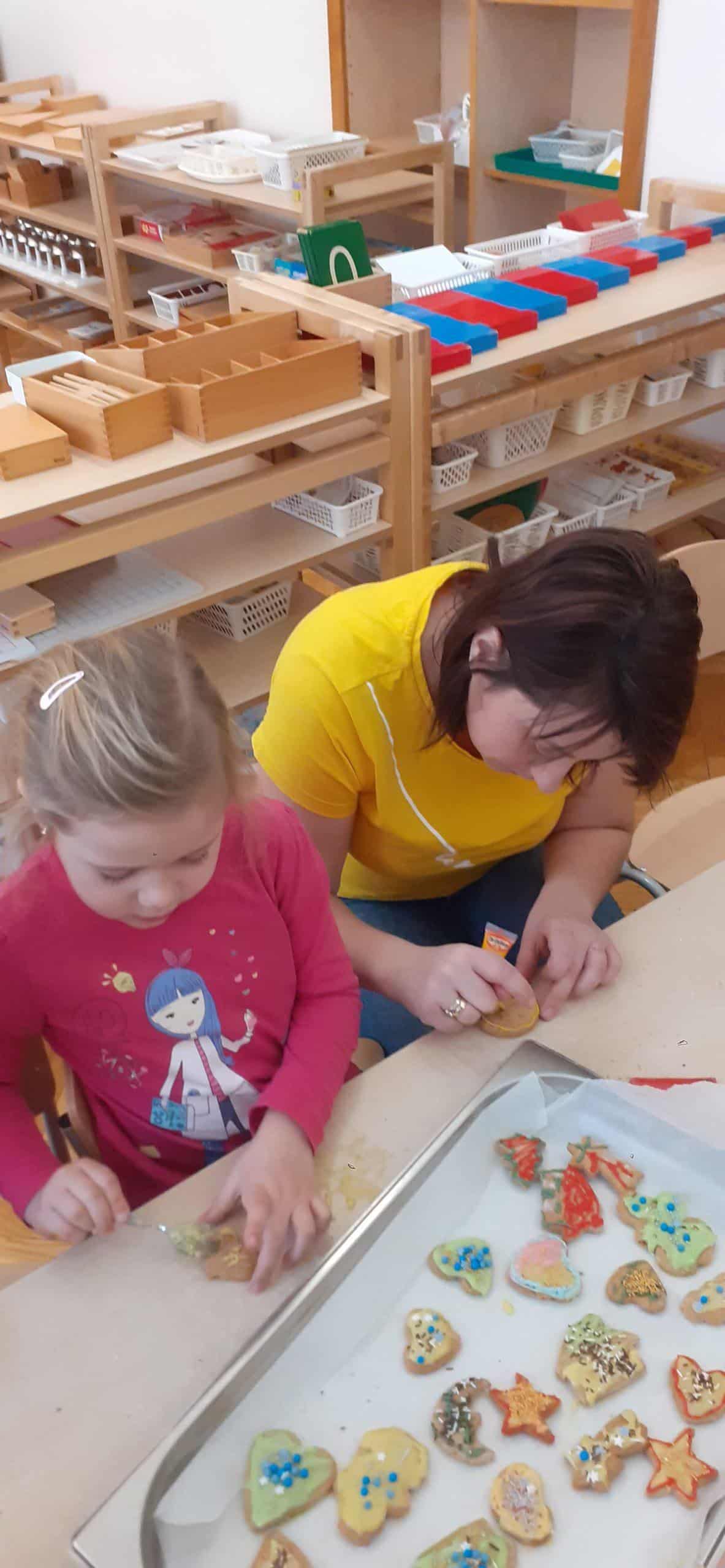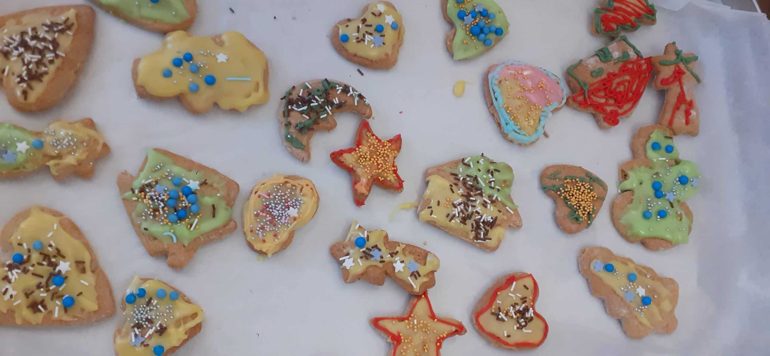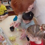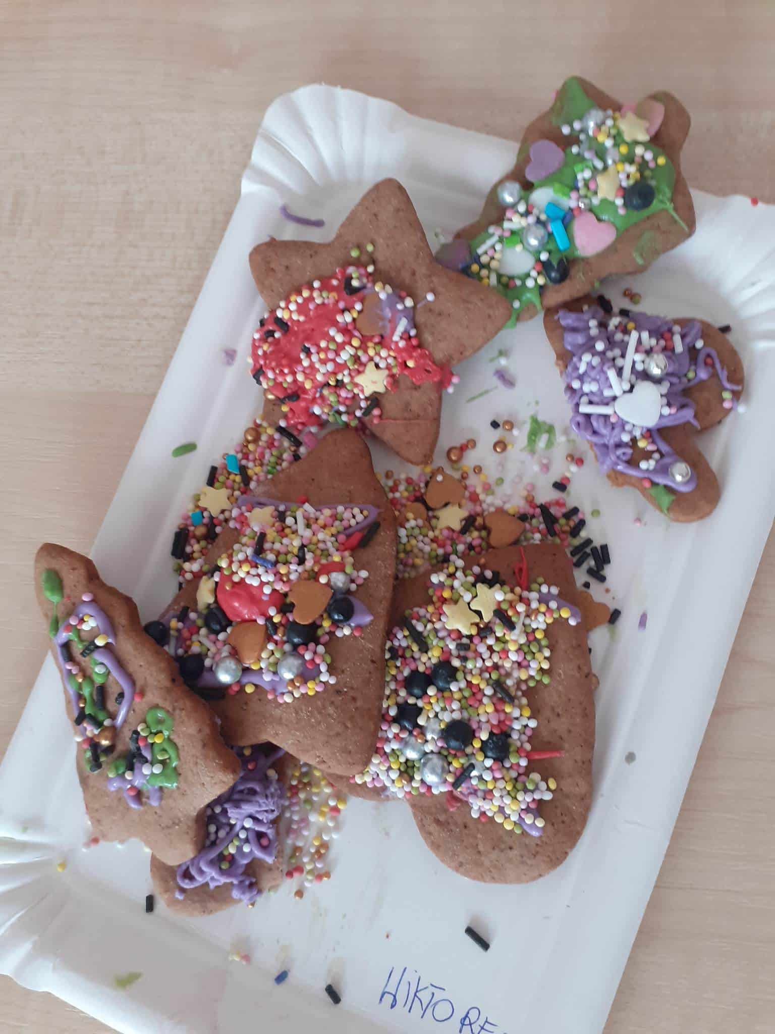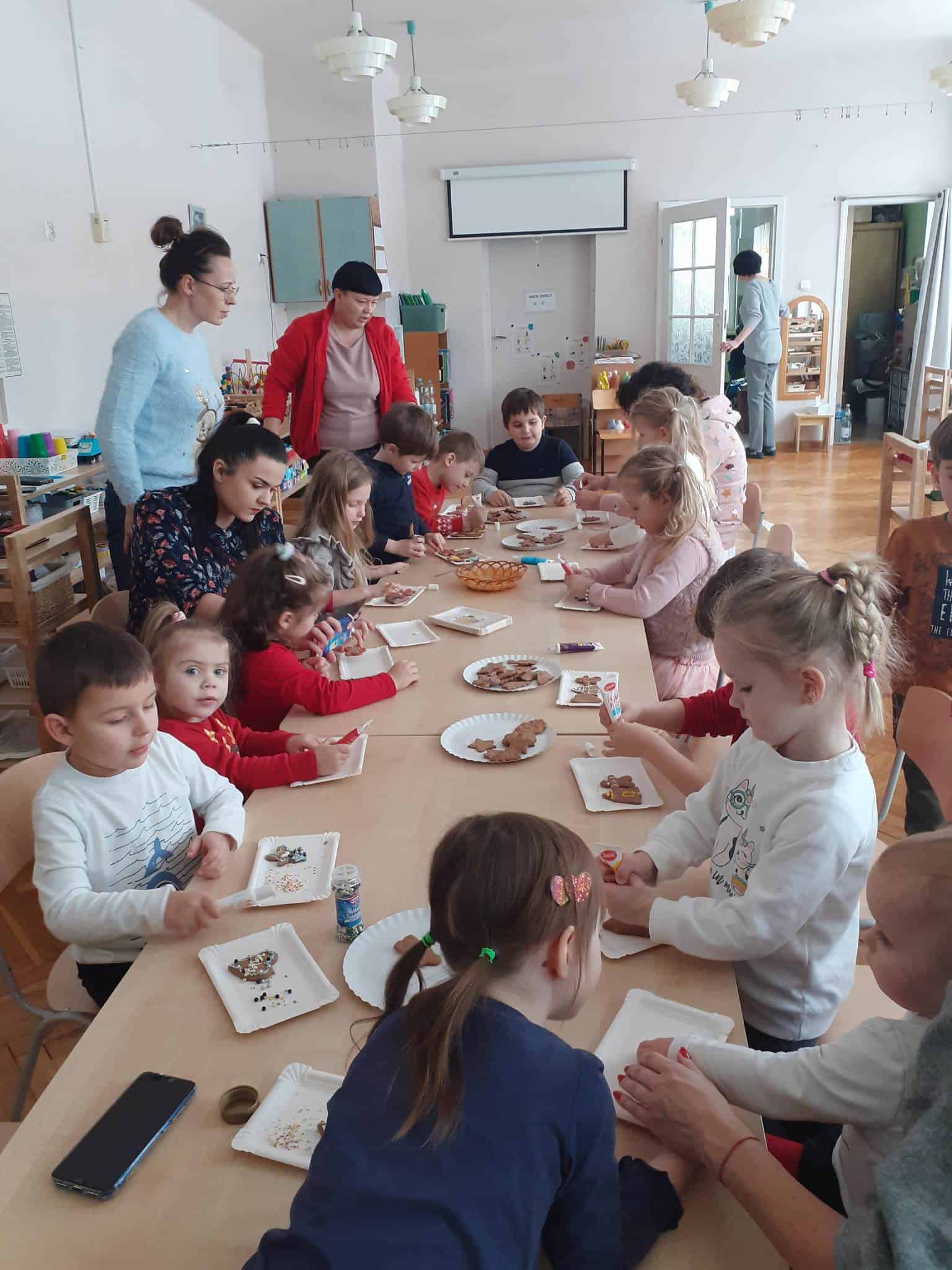 13 grudnia odwiedziły nas Mamusie Mii, Laury, Kubusia i Oli, dzięki którym dzieci mogły osobiście doświadczać świątecznych przygotowań, podczas dekorowania pierniczków. Było radośnie i miło, a rąk do pracy nie brakowało, gdyż do grona świątecznych pomocników dołączyły także siostrzyczka Oli, Mii i Laury 🙂 Przy dźwiękach kolęd zaczęliśmy swoje działania. Na stołach pojawił się kolorowy lukier, różnobarwne posypki, rysiki dekoracyjne oraz pisaki cukrowe, które pomogły nam w samodzielnym dekorowaniu pierników. Każdy wyglądał inaczej, był wyjątkowy i niepowtarzalny.