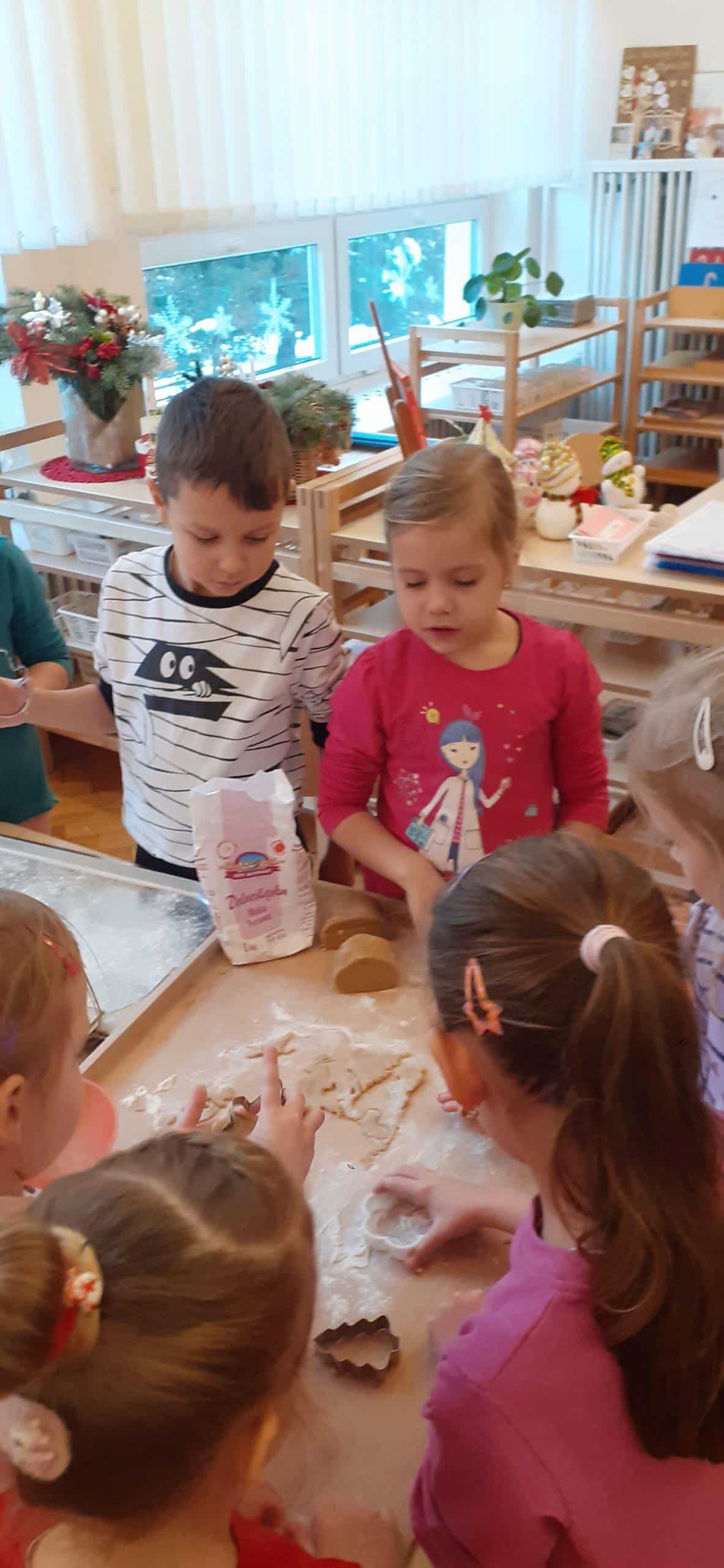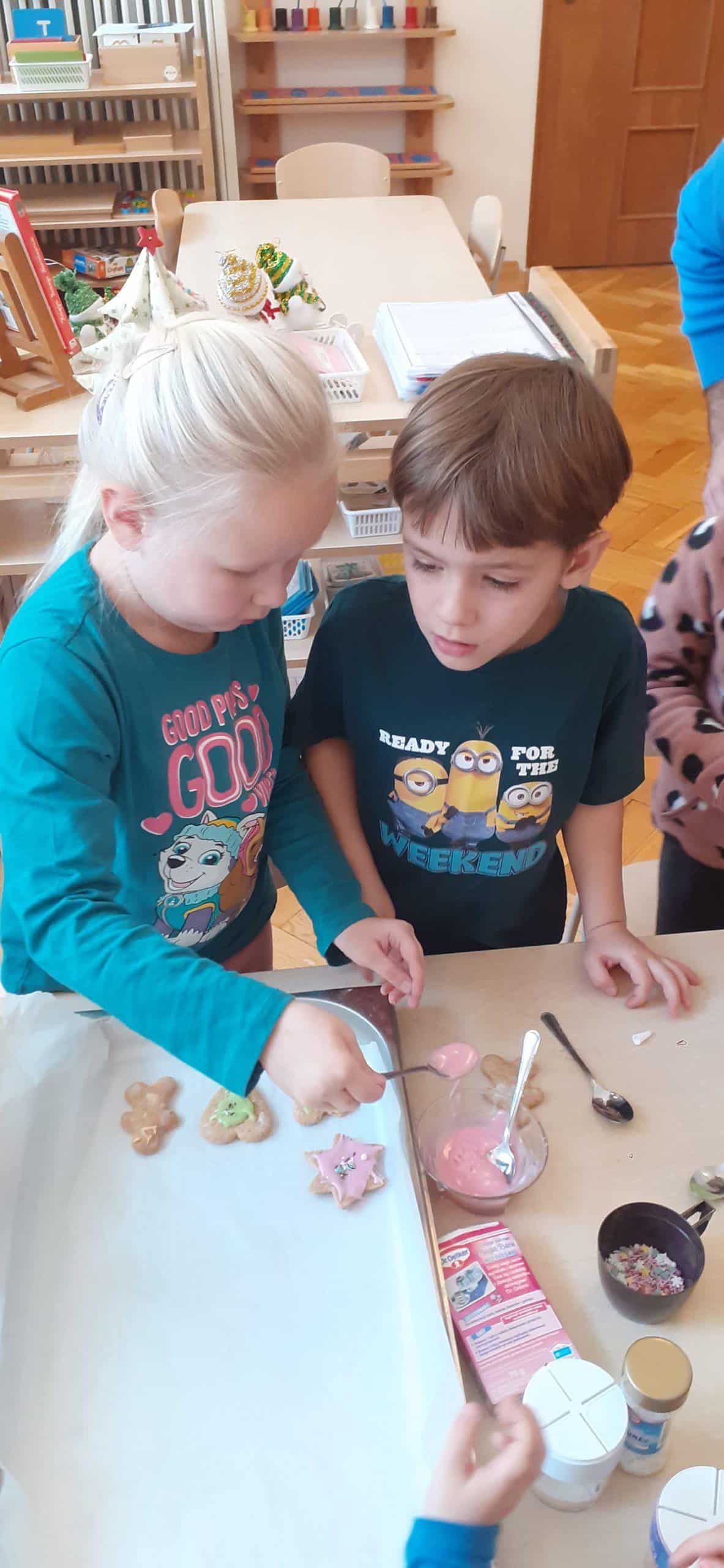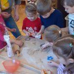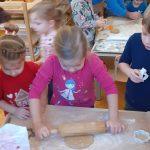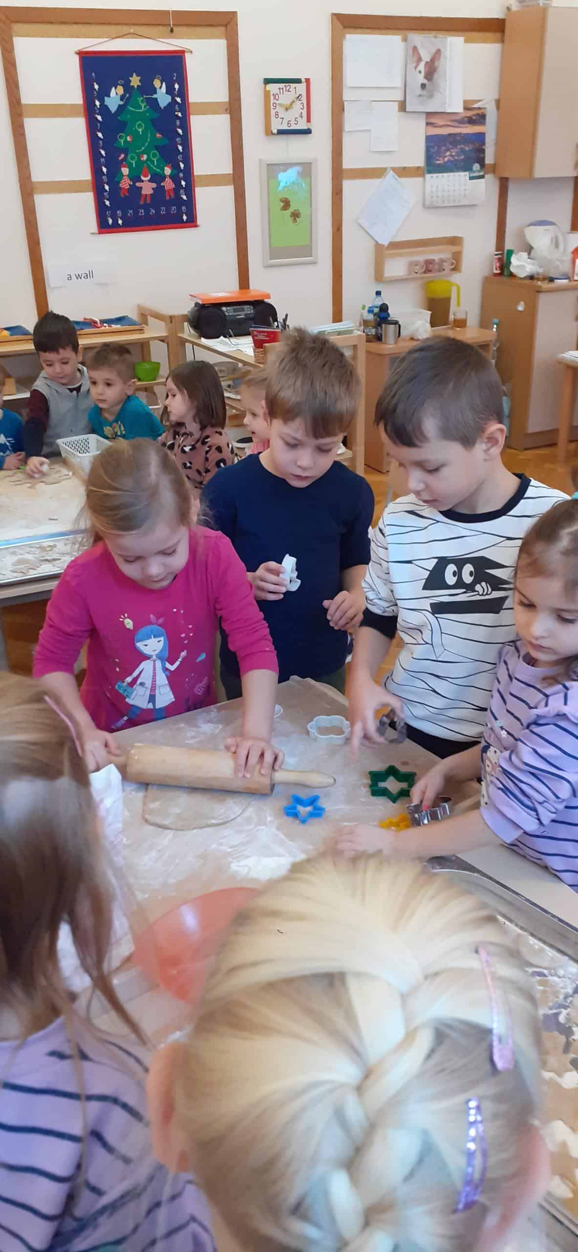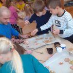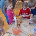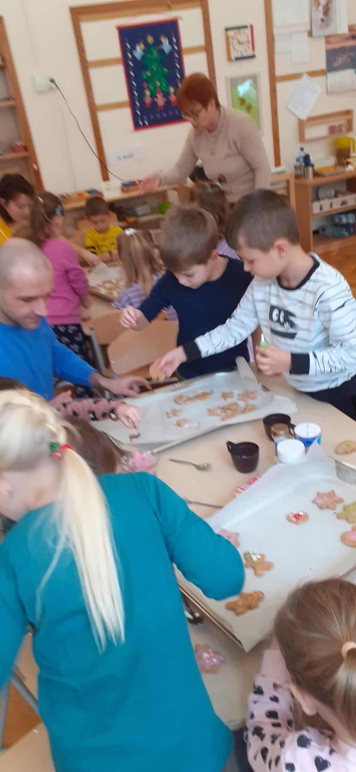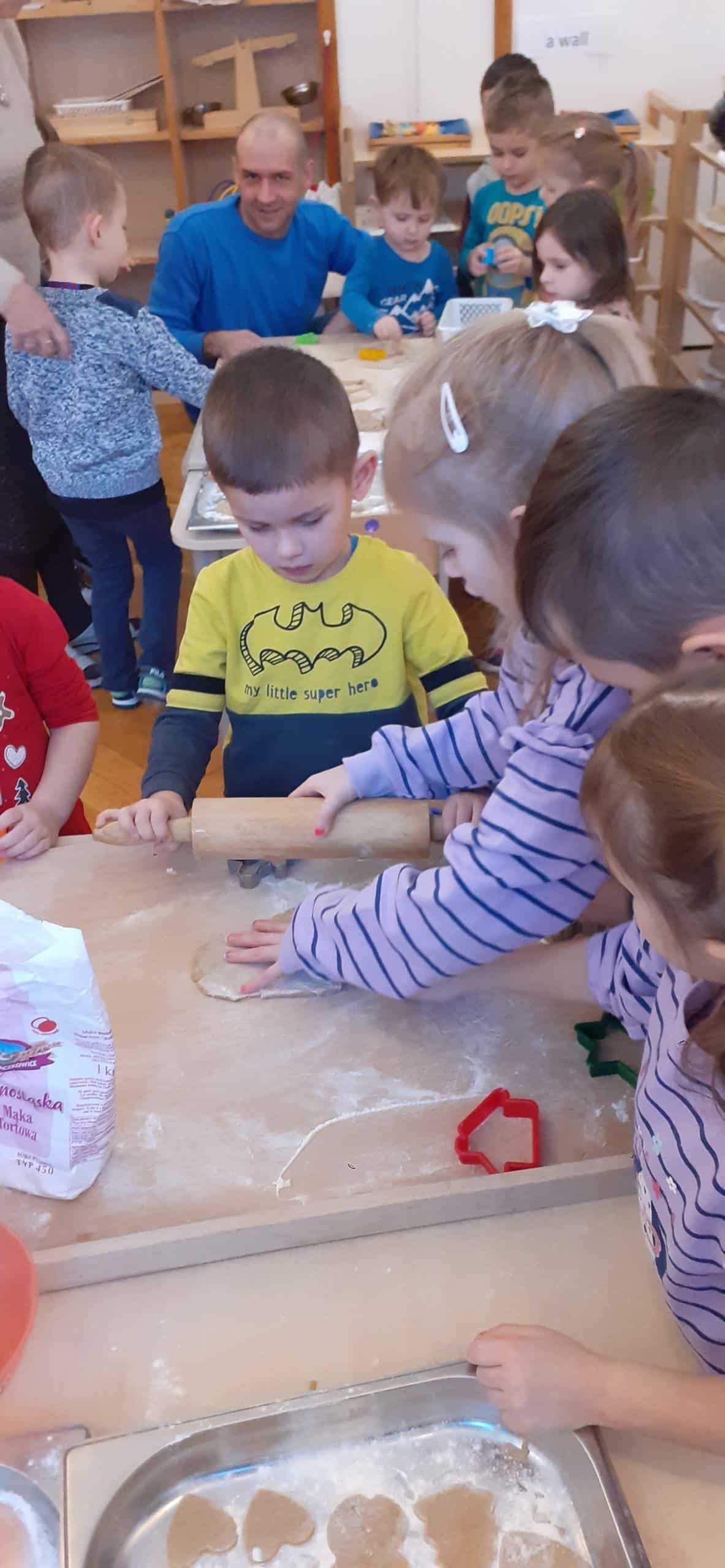 Wypiek pierników tuż przed świętami Bożego Narodzenia stał się już tradycją naszej grupy. W tym roku nie mogło być inaczej – zapach pieczonych pierników roznosił się po naszym przedszkolu. Nazwa ciastek pochodzi od pieprzu i pikantnych, korzennych przypraw. Najstarszy Polski przepis pochodzi z XVII wieku i został zapisany w poradniku medycznym jako specyfik na przeziębienie i niestrawności. Pieczenie pierników to ulubione zajęcie dzieci przed świętami Bożego Narodzenia. Tym razem też towarzyszyli nam Rodzice. Dzieci doskonale wiedziały jakie składniki trzeba wymieszać, aby powstały pierniki. Powstały miękkie i aromatyczne ciasteczka, które potem ozdobiono kolorowym lukrem, posypkami , gwiazdeczkami. To była dobra zabawa i zapowiedź świątecznego nastroju. Dziękuję Rodzicom Antka, Klary , Wiktora i Nikodema za udział w zajęciach i aktywne wspieranie dzieci.