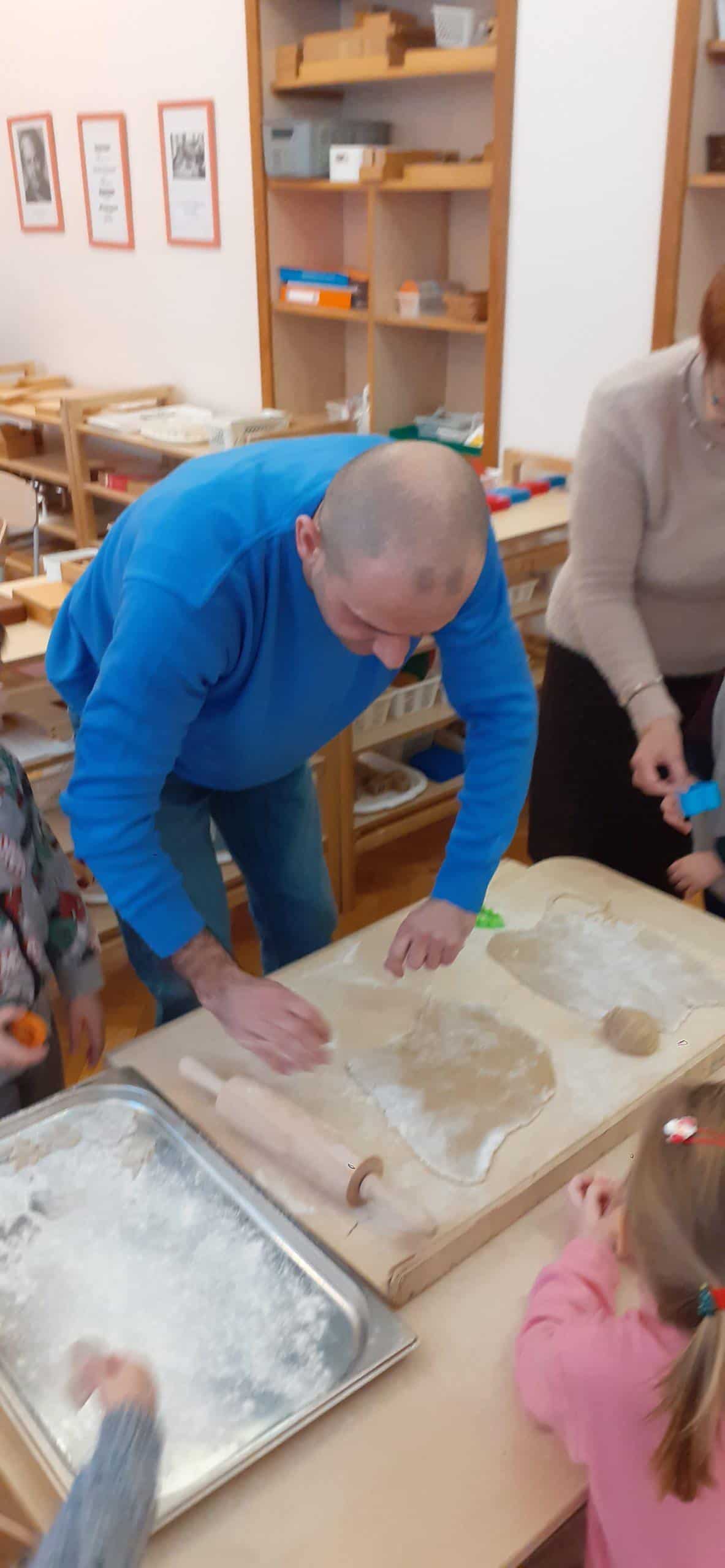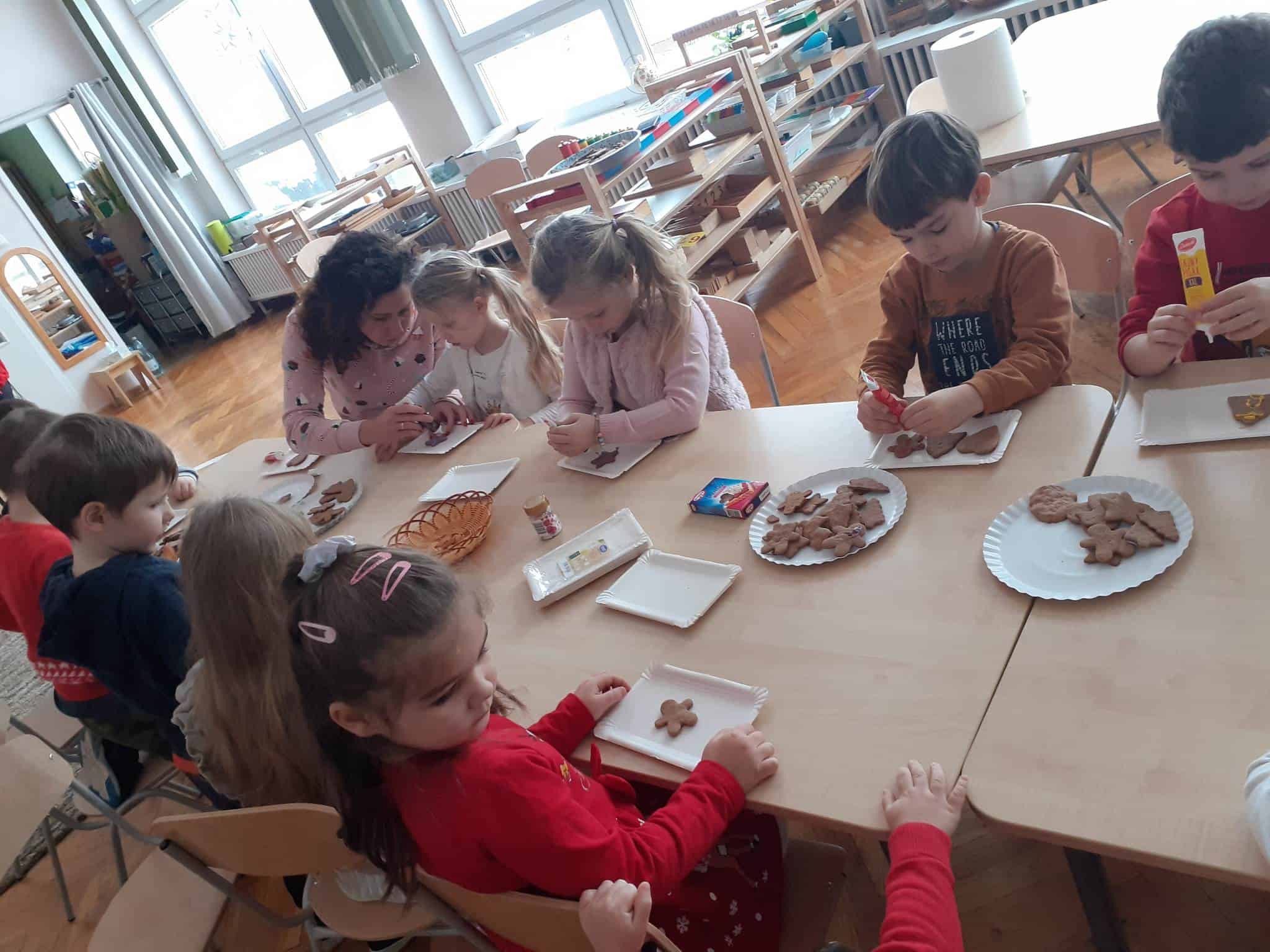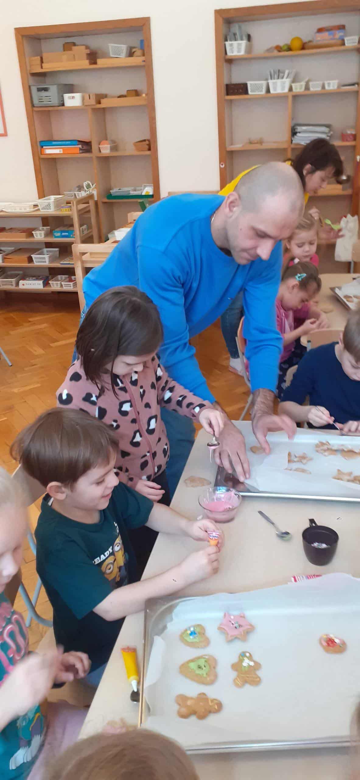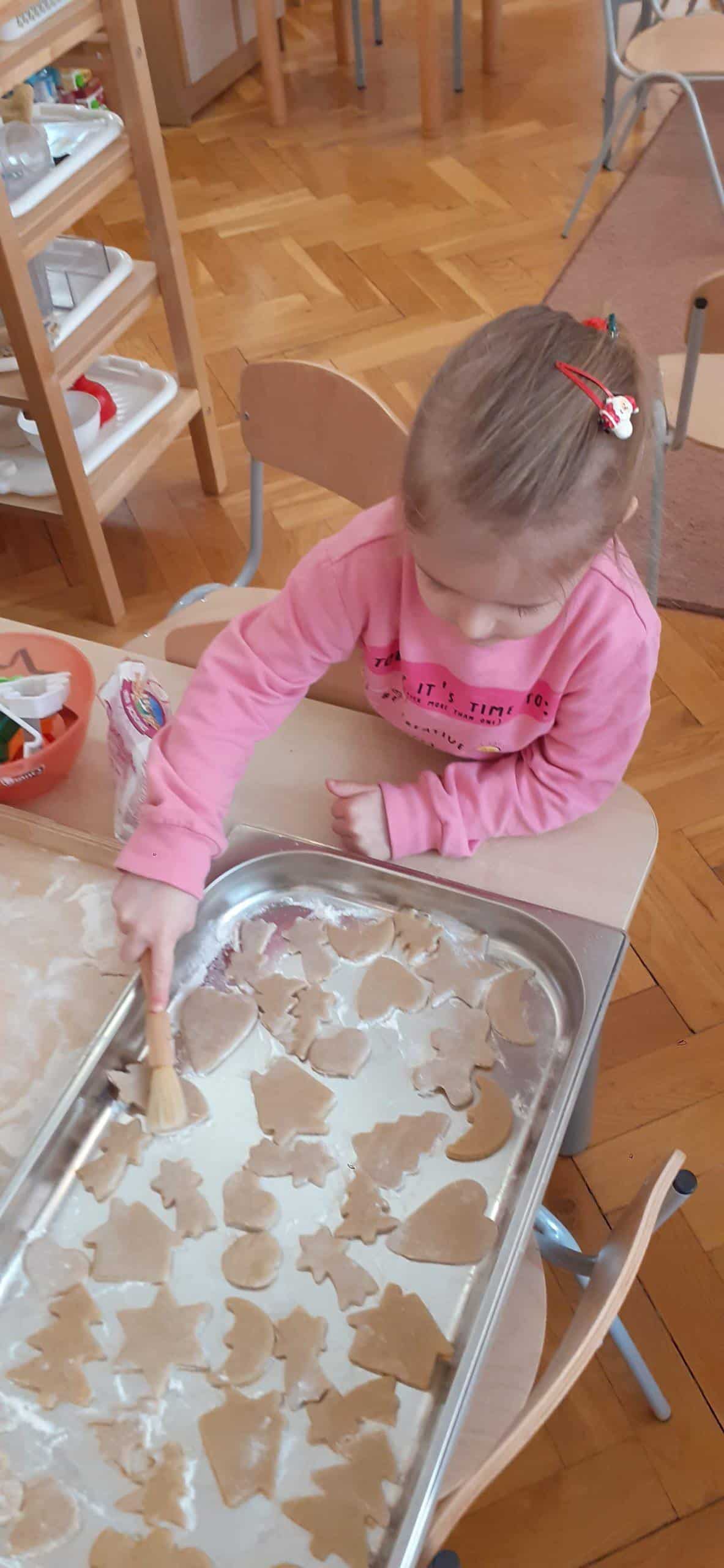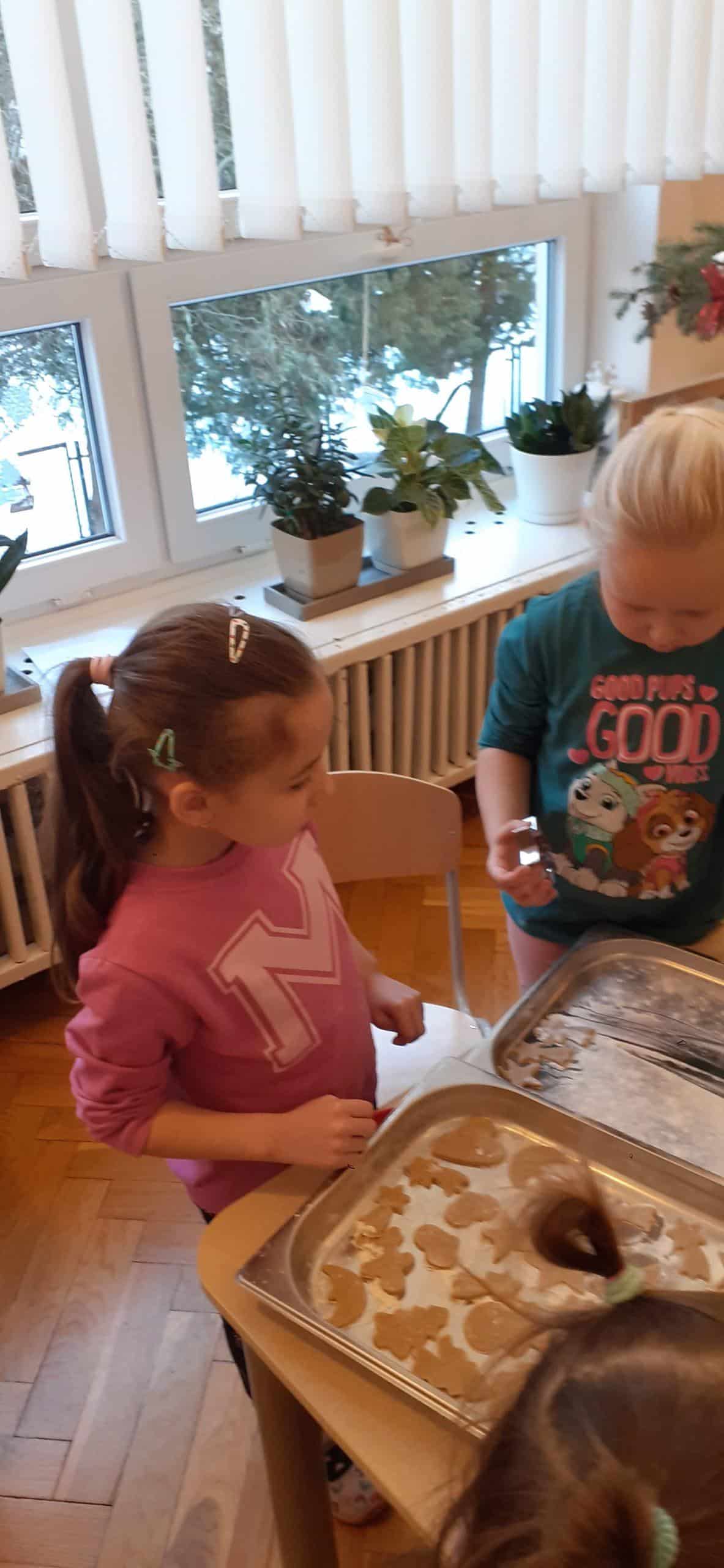 Wypiek pierników tuż przed świętami Bożego Narodzenia stał się już tradycją naszej grupy. W tym roku nie mogło być inaczej – zapach pieczonych pierników roznosił się po naszym przedszkolu. Nazwa ciastek pochodzi od pieprzu i pikantnych, korzennych przypraw. Najstarszy Polski przepis pochodzi z XVII wieku i został zapisany w poradniku medycznym jako specyfik na przeziębienie i niestrawności. Pieczenie pierników to ulubione zajęcie dzieci przed świętami Bożego Narodzenia. Tym razem też towarzyszyli nam Rodzice. Dzieci doskonale wiedziały jakie składniki trzeba wymieszać, aby powstały pierniki. Powstały miękkie i aromatyczne ciasteczka, które potem ozdobiono kolorowym lukrem, posypkami , gwiazdeczkami. To była dobra zabawa i zapowiedź świątecznego nastroju. Dziękuję Rodzicom Antka, Klary , Wiktora i Nikodema za udział w zajęciach i aktywne wspieranie dzieci.